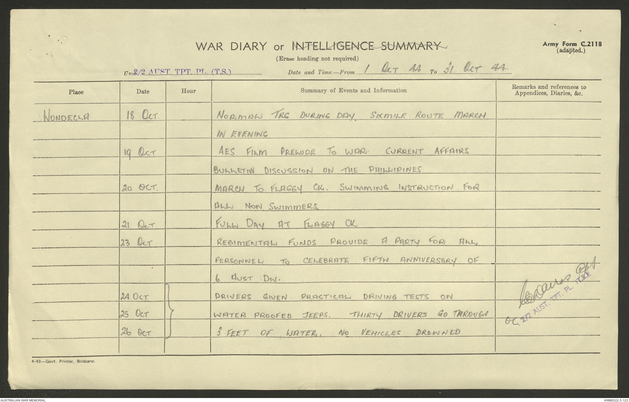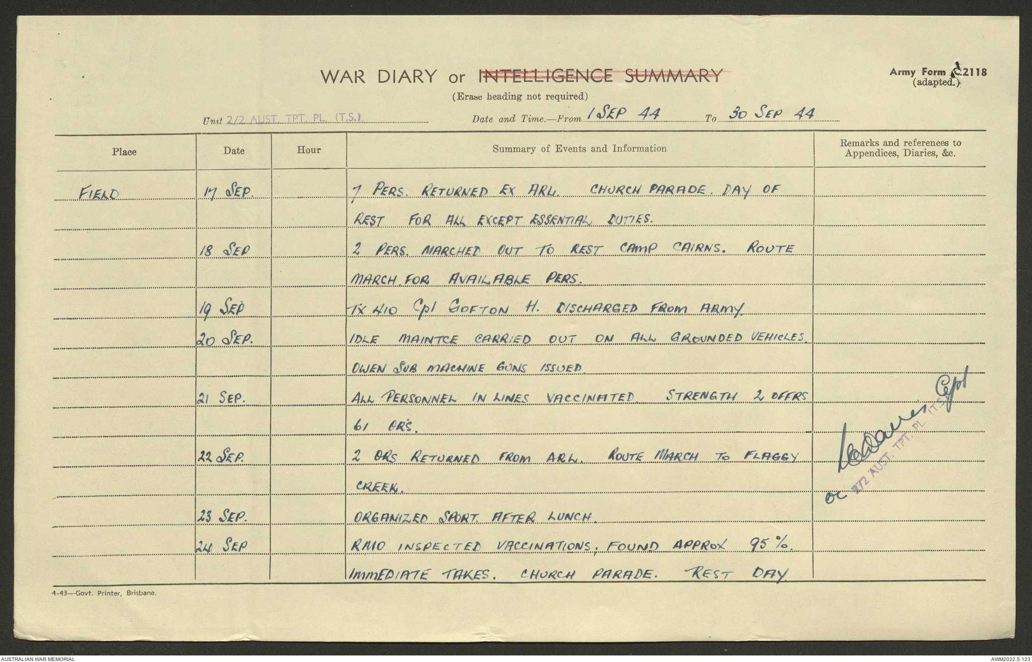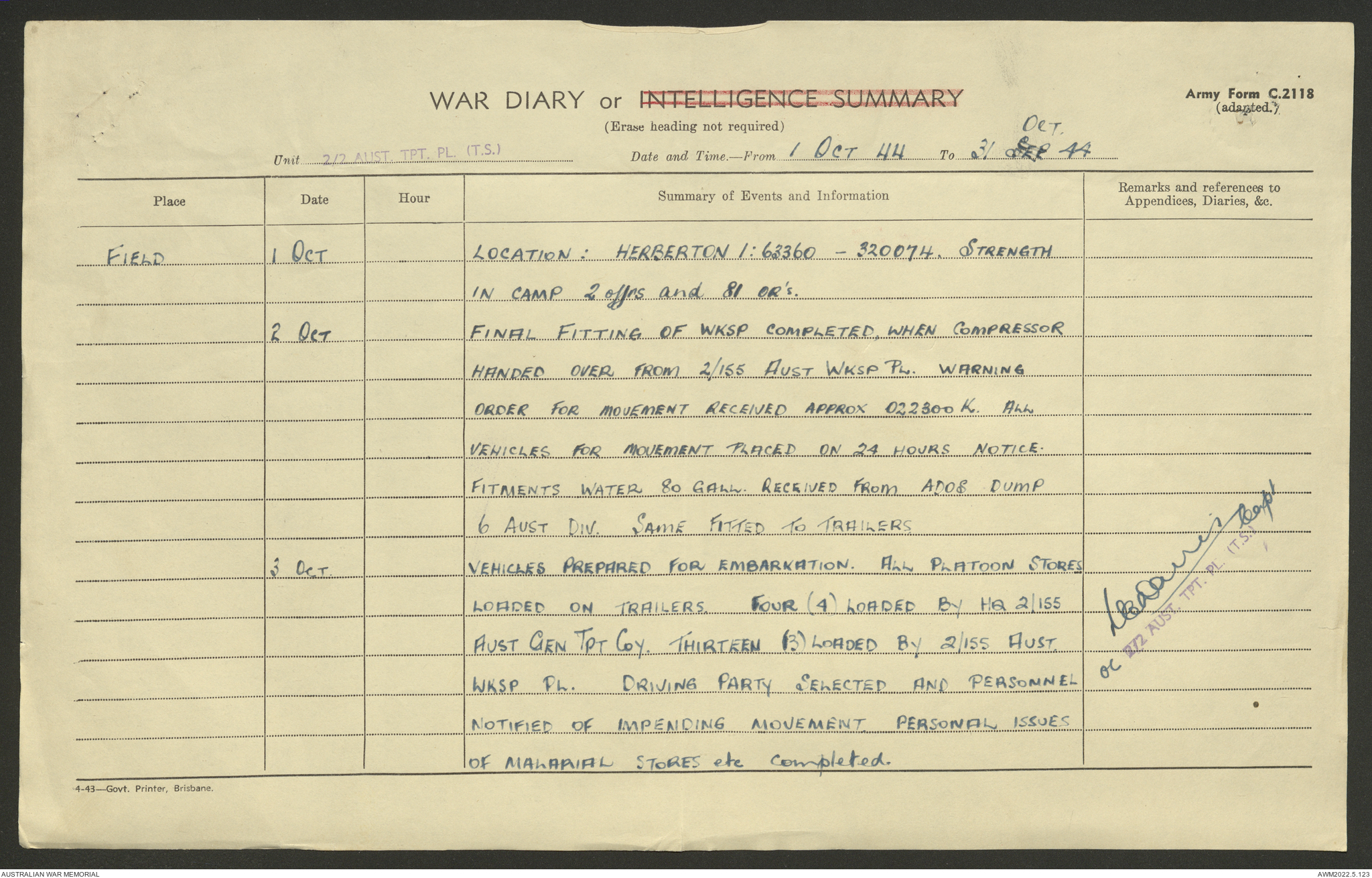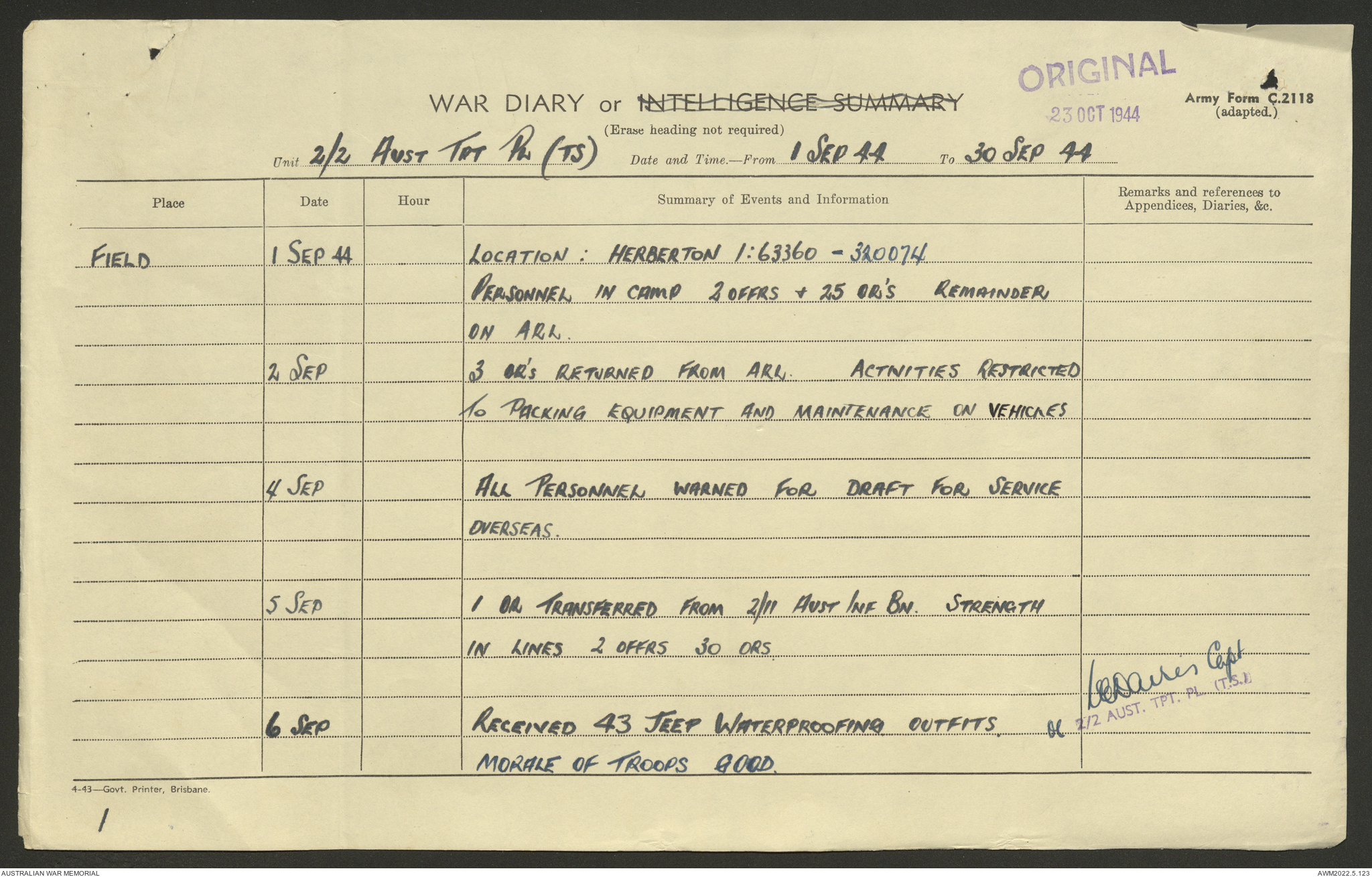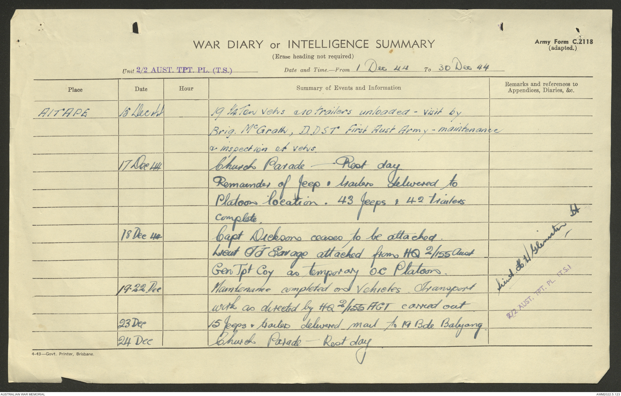 AWM52 10/4/2/1 - [Unit War Diaries, 1939-45 War] 2/2 Transport Platoon, September - December 1944