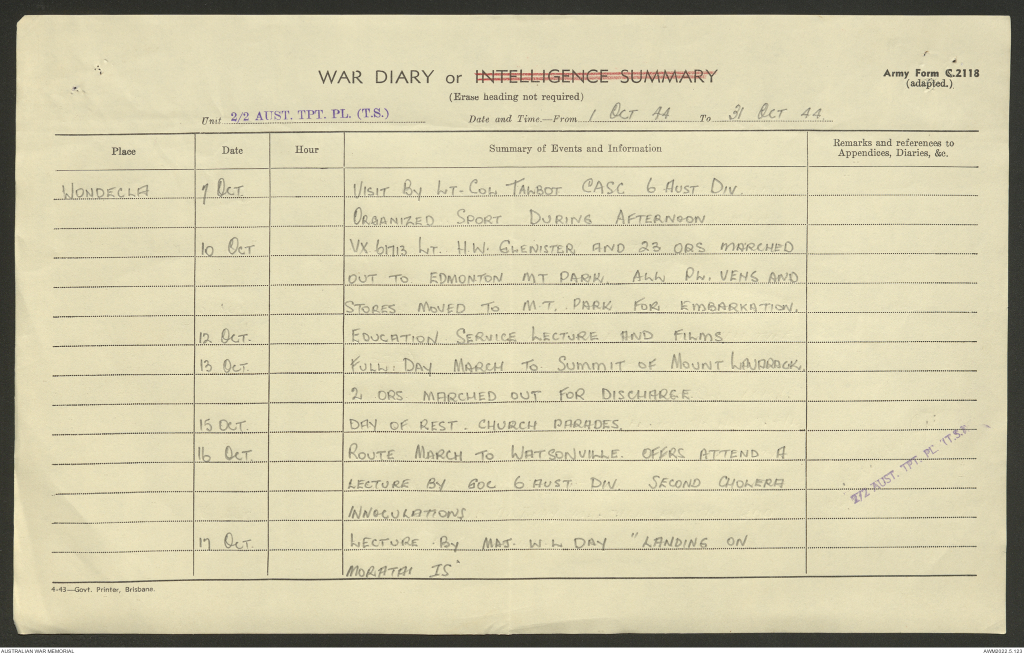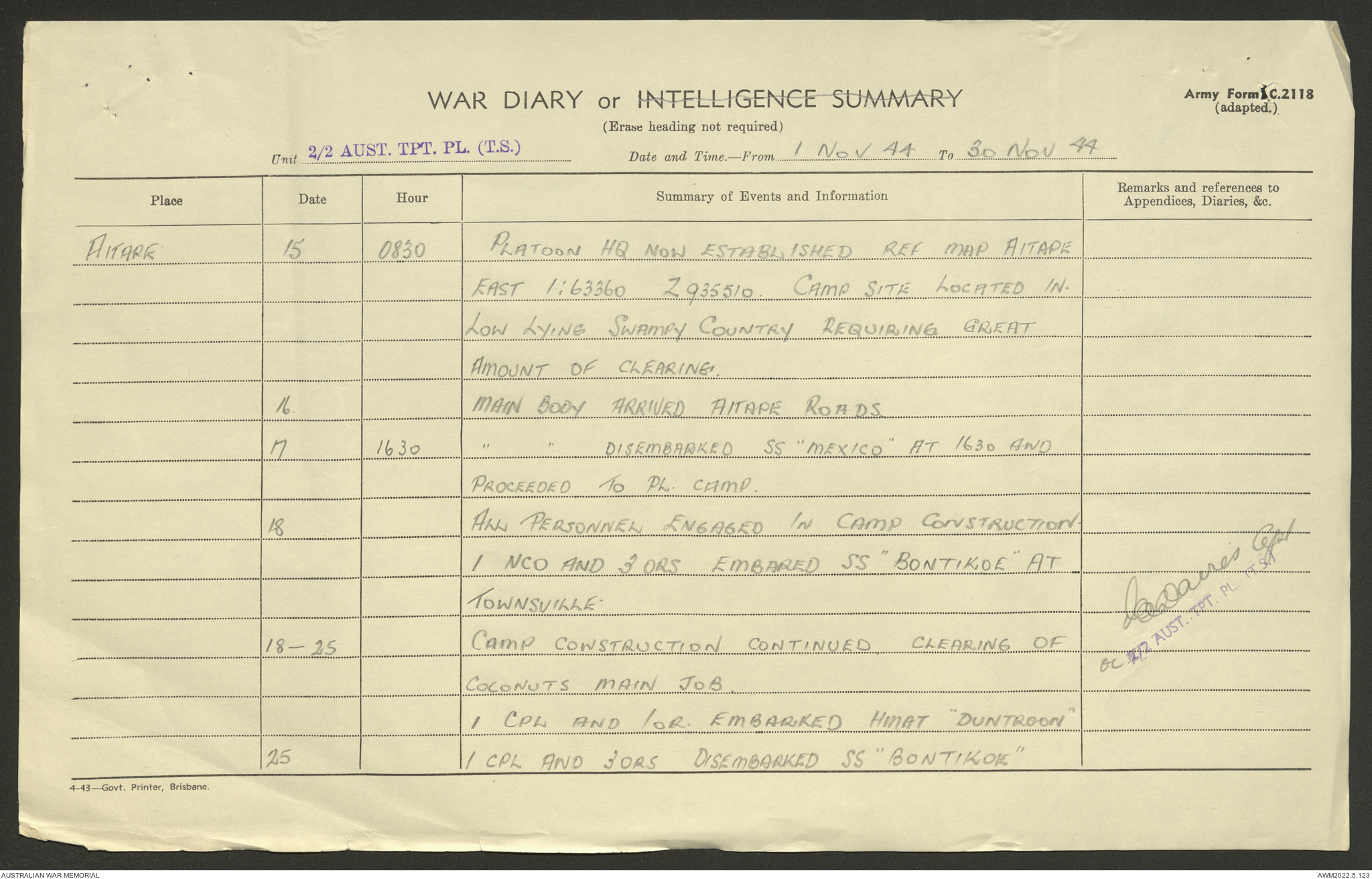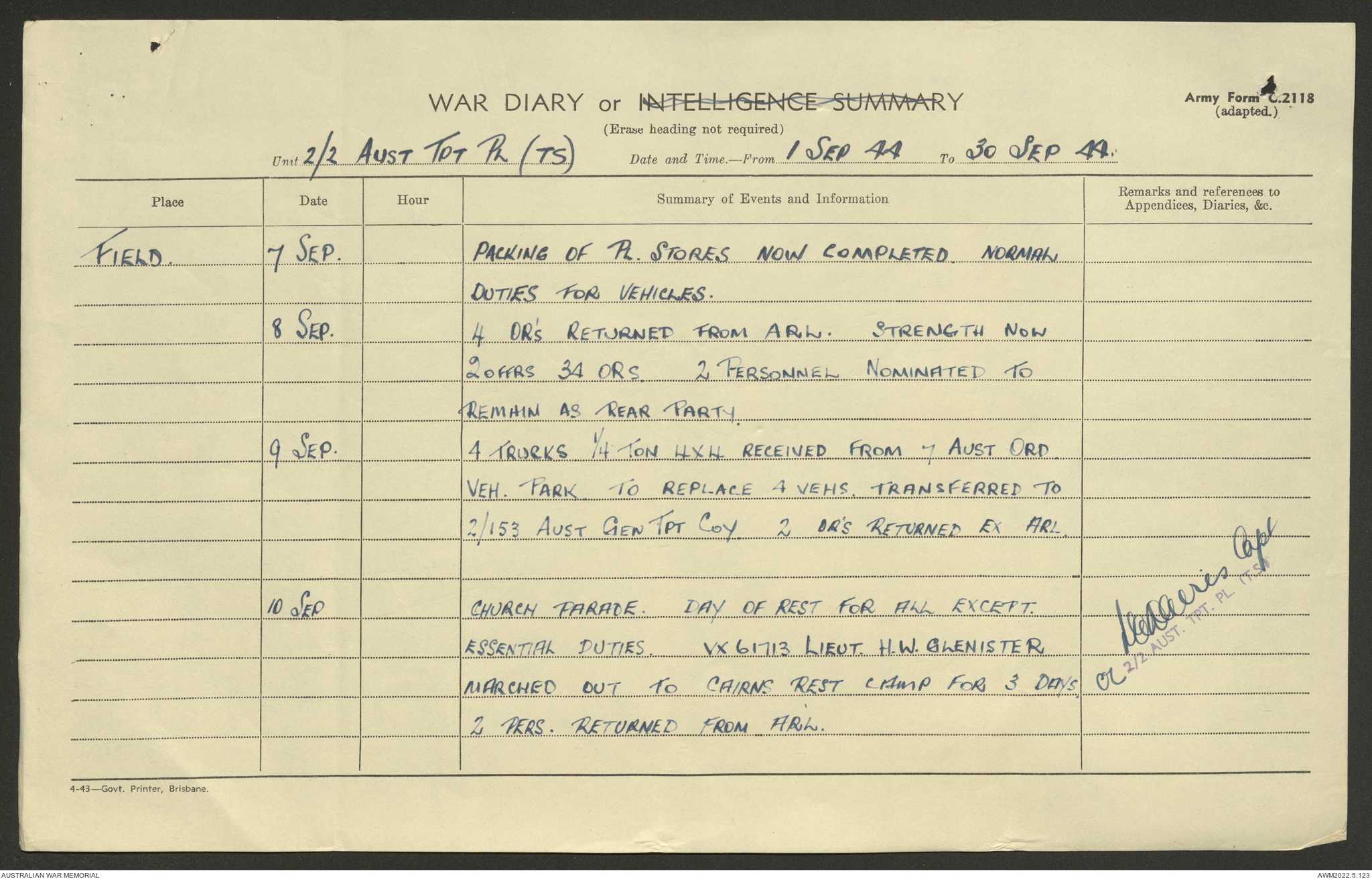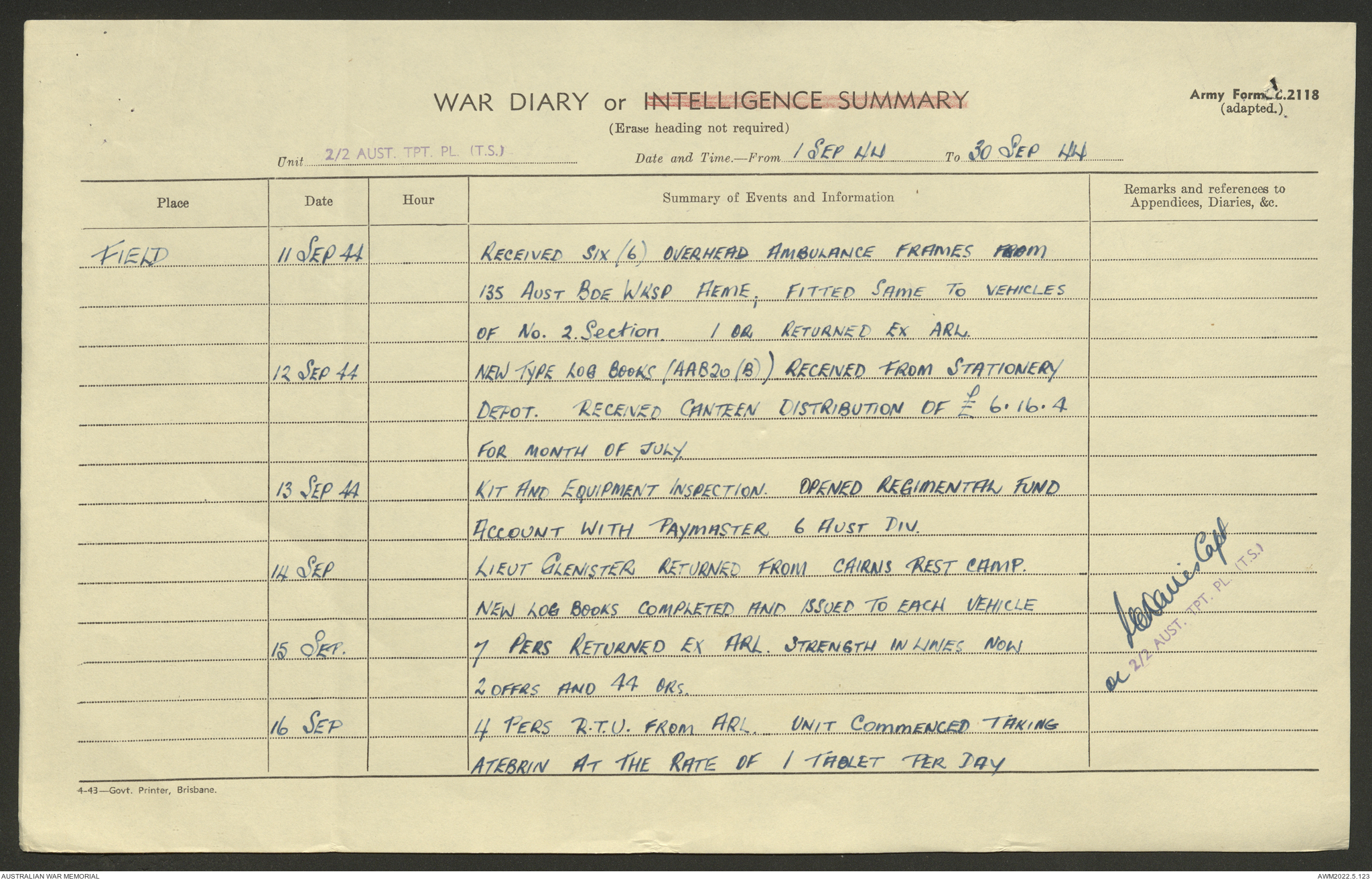 AWM52 10/4/2/1 - [Unit War Diaries, 1939-45 War] 2/2 Transport Platoon, September - December 1944