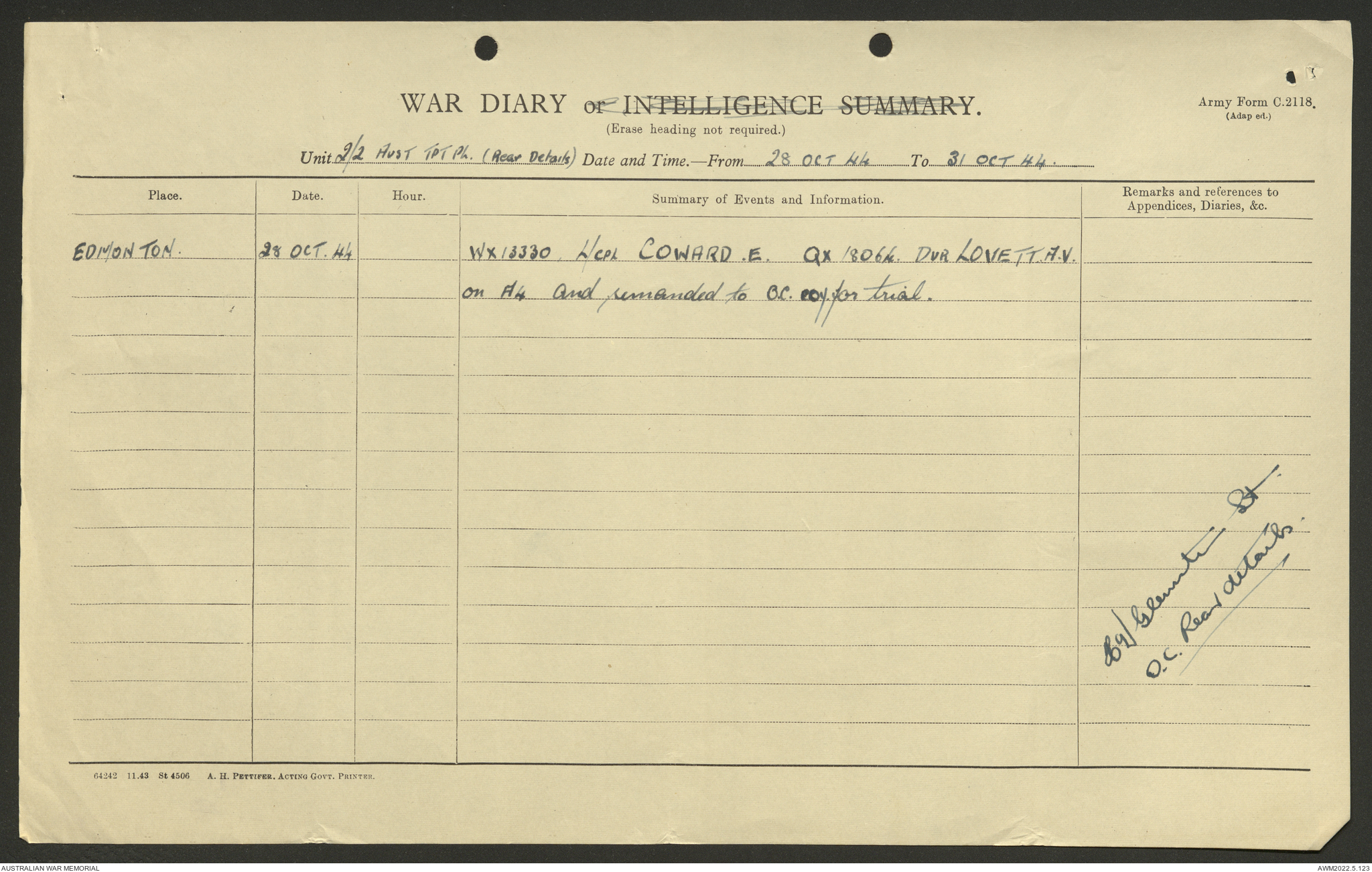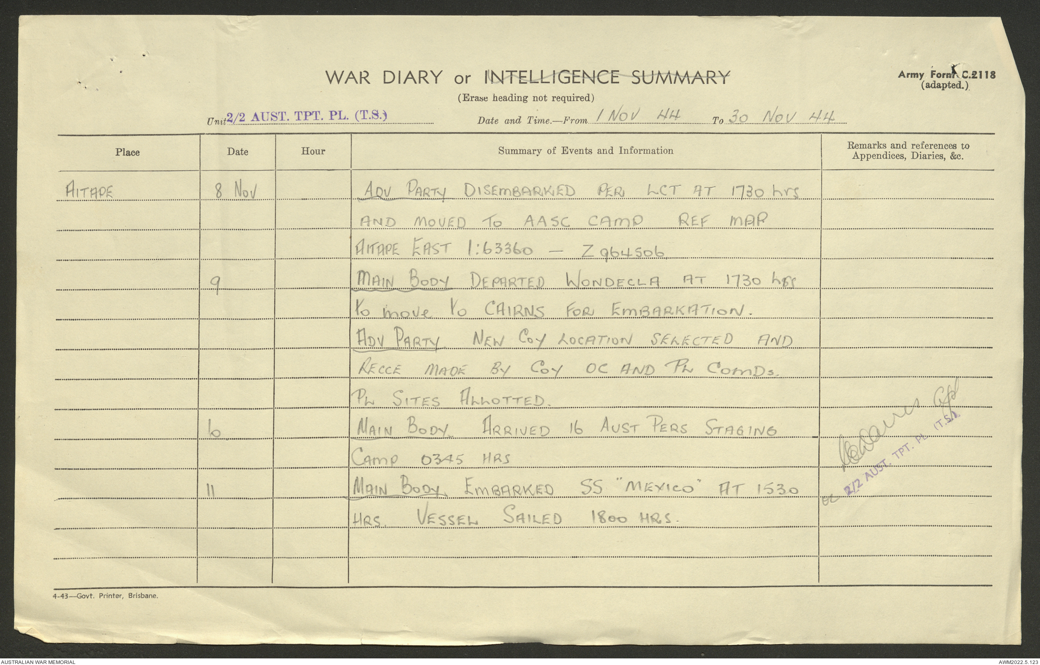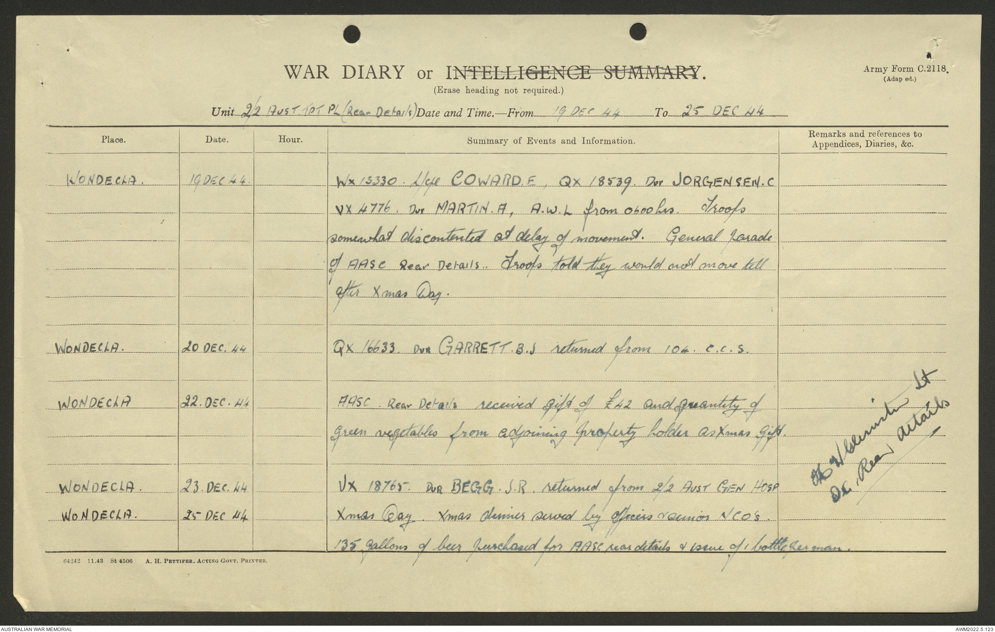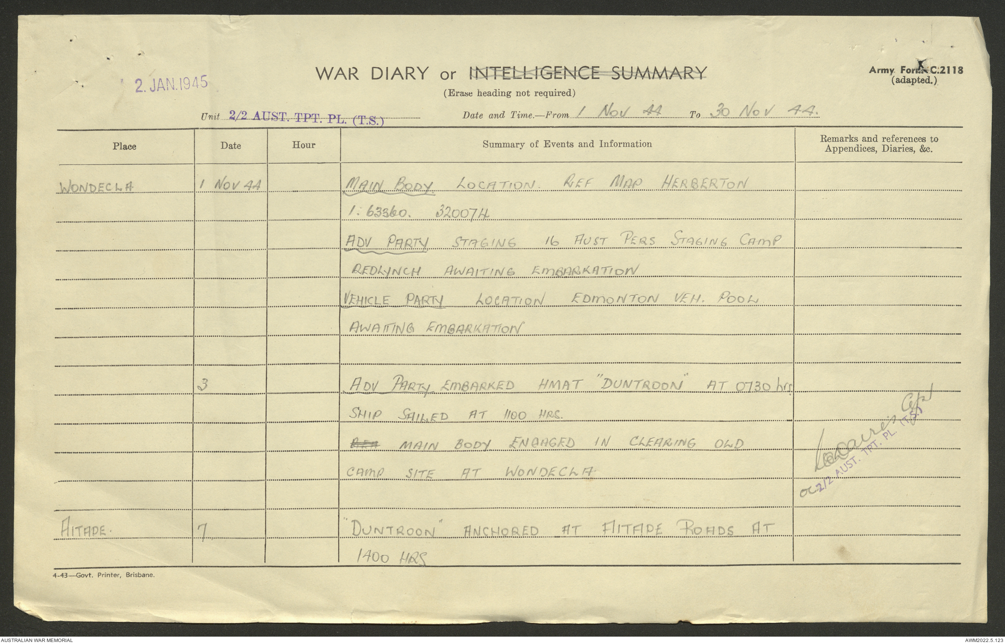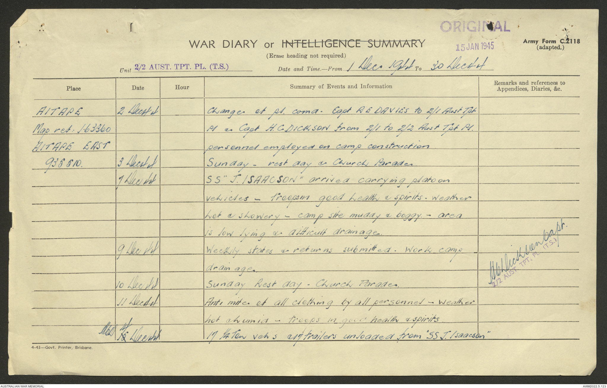AWM52 10/4/2/1 - [Unit War Diaries, 1939-45 War] 2/2 Transport Platoon, September - December 1944