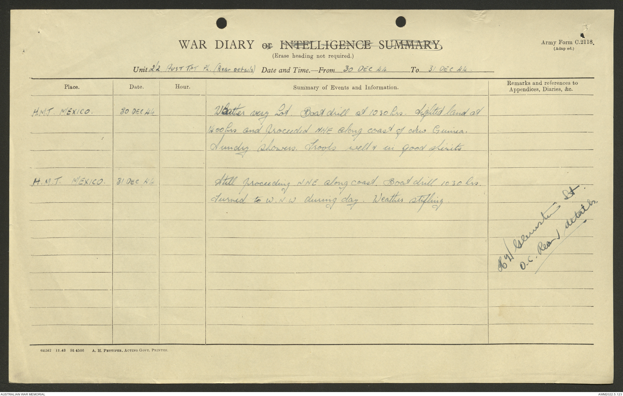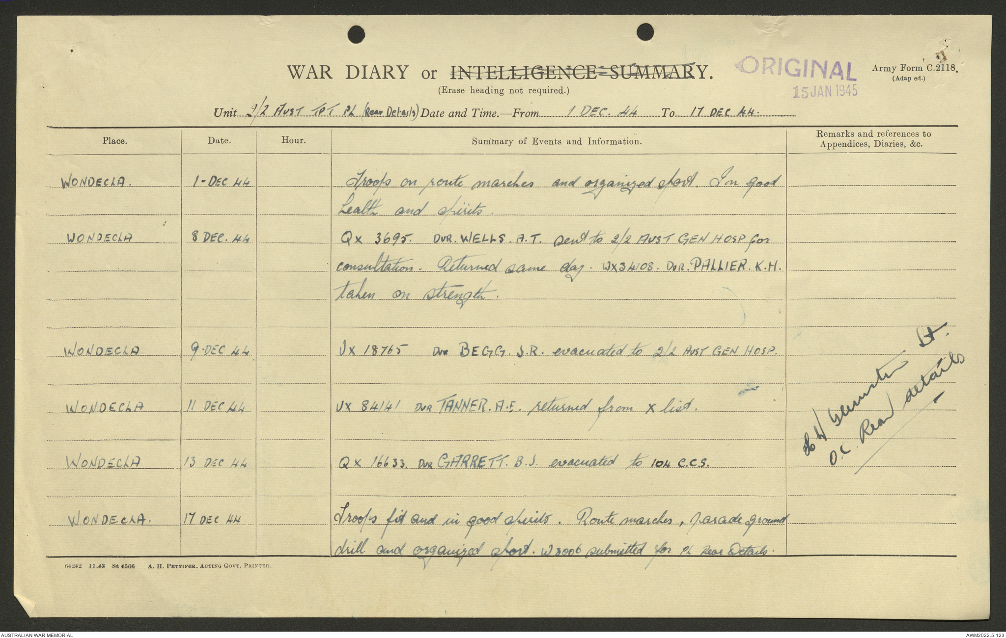 2nd AIF (Australian Imperial Force) and CMF (Citizen Military Forces) unit war diaries, 1939-45 War