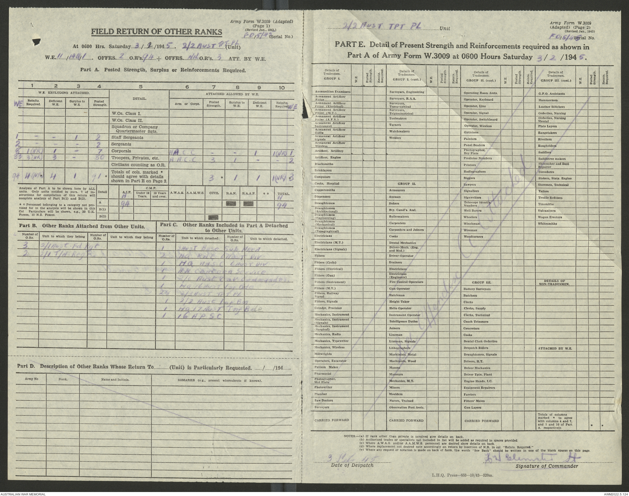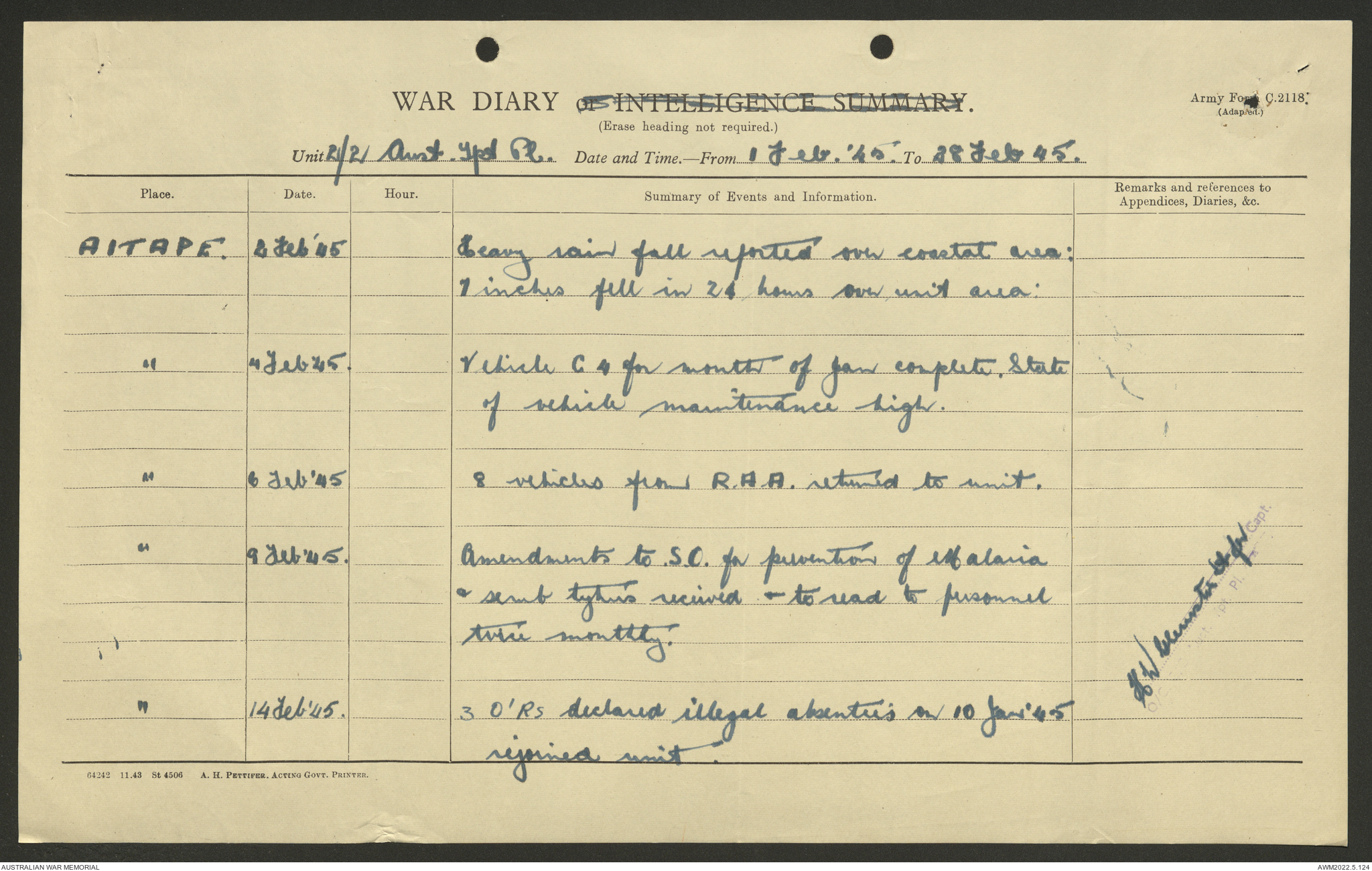 2nd AIF (Australian Imperial Force) and CMF (Citizen Military Forces) unit war diaries, 1939-45 War