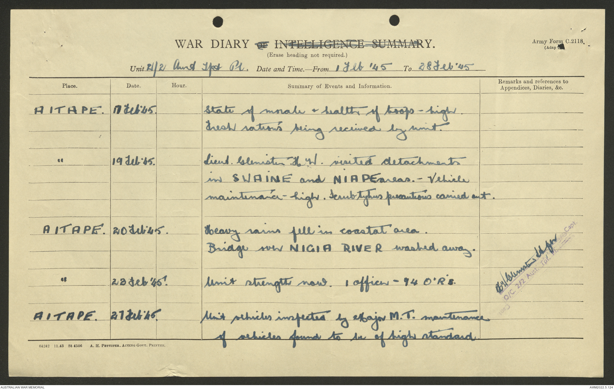 AWM52 10/4/2/2 - [Unit War Diaries, 1939-45 War] 2/2 Transport Platoon, January - February 1945