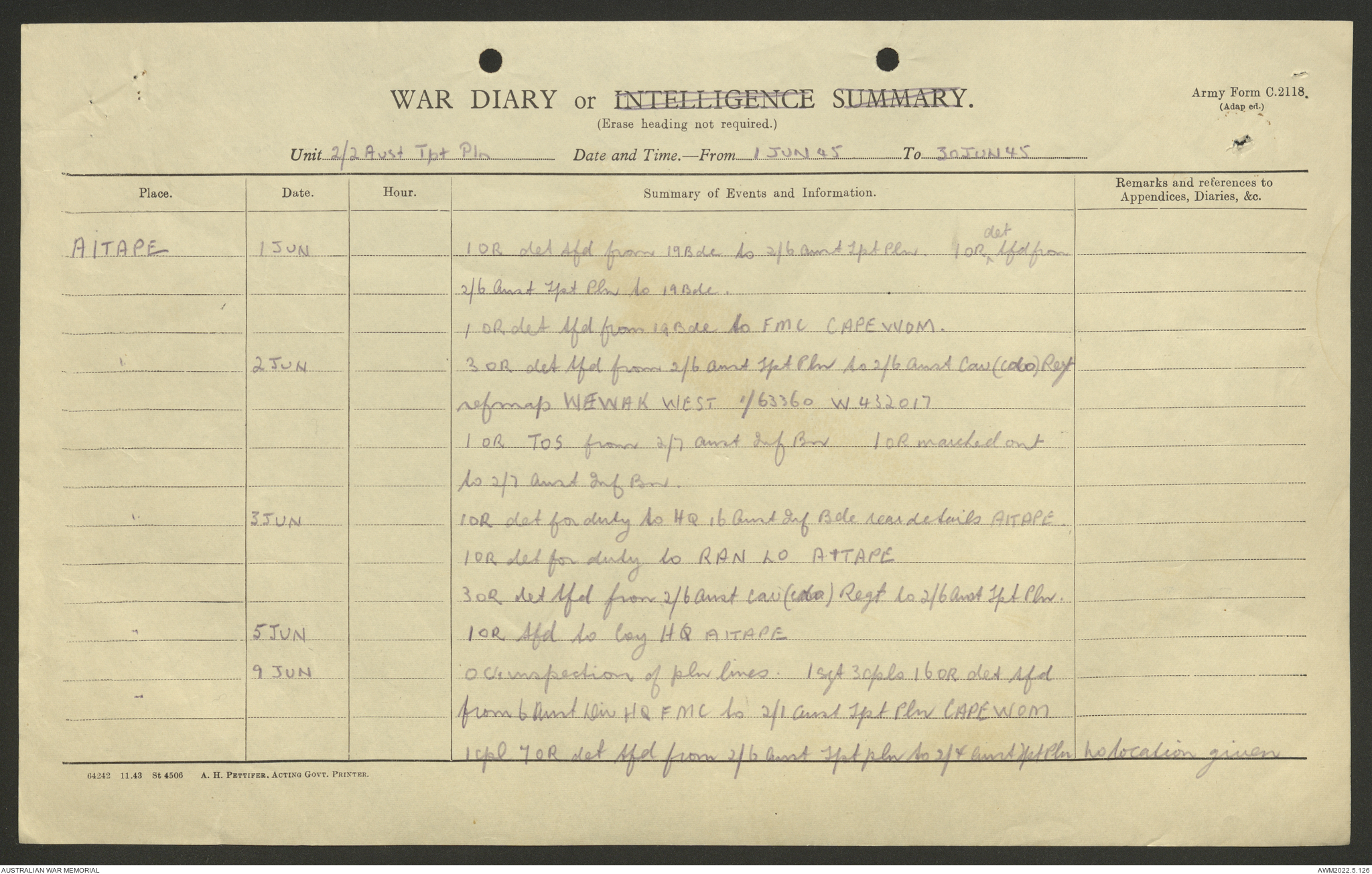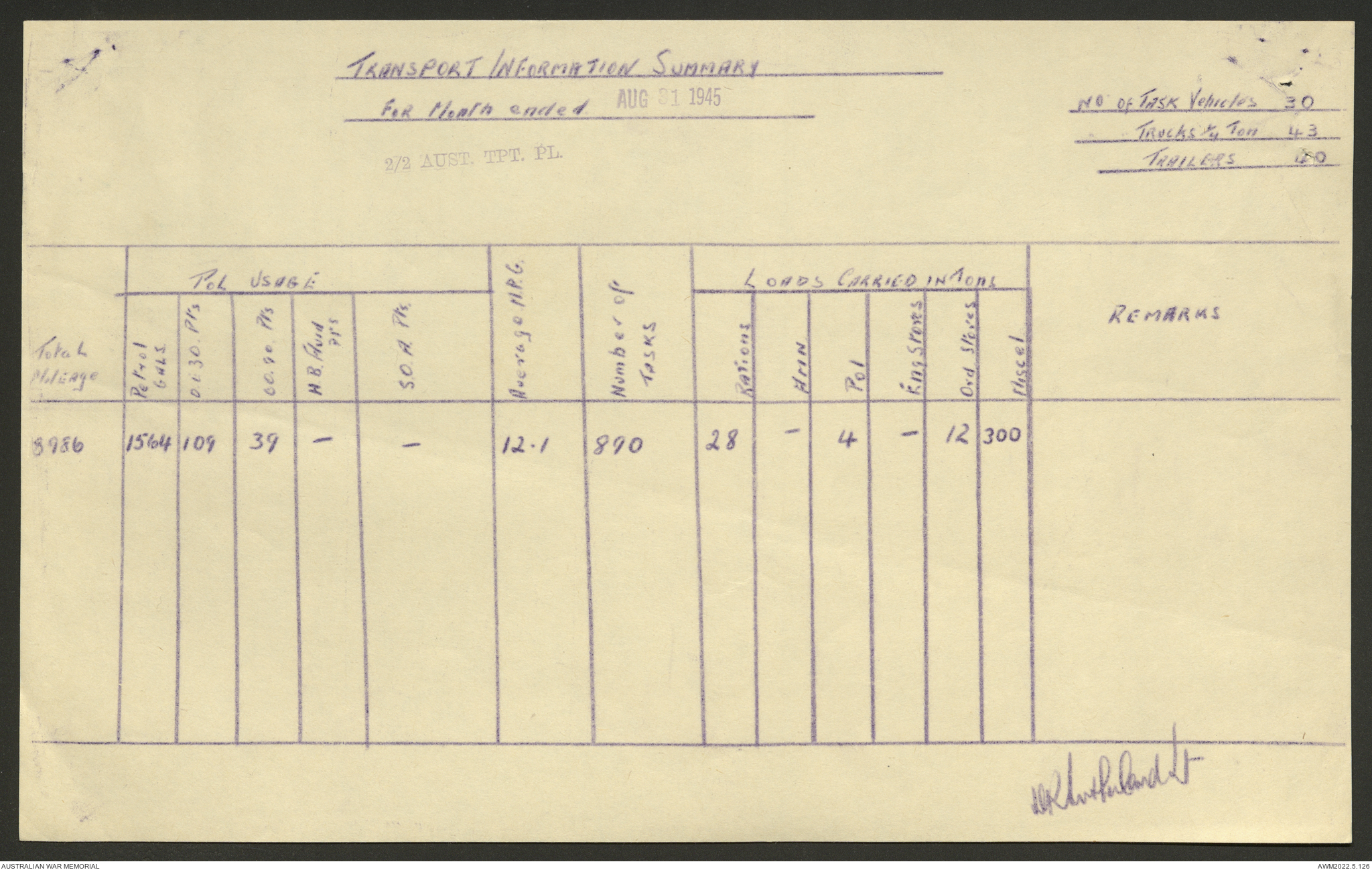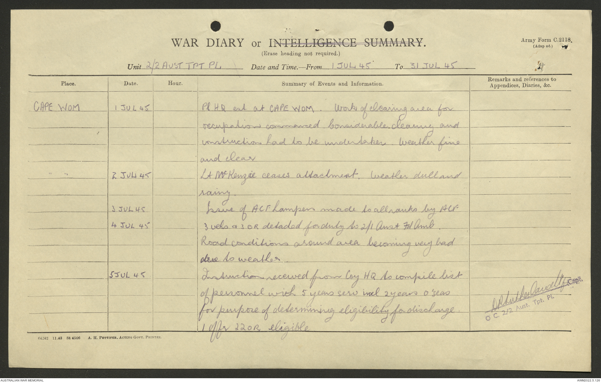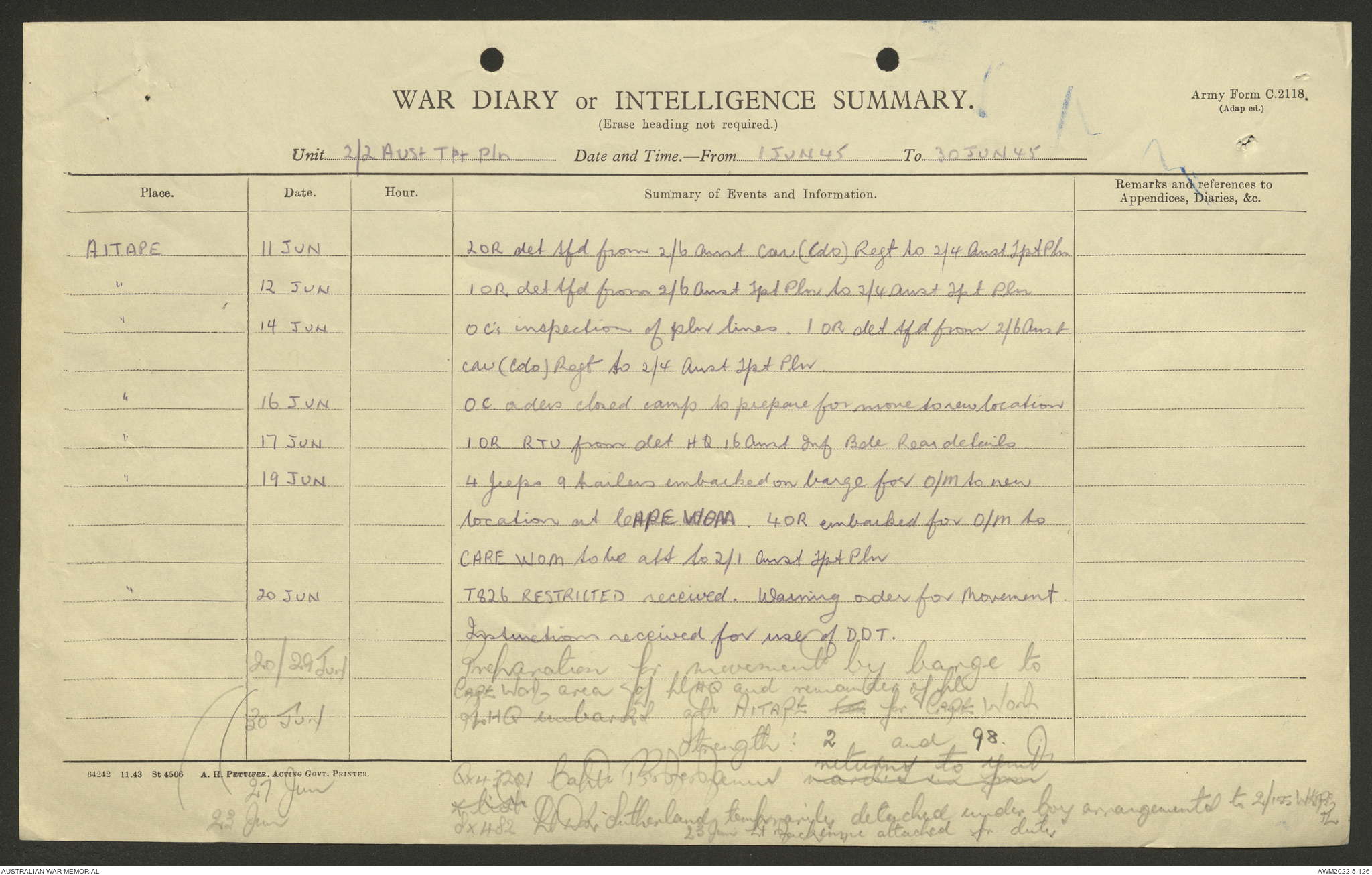 AWM52 10/4/2/4 - [Unit War Diaries, 1939-45 War] 2/2 Transport Platoon, June - August 1945