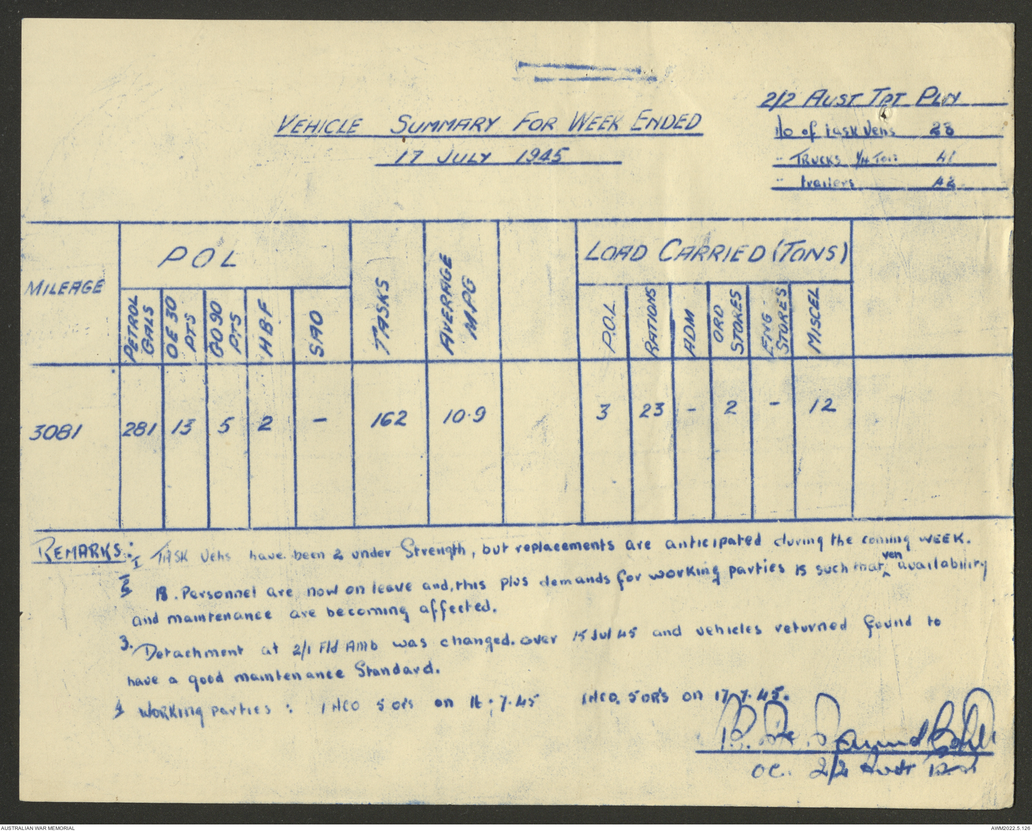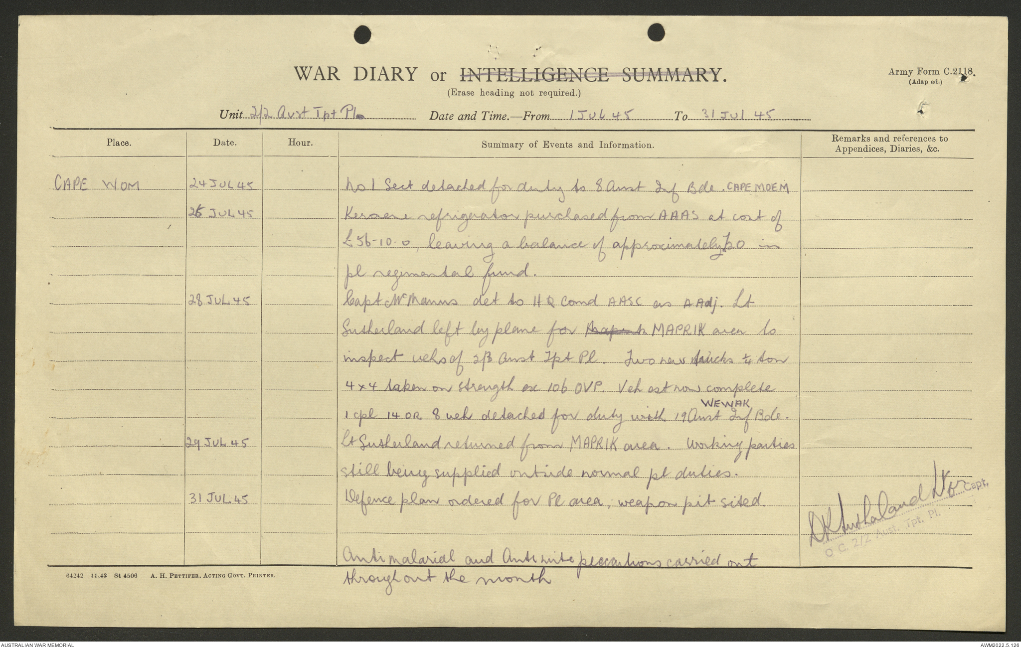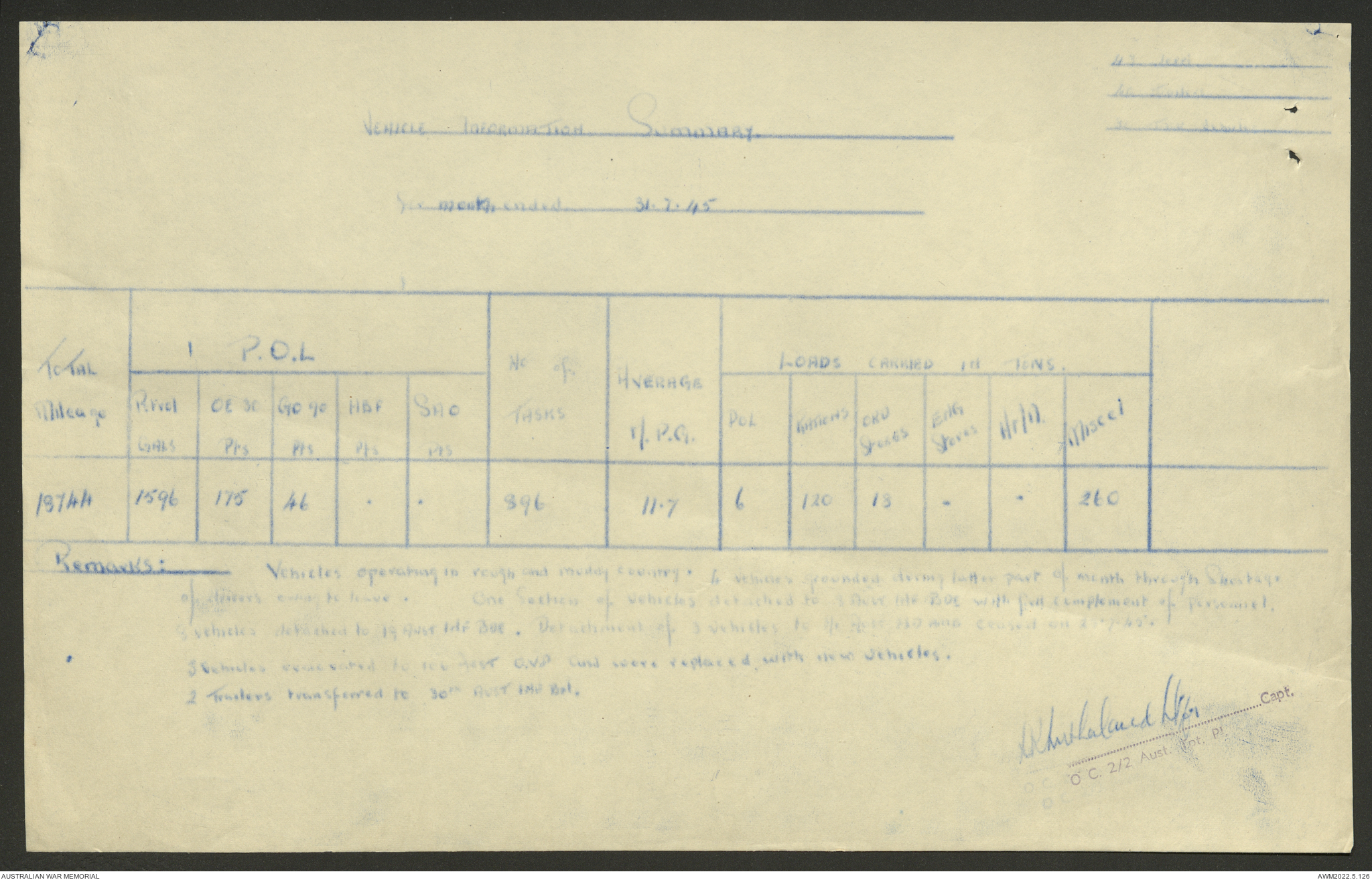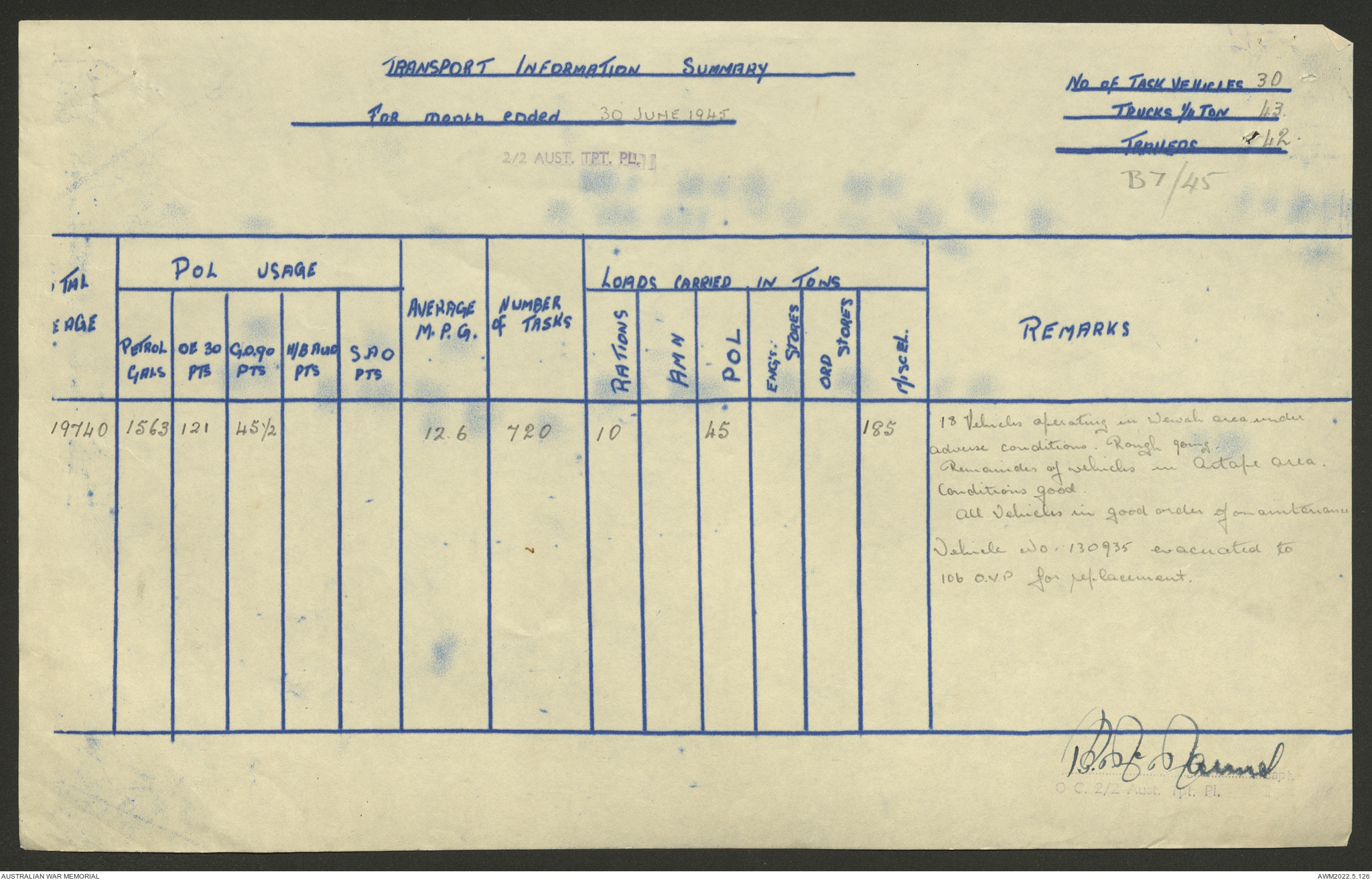 AWM52 10/4/2/4 - [Unit War Diaries, 1939-45 War] 2/2 Transport Platoon, June - August 1945