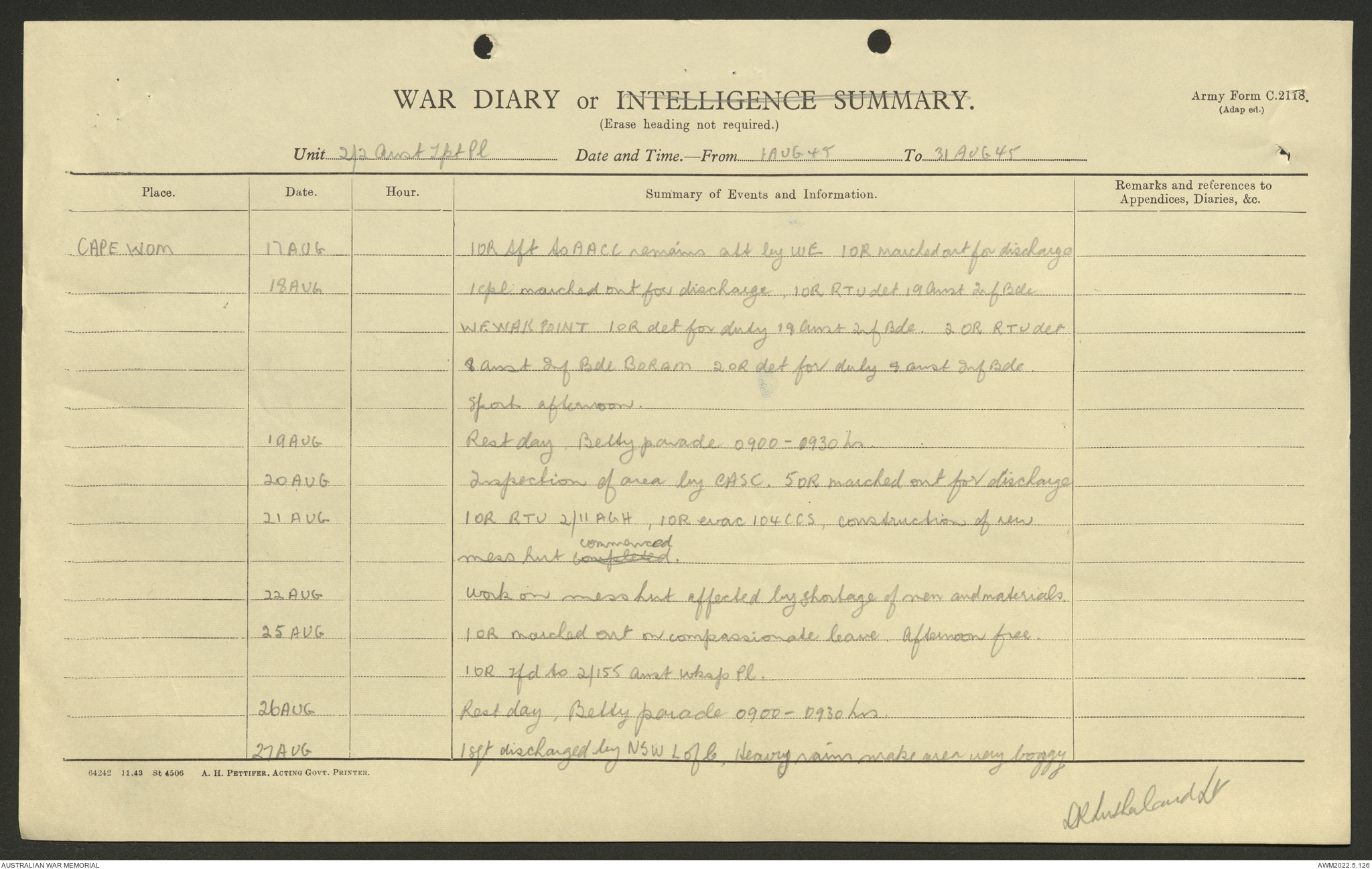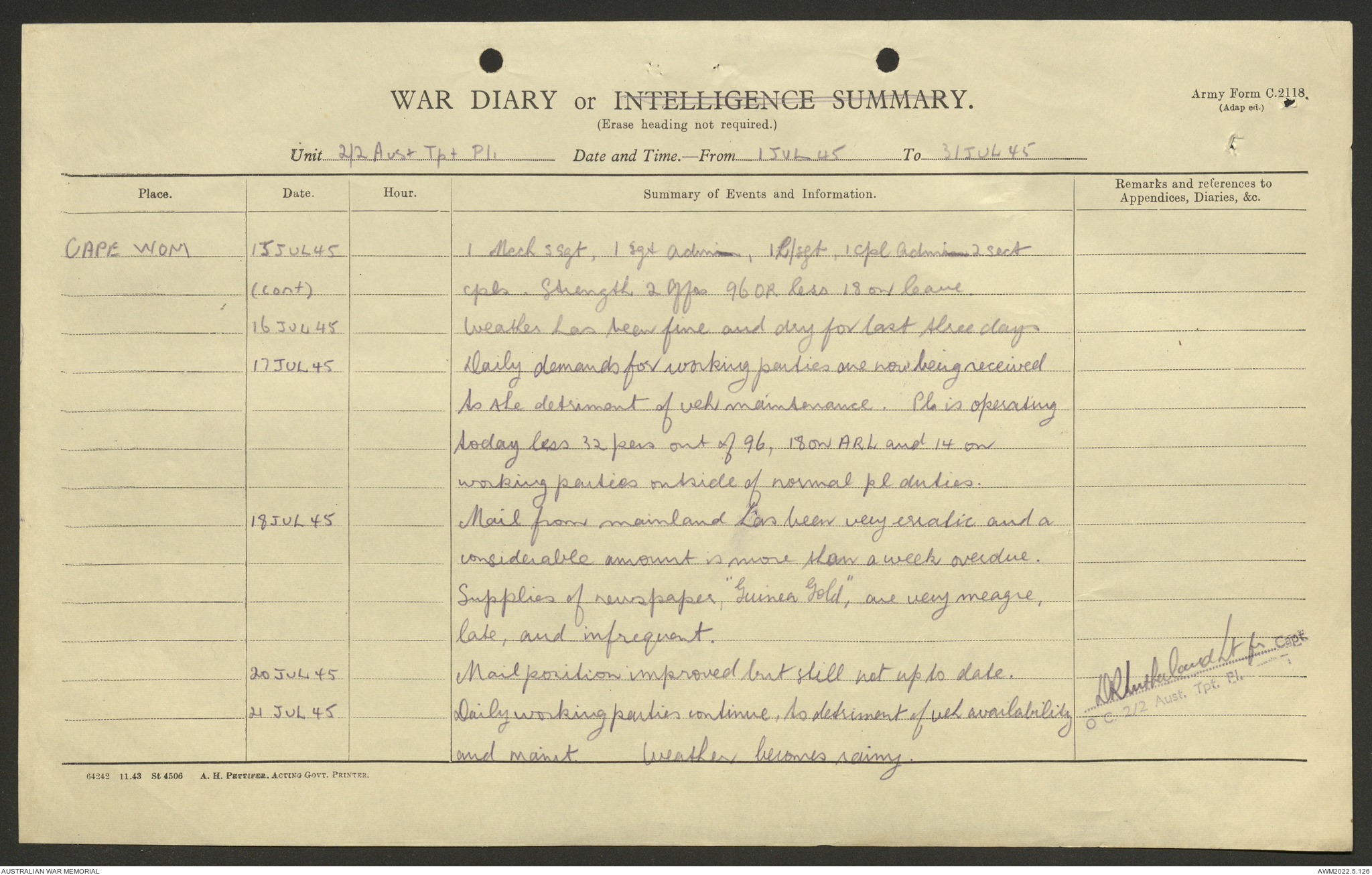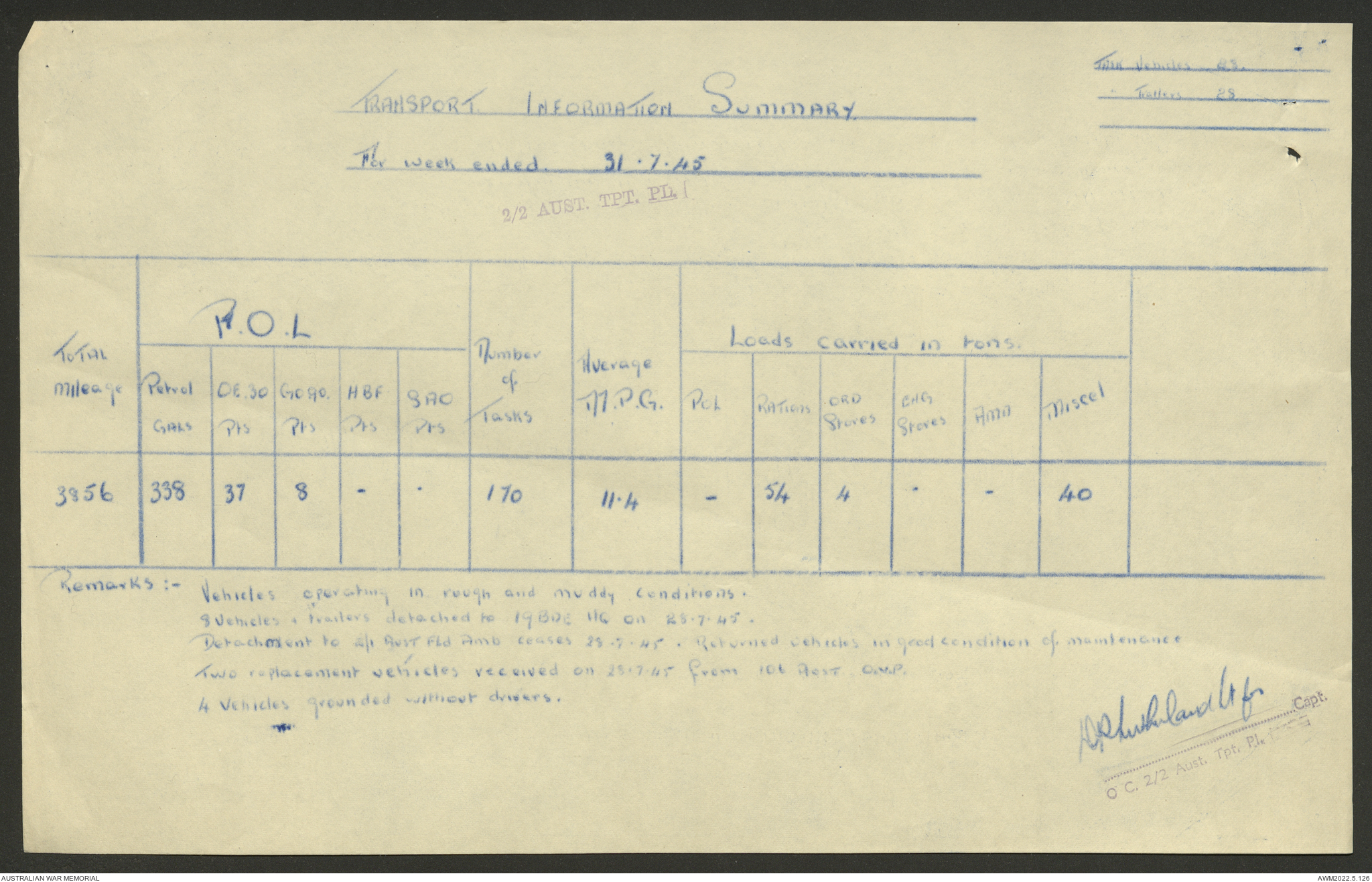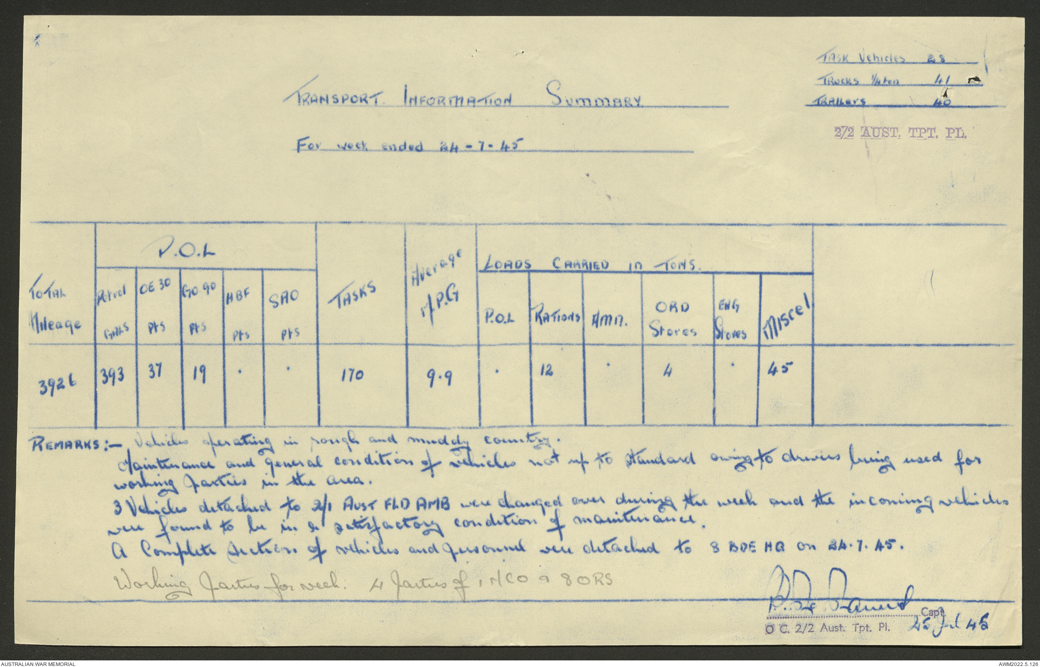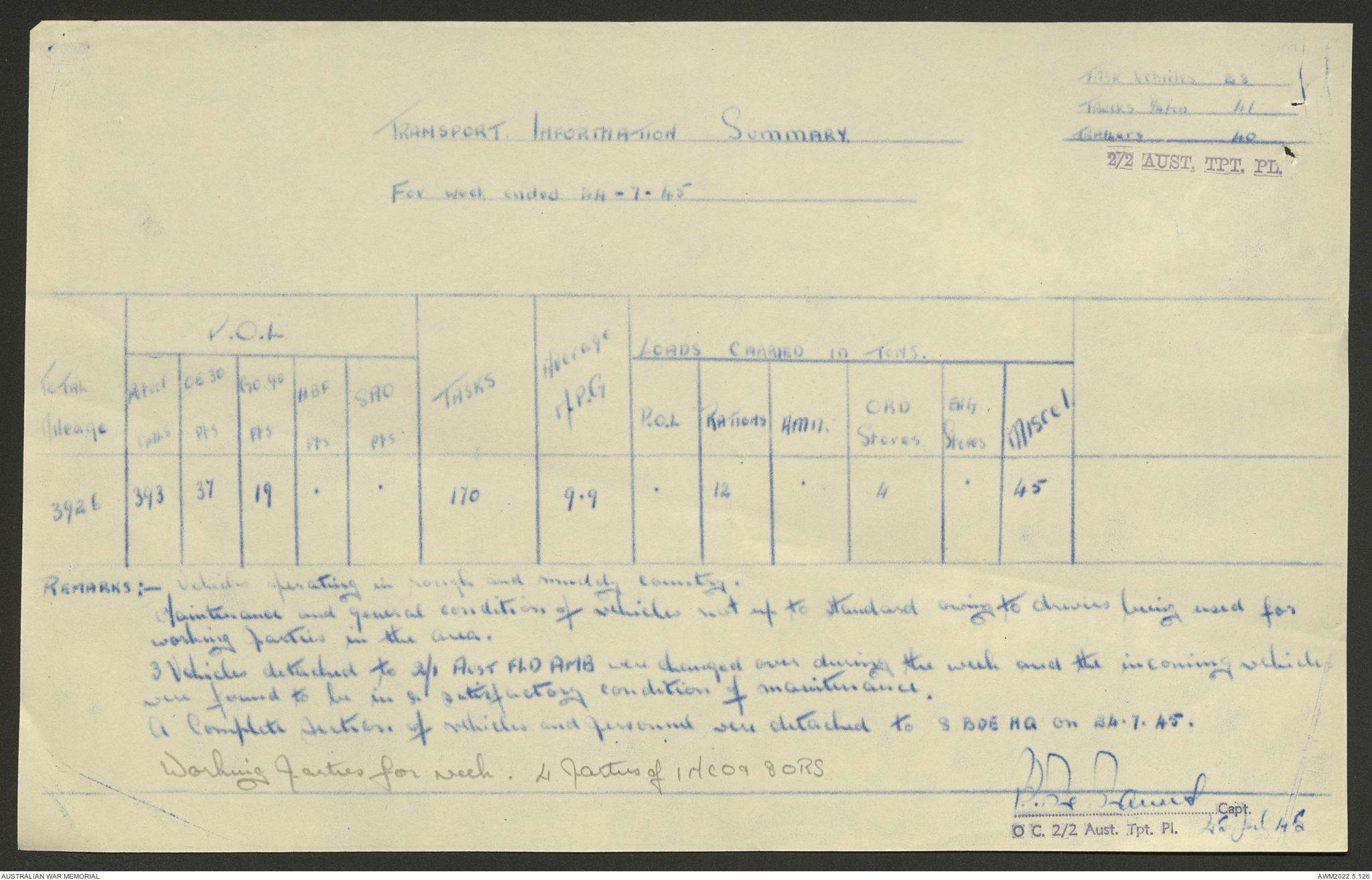 AWM52 10/4/2/4 - [Unit War Diaries, 1939-45 War] 2/2 Transport Platoon, June - August 1945