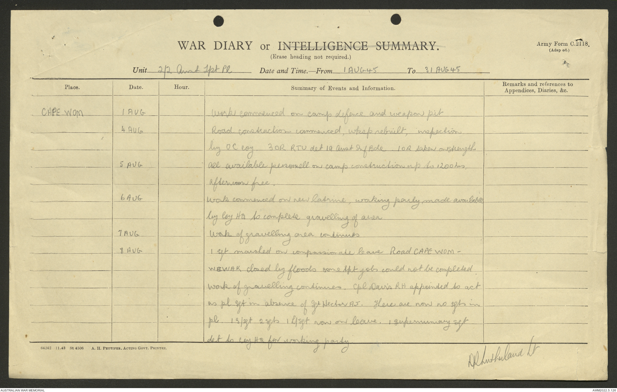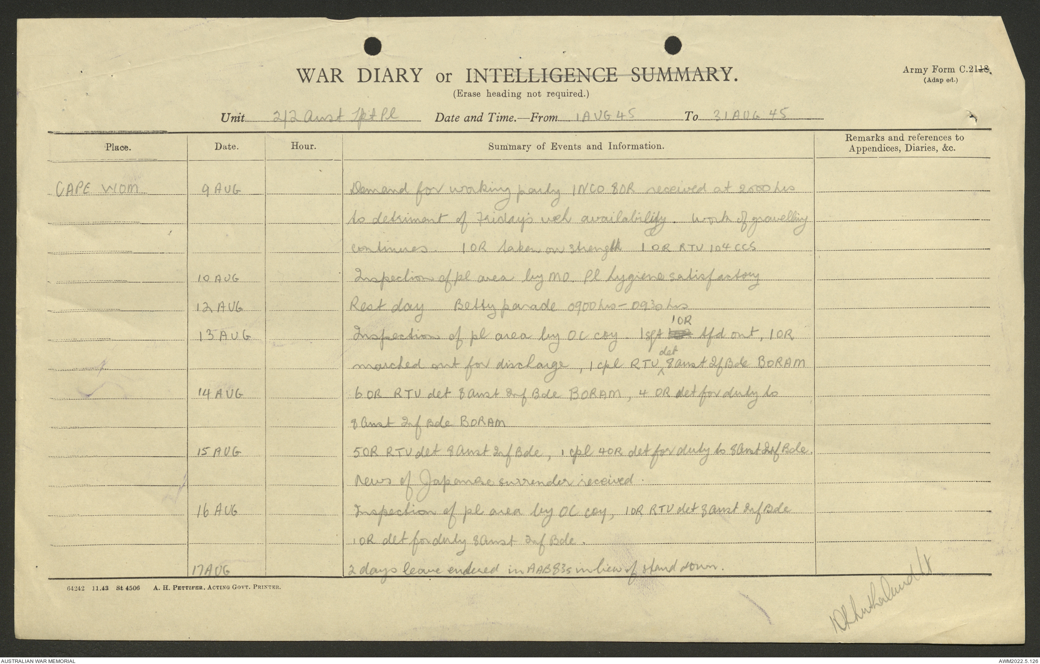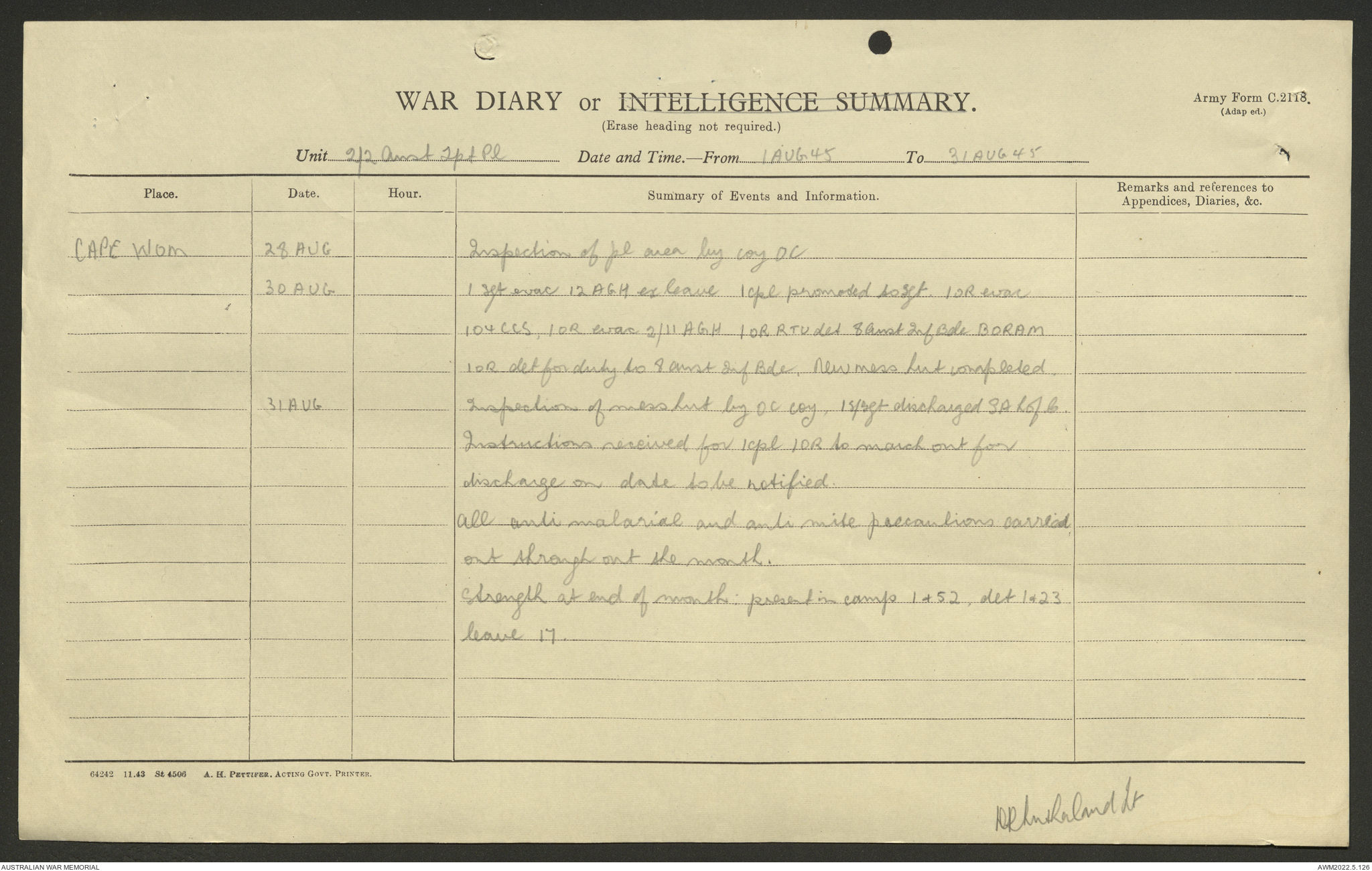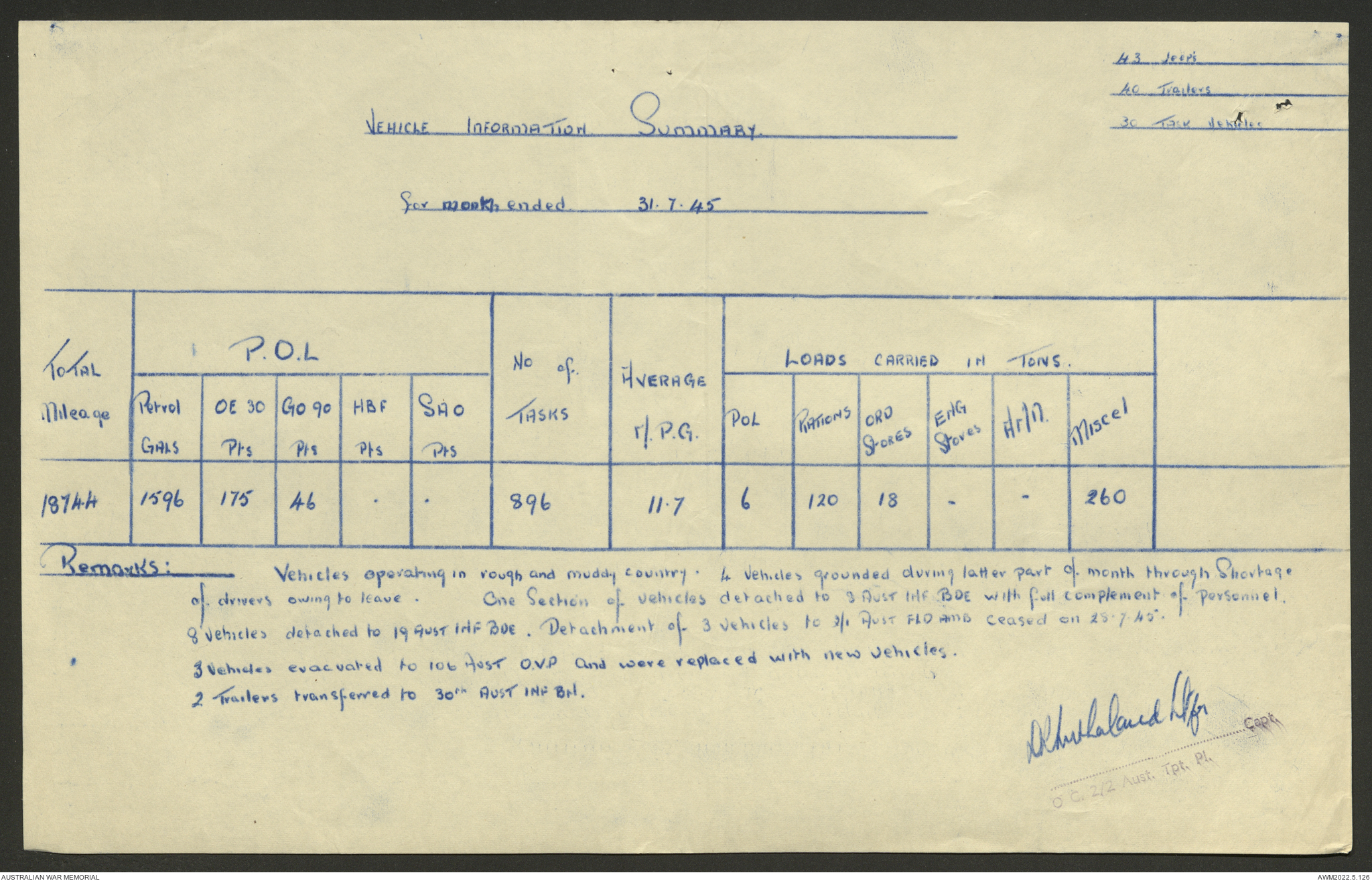AWM52 10/4/2/4 - [Unit War Diaries, 1939-45 War] 2/2 Transport Platoon, June - August 1945