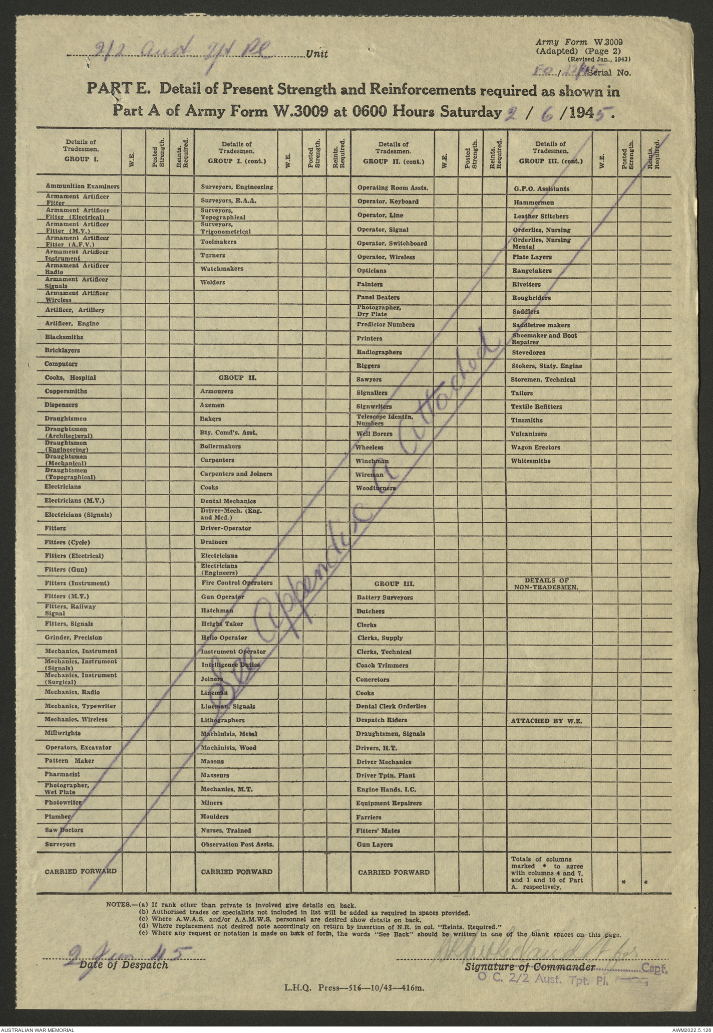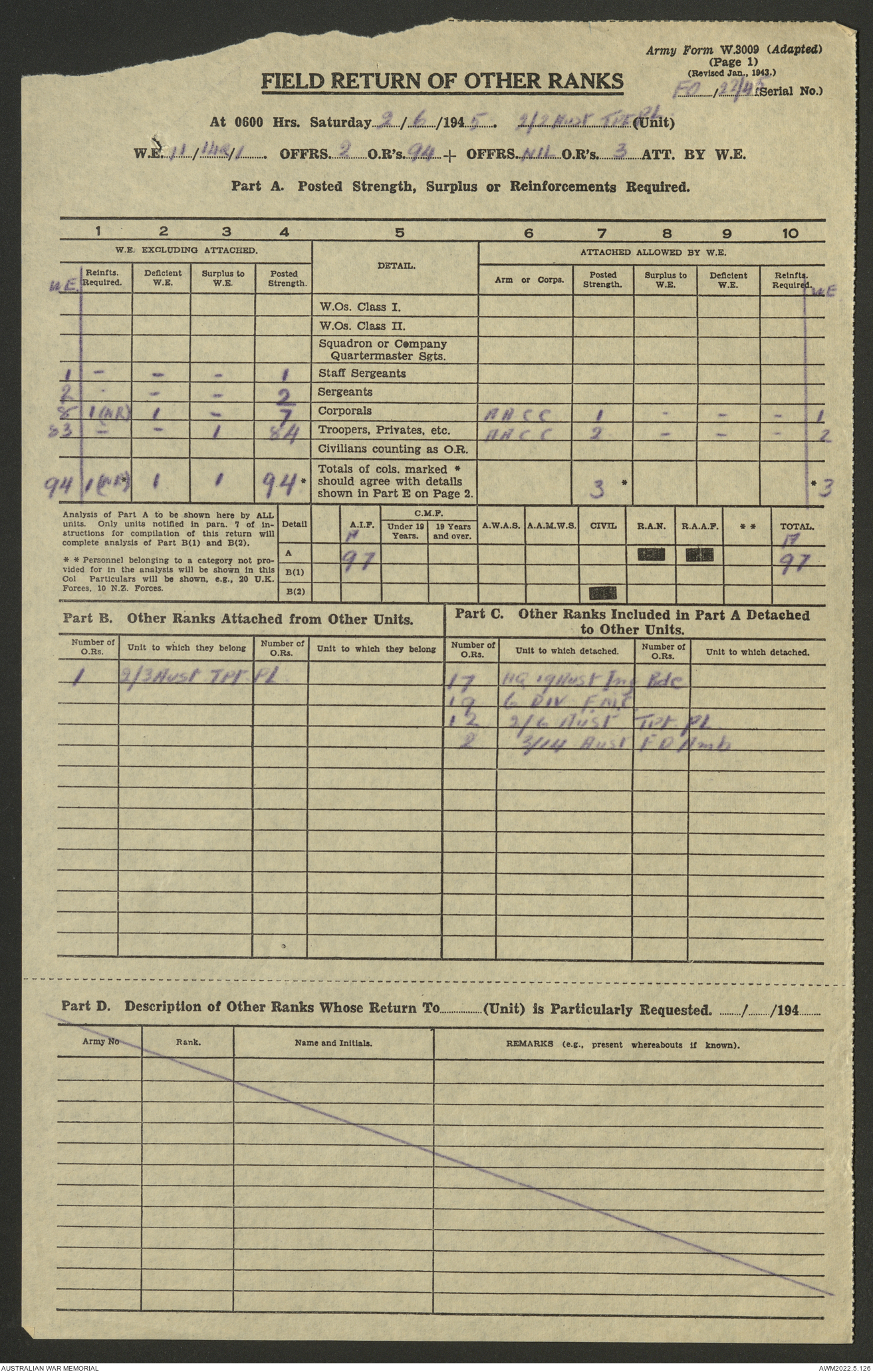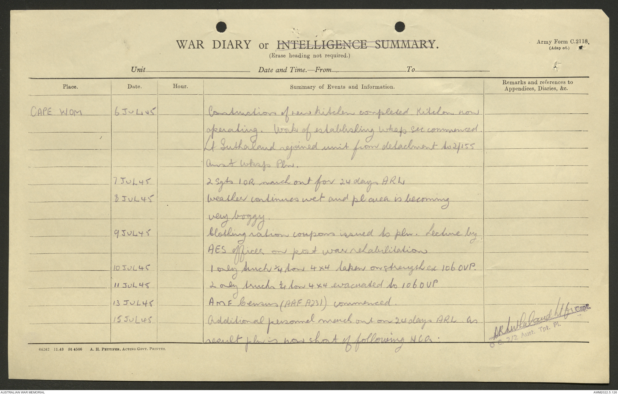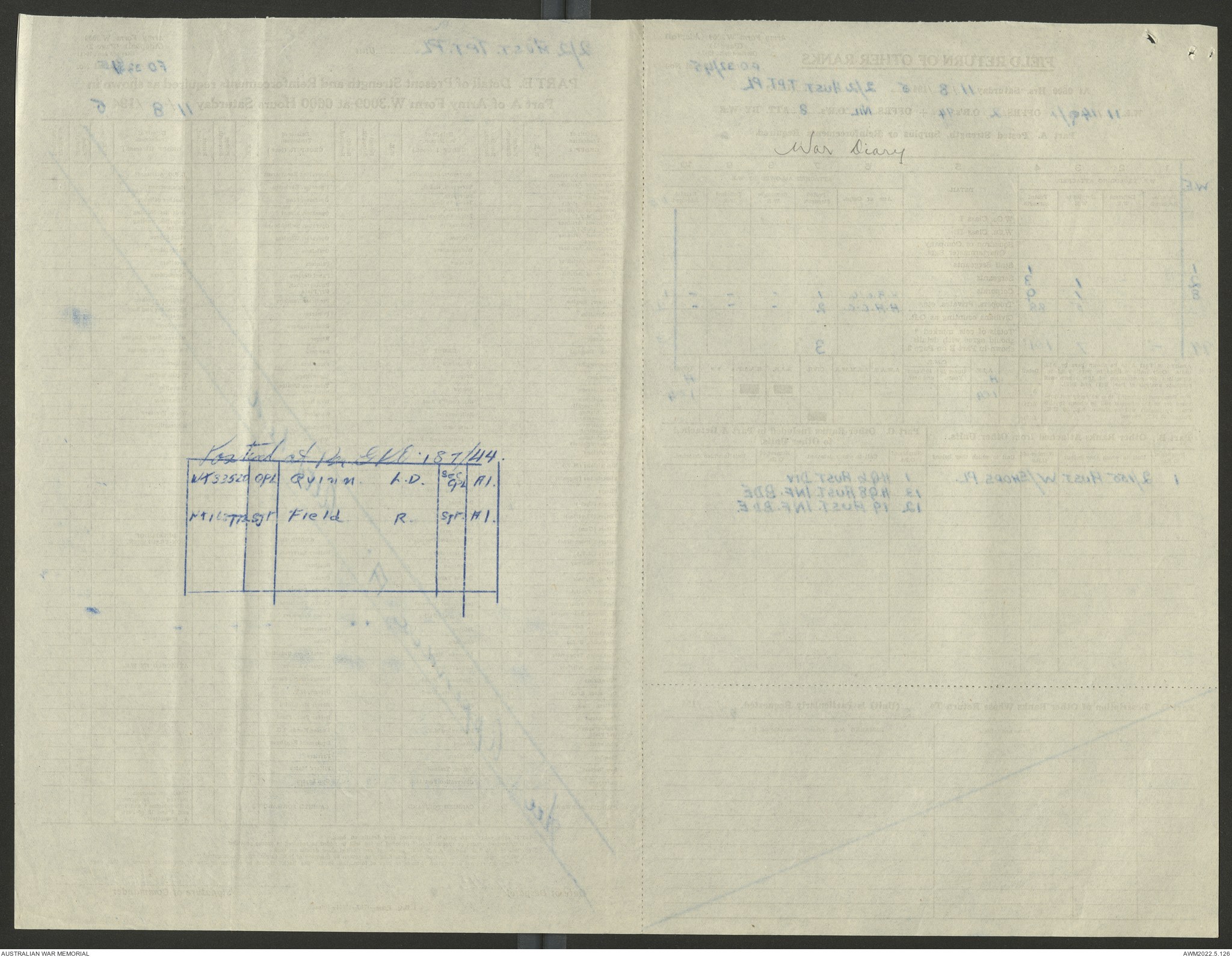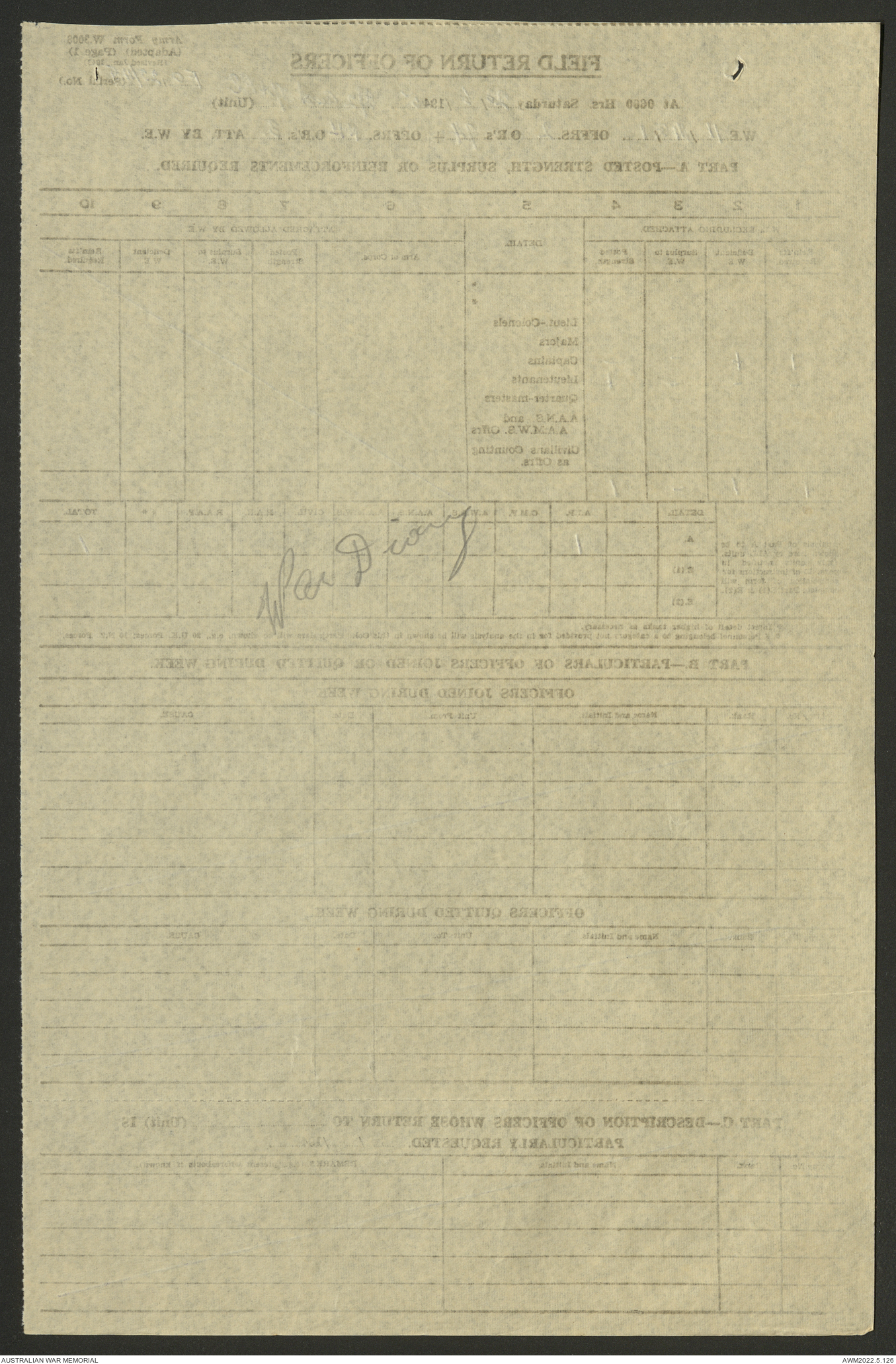 2nd AIF (Australian Imperial Force) and CMF (Citizen Military Forces) unit war diaries, 1939-45 War