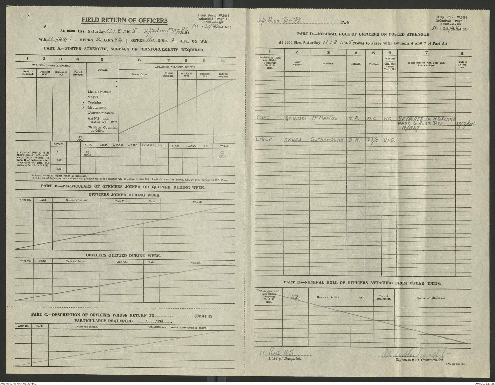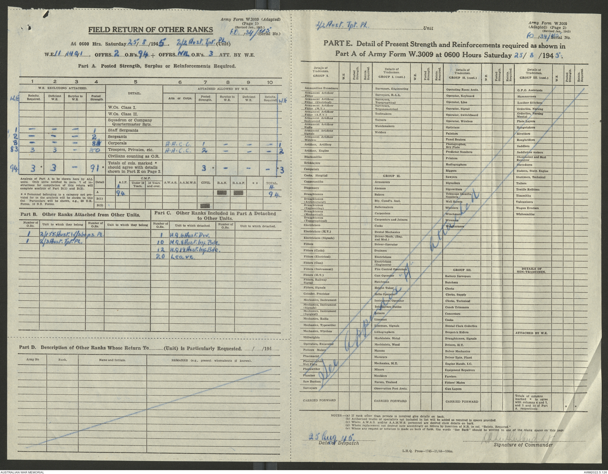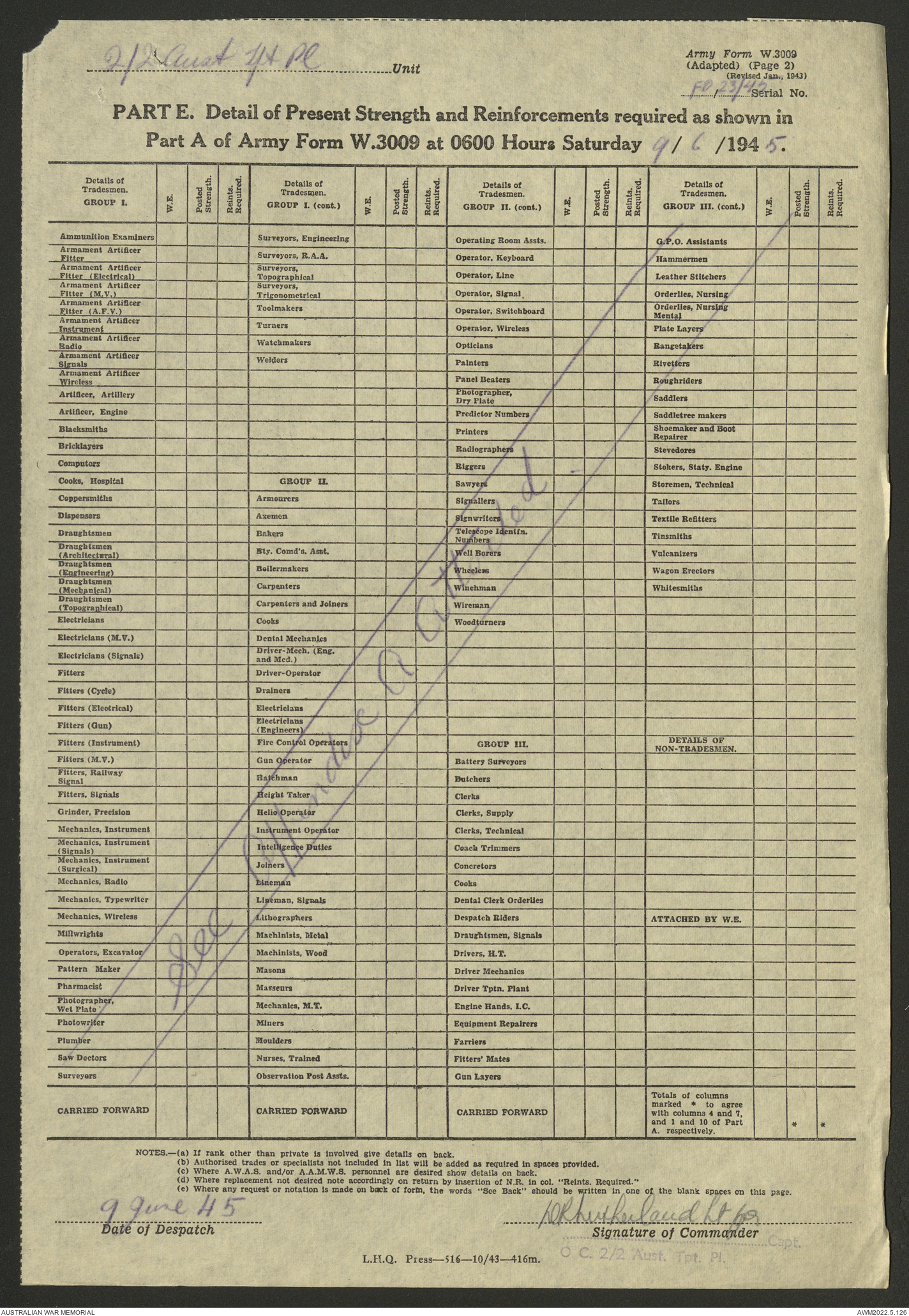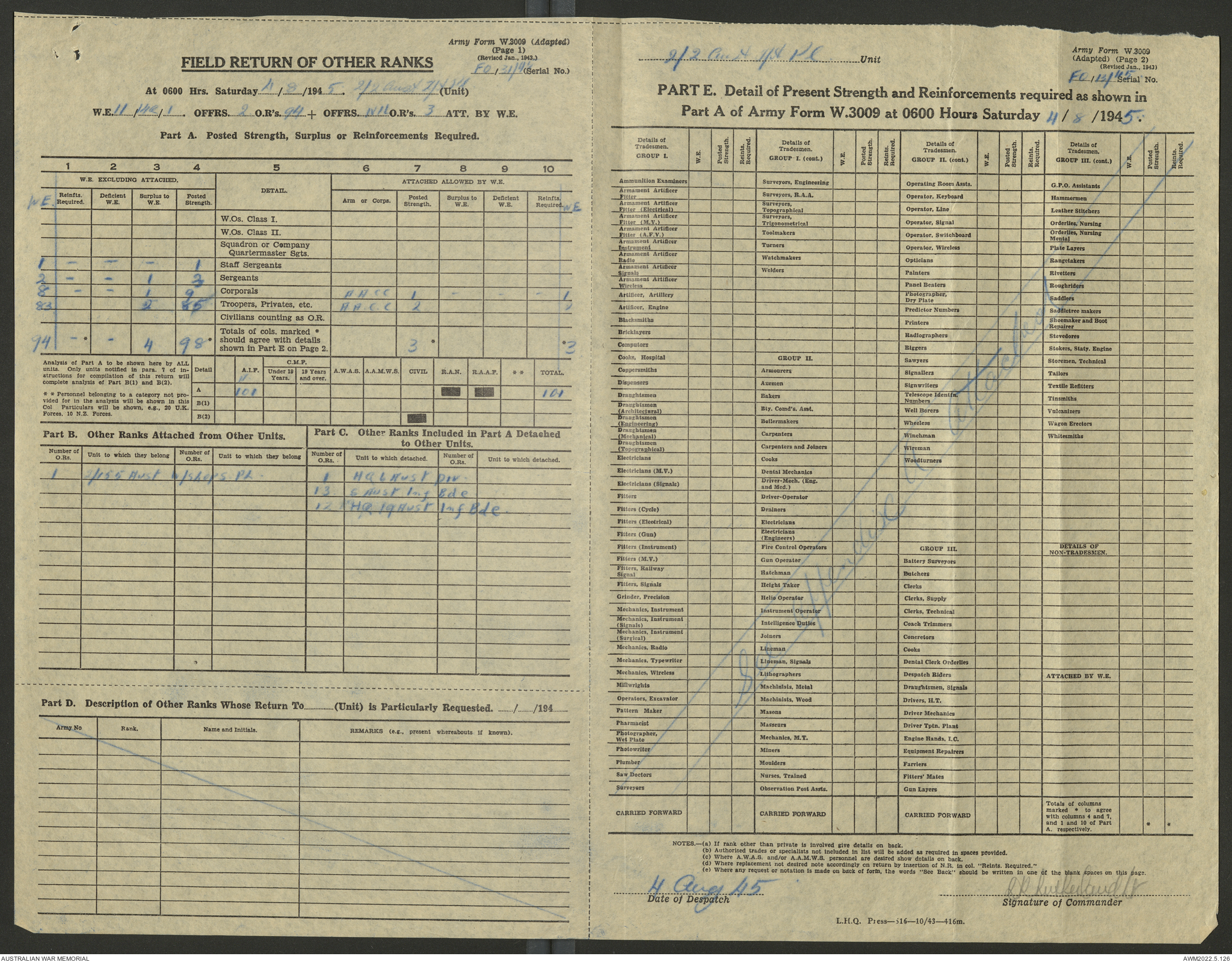 2nd AIF (Australian Imperial Force) and CMF (Citizen Military Forces) unit war diaries, 1939-45 War