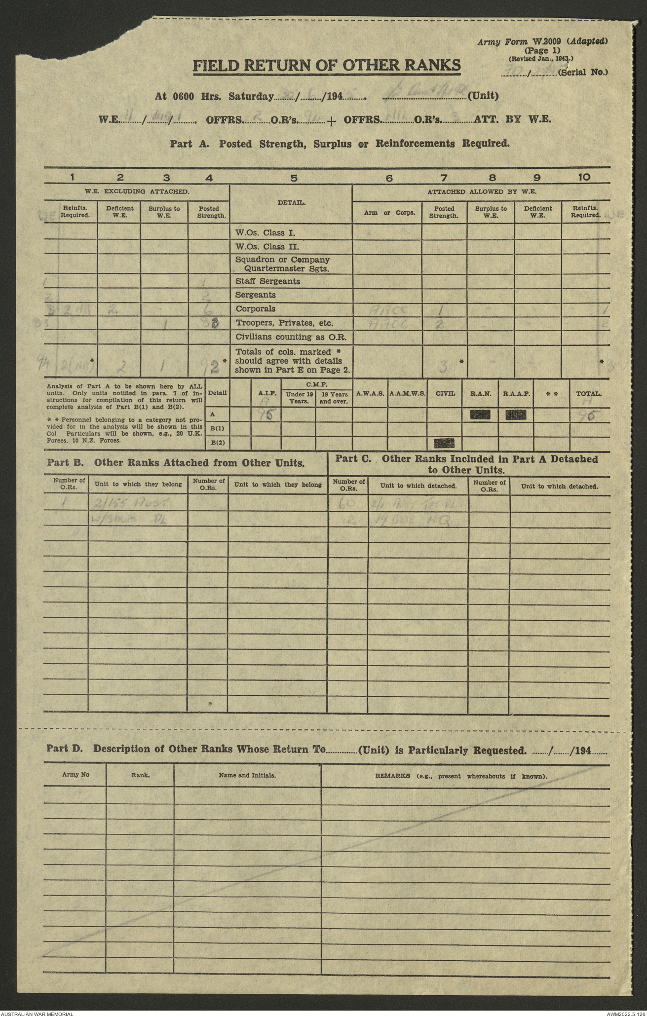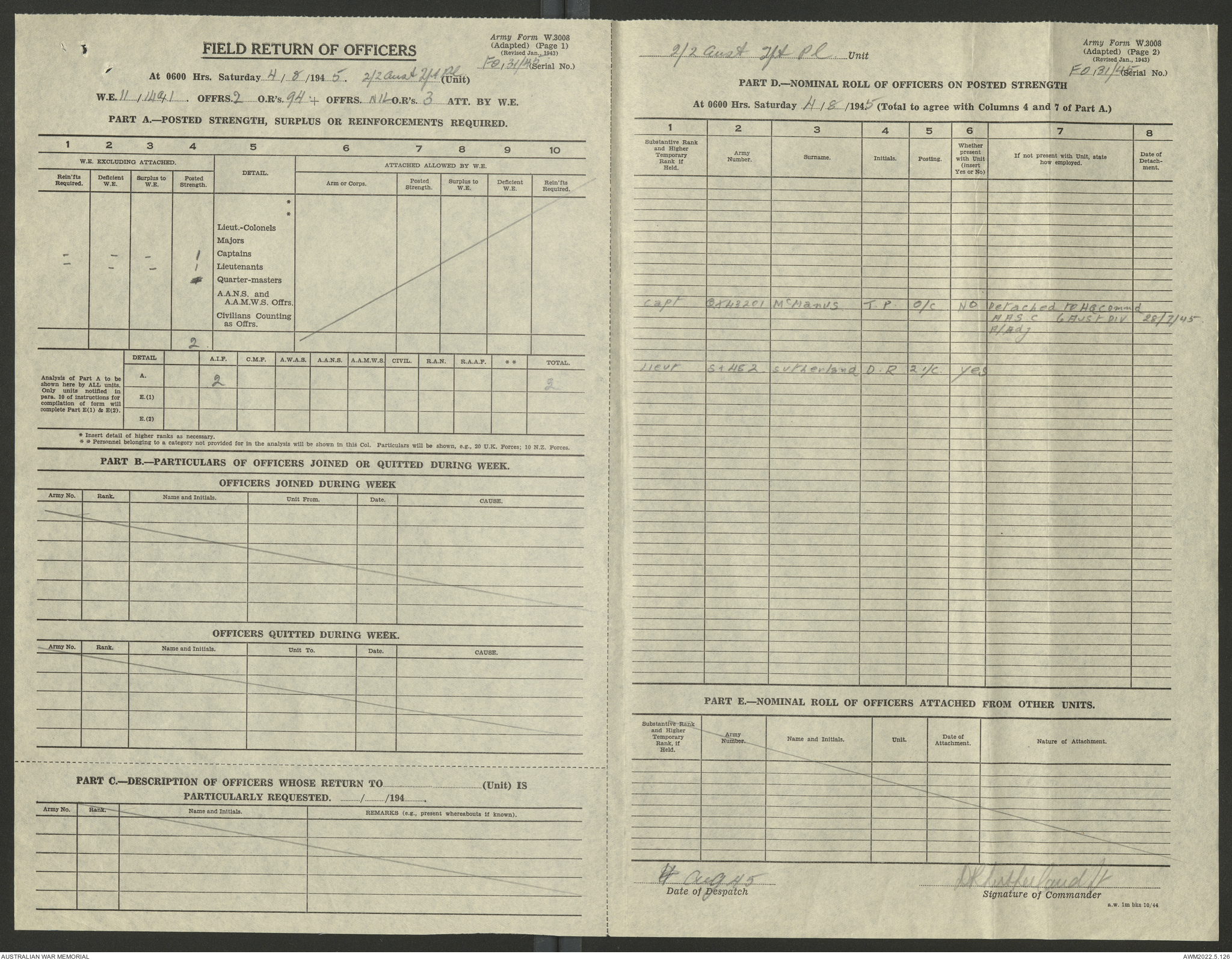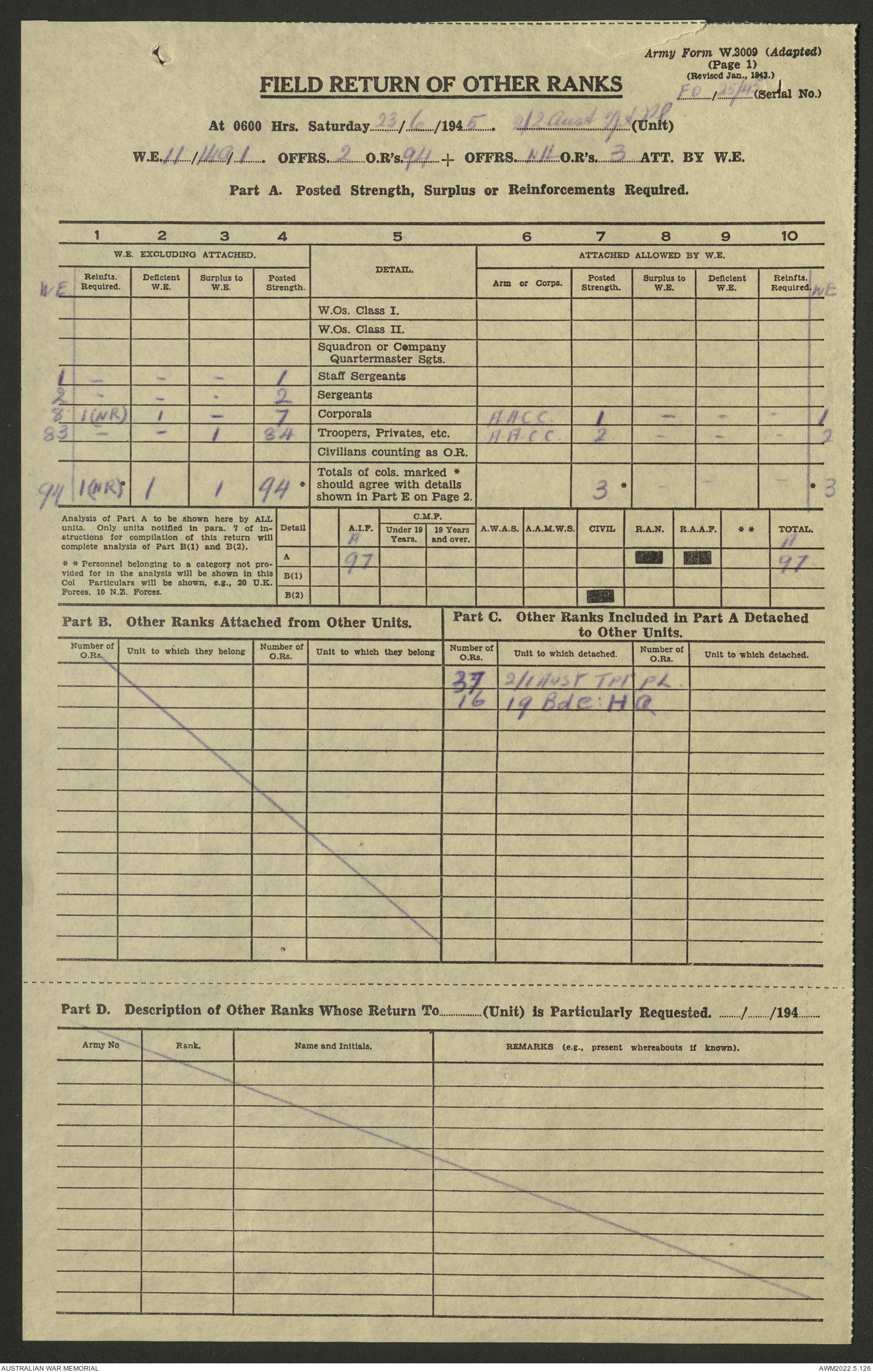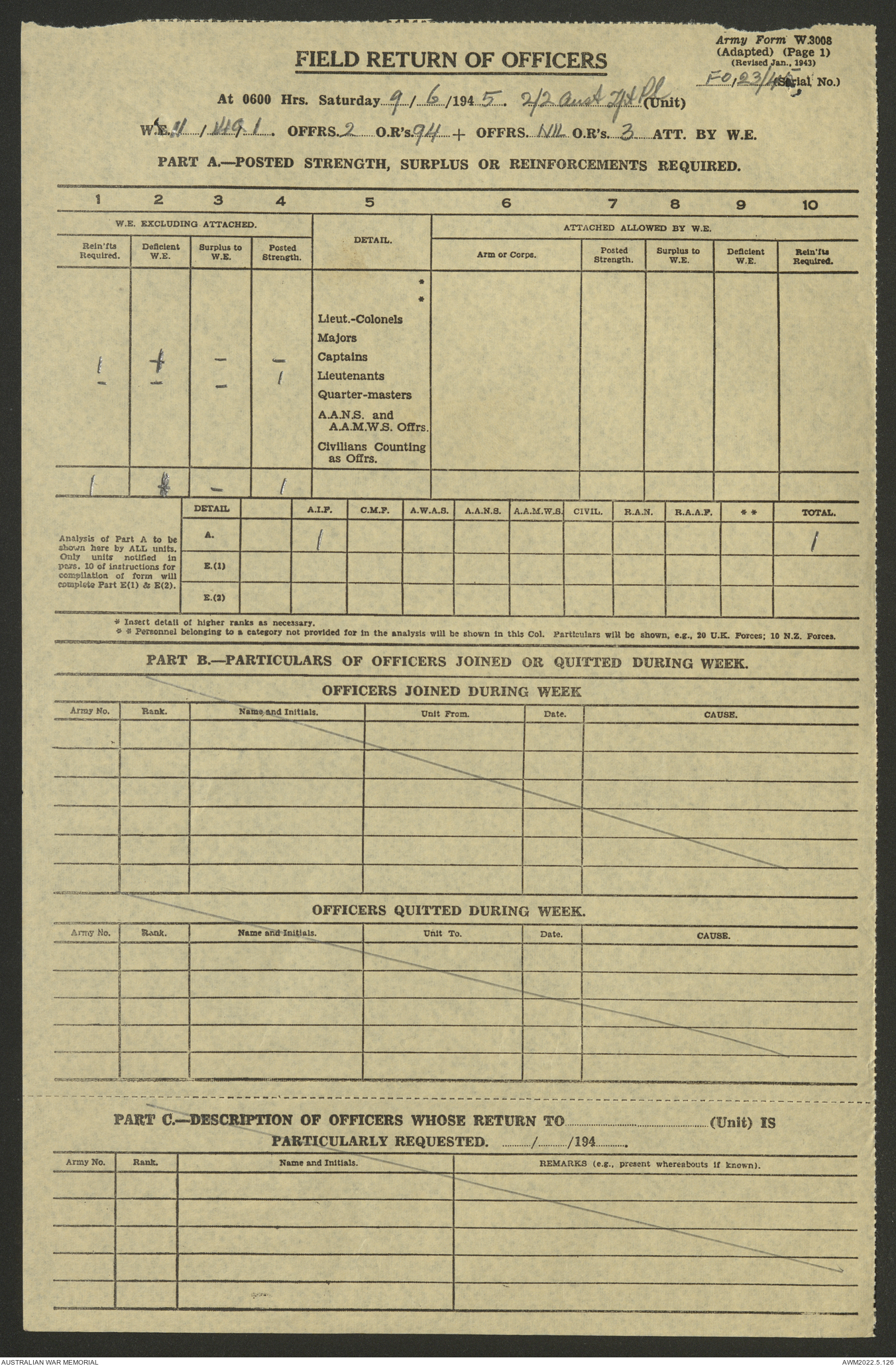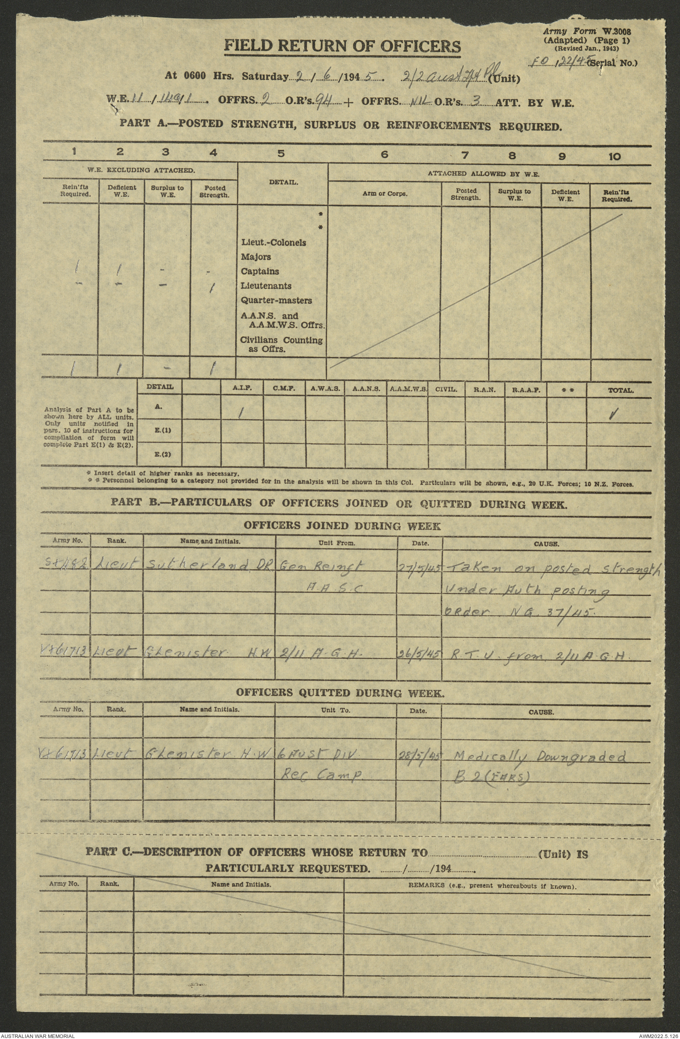 2nd AIF (Australian Imperial Force) and CMF (Citizen Military Forces) unit war diaries, 1939-45 War