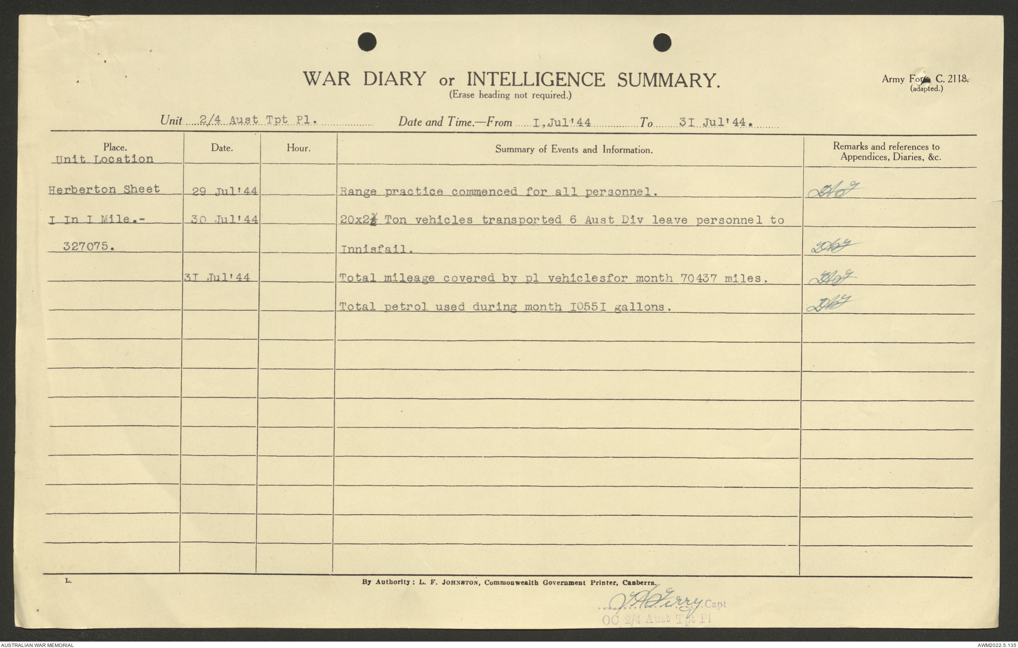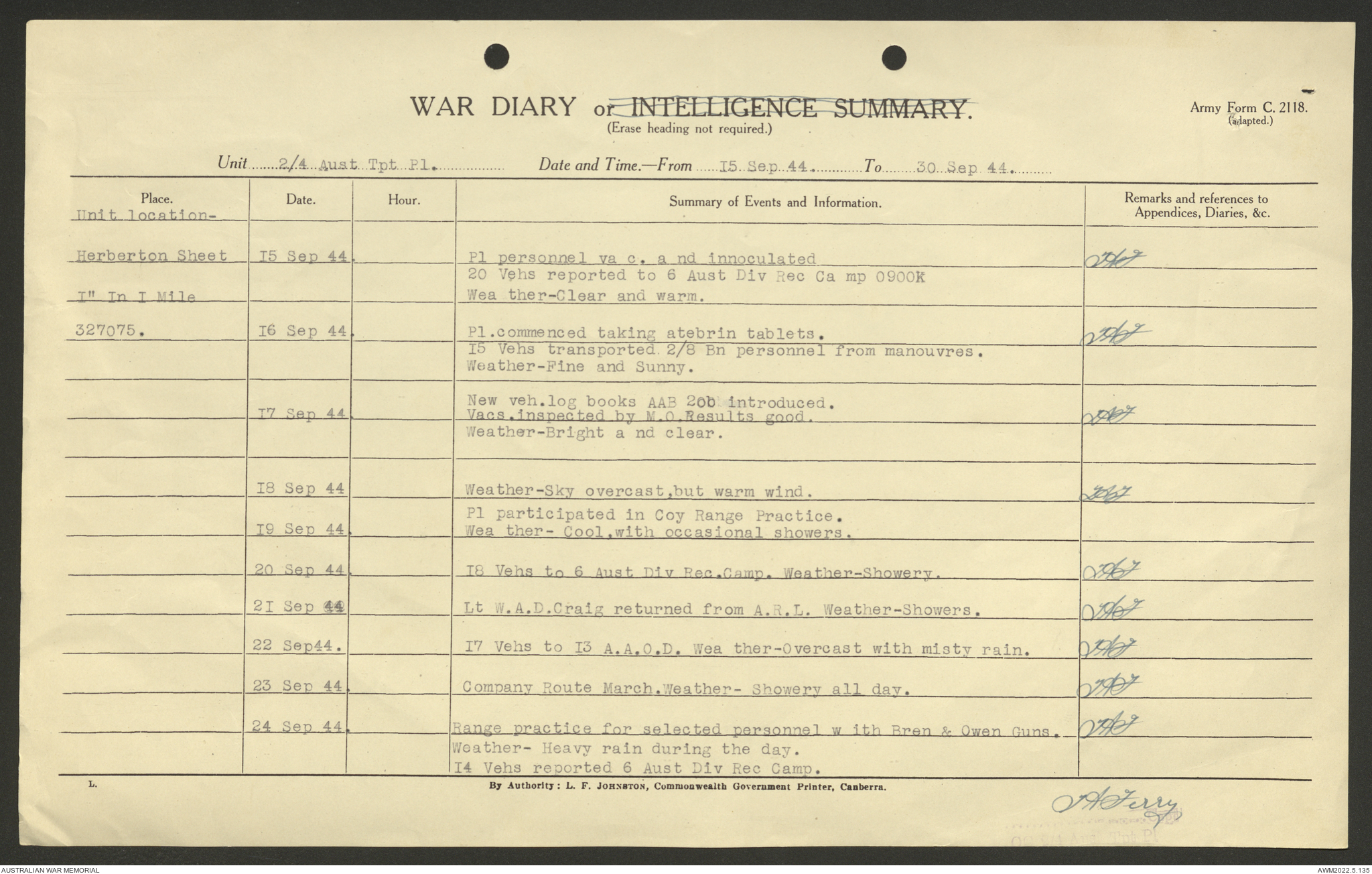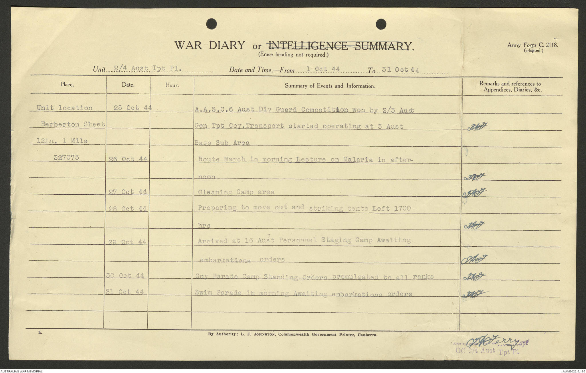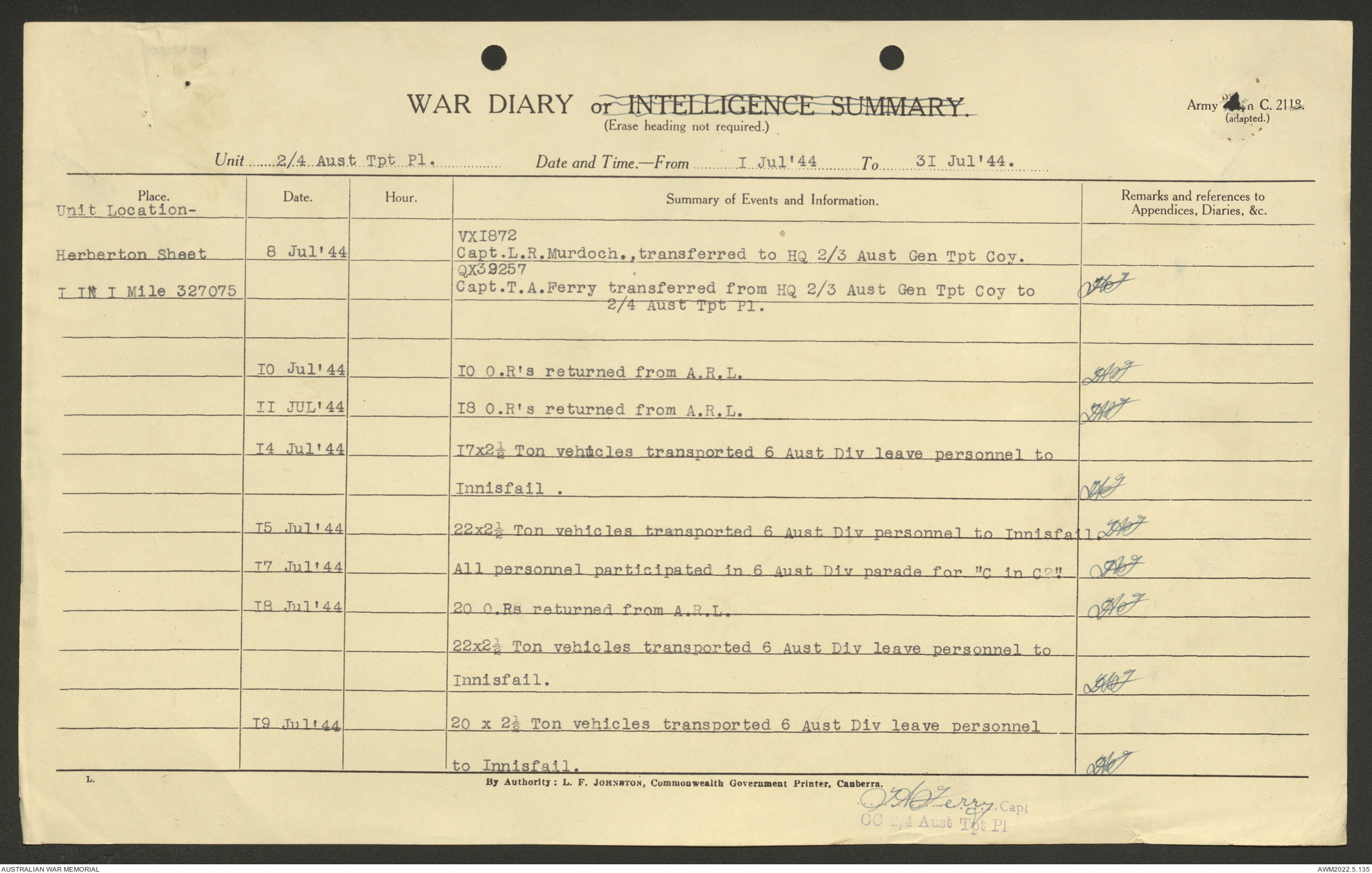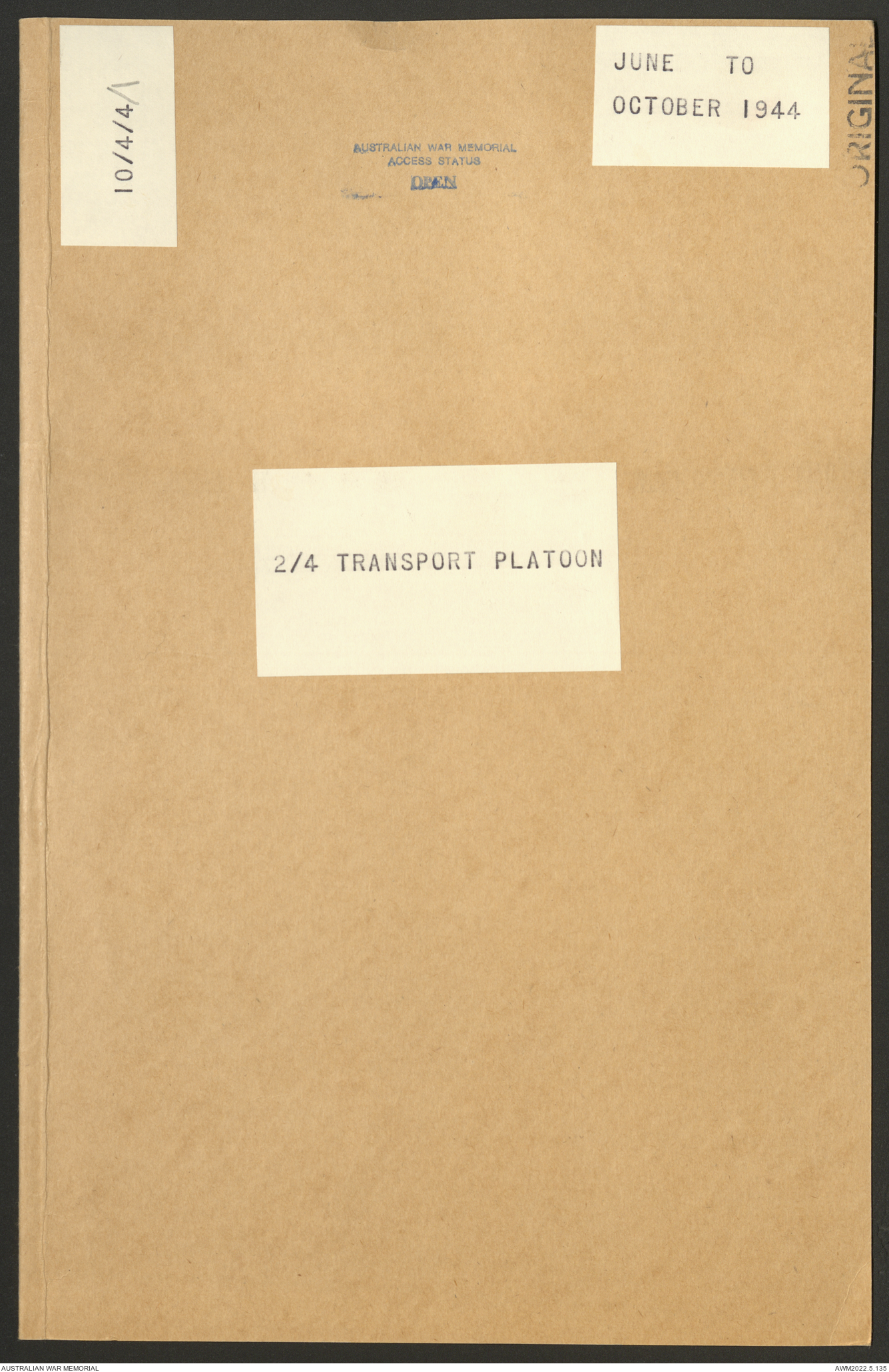AWM52 10/4/4/1 - [Unit War Diaries, 1939-45 War] 2/4 Transport Platoon, June - October 1944