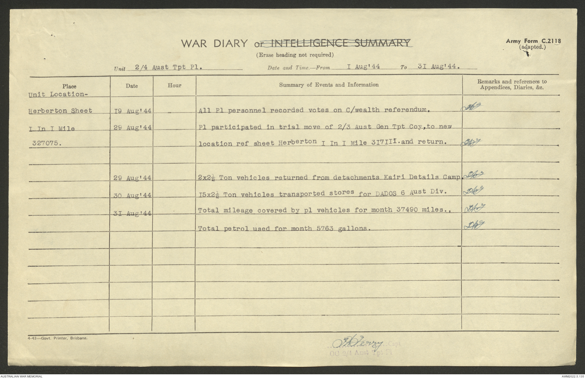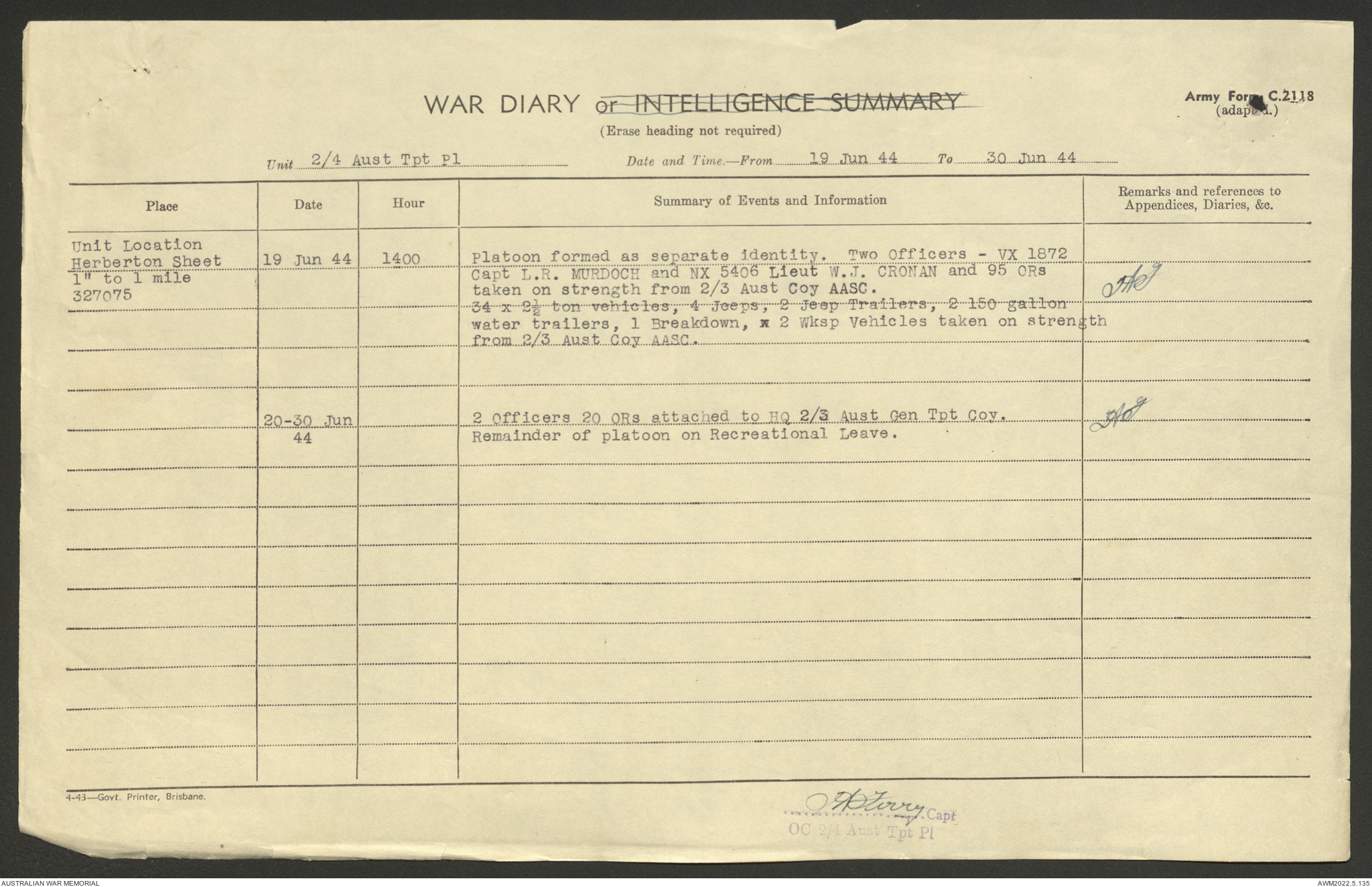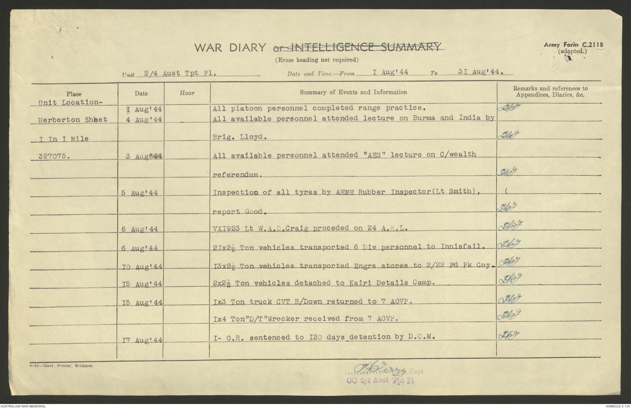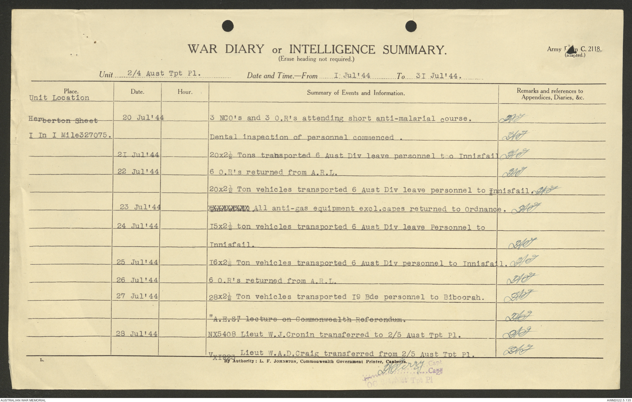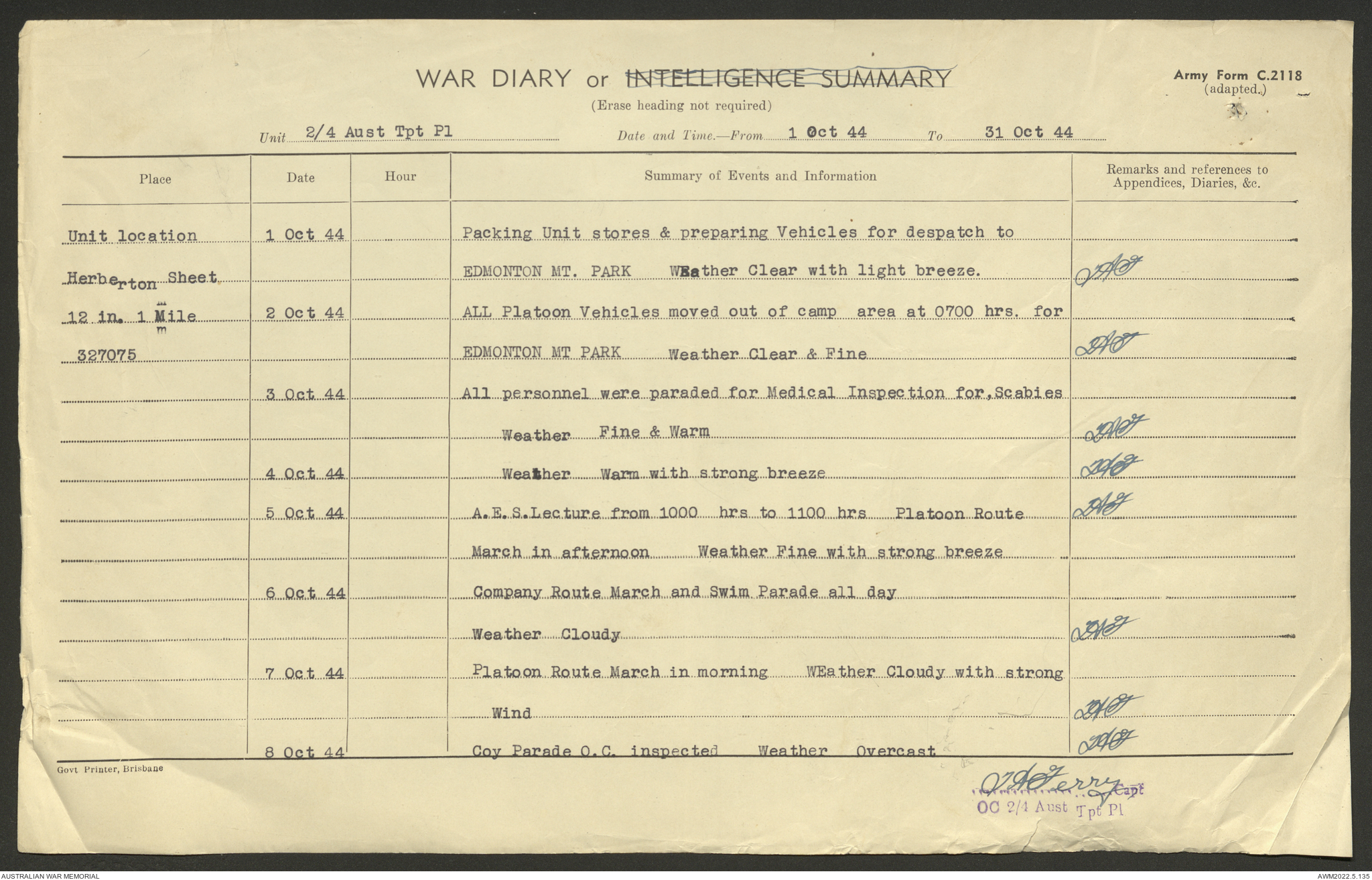 AWM52 10/4/4/1 - [Unit War Diaries, 1939-45 War] 2/4 Transport Platoon, June - October 1944