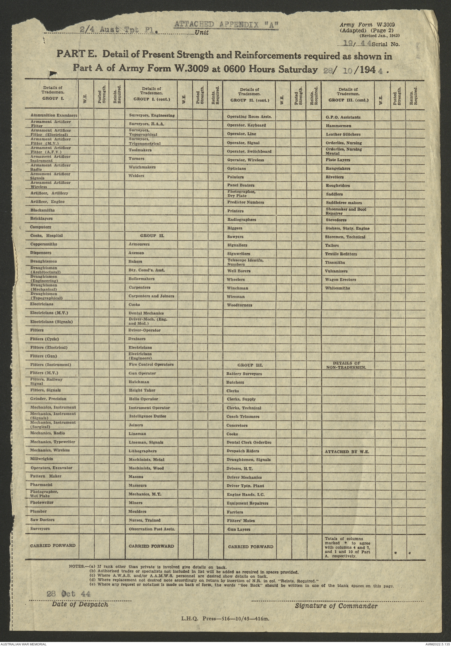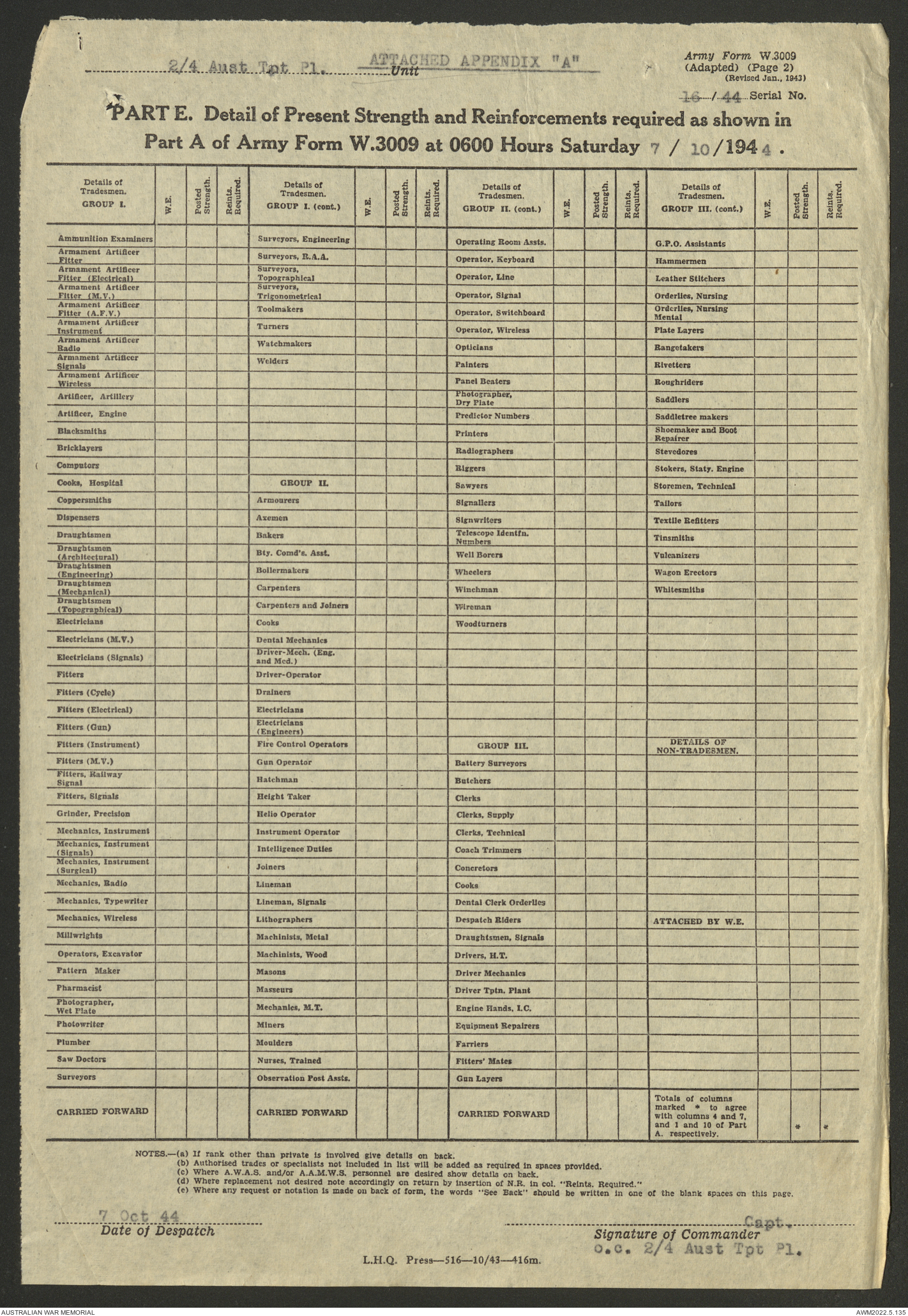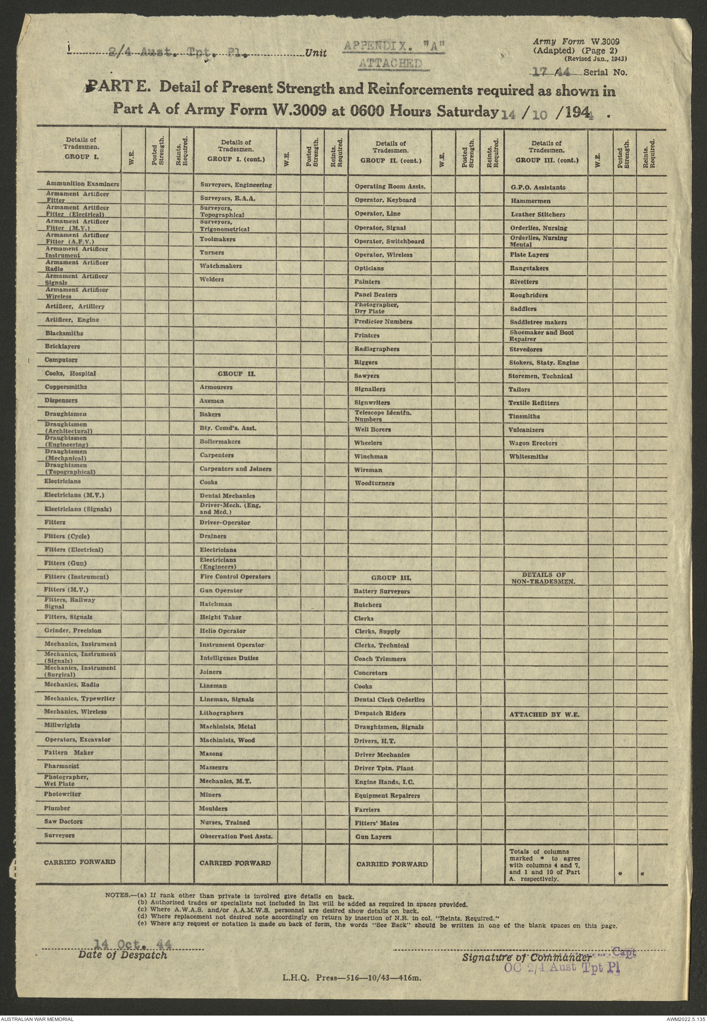 | Collection number | AWM52 10/4/4/1 |