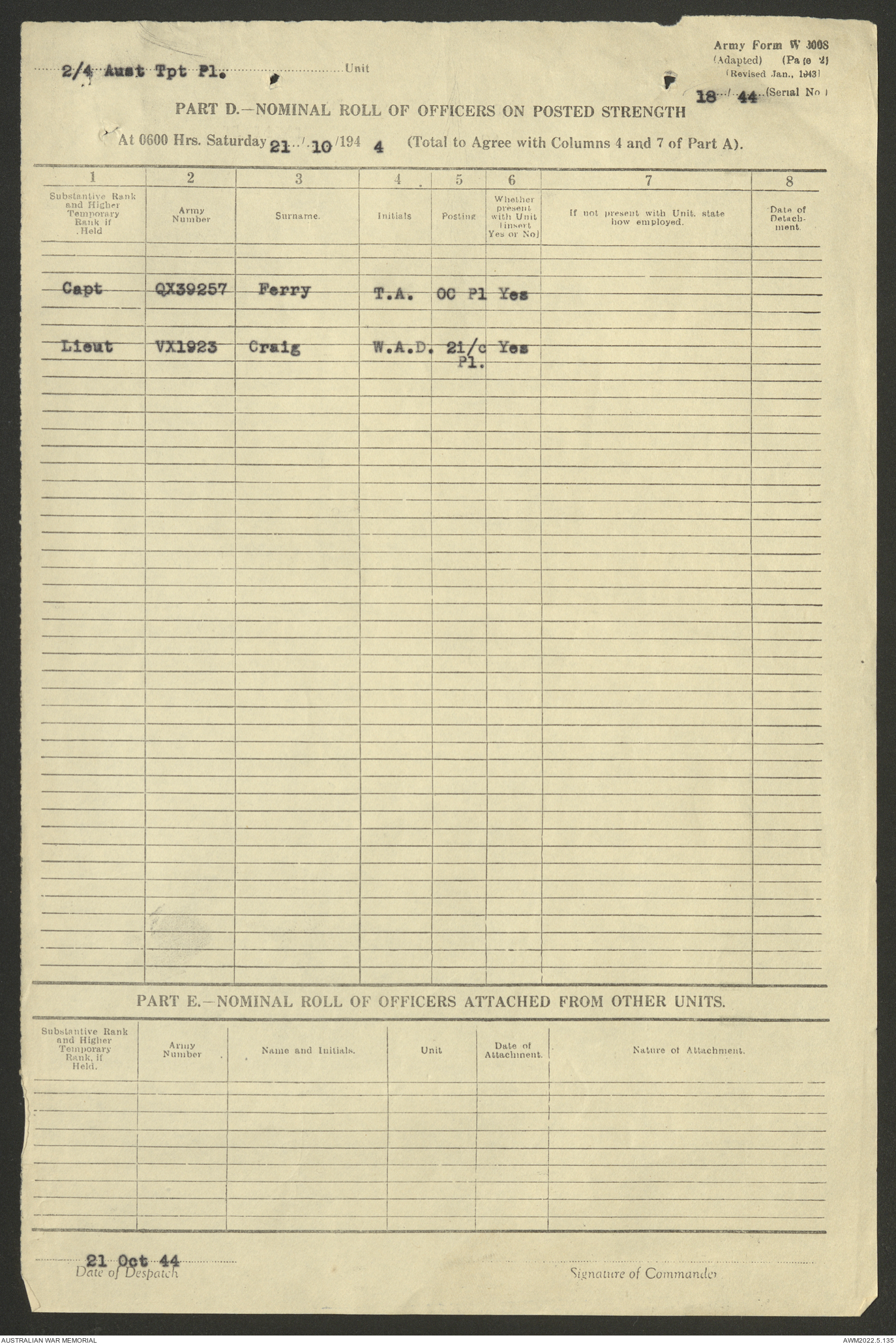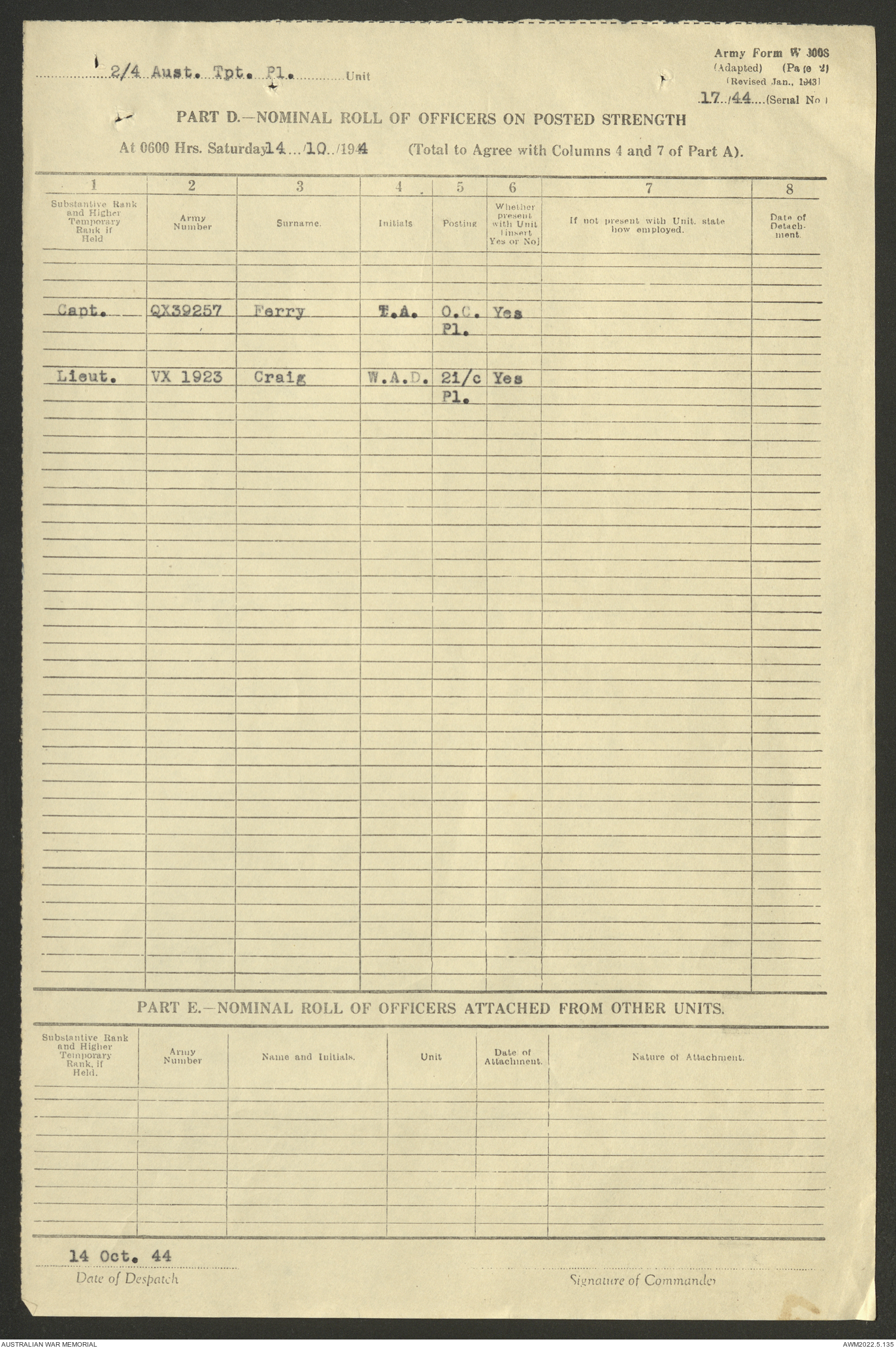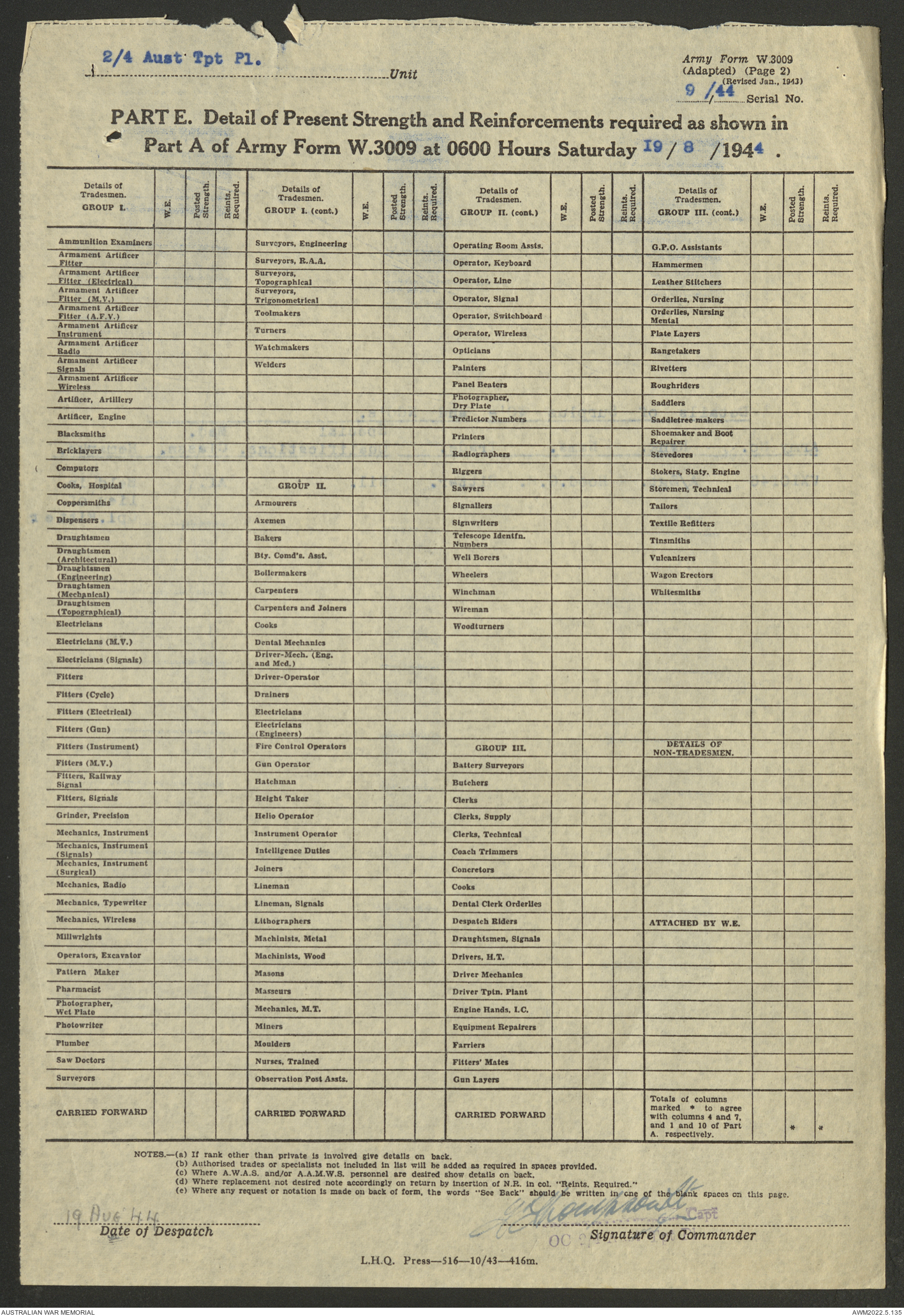 | Collection number | AWM52 10/4/4/1 |