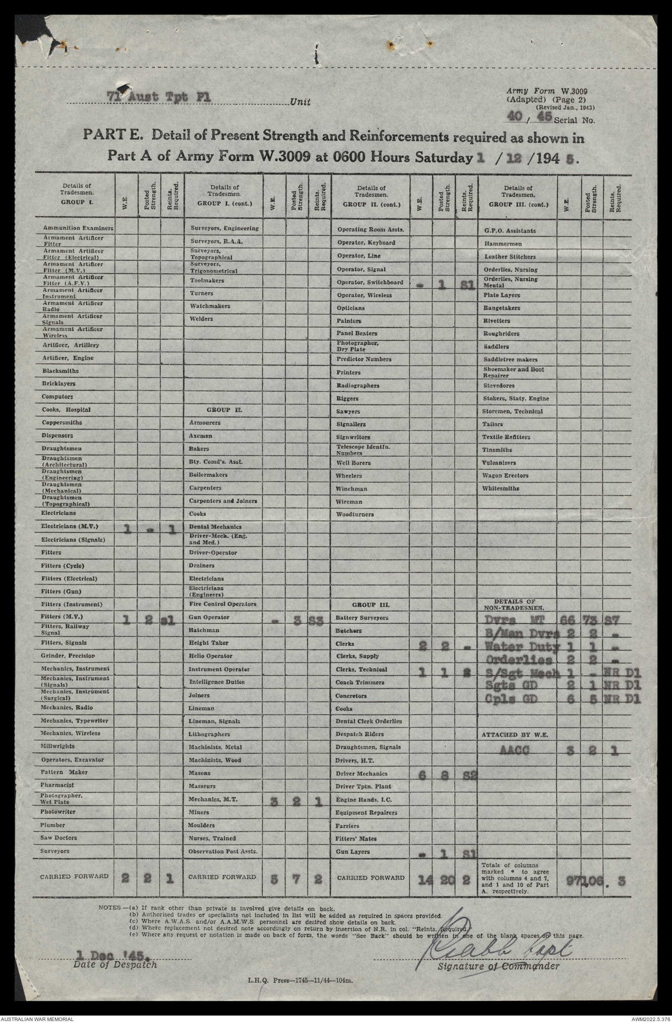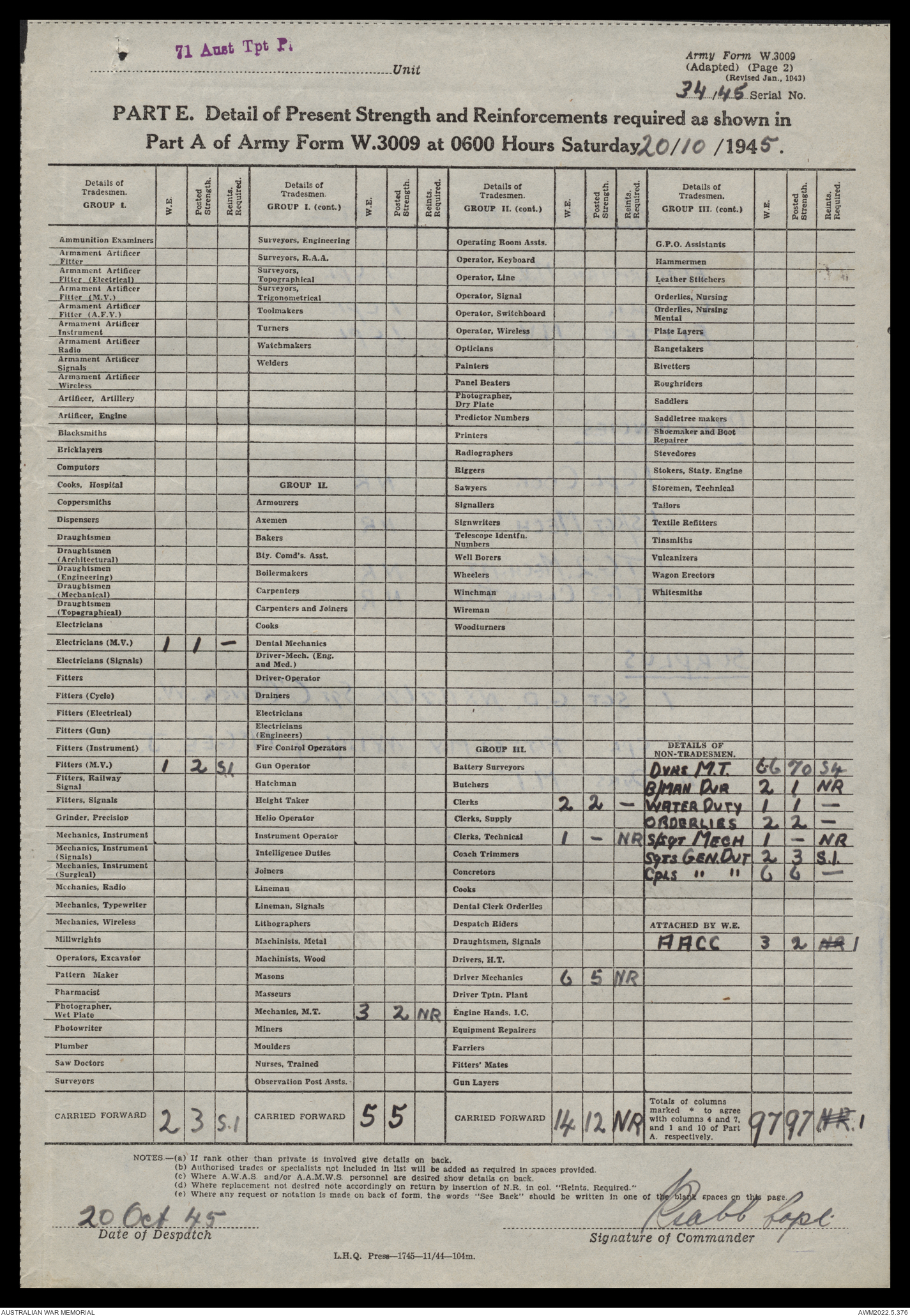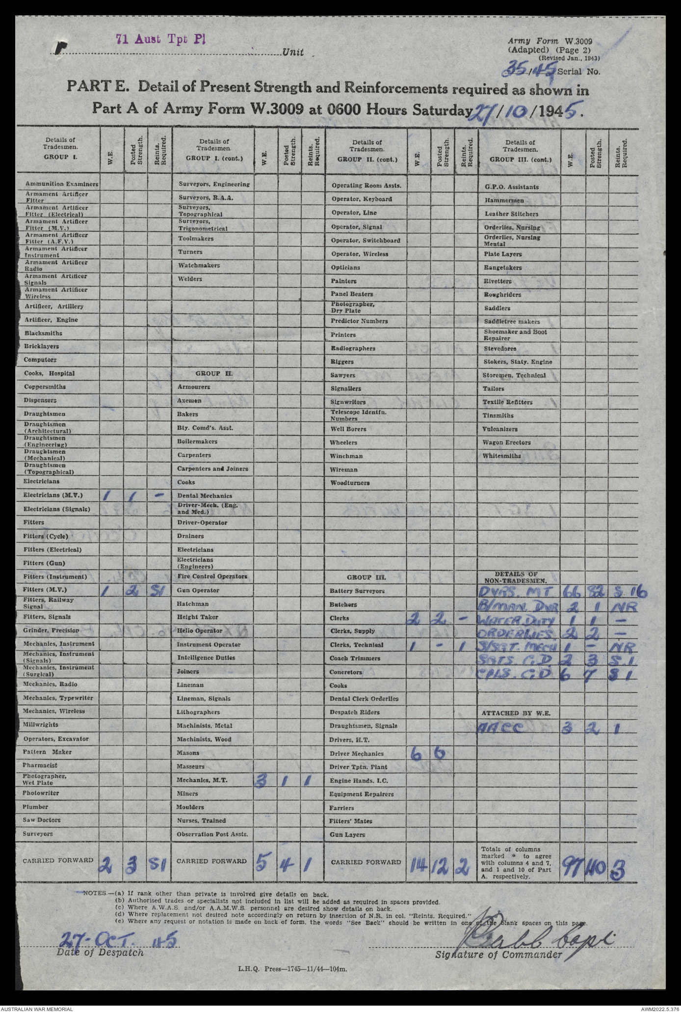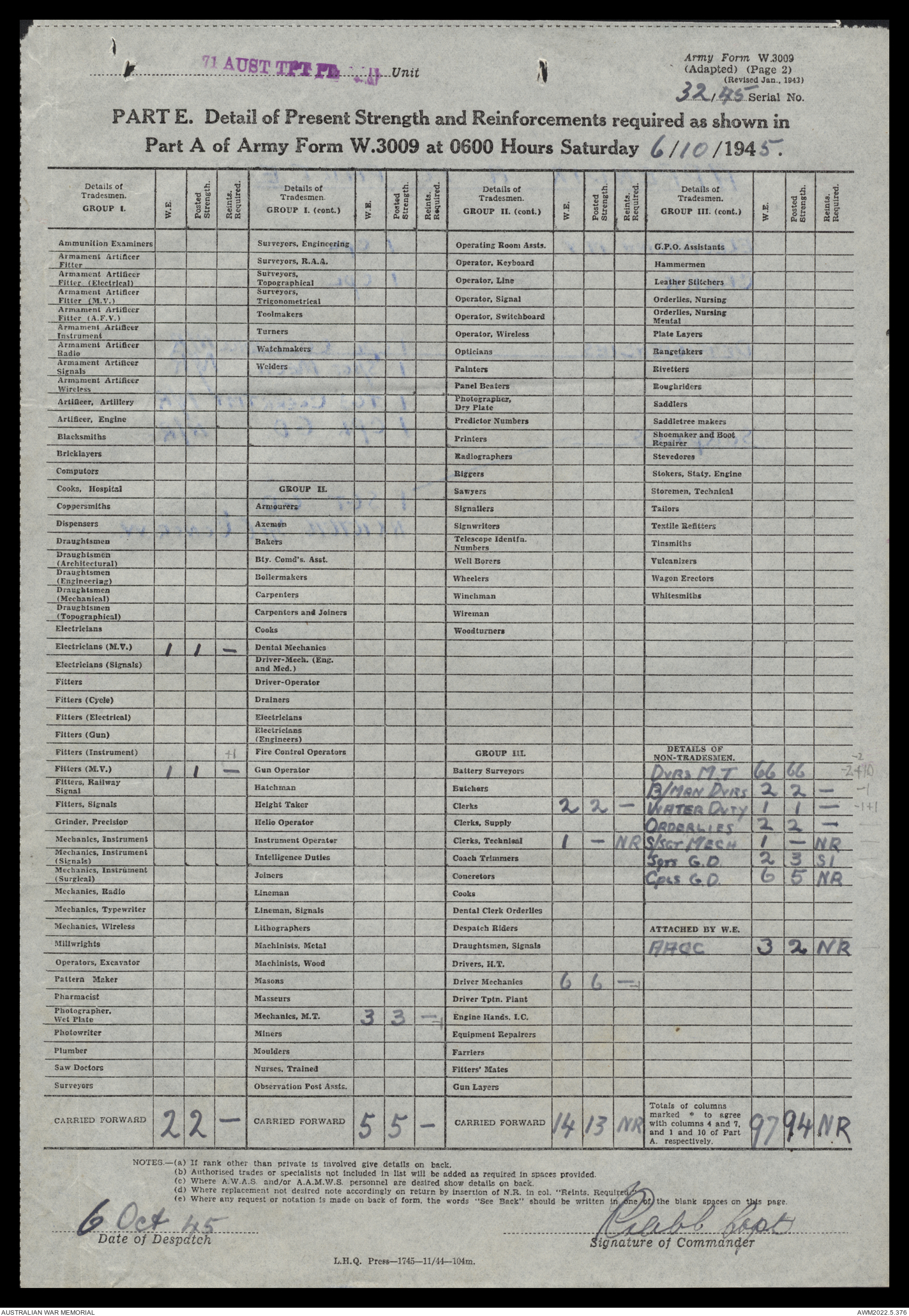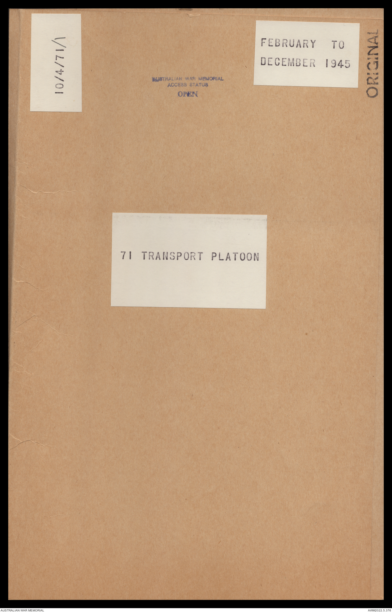 | Collection number | AWM52 10/4/71/1 |