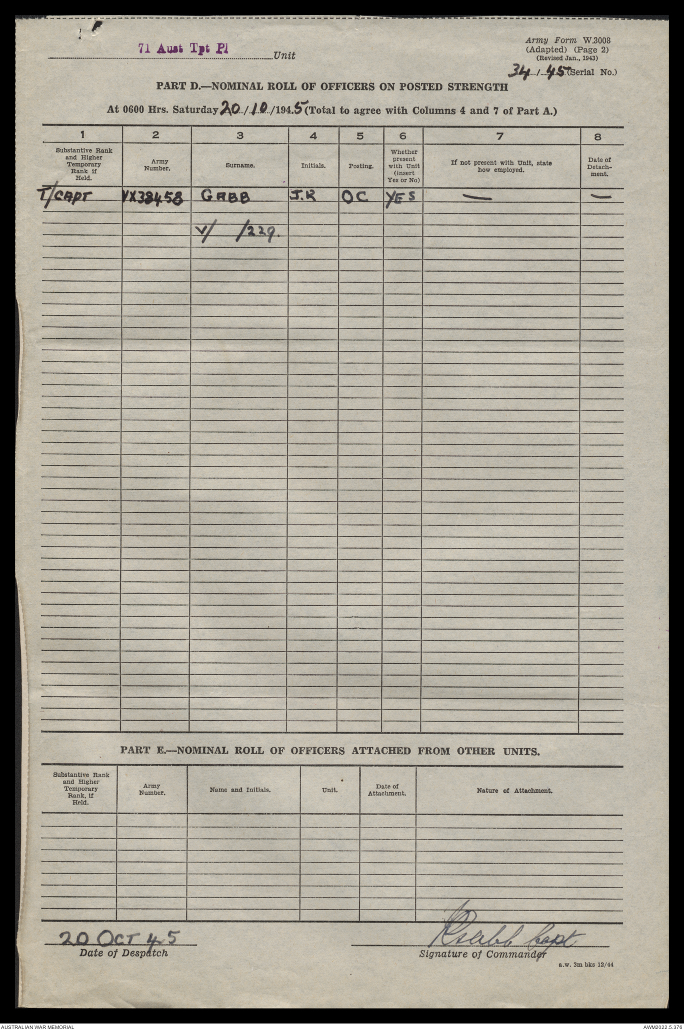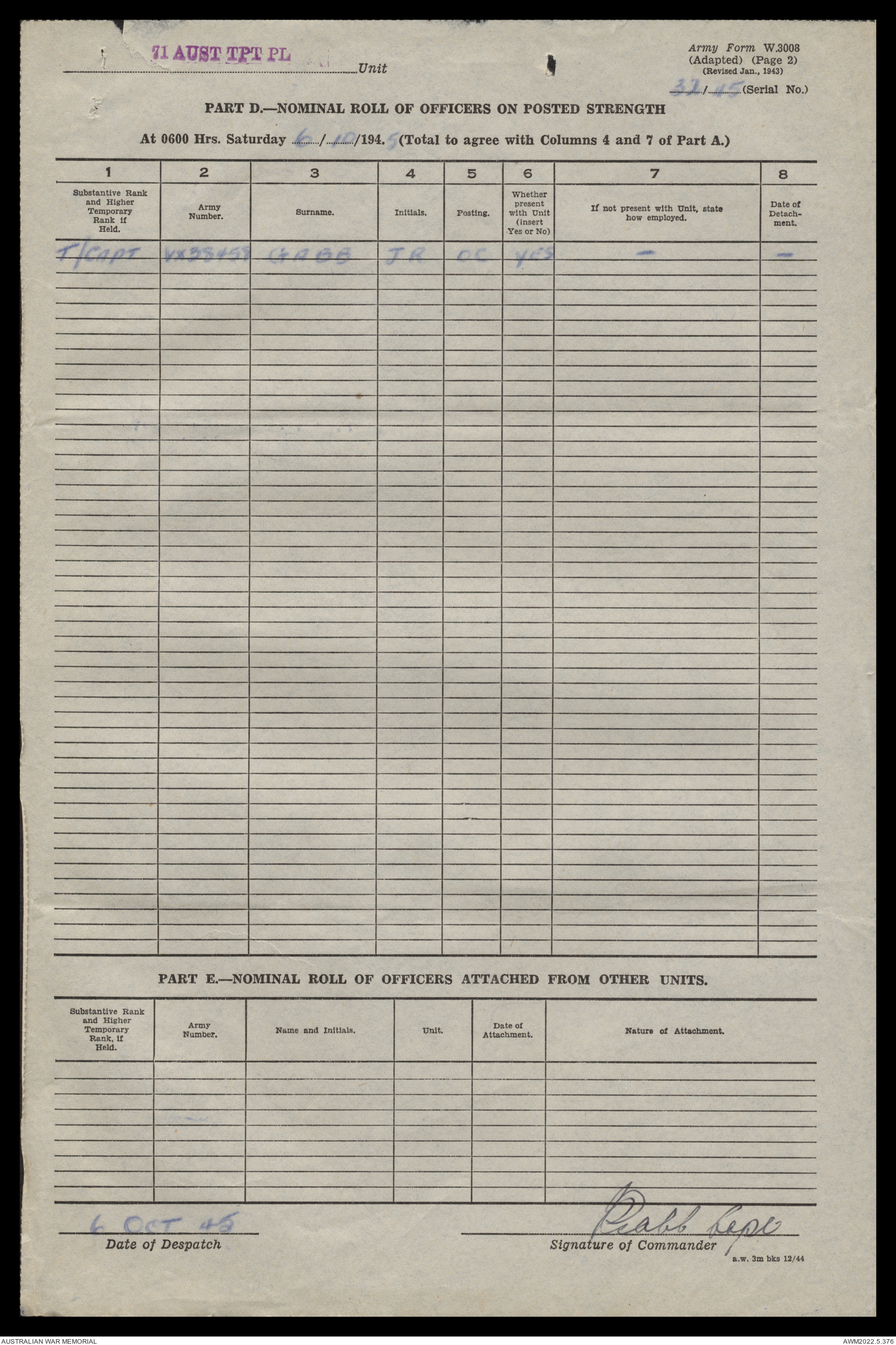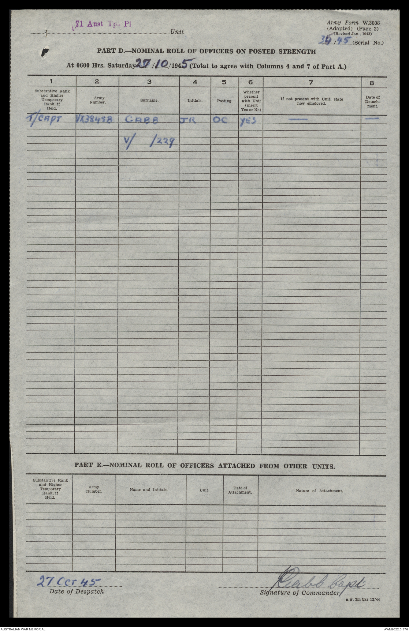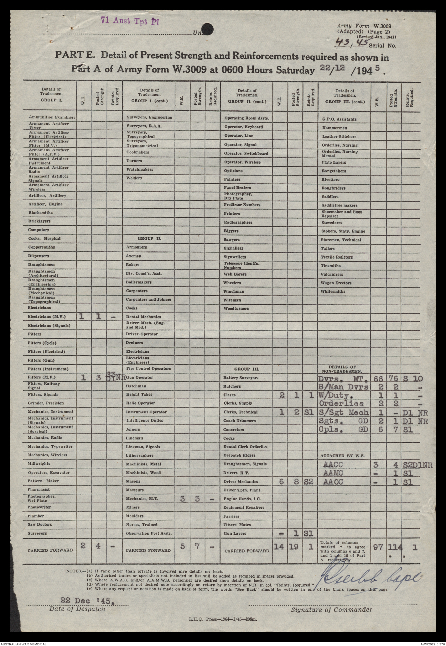 | Collection number | AWM52 10/4/71/1 |