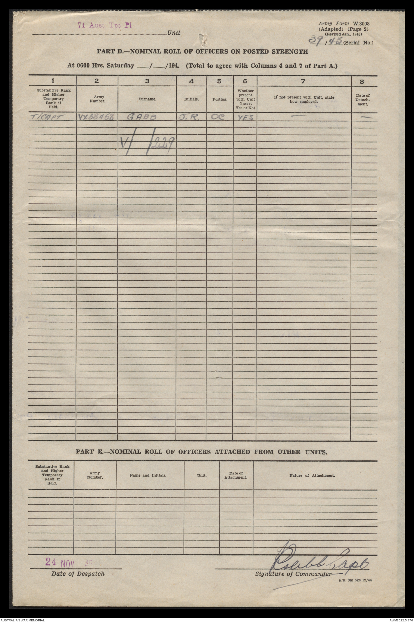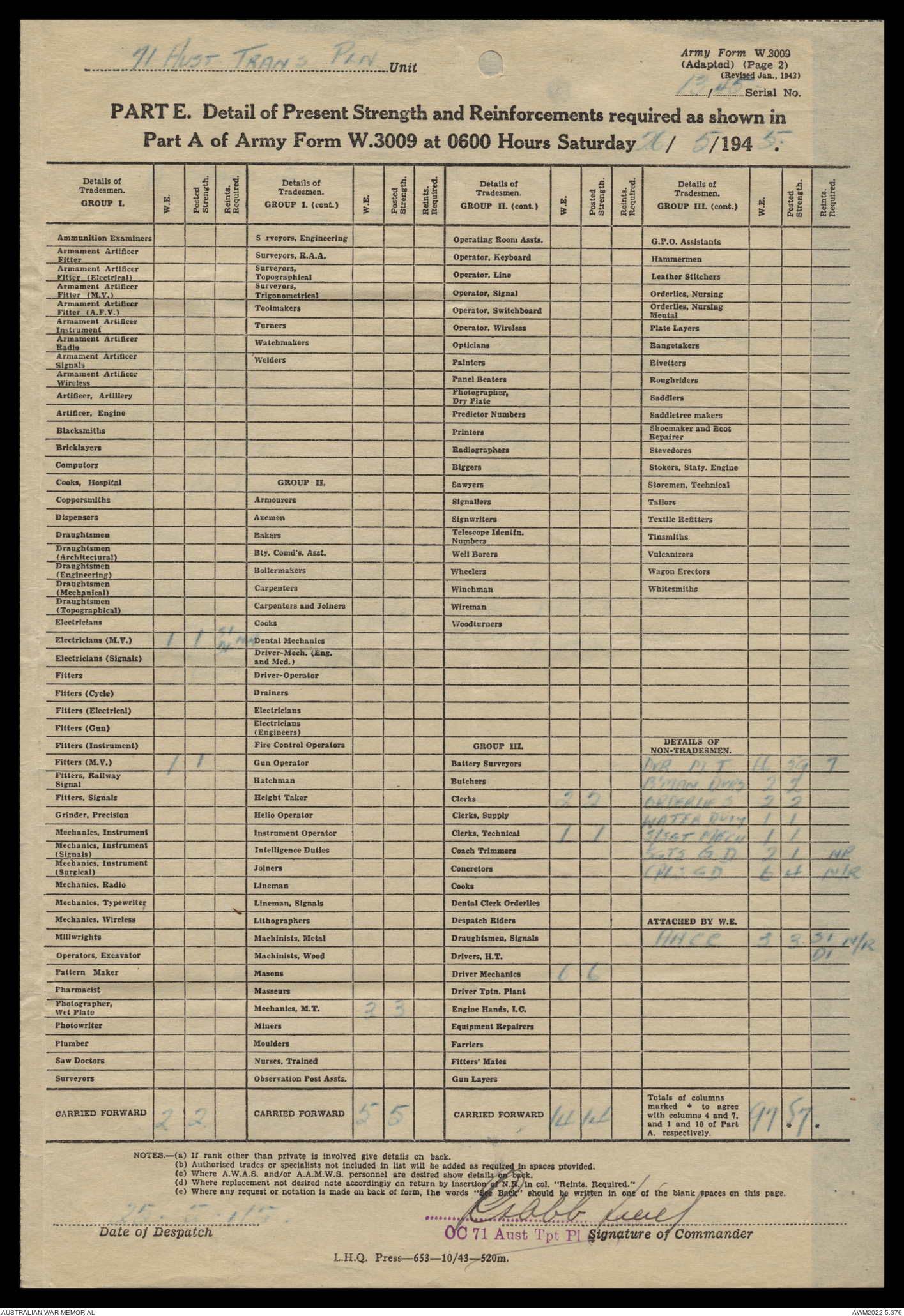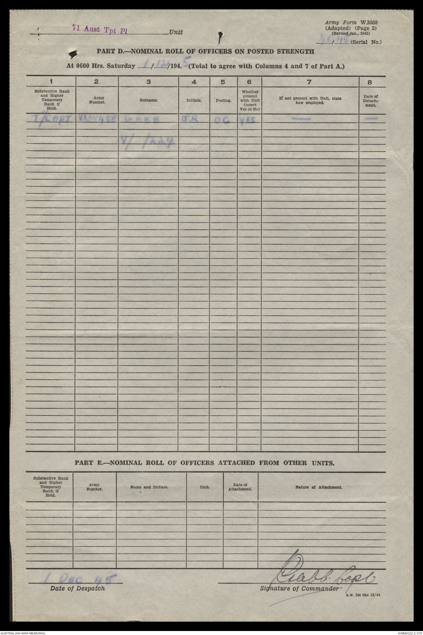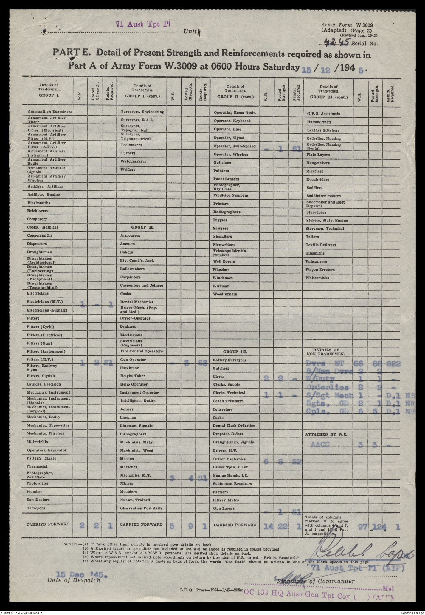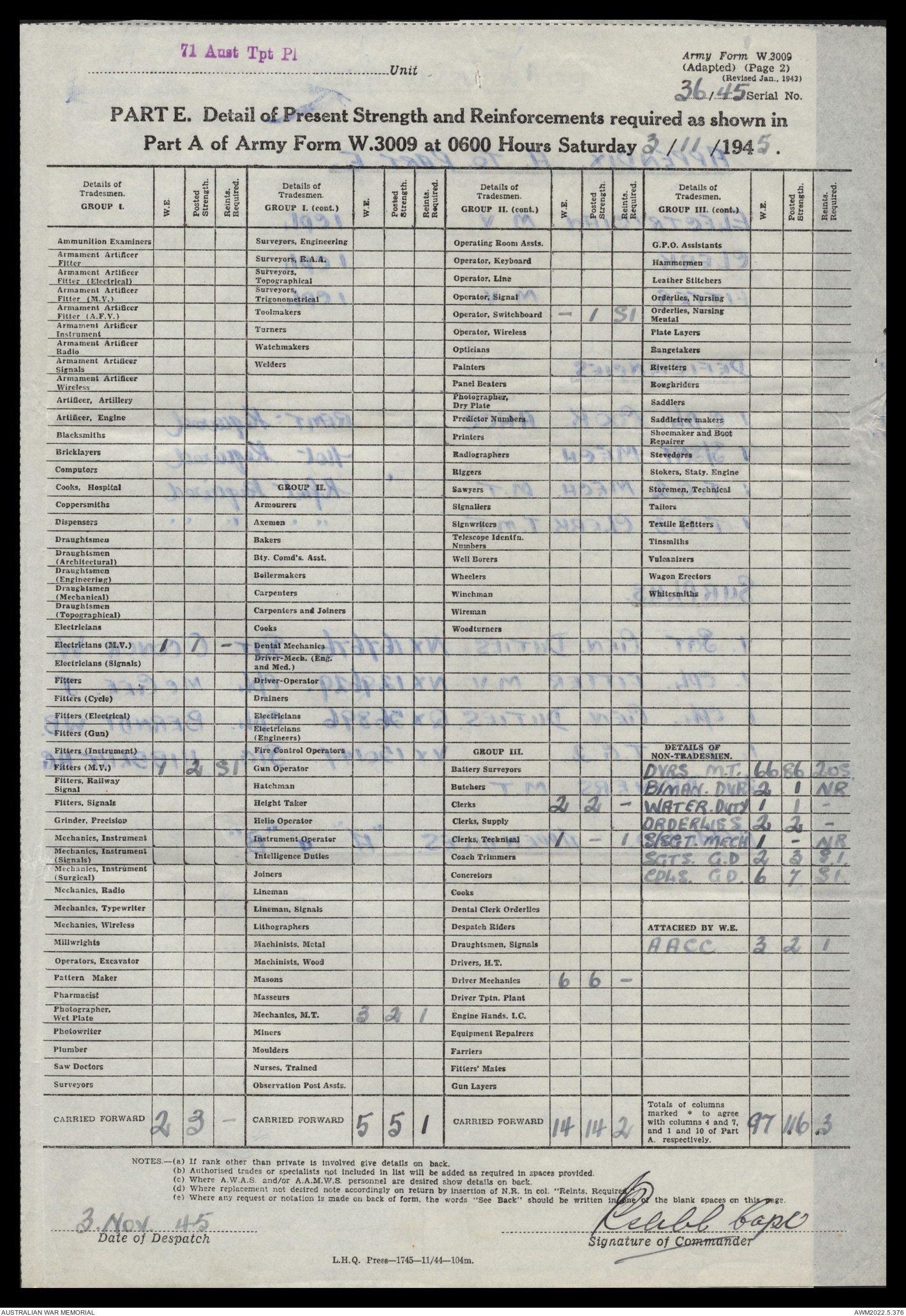 | Collection number | AWM52 10/4/71/1 |