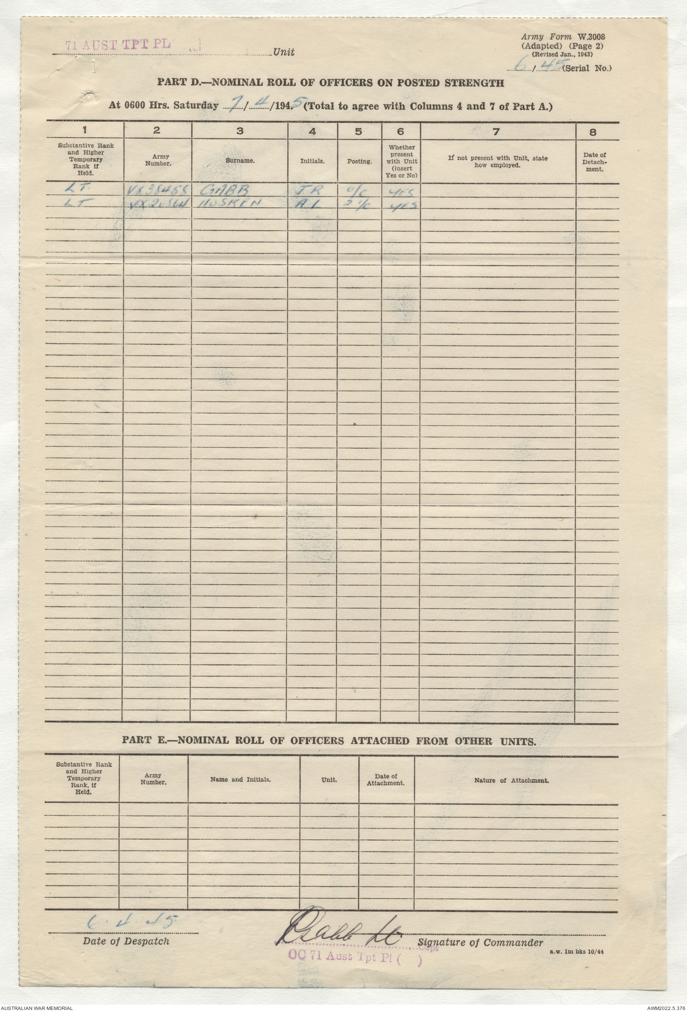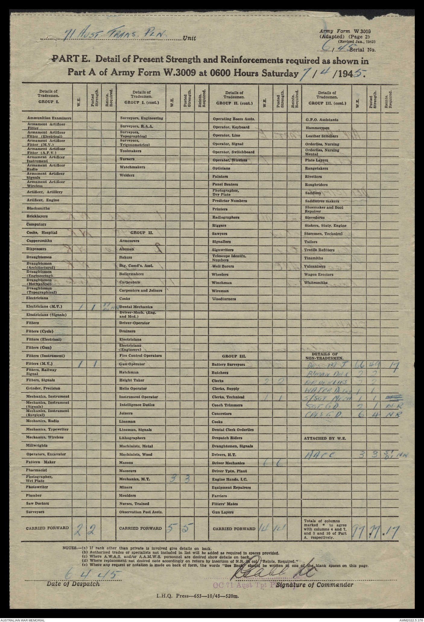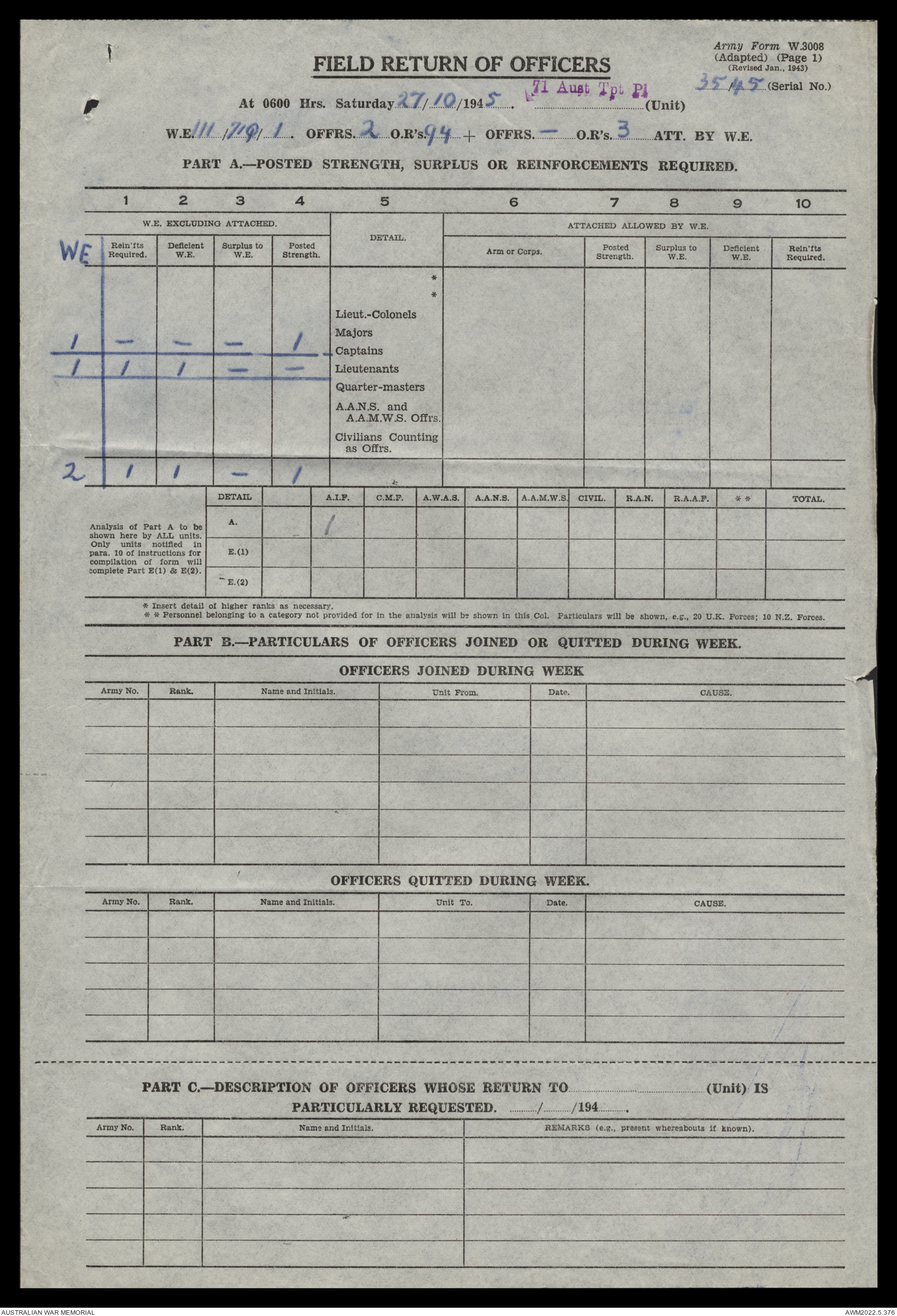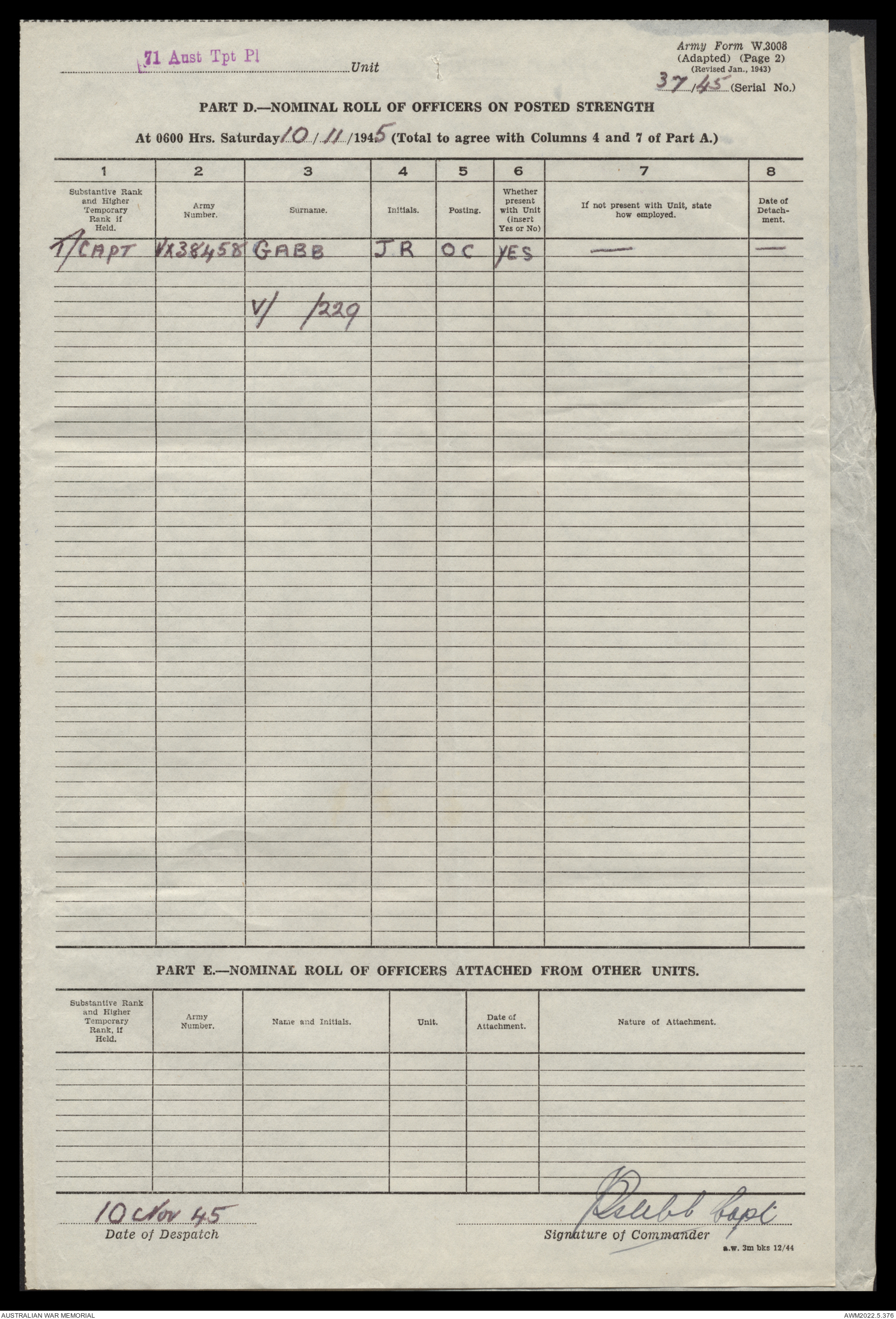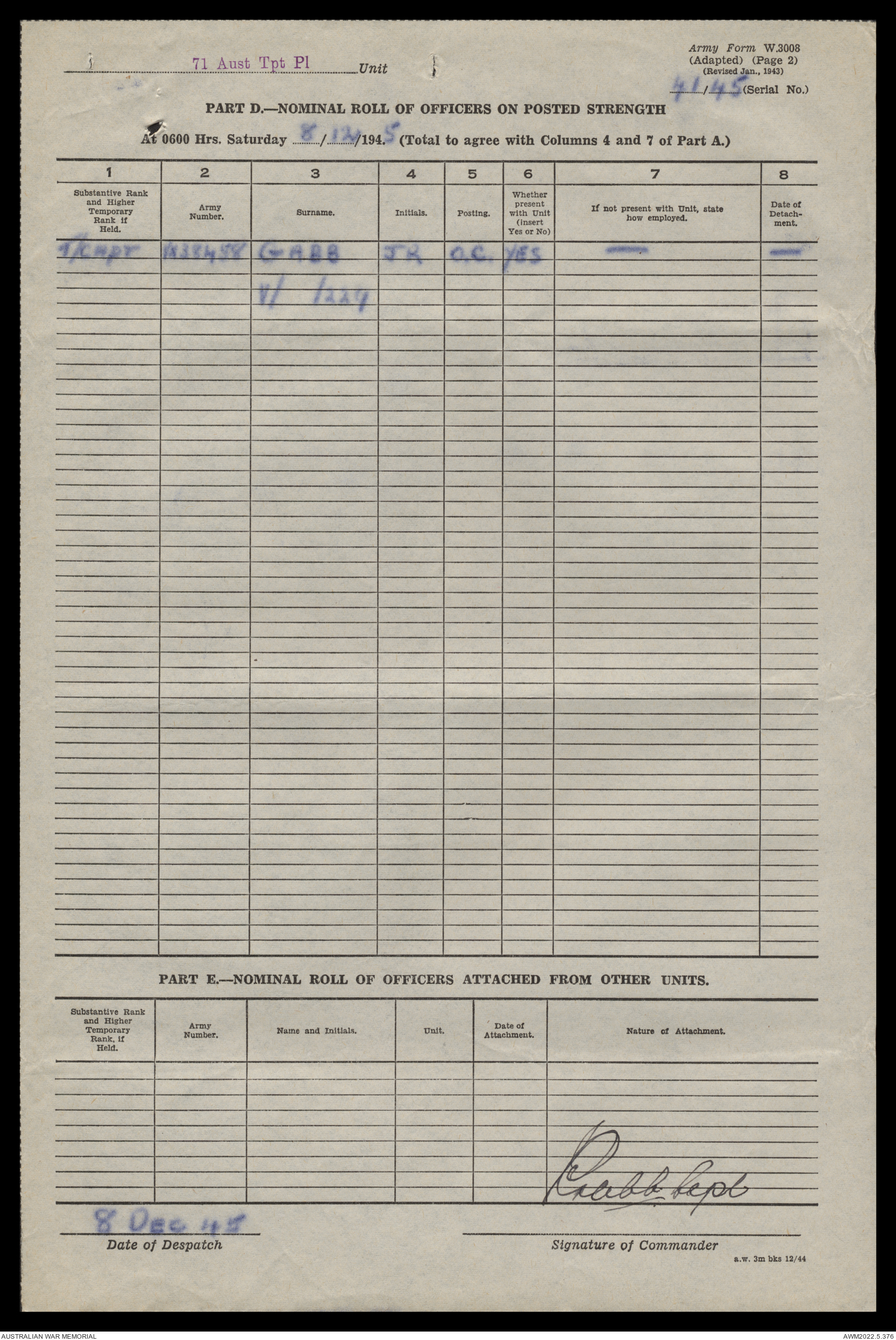 | Collection number | AWM52 10/4/71/1 |