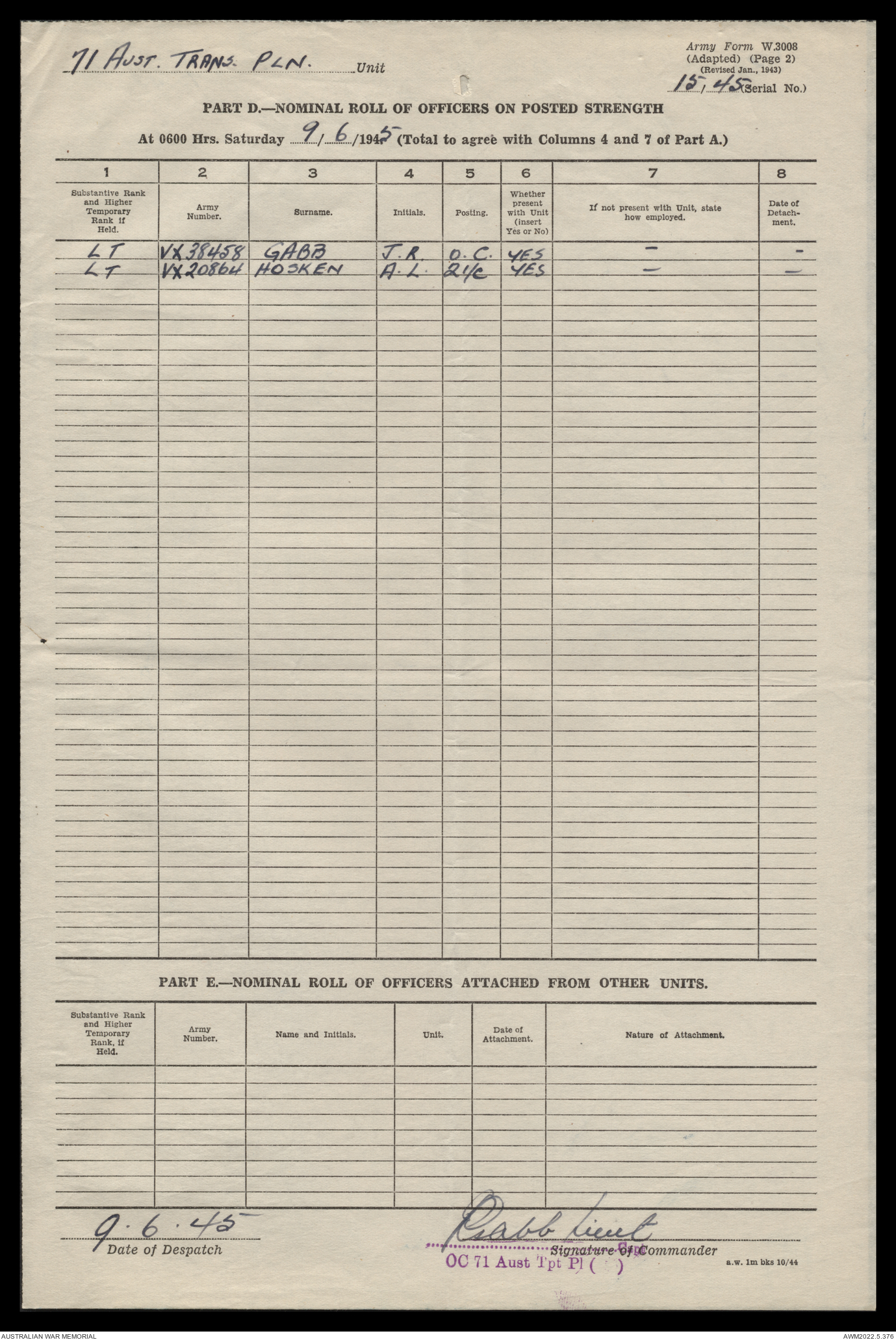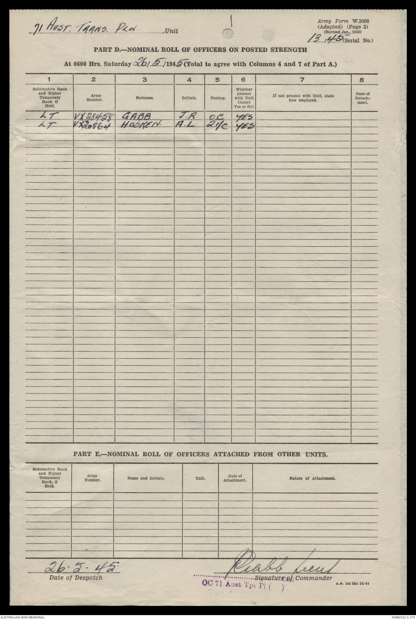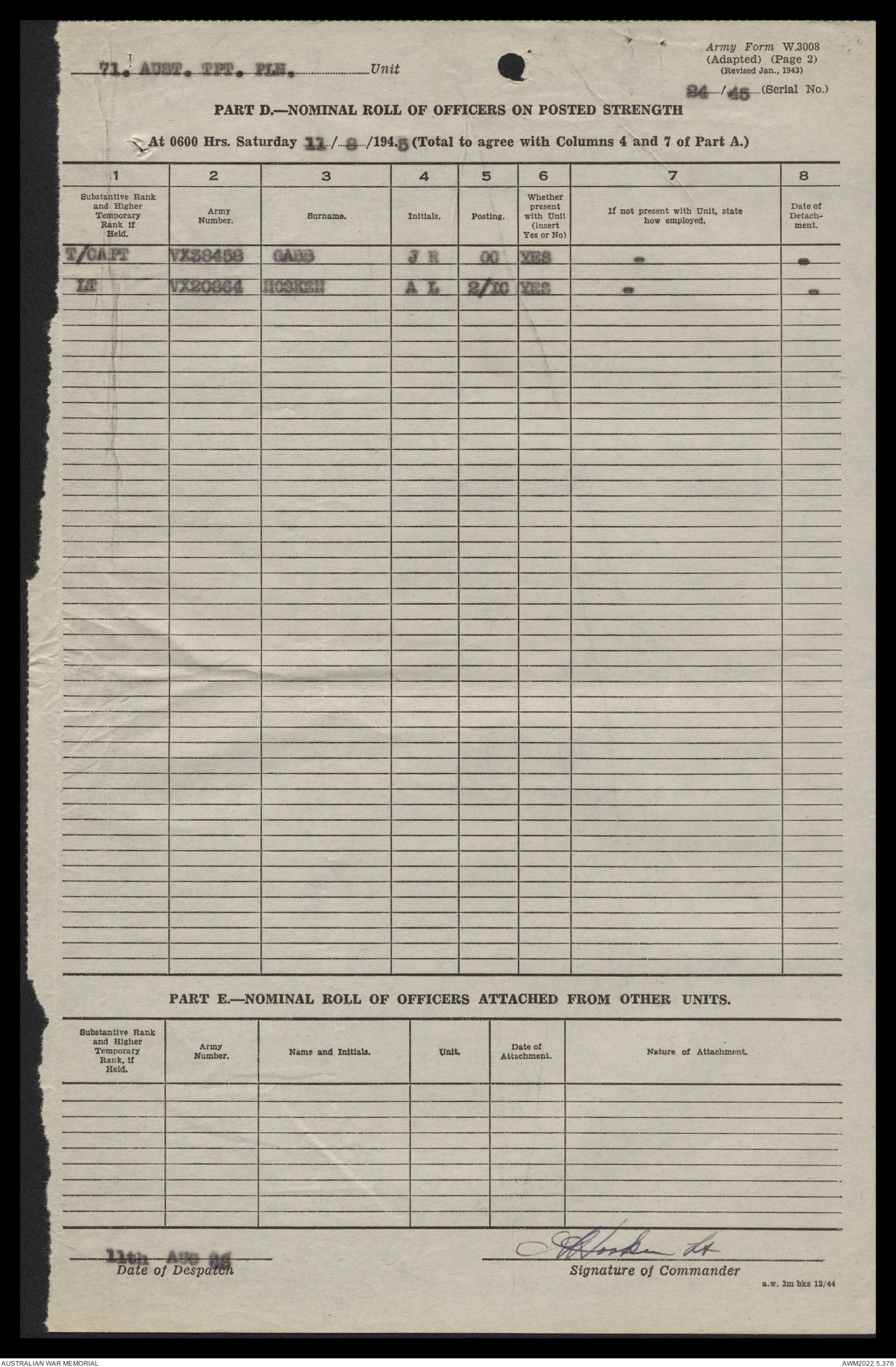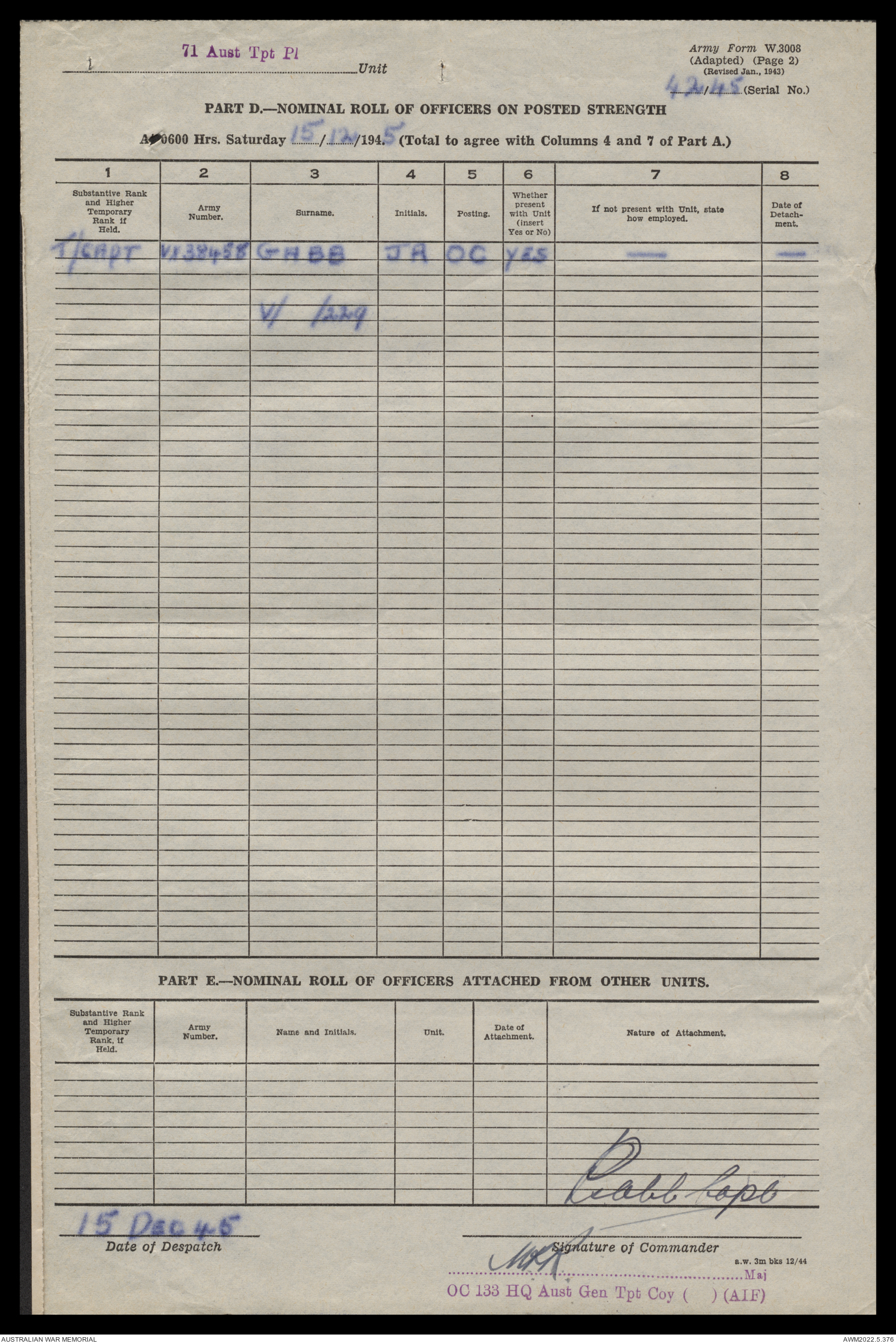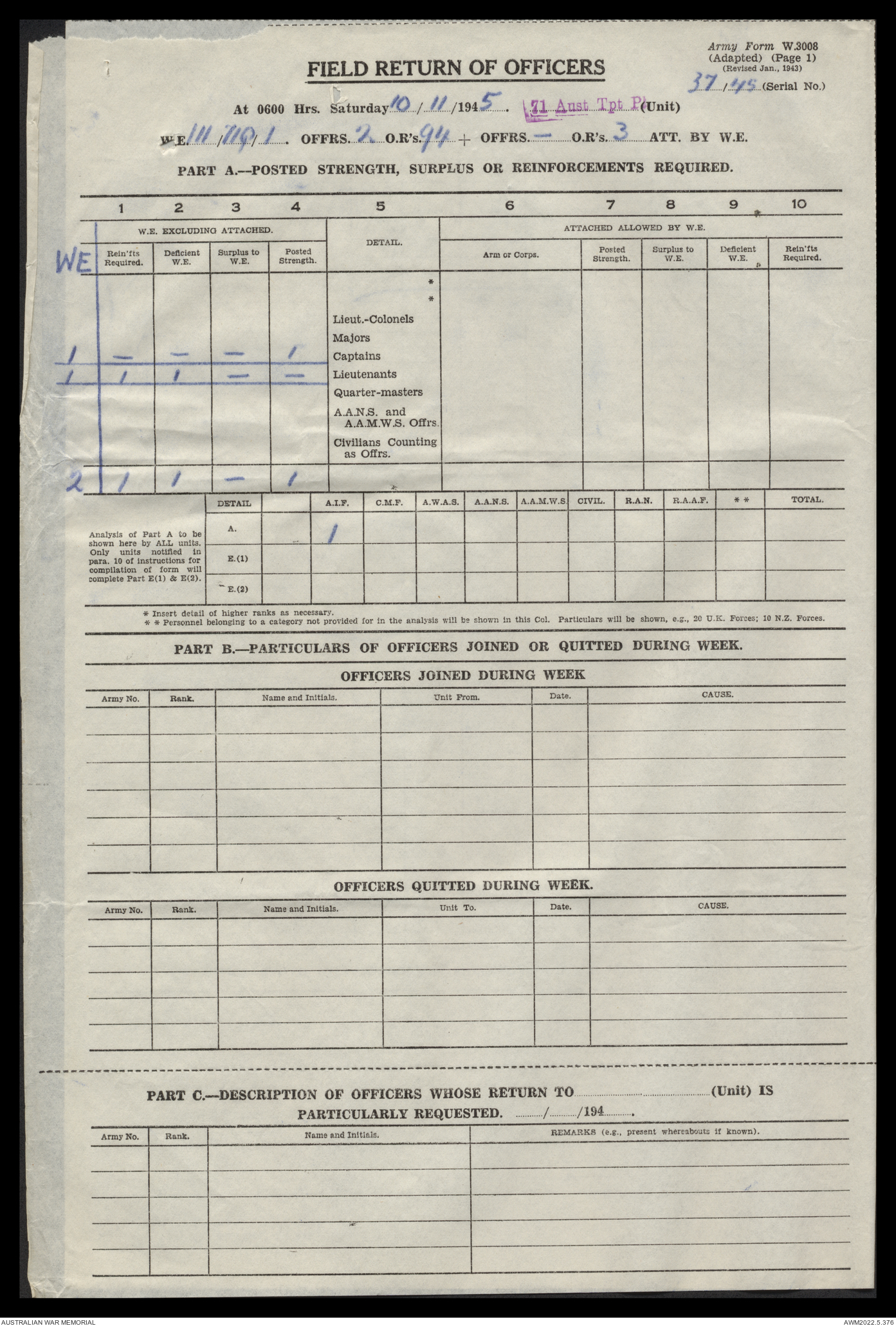 | Collection number | AWM52 10/4/71/1 |