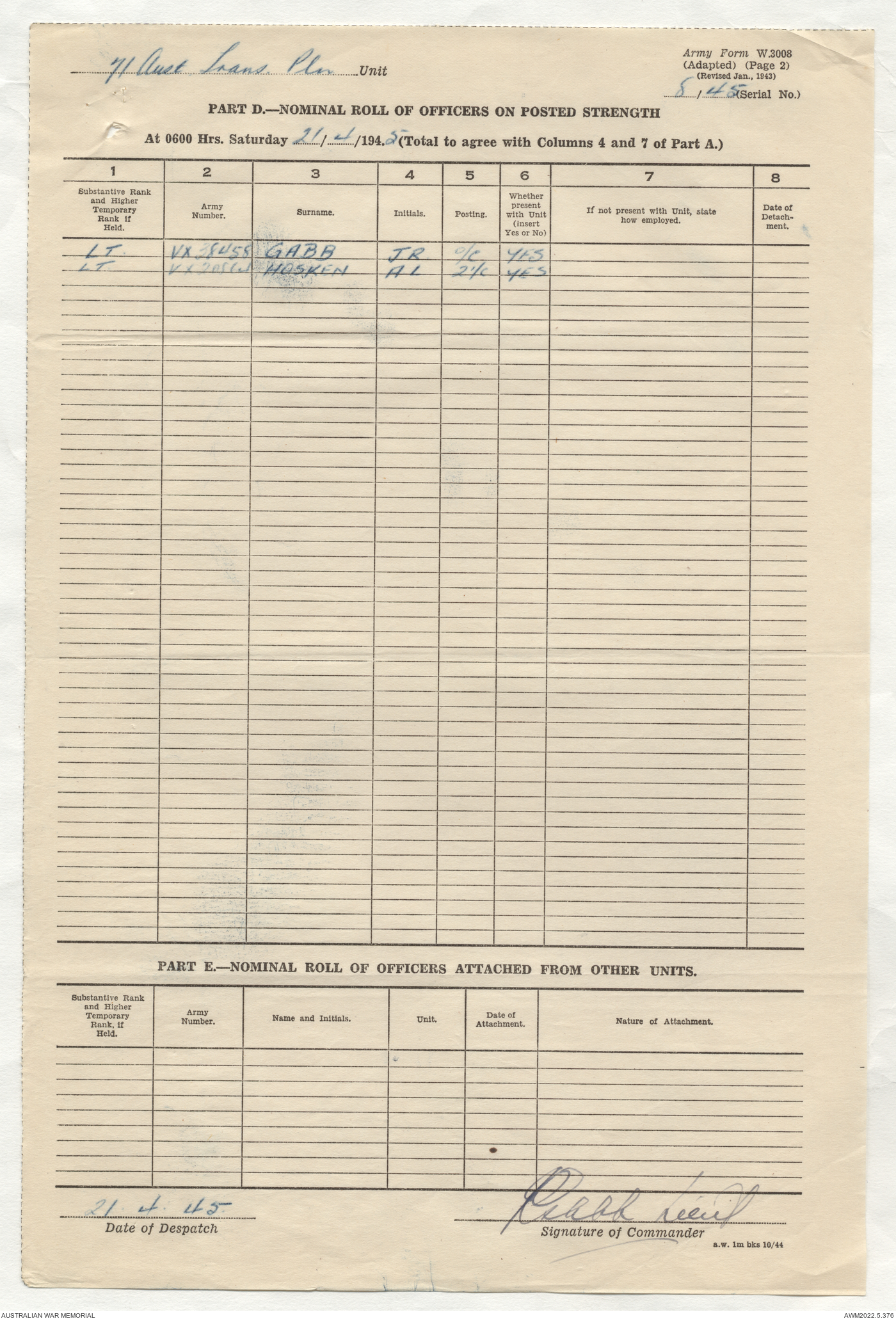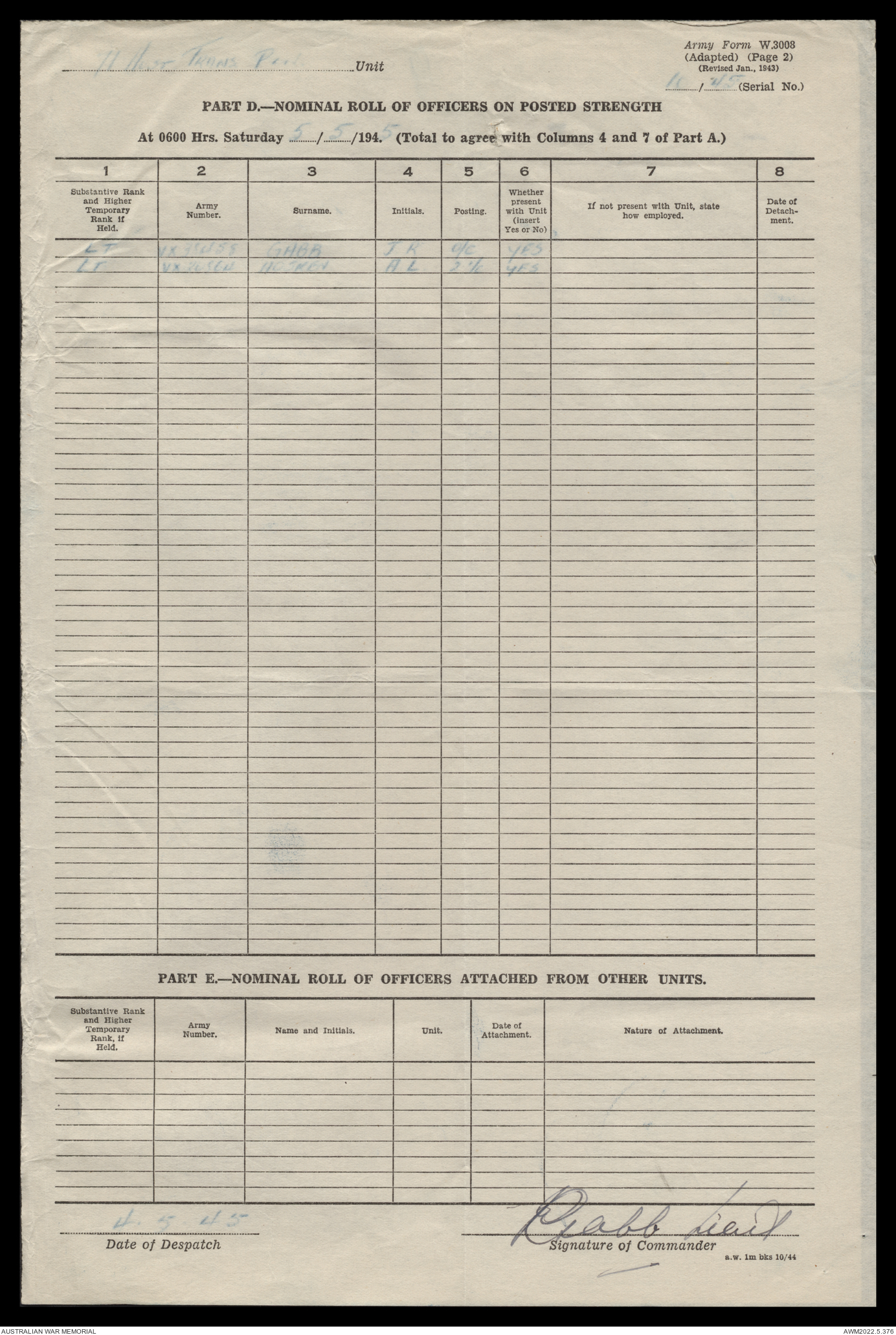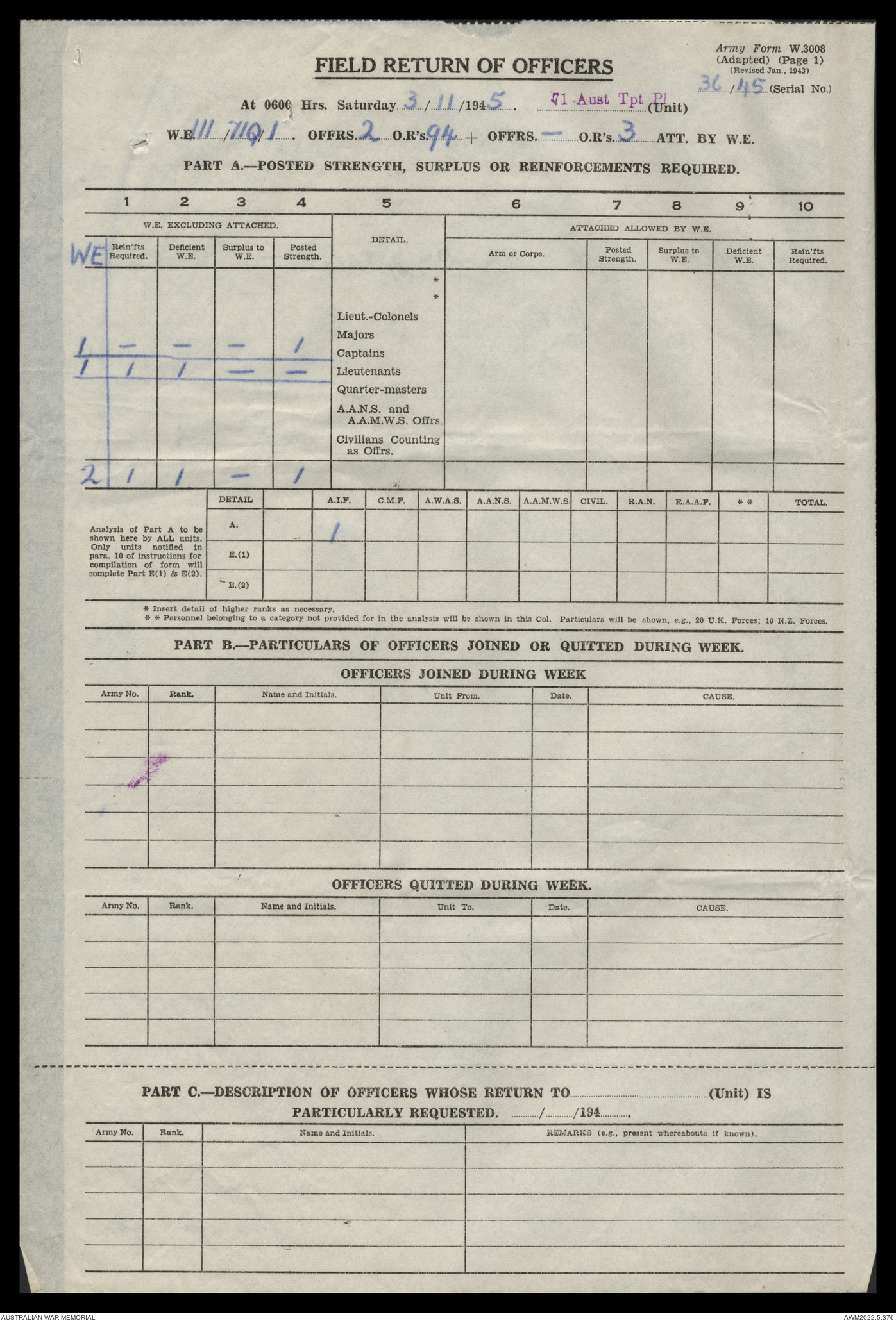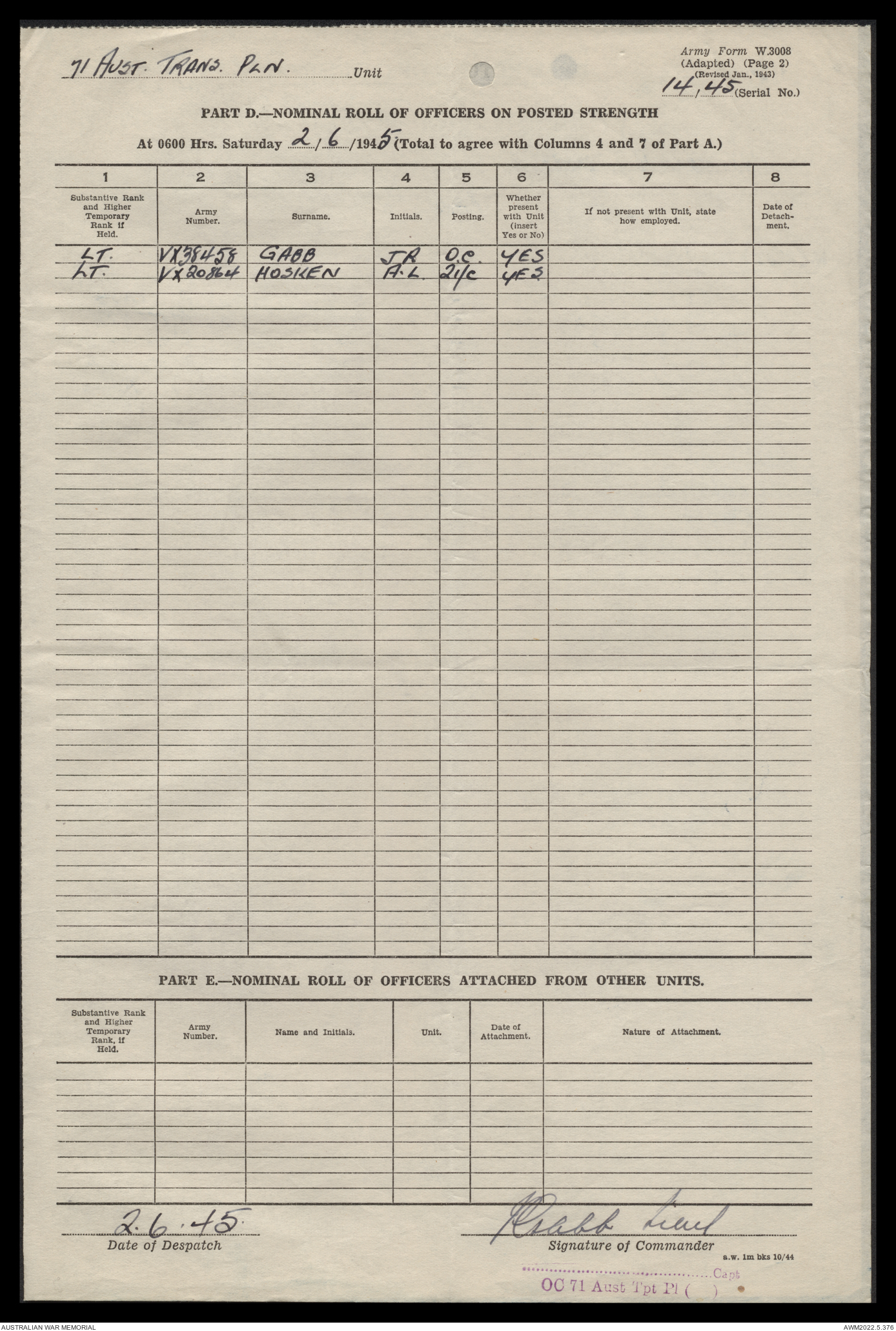 | Collection number | AWM52 10/4/71/1 |