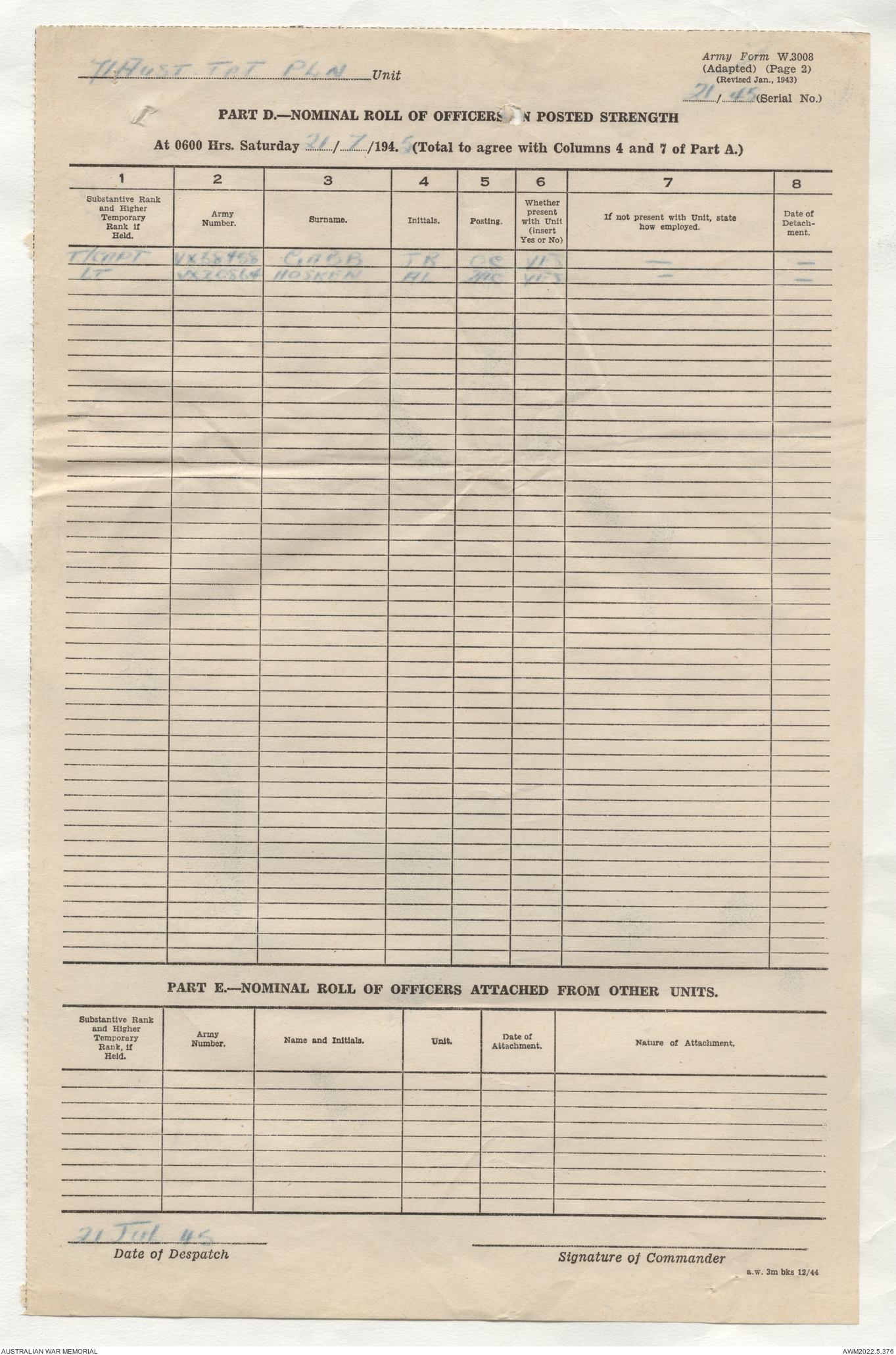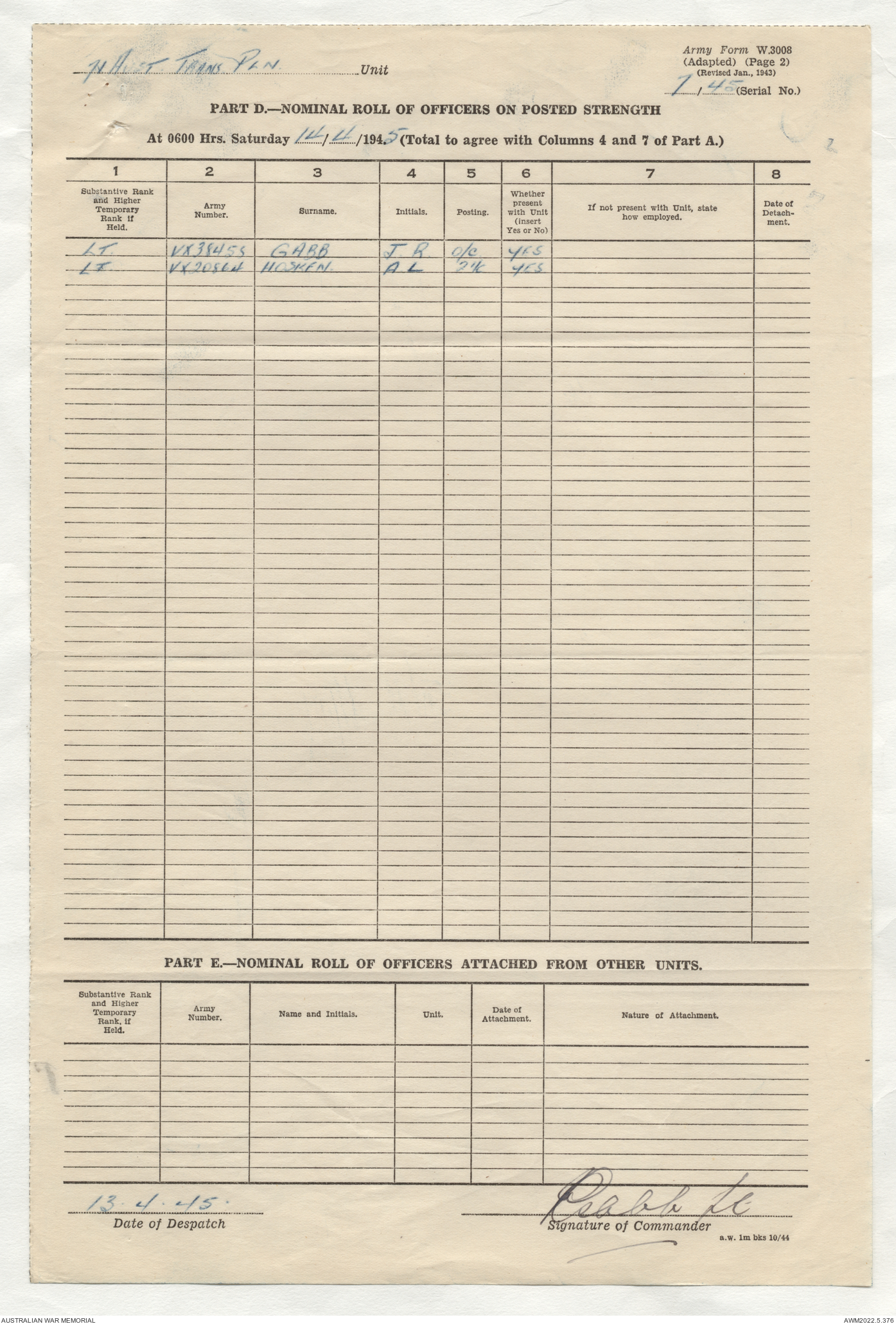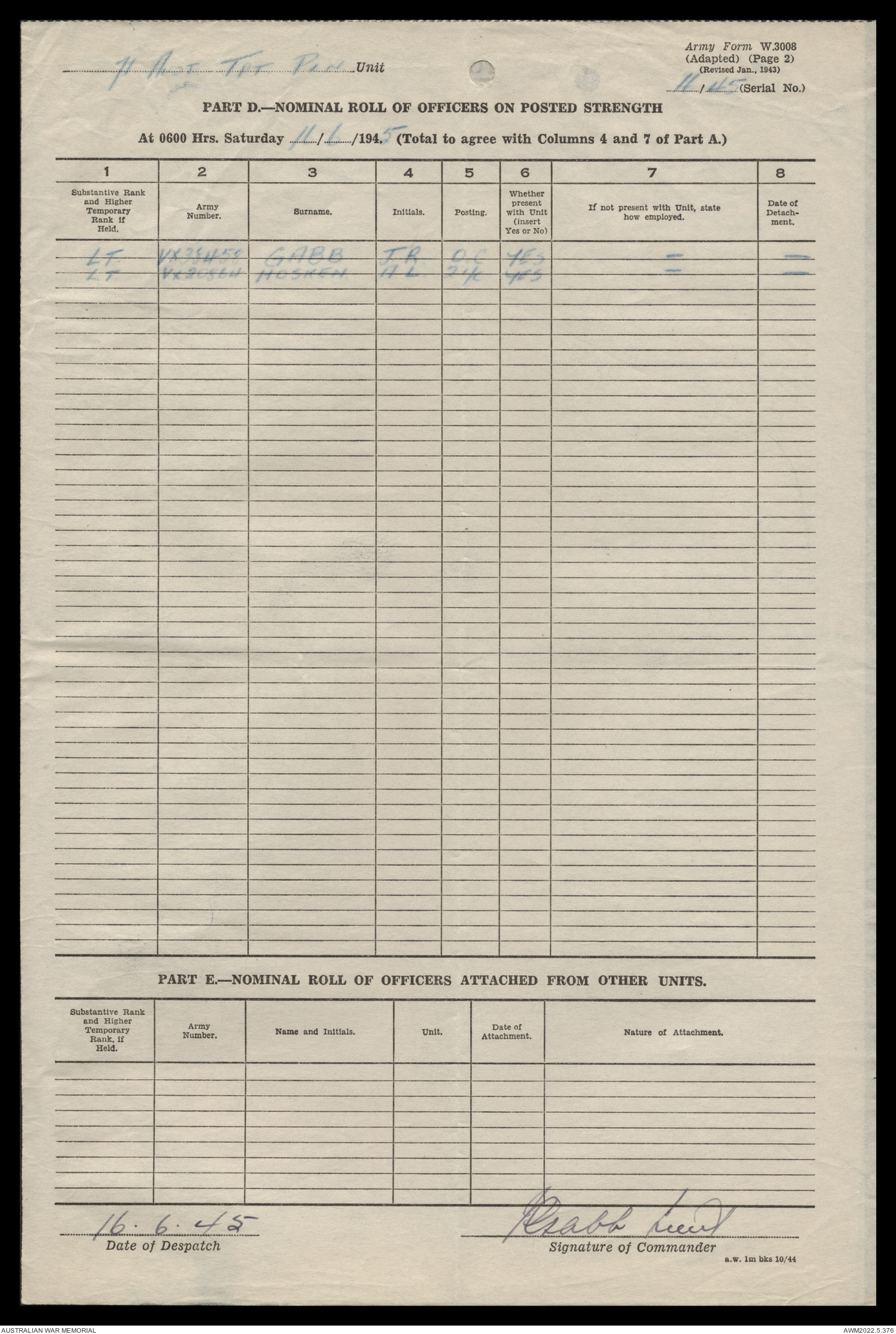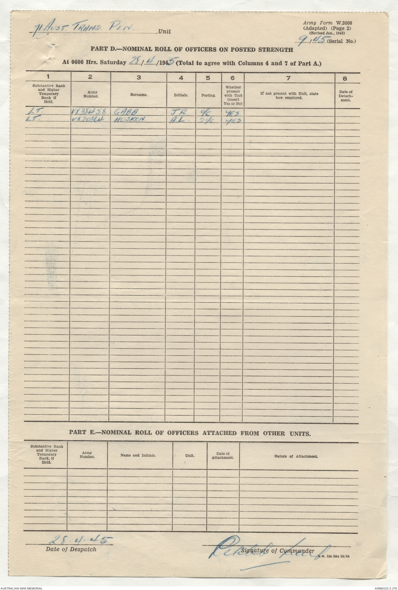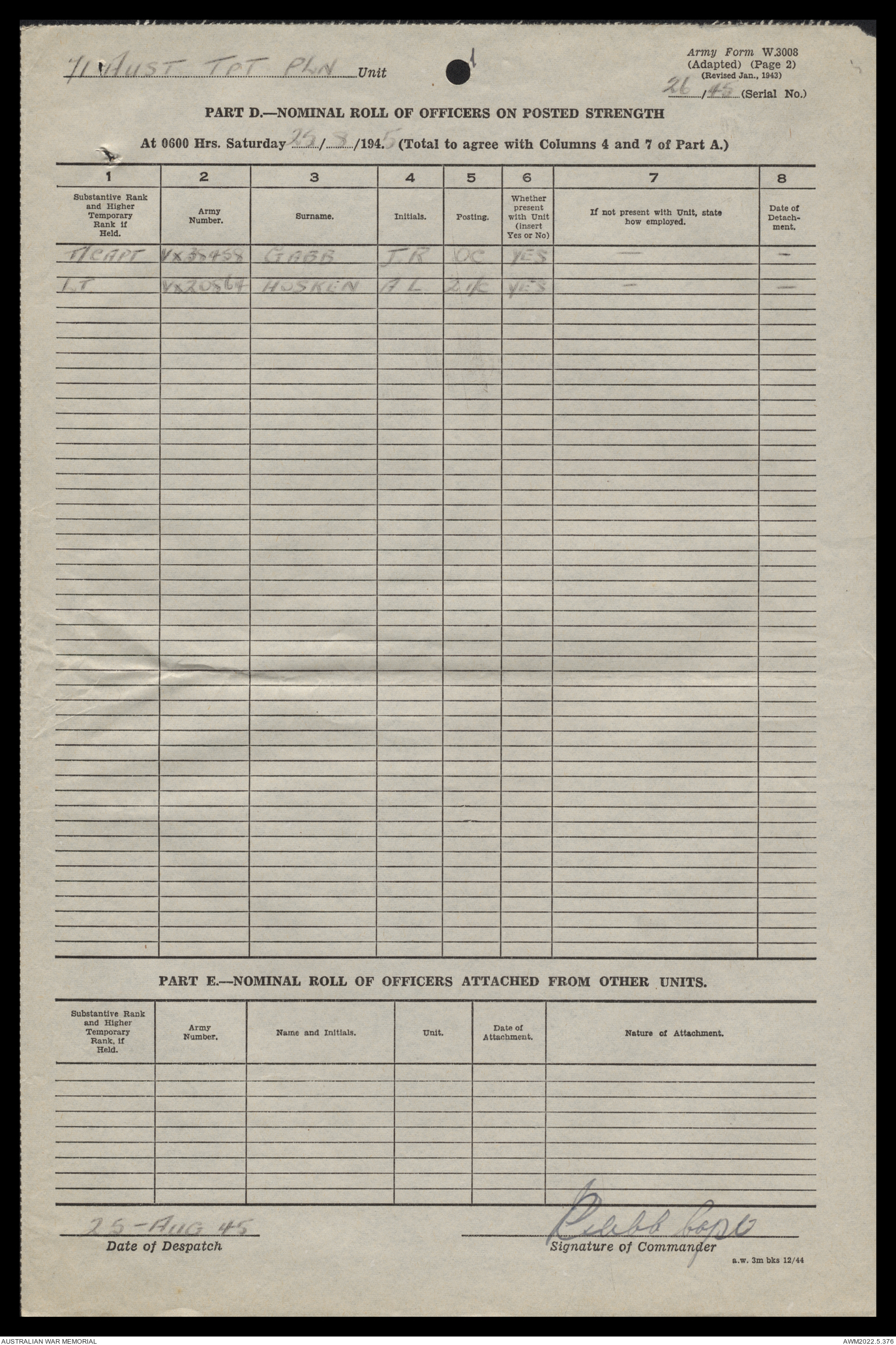 | Collection number | AWM52 10/4/71/1 |