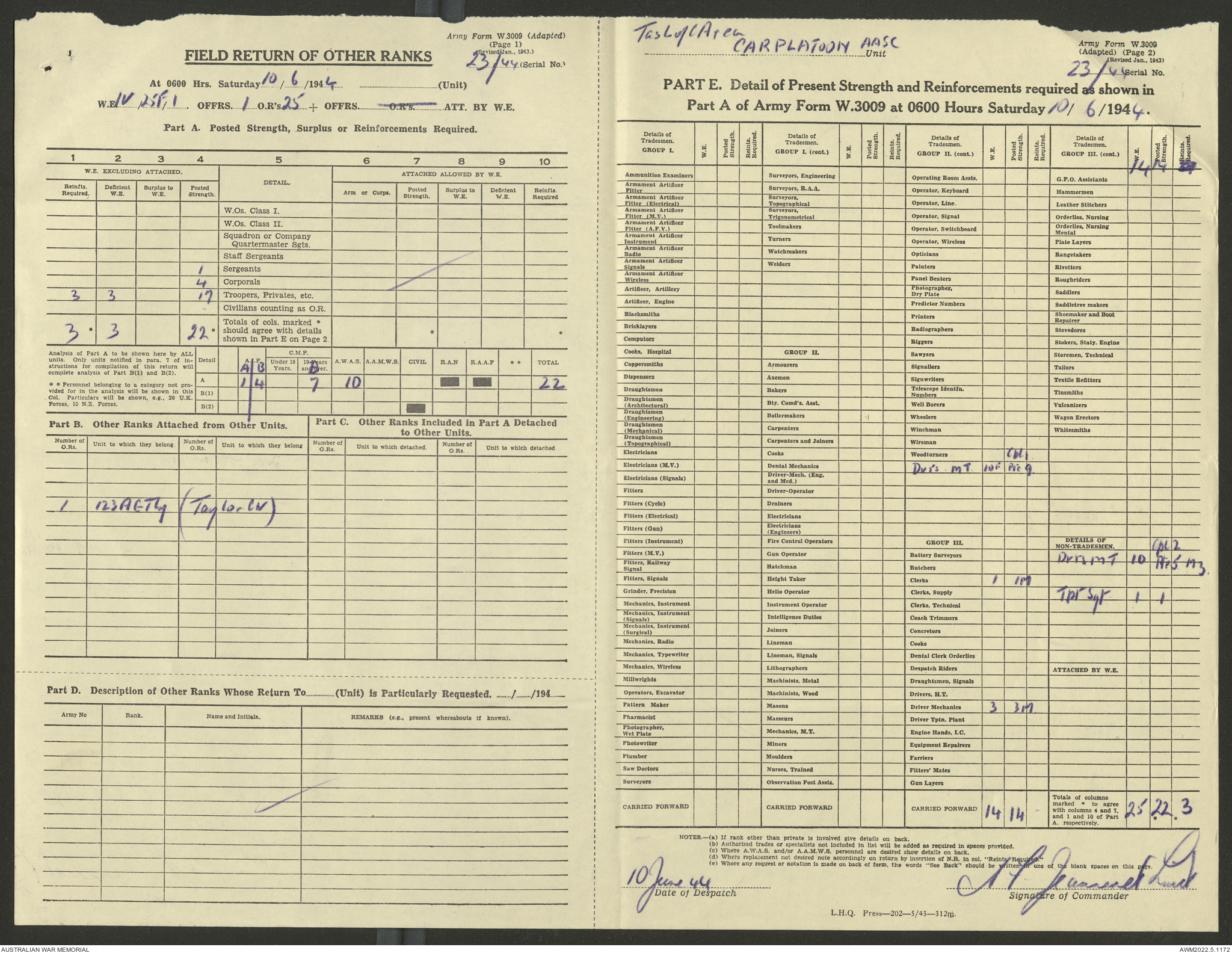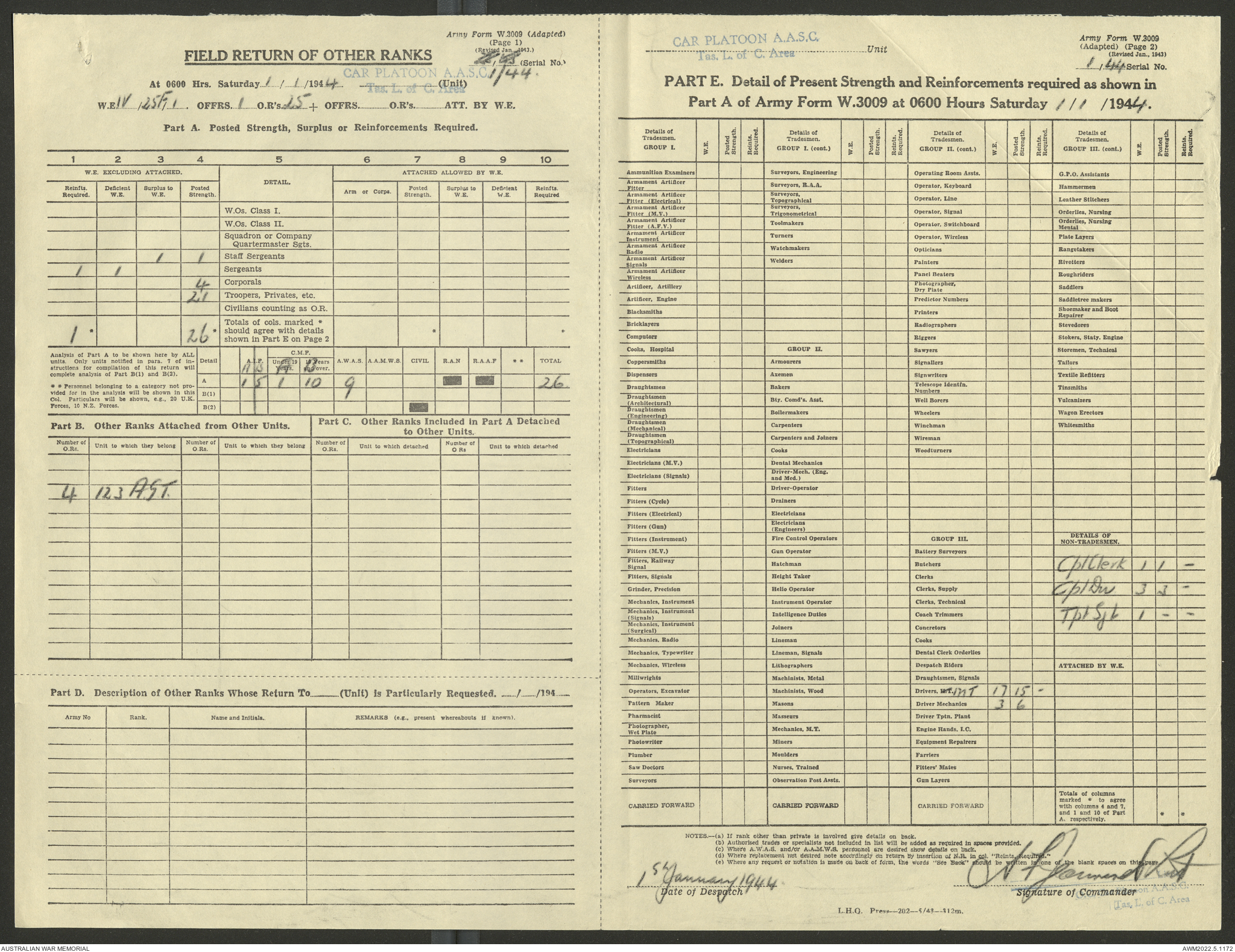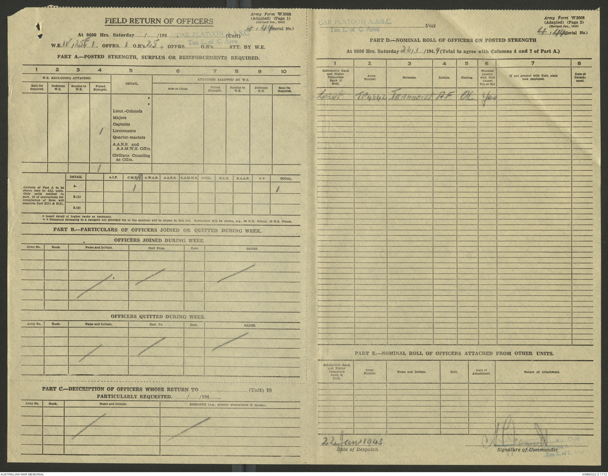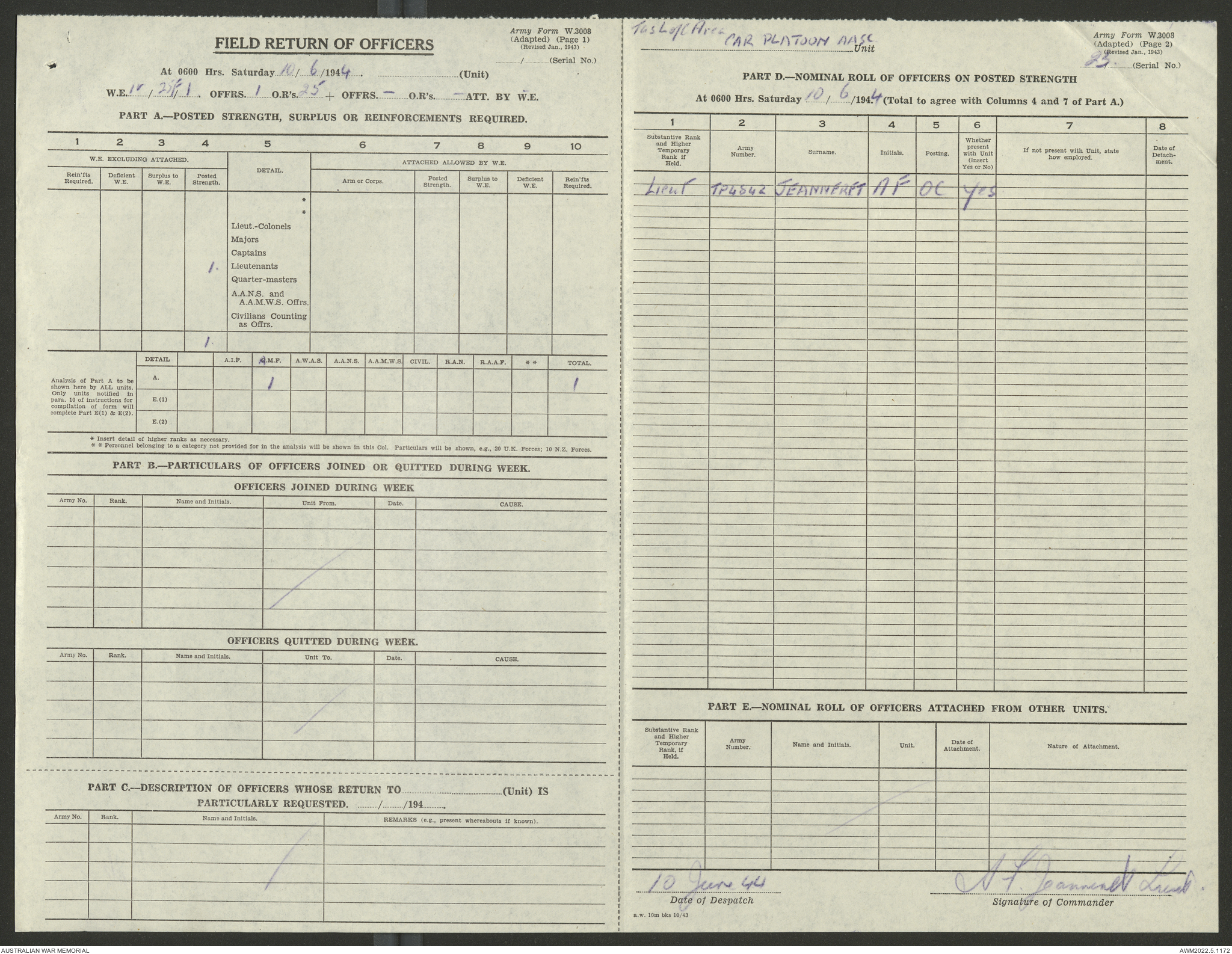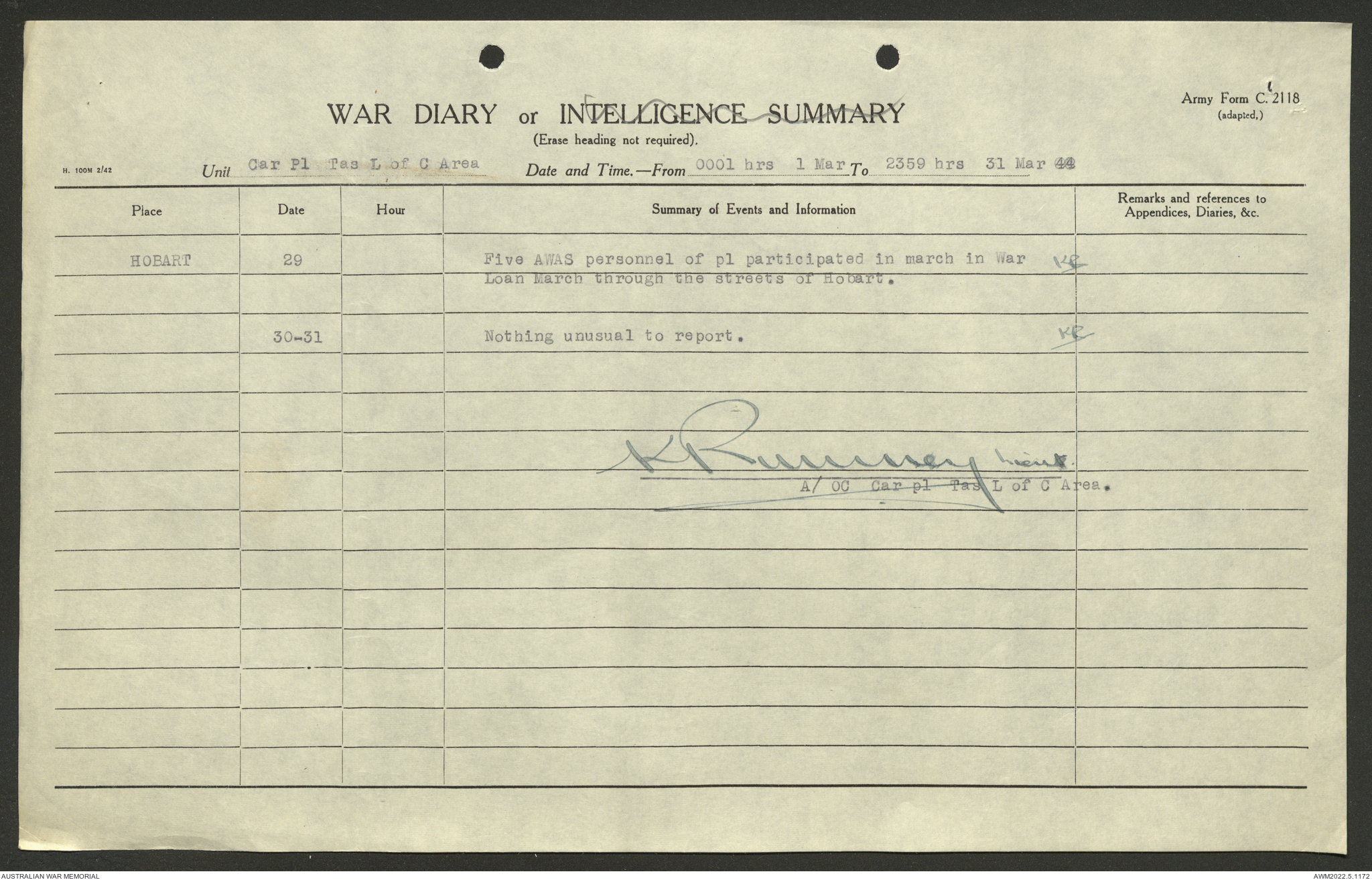 AWM52 10/12/5/2 - [Unit War Diaries, 1939-45 War] Tasmania L of C [Lines of Communication] Area Command Car Company AASC [Australian Army Service Corps] January - June 1944