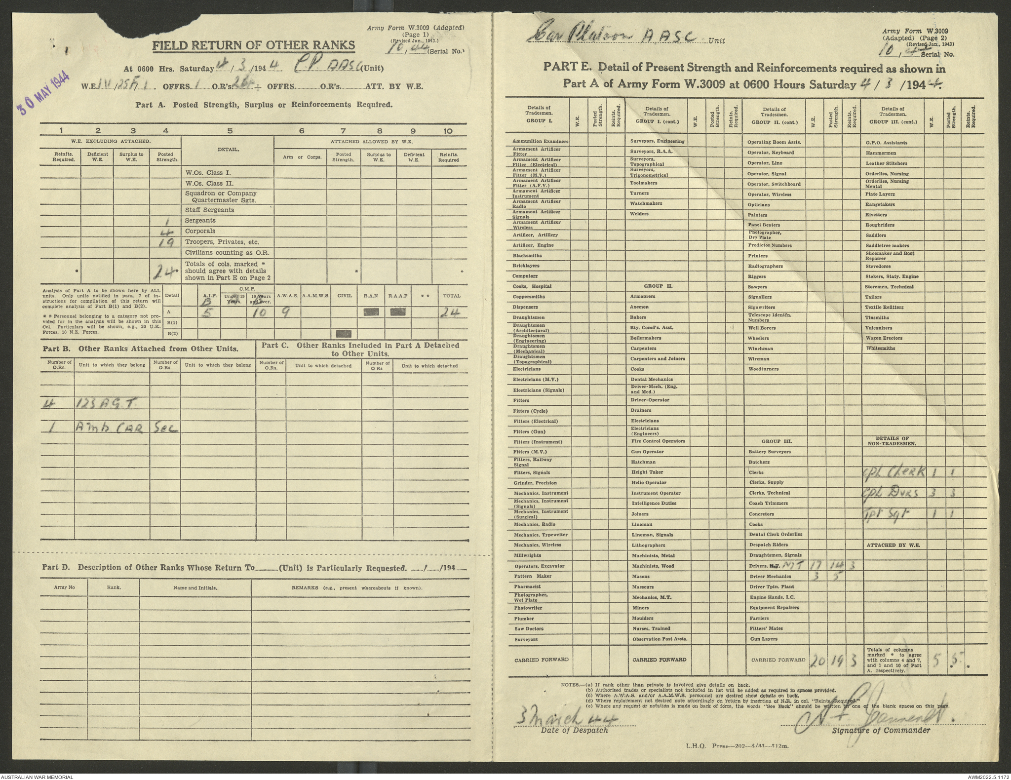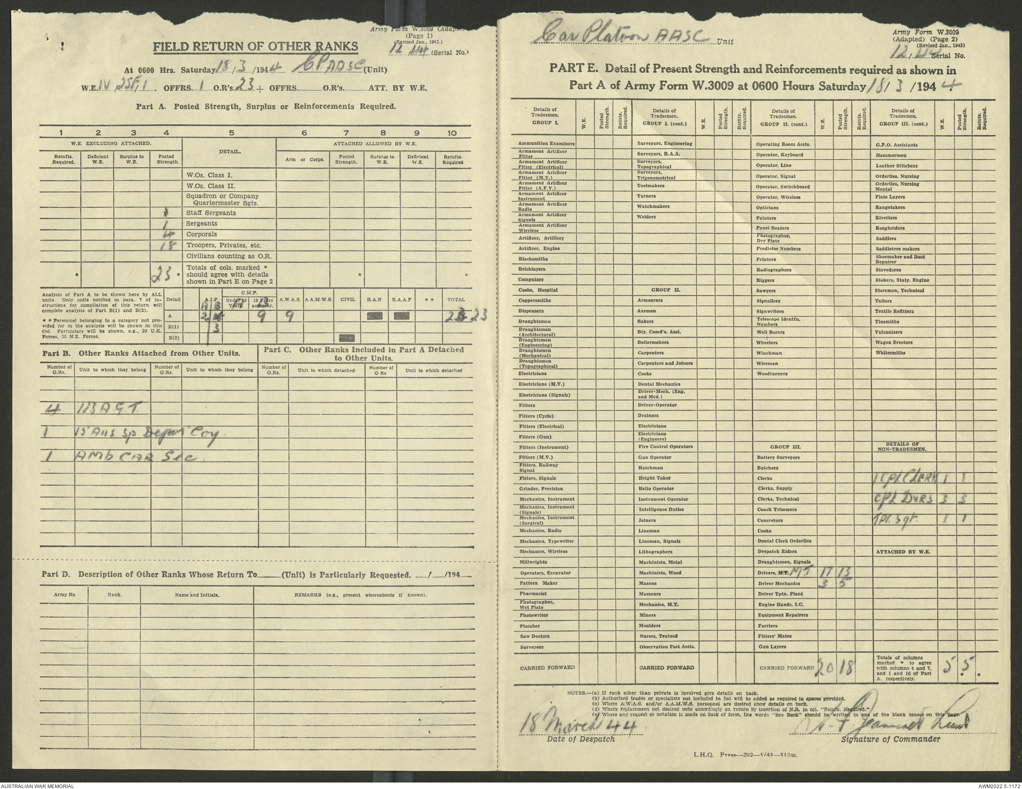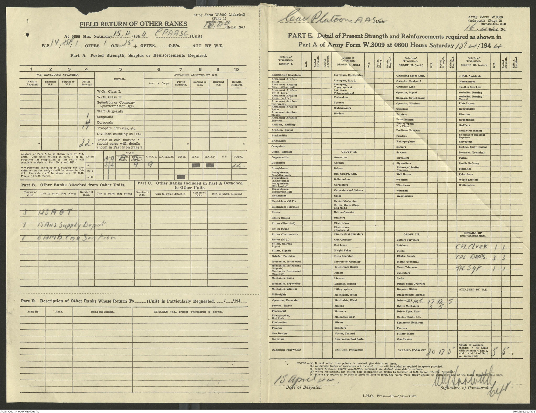 2nd AIF (Australian Imperial Force) and CMF (Citizen Military Forces) unit war diaries, 1939-45 War