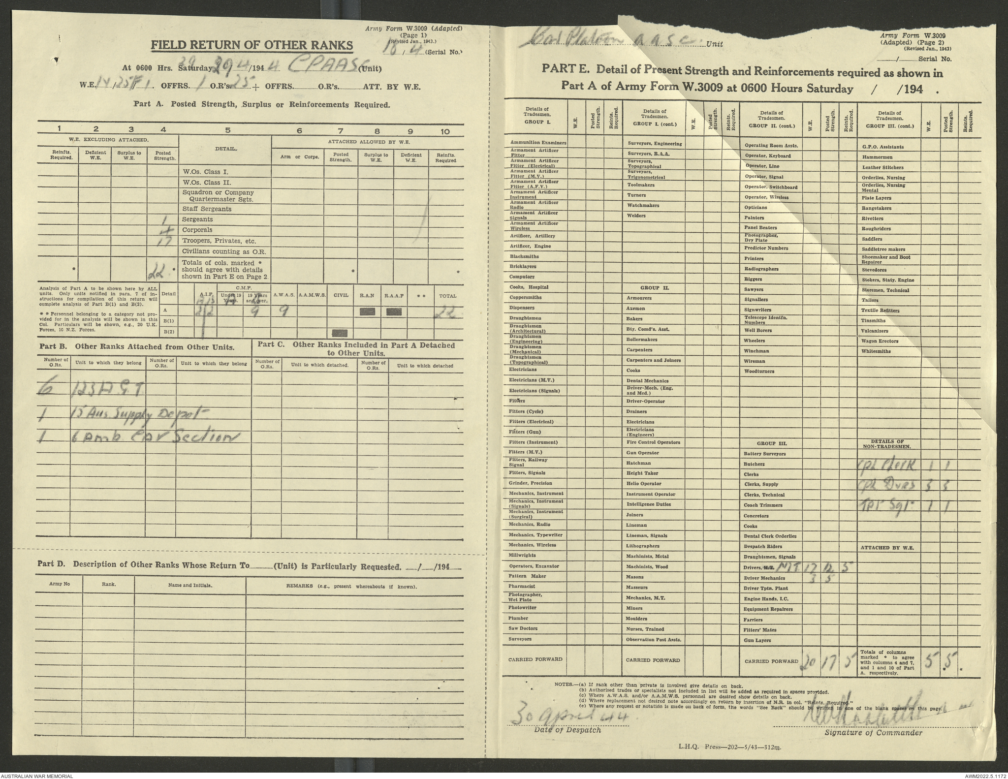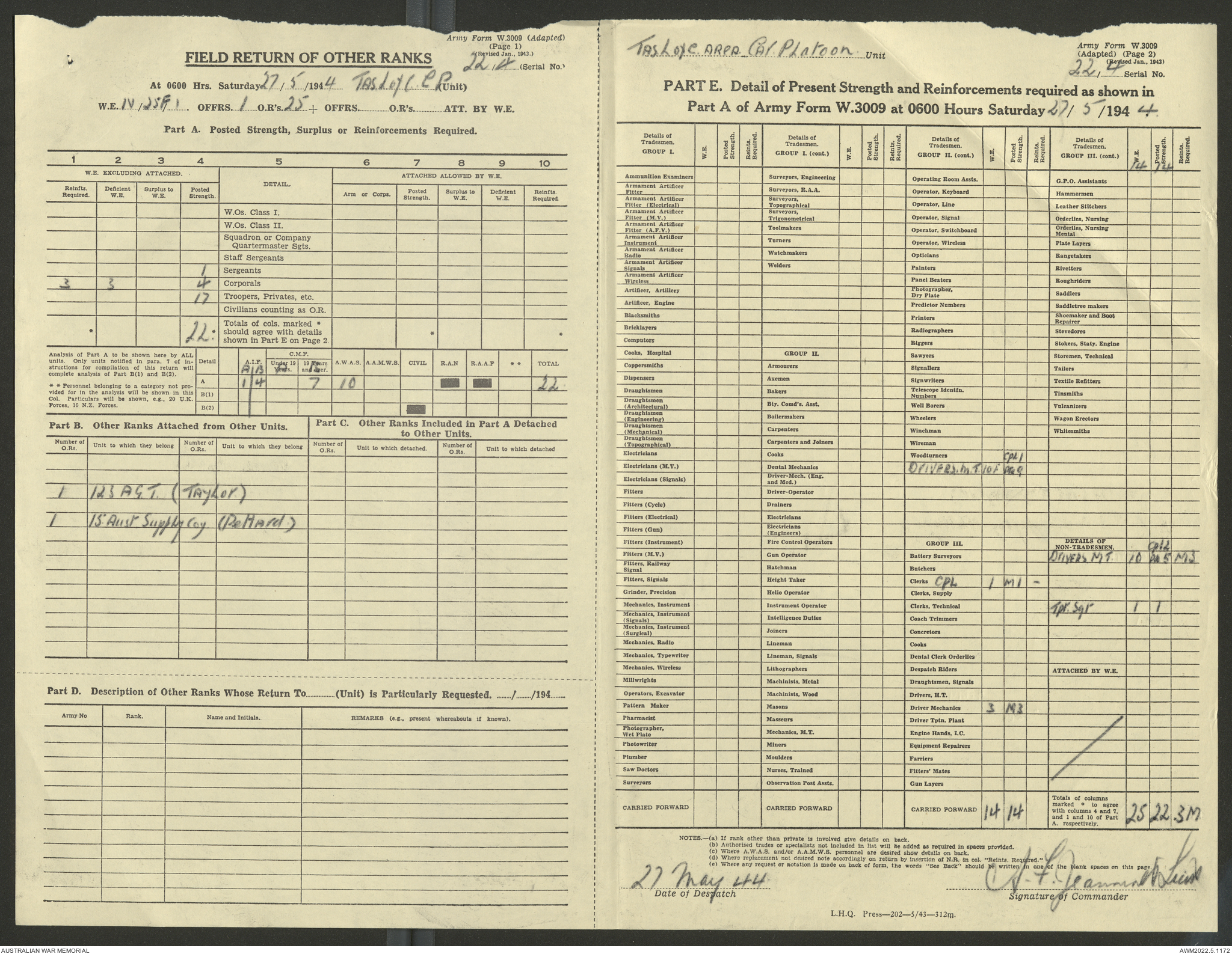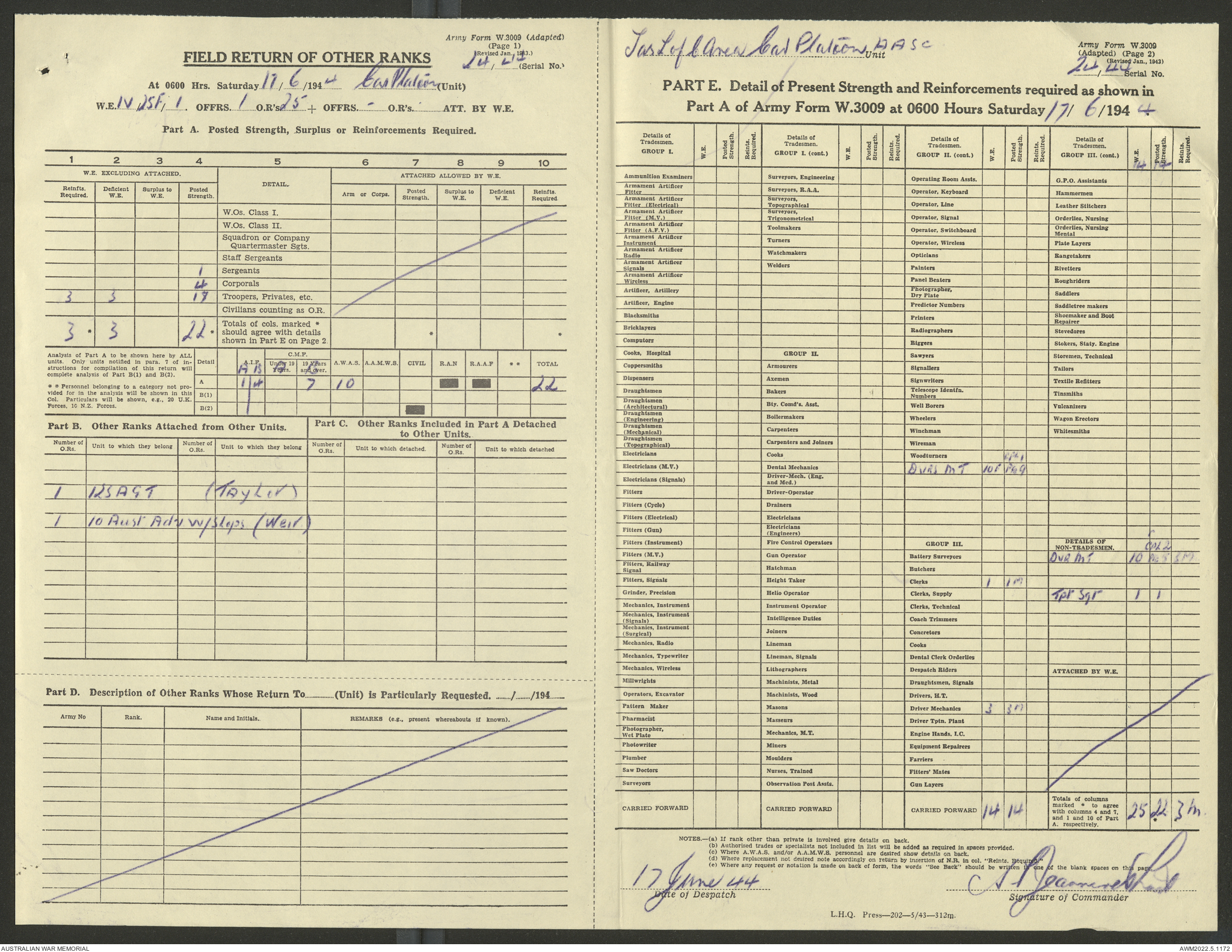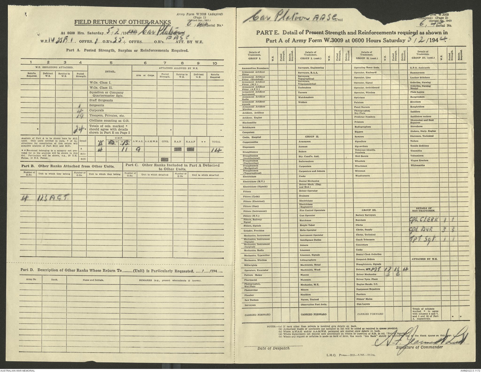 2nd AIF (Australian Imperial Force) and CMF (Citizen Military Forces) unit war diaries, 1939-45 War
