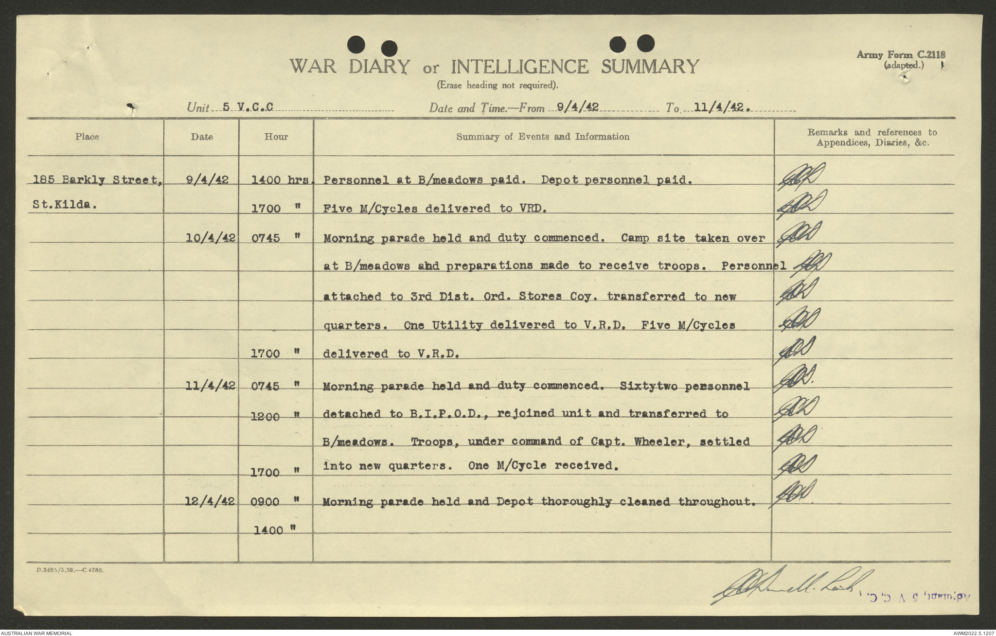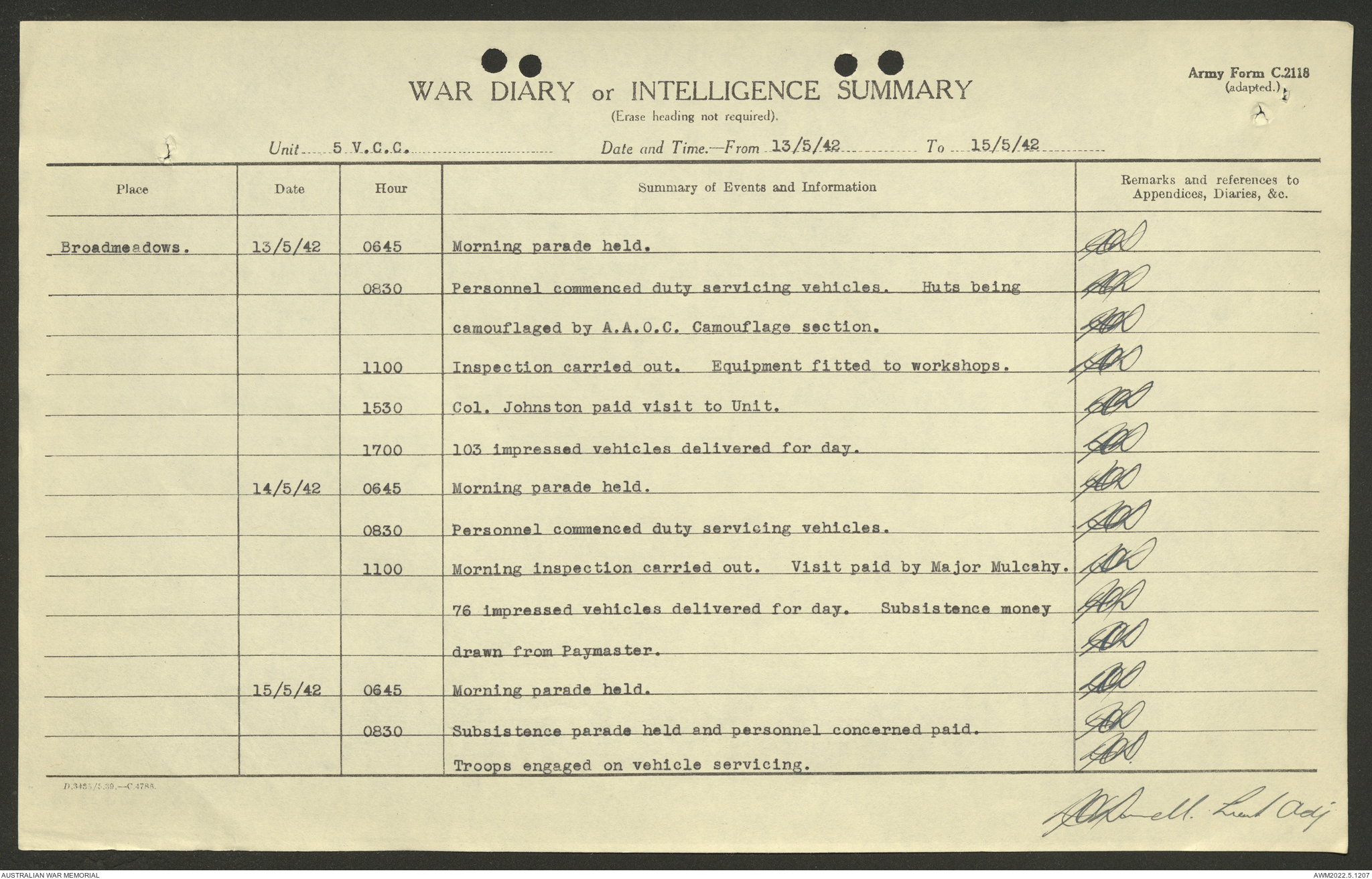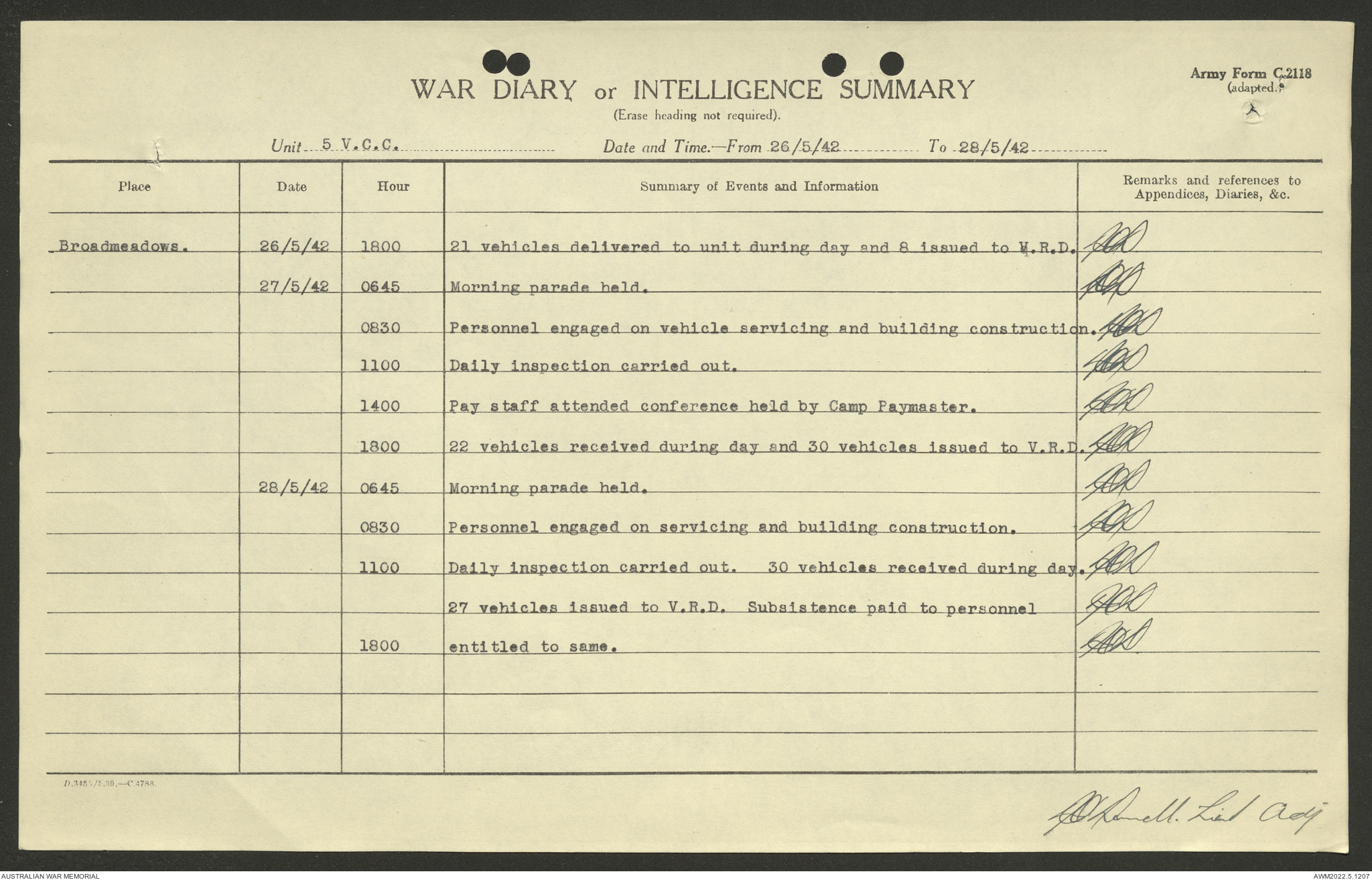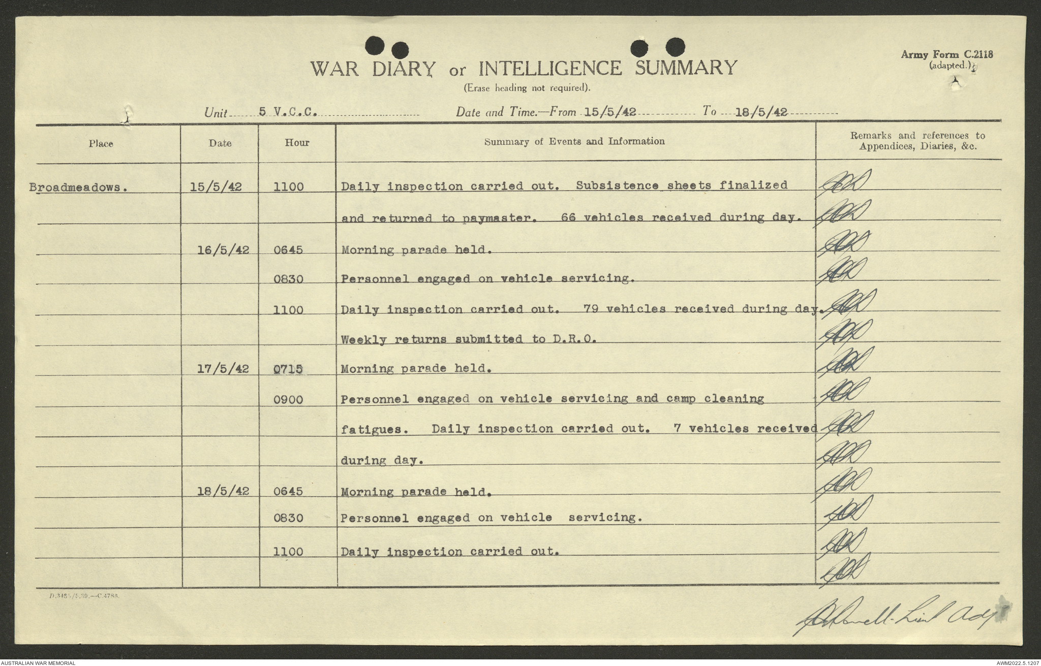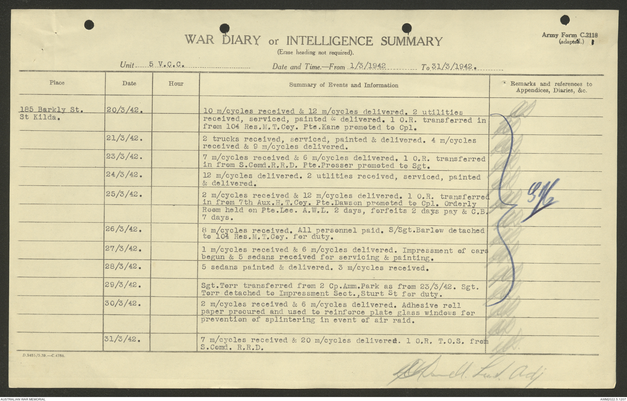 AWM52 10/15/2/1 - [Unit War Diaries, 1939-45 War] 5 Australian Vehicle Collecting Centre, January - May 1942