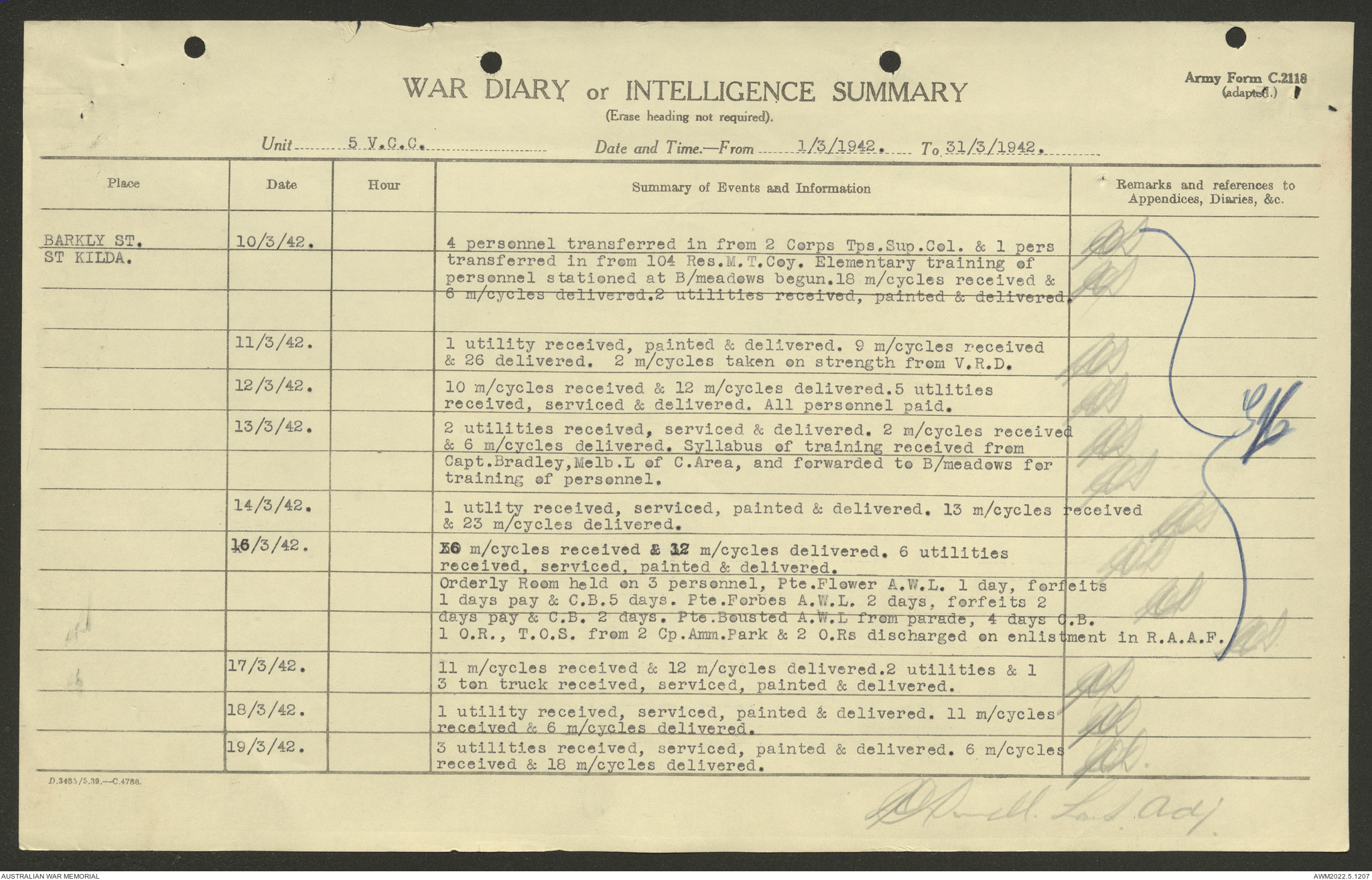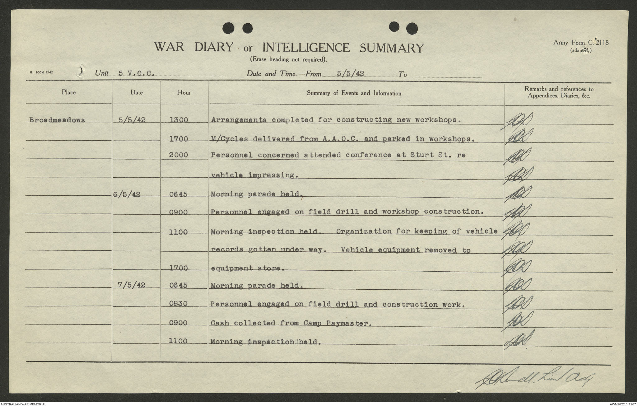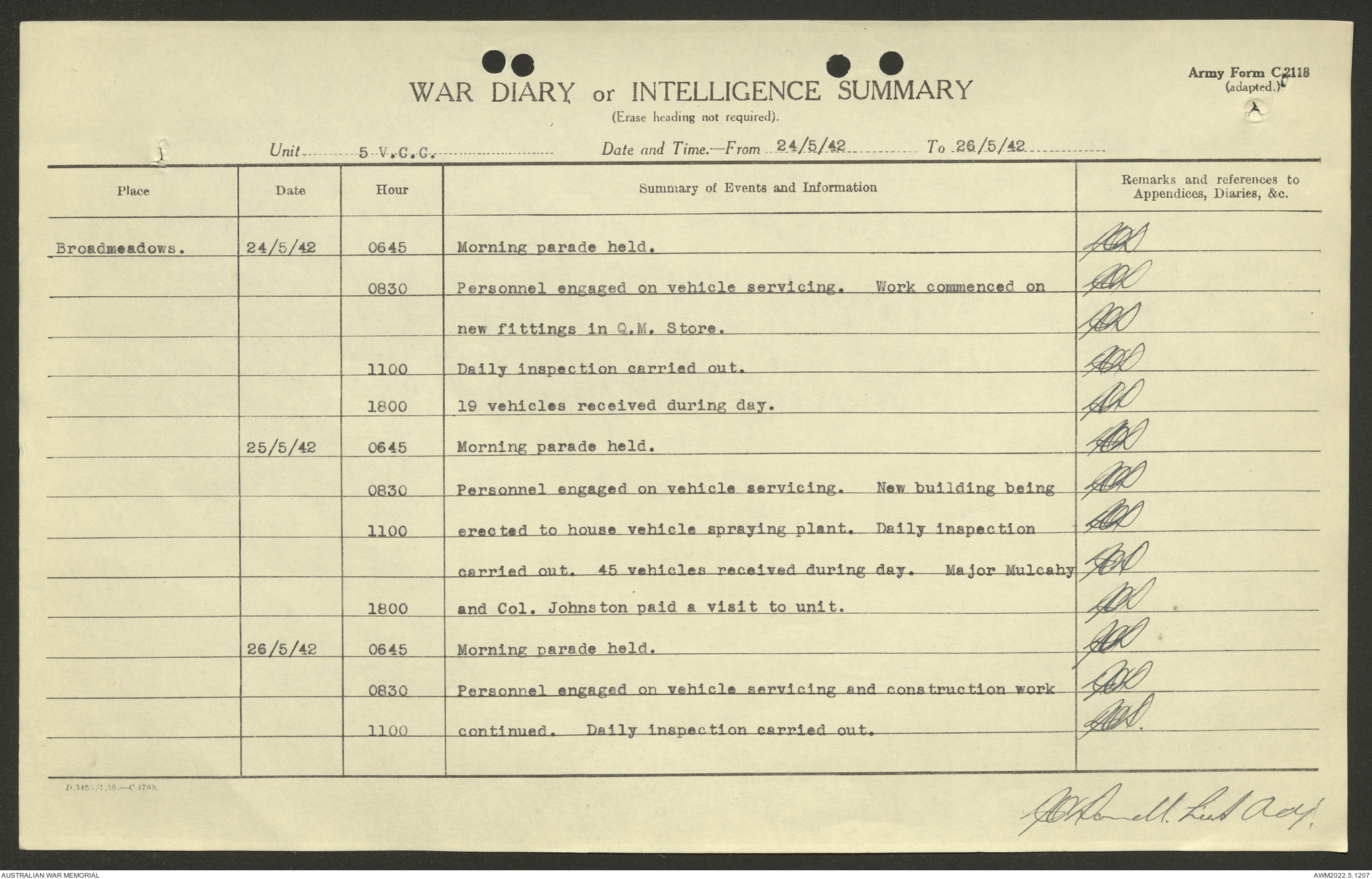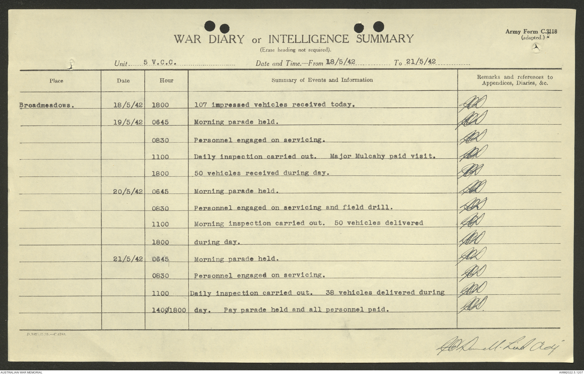 AWM52 10/15/2/1 - [Unit War Diaries, 1939-45 War] 5 Australian Vehicle Collecting Centre, January - May 1942