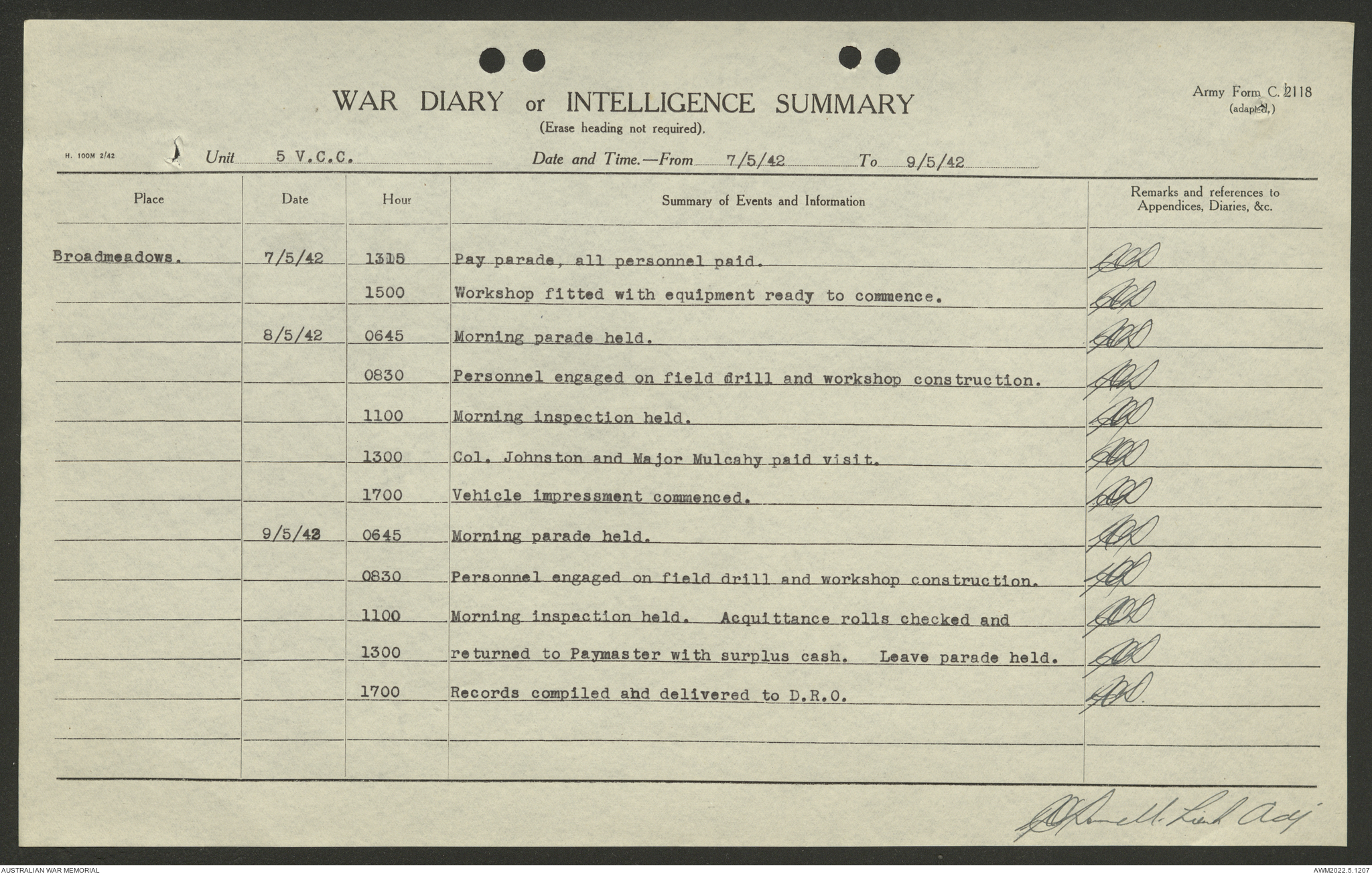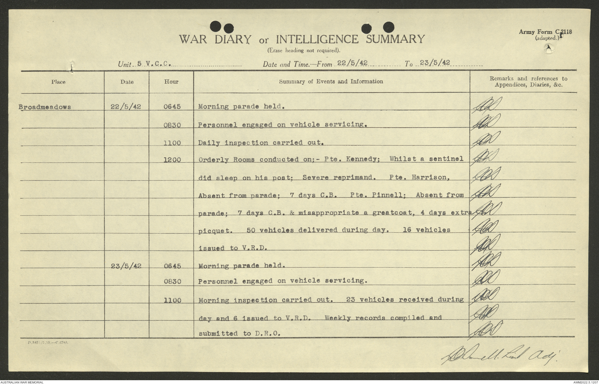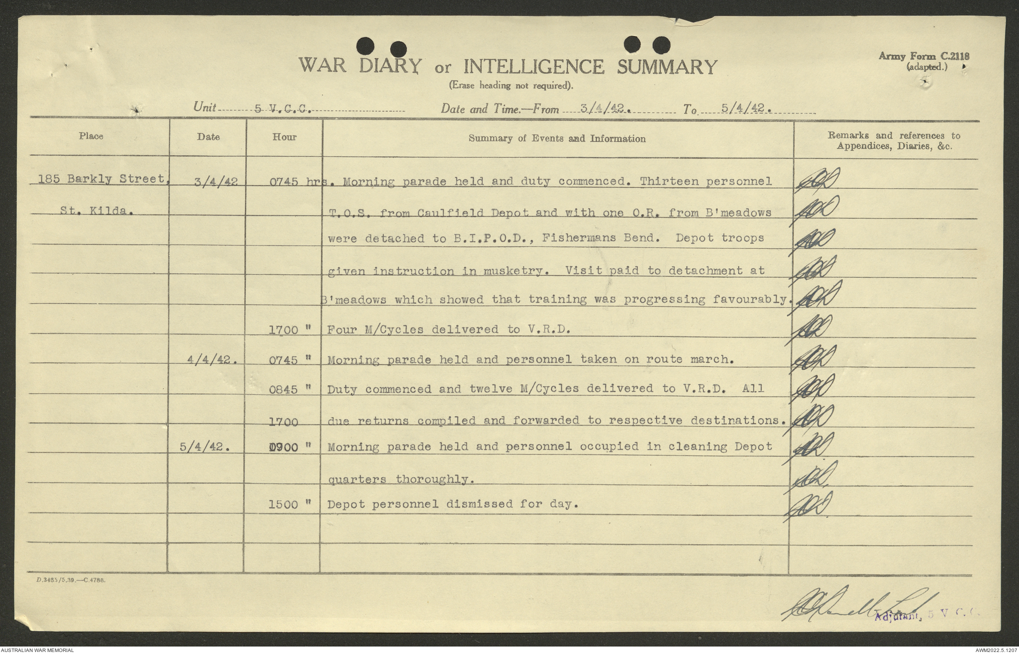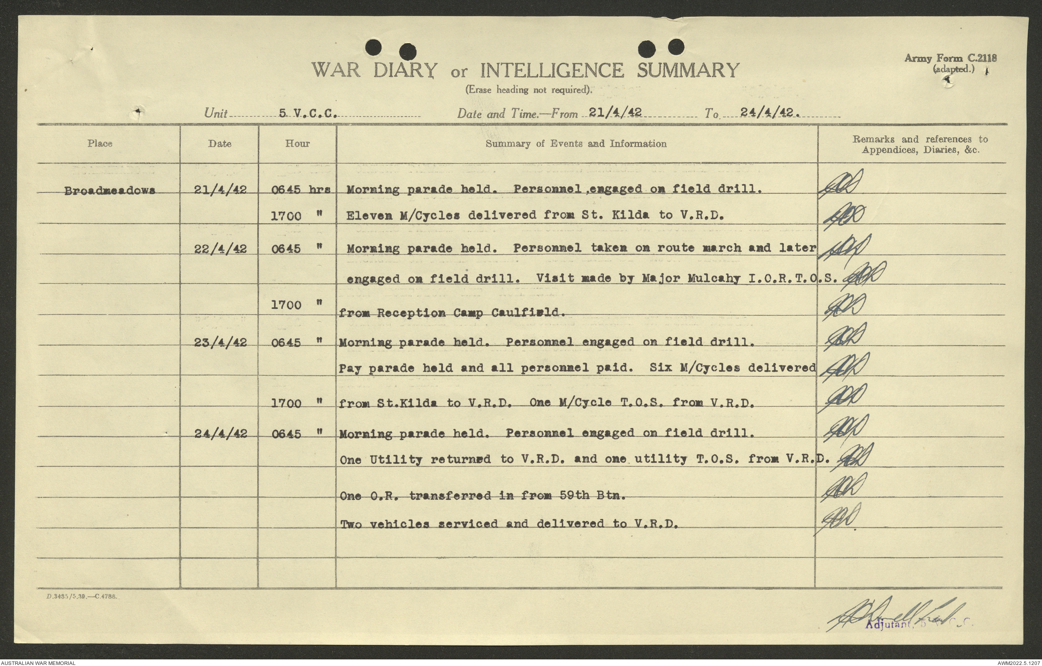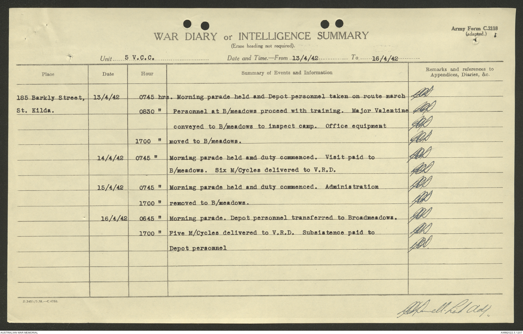 AWM52 10/15/2/1 - [Unit War Diaries, 1939-45 War] 5 Australian Vehicle Collecting Centre, January - May 1942