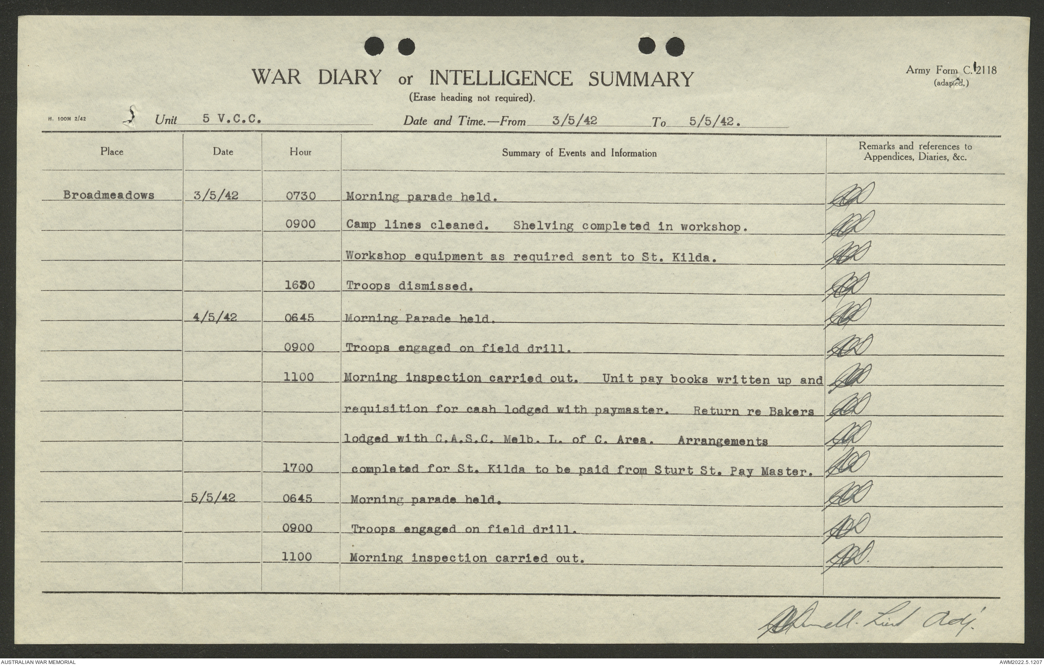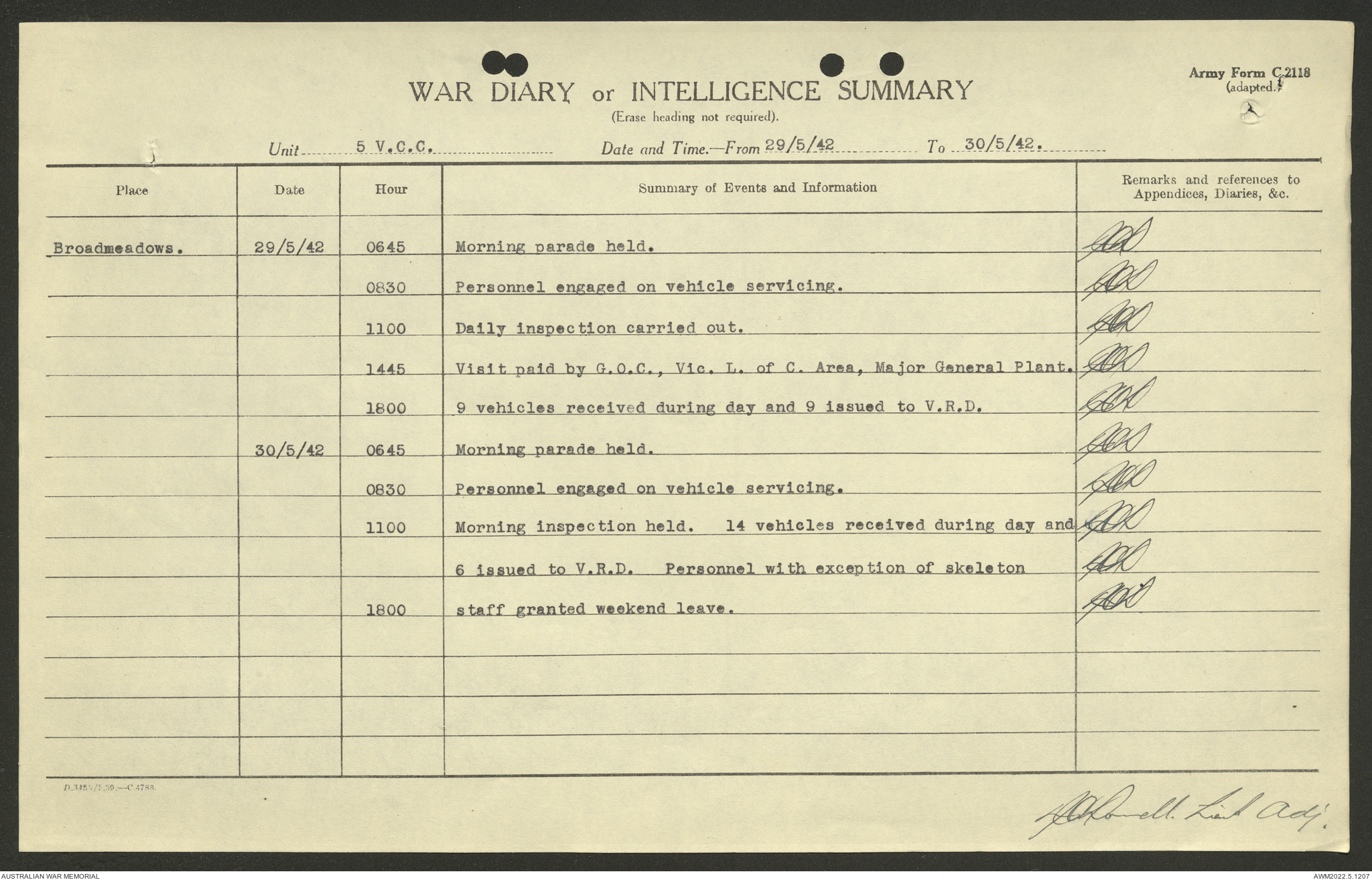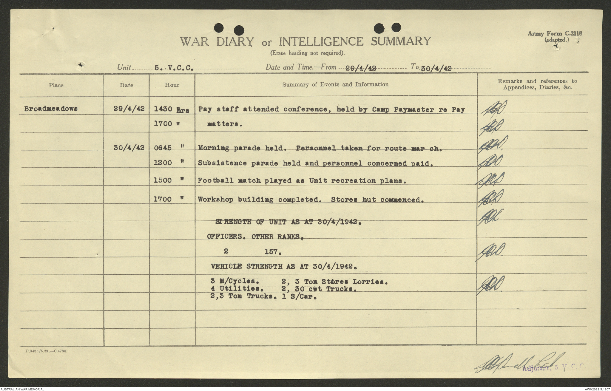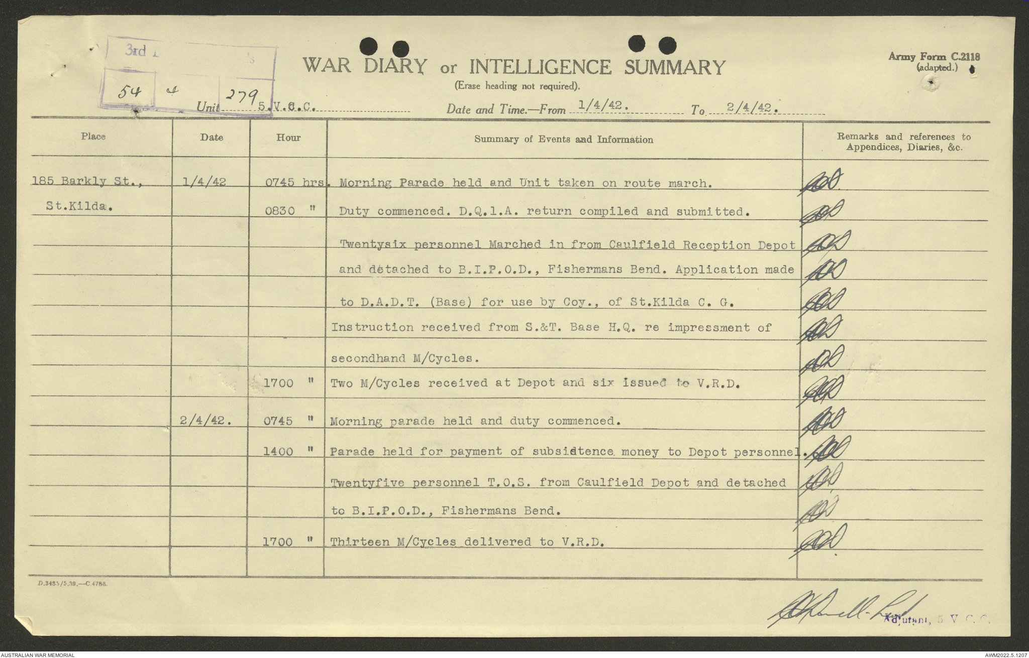 AWM52 10/15/2/1 - [Unit War Diaries, 1939-45 War] 5 Australian Vehicle Collecting Centre, January - May 1942