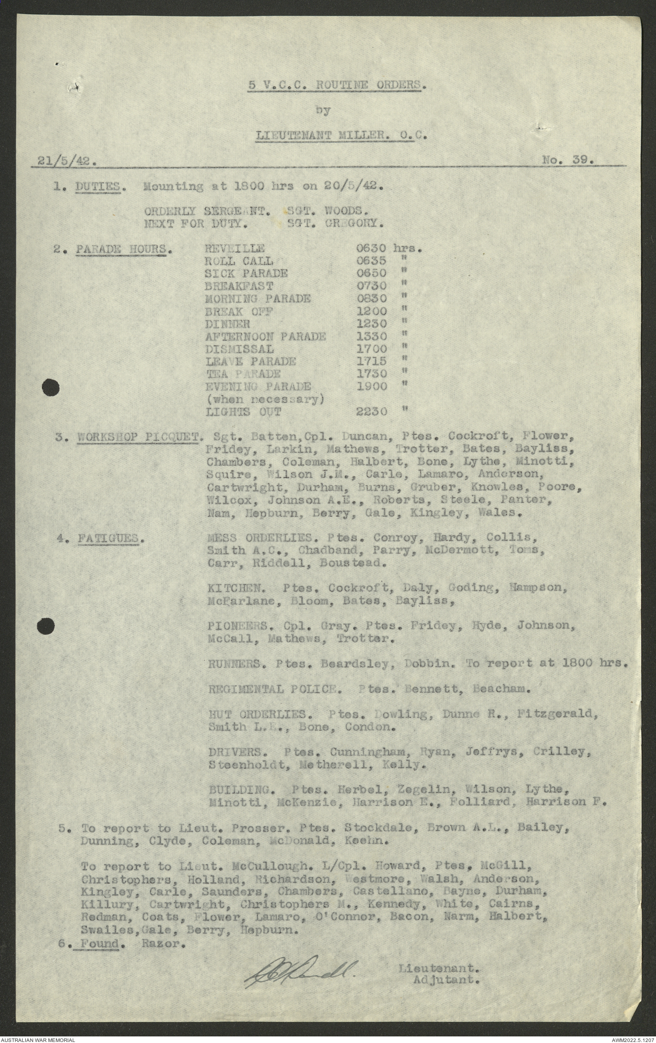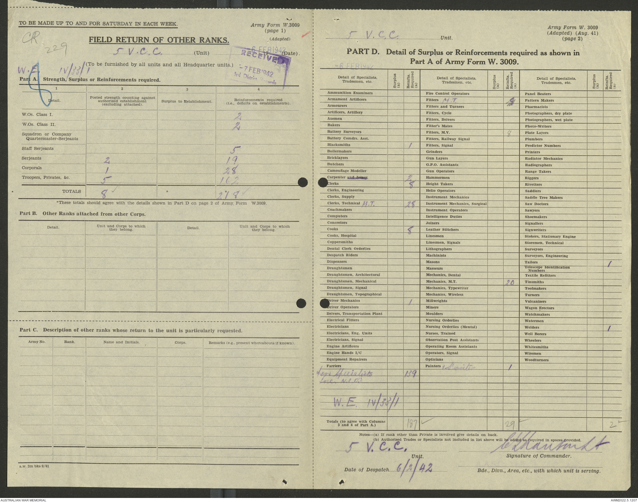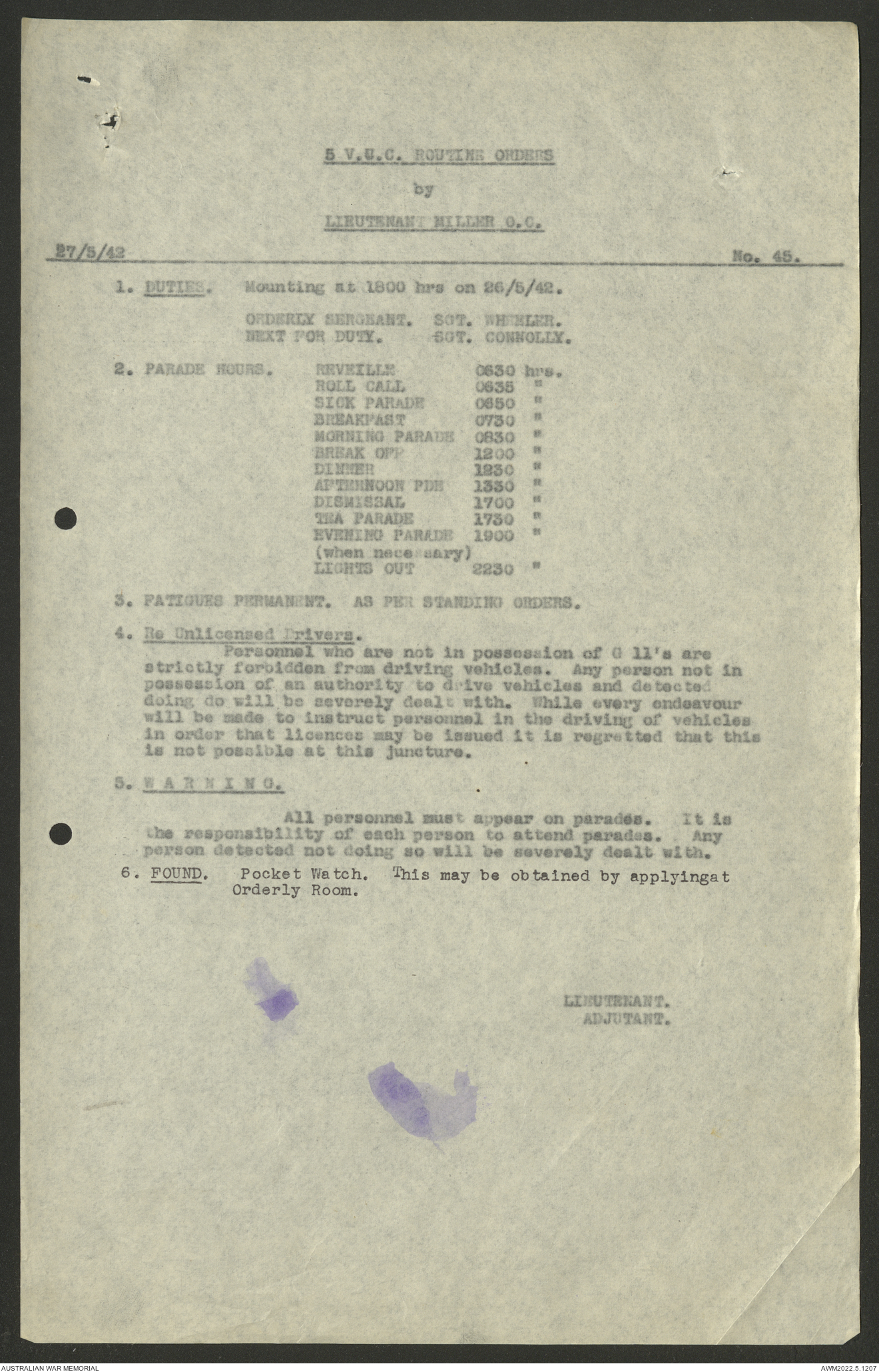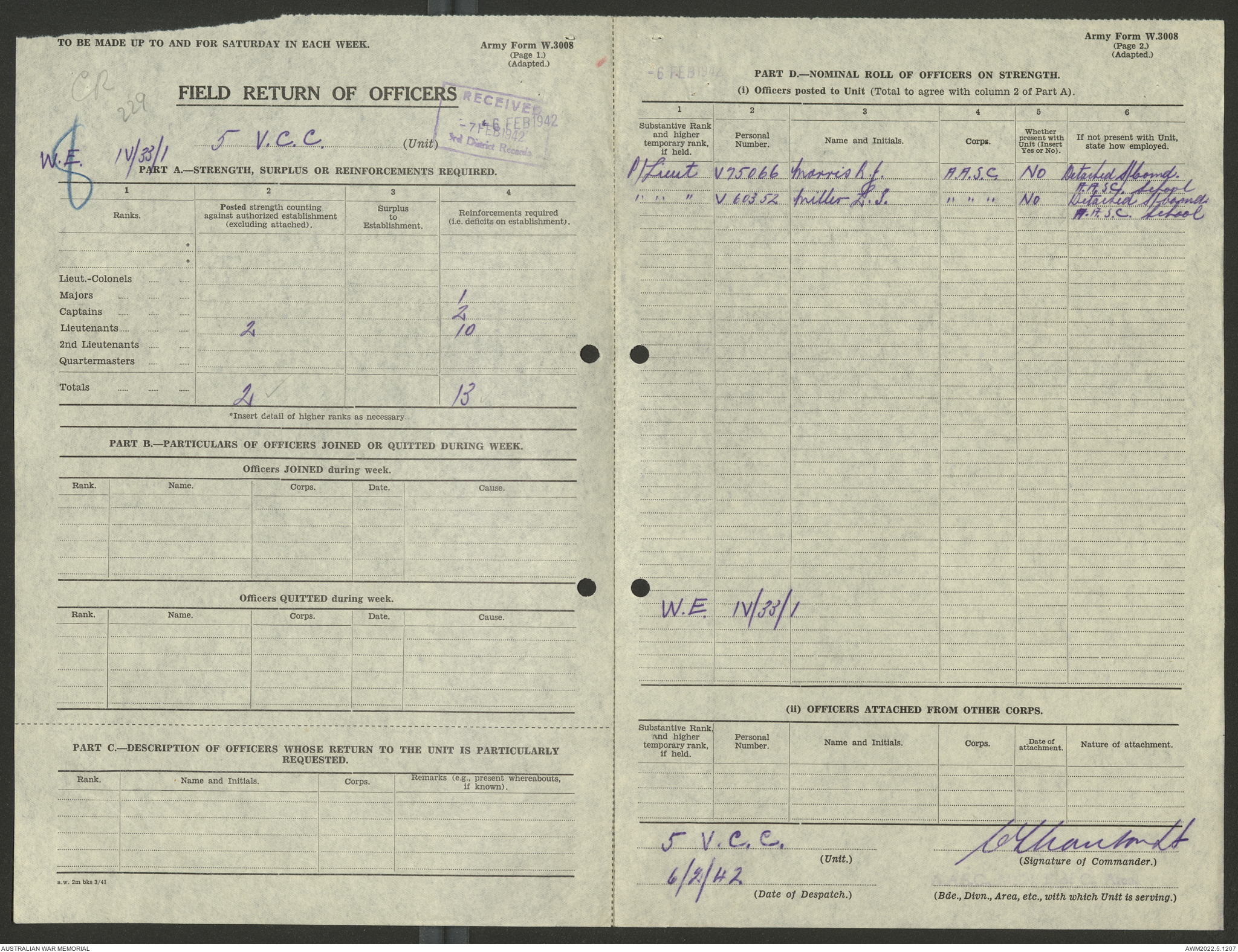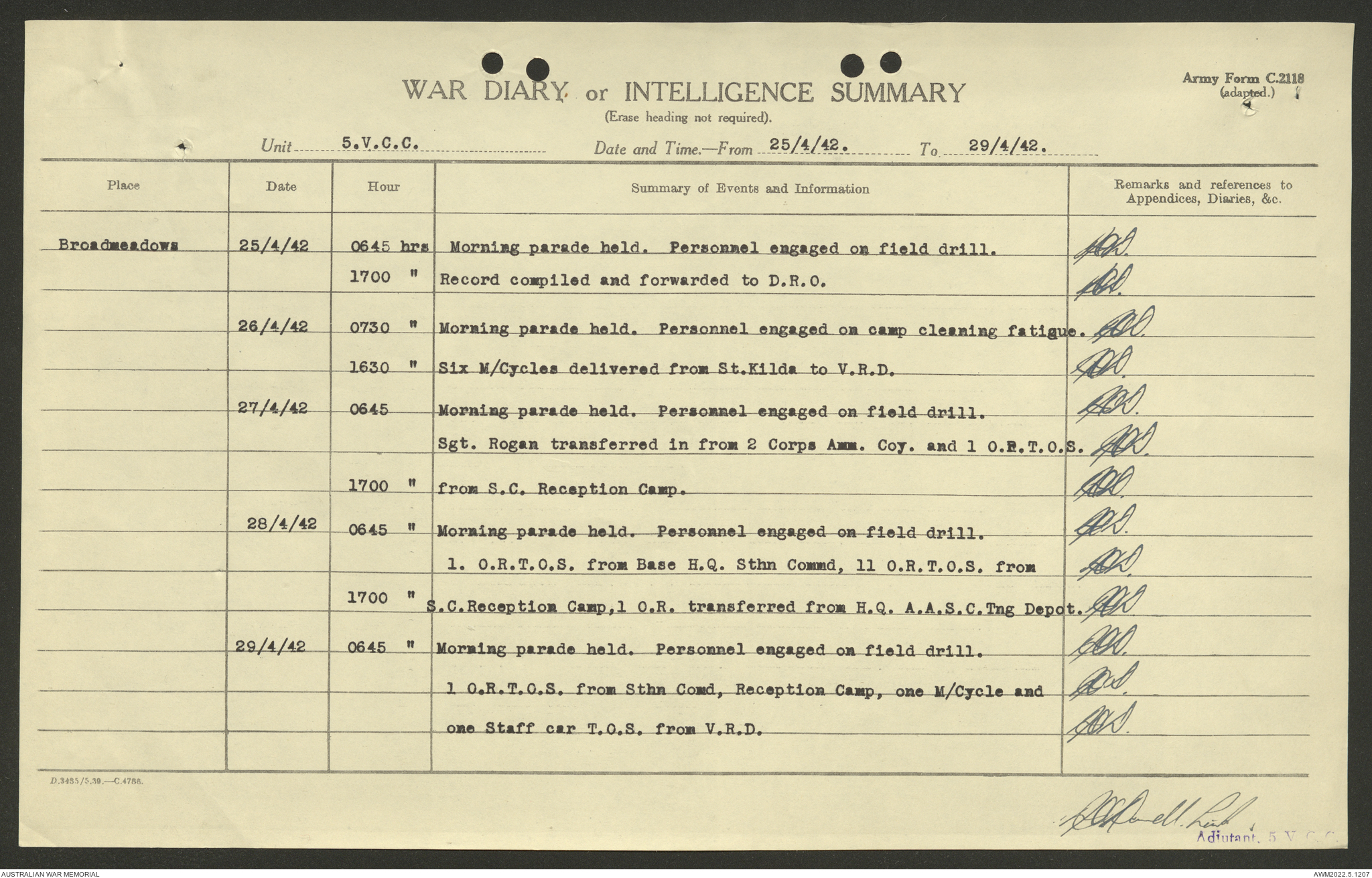 AWM52 10/15/2/1 - [Unit War Diaries, 1939-45 War] 5 Australian Vehicle Collecting Centre, January - May 1942