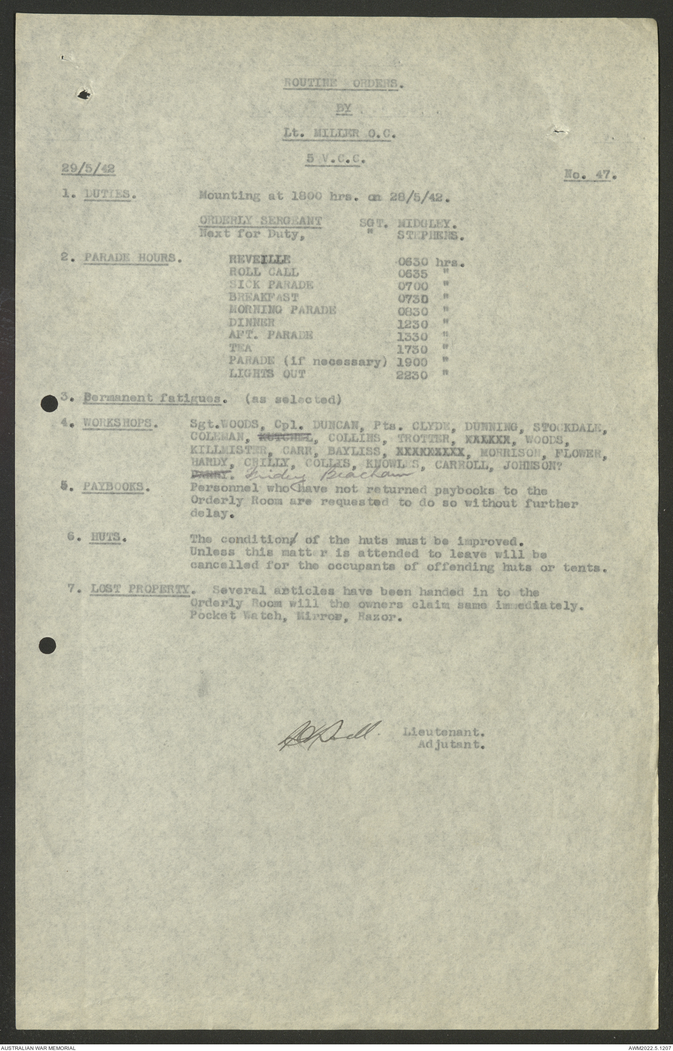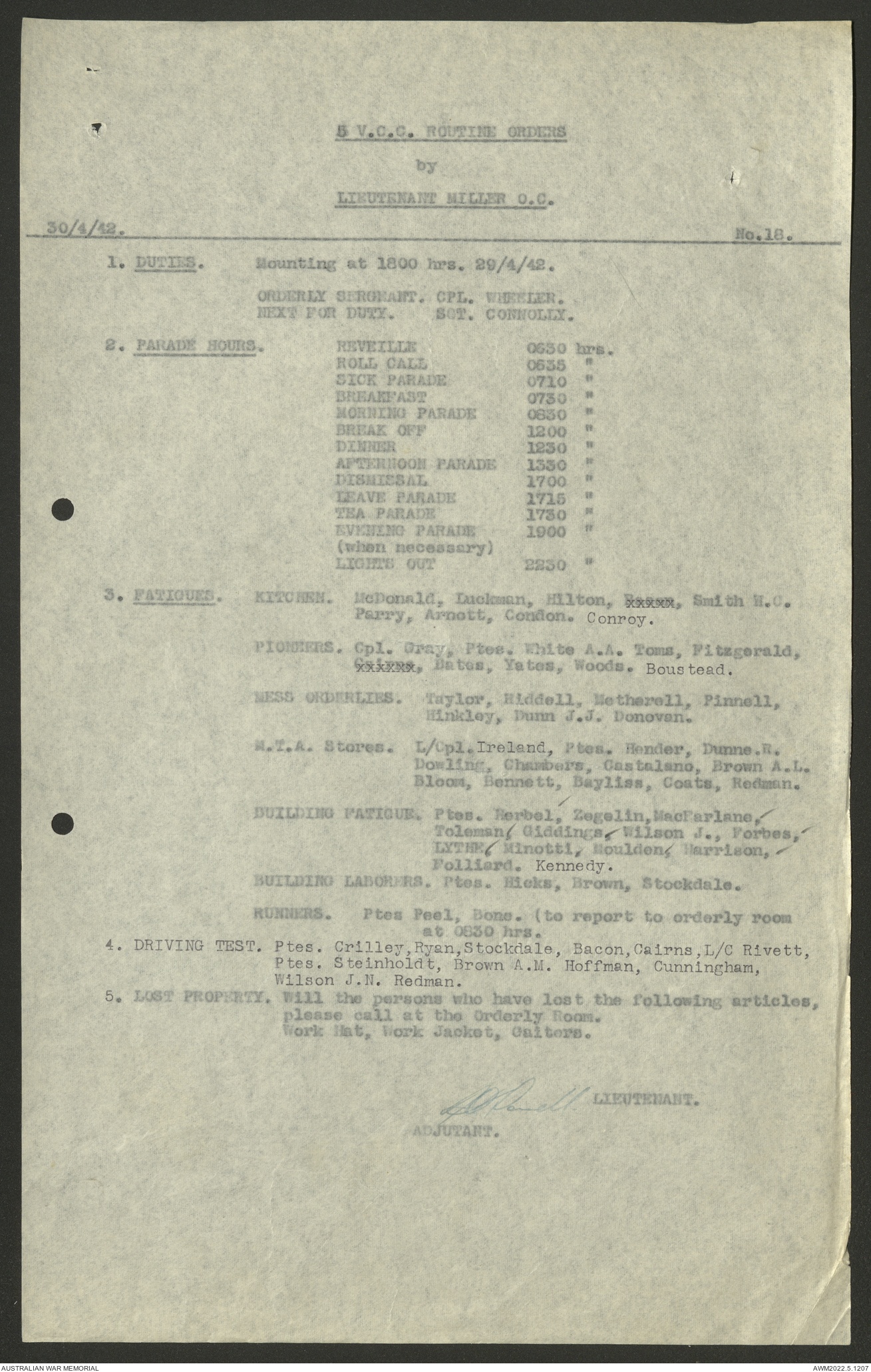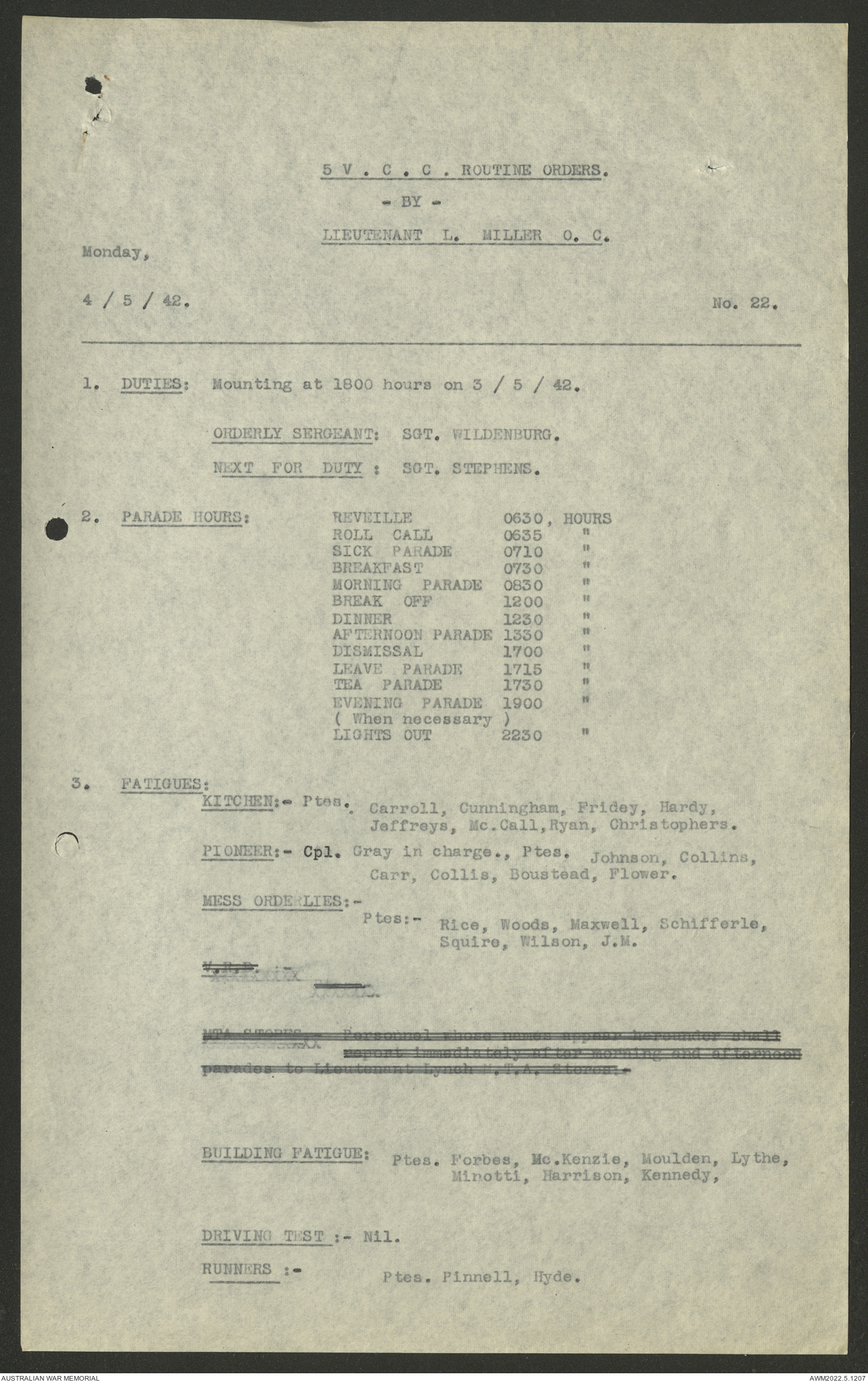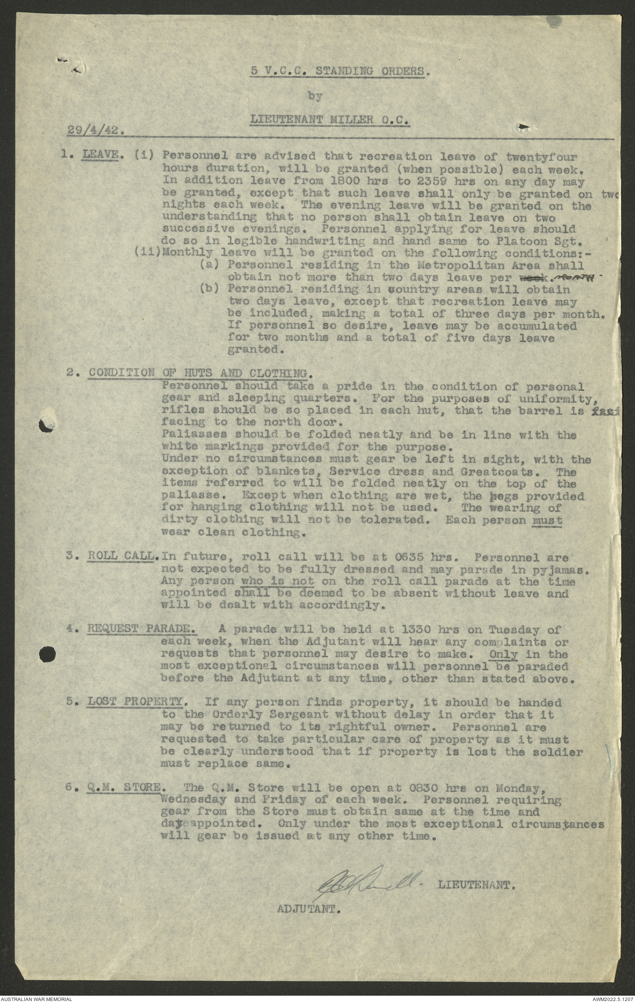 AWM52 10/15/2/1 - [Unit War Diaries, 1939-45 War] 5 Australian Vehicle Collecting Centre, January - May 1942