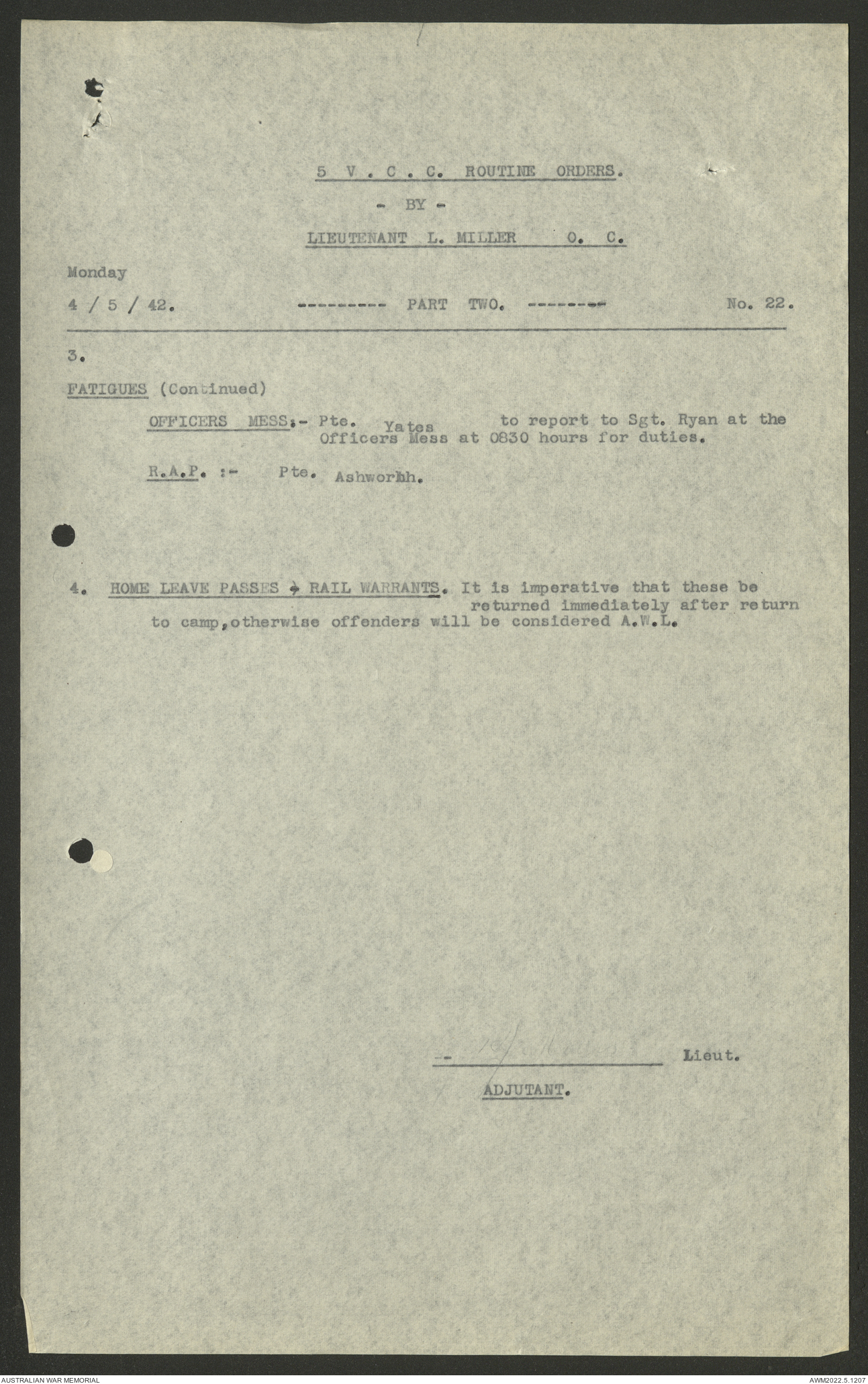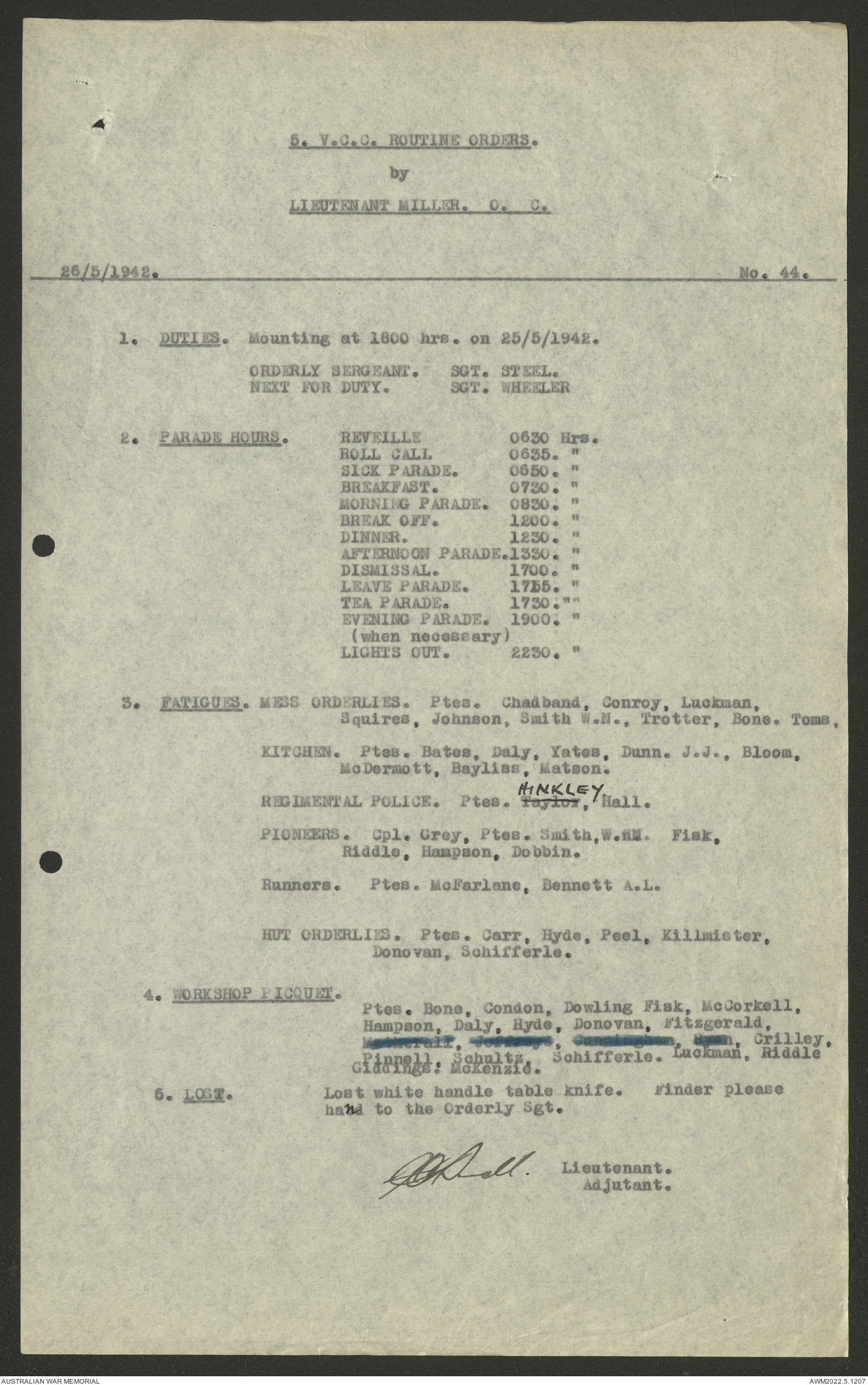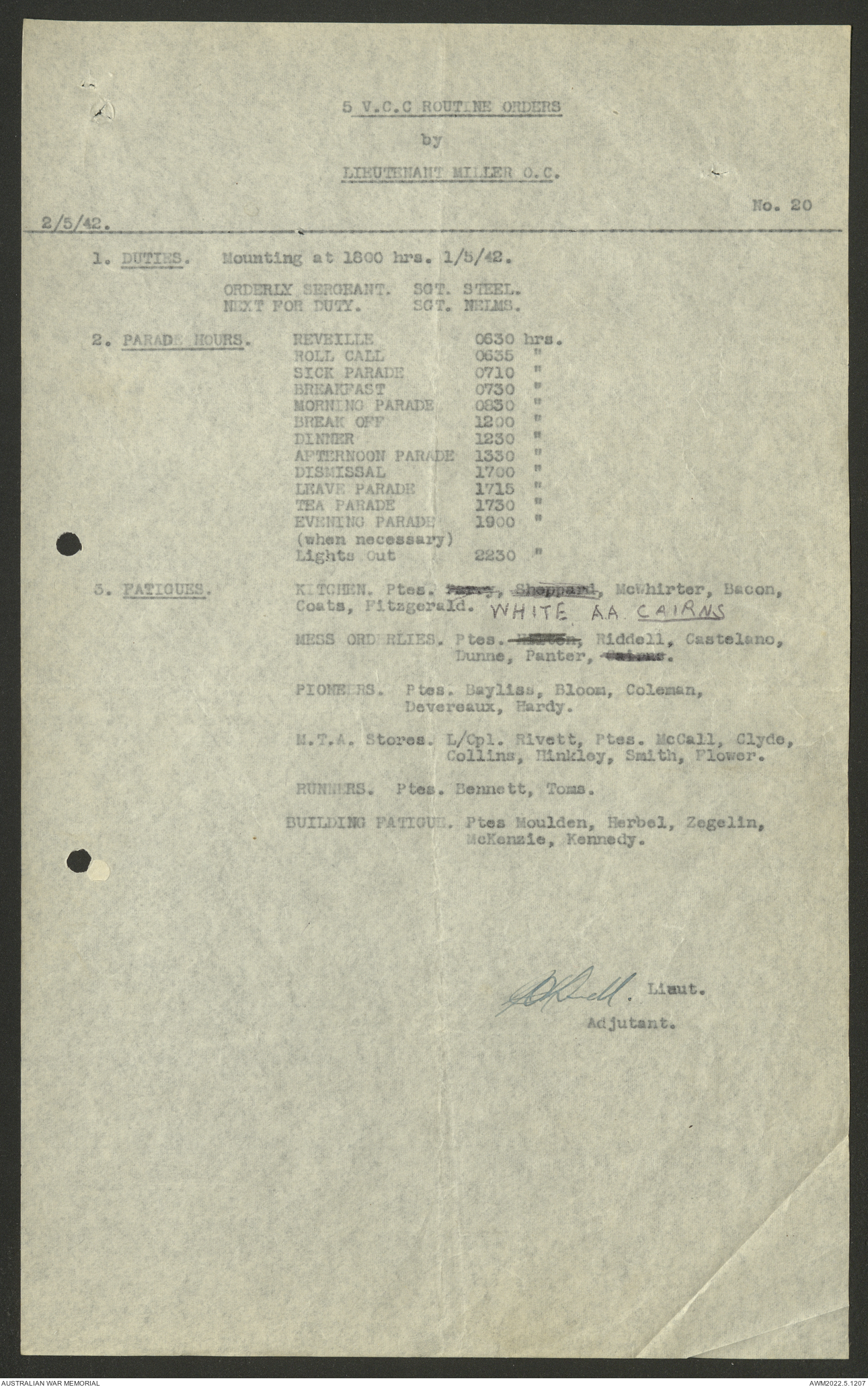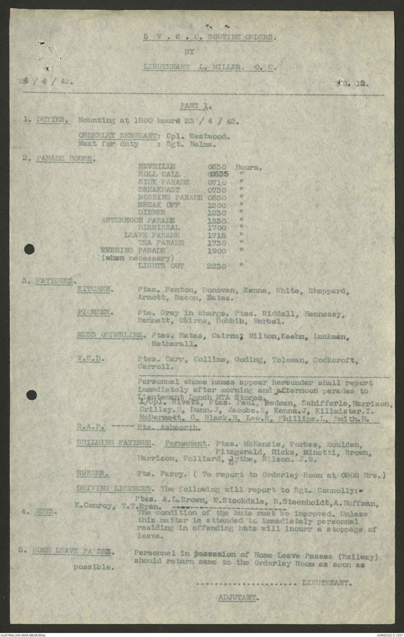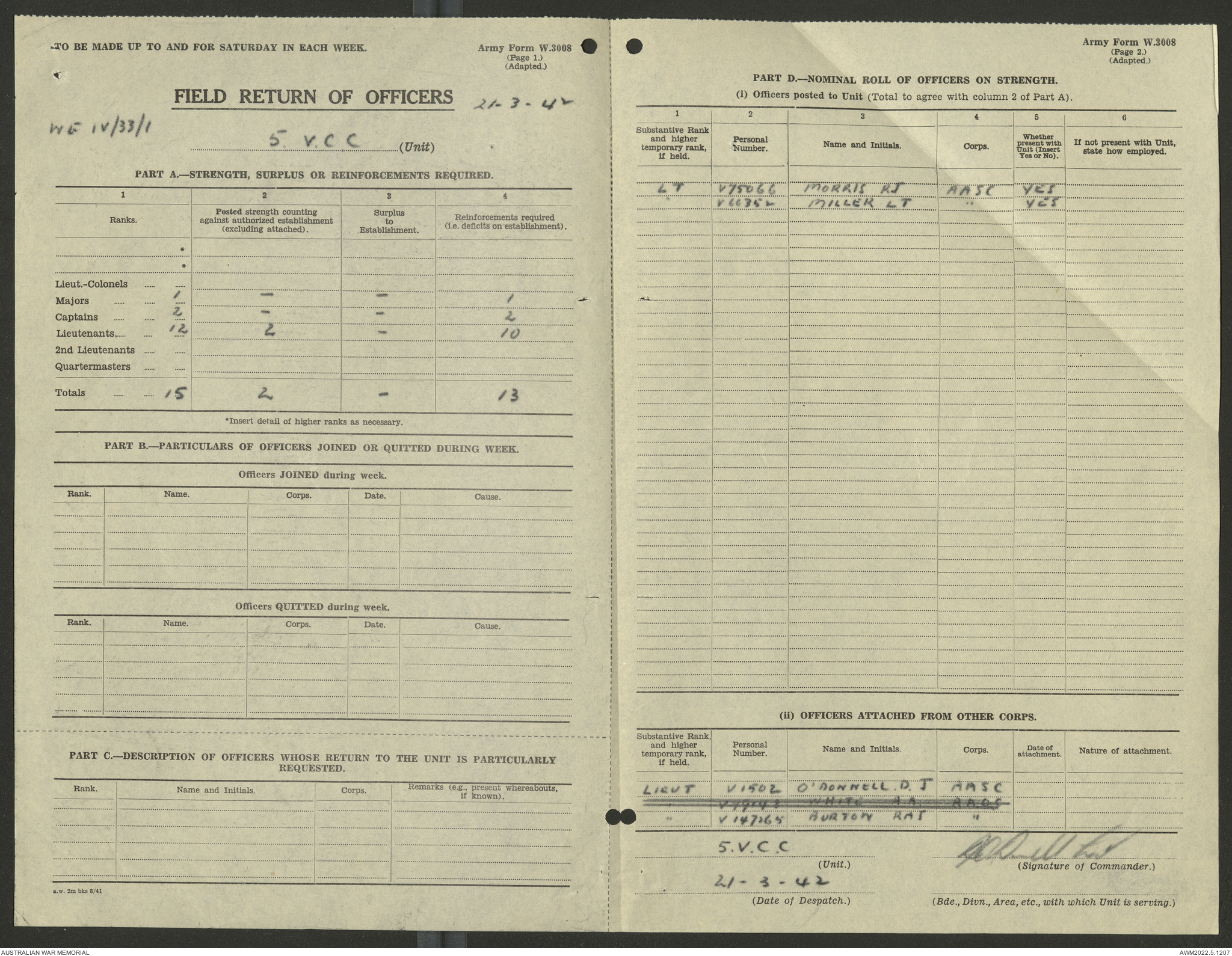 AWM52 10/15/2/1 - [Unit War Diaries, 1939-45 War] 5 Australian Vehicle Collecting Centre, January - May 1942