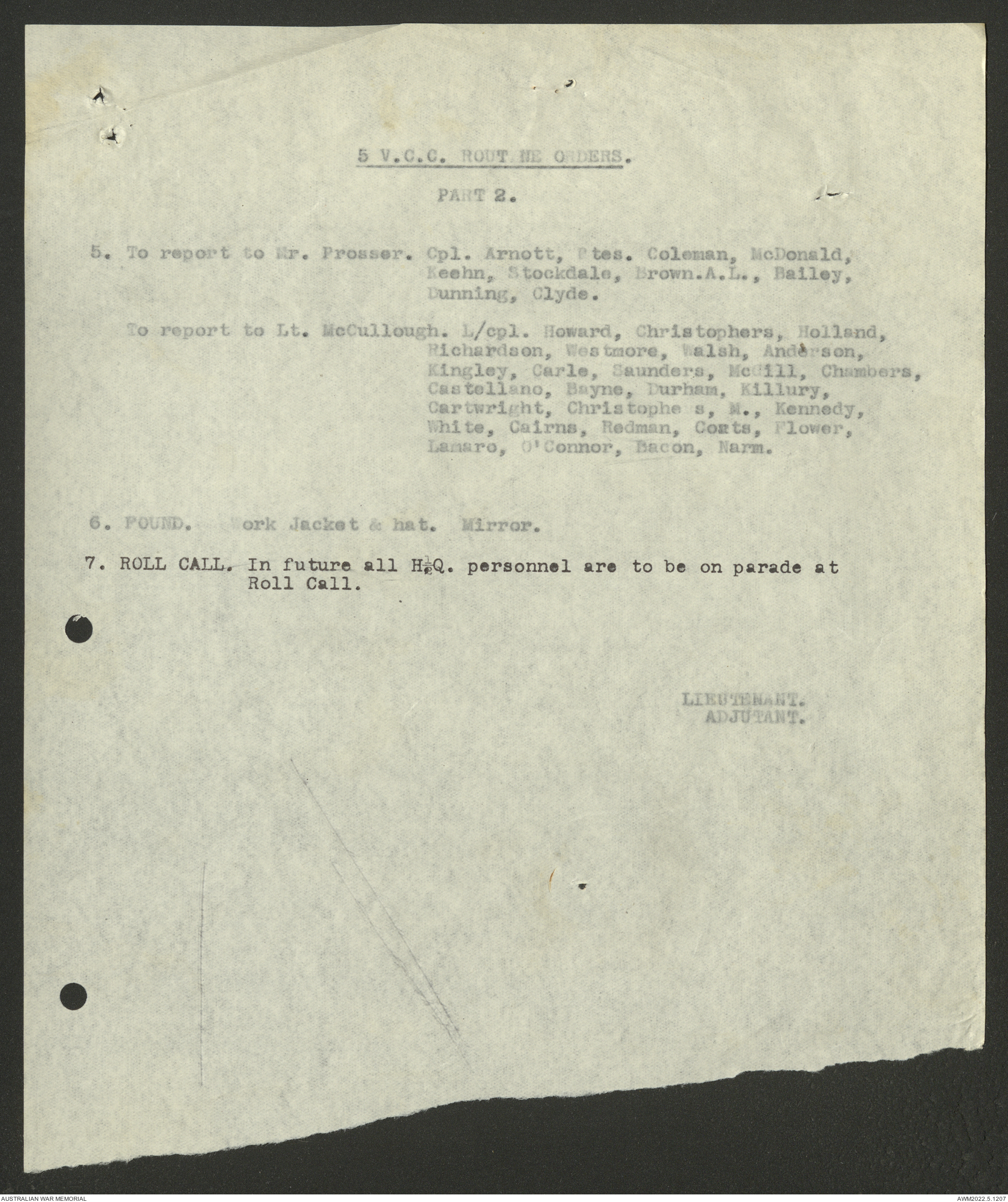 - AWM52 10/15/2 - 5 Australian Vehicle Collecting Centre