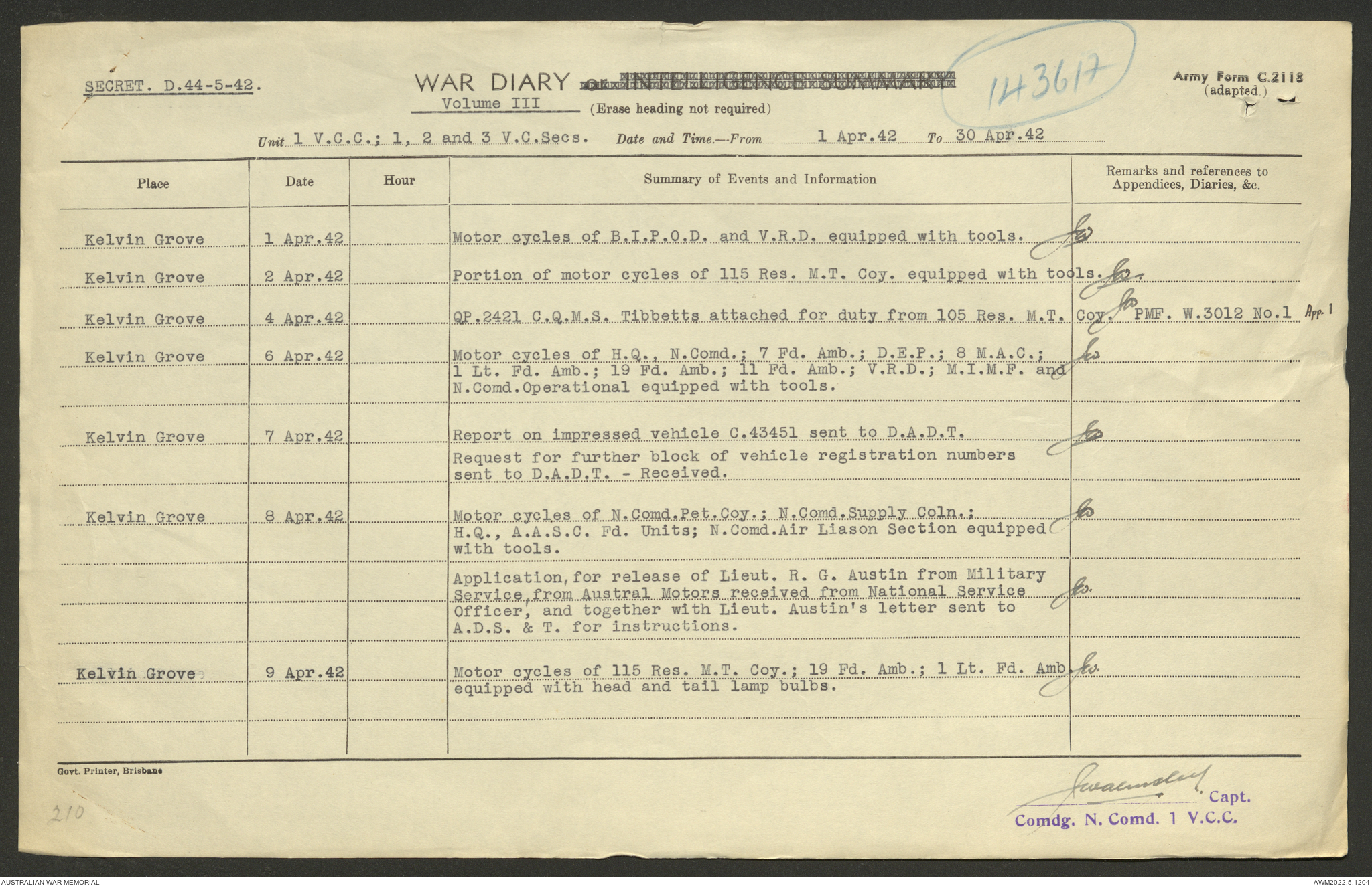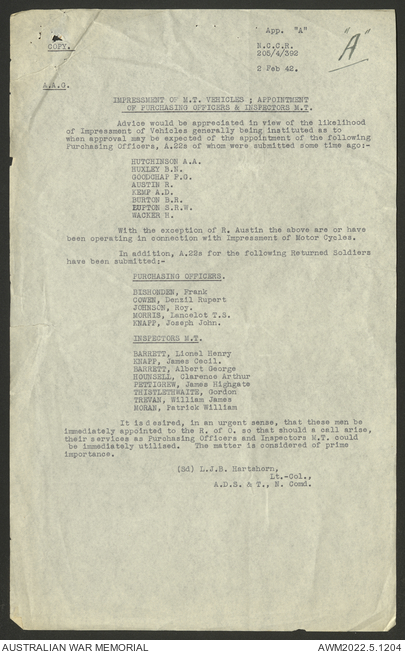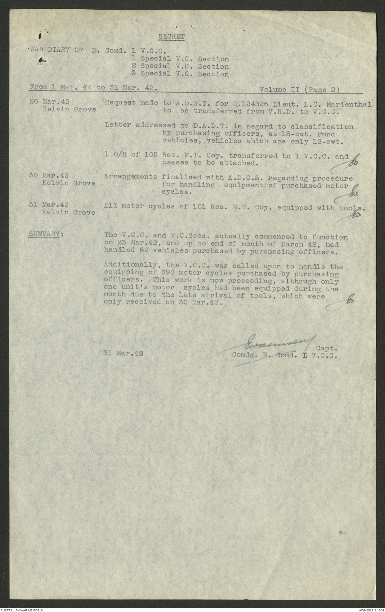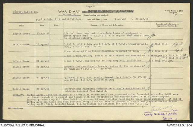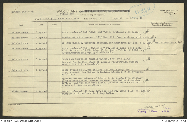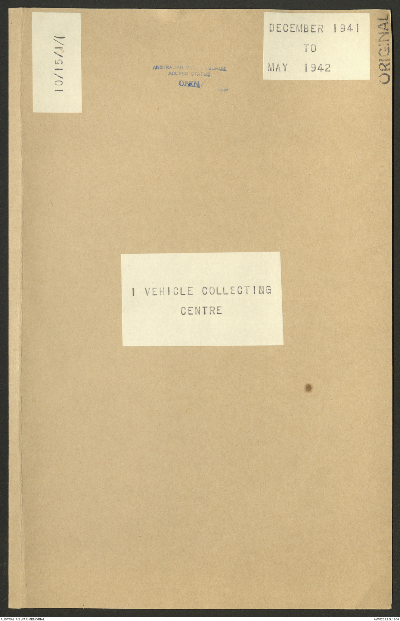 - AWM52 10/15/1 - 1 Australian Vehicle Collecting Centre