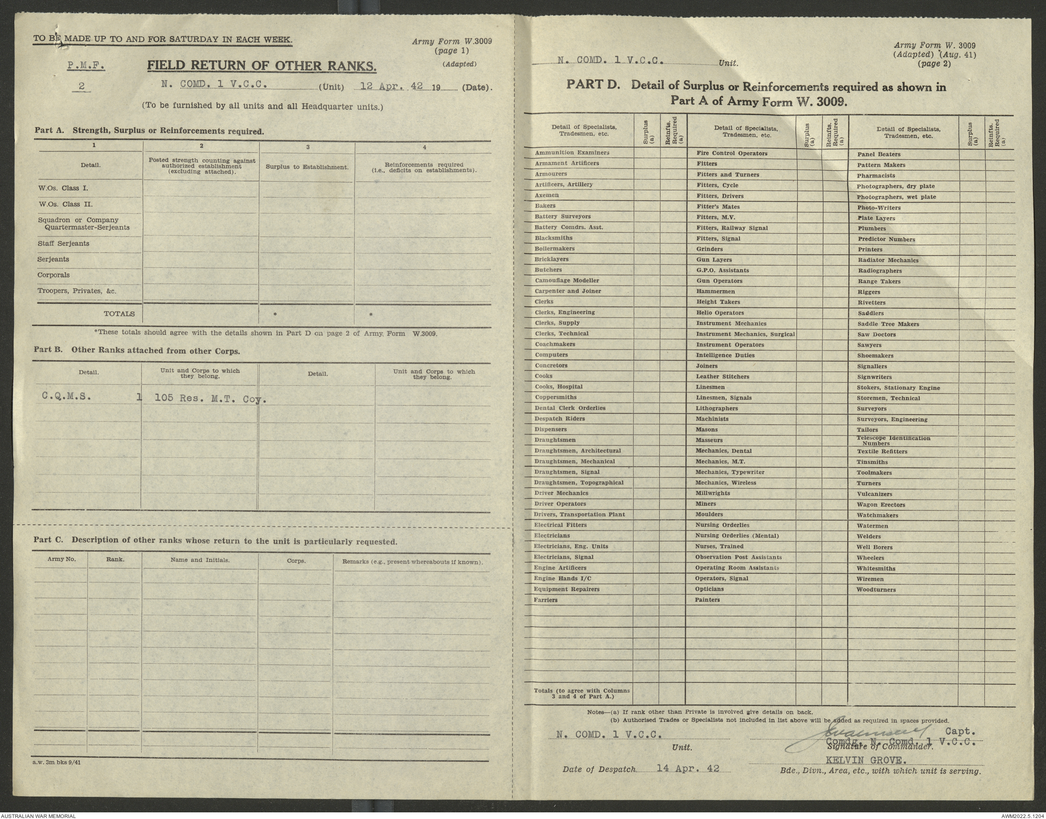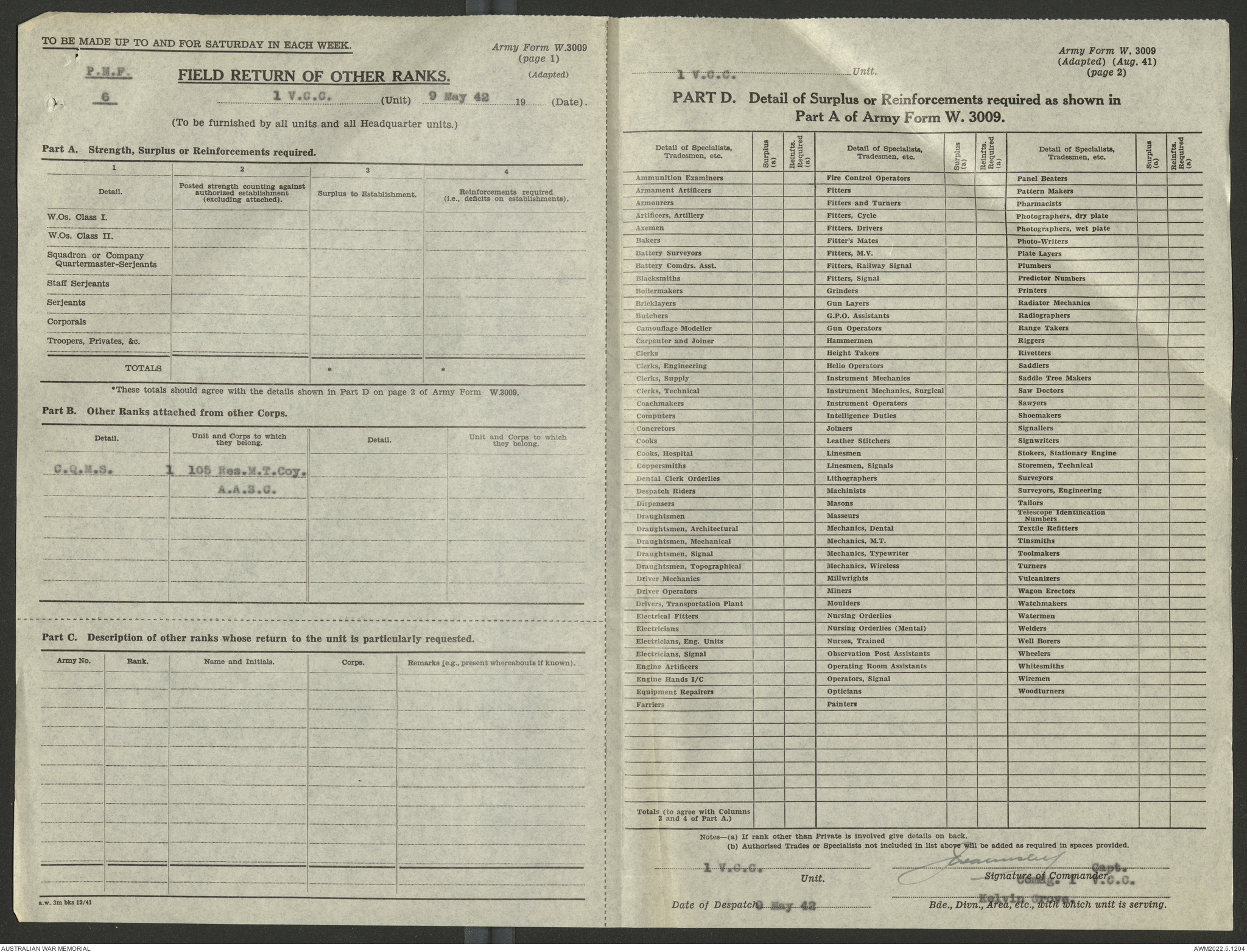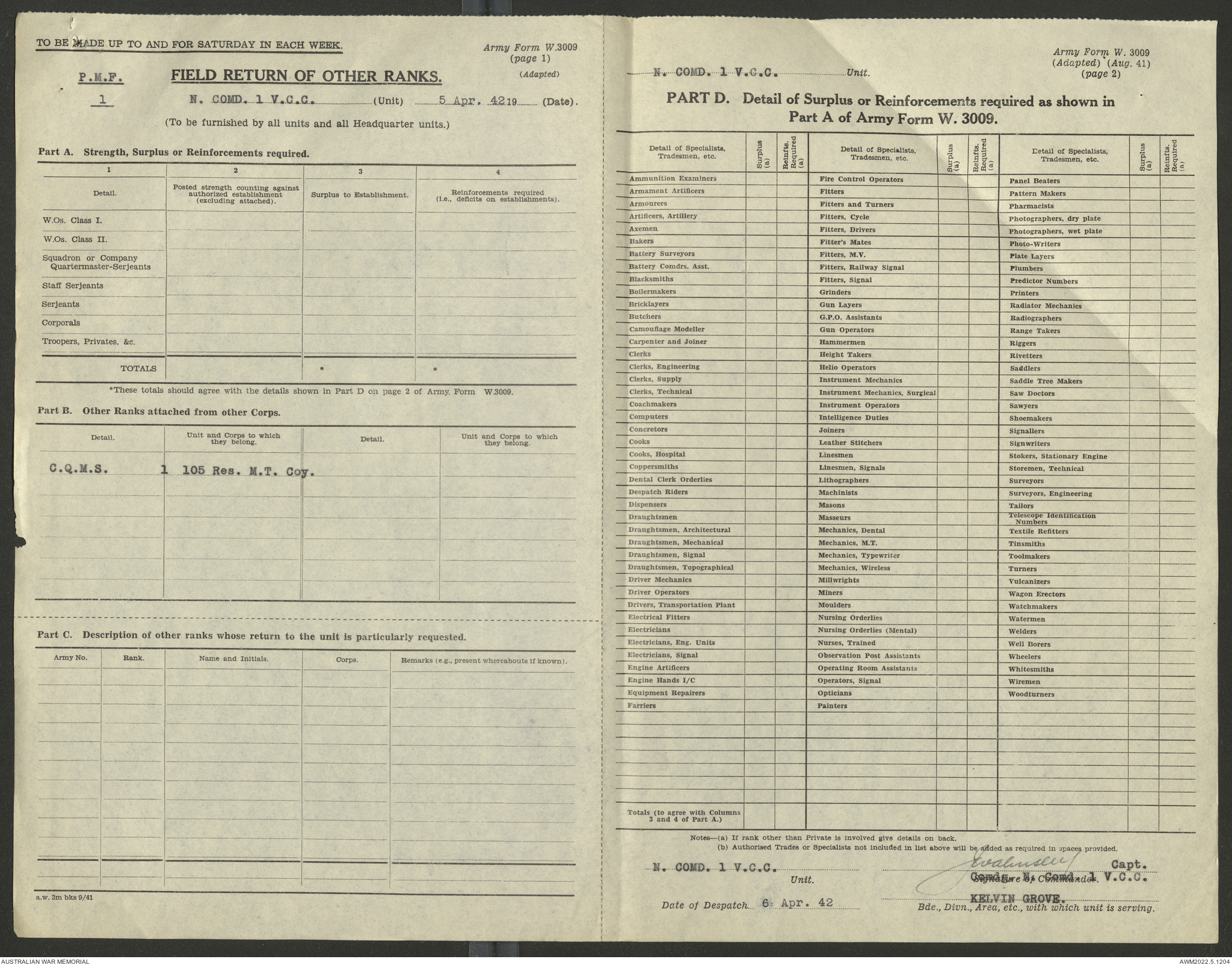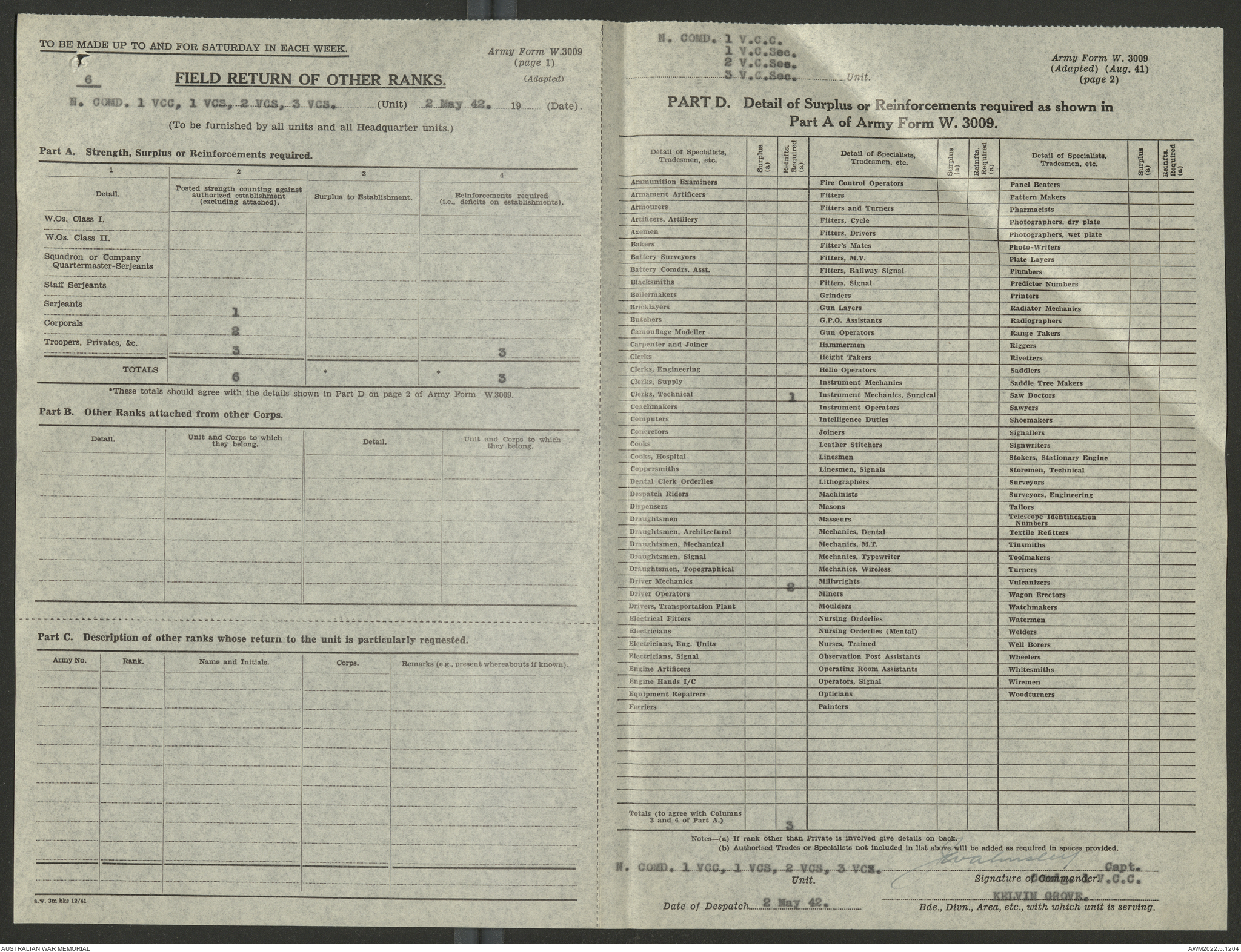 - AWM52 10/15/1 - 1 Australian Vehicle Collecting Centre