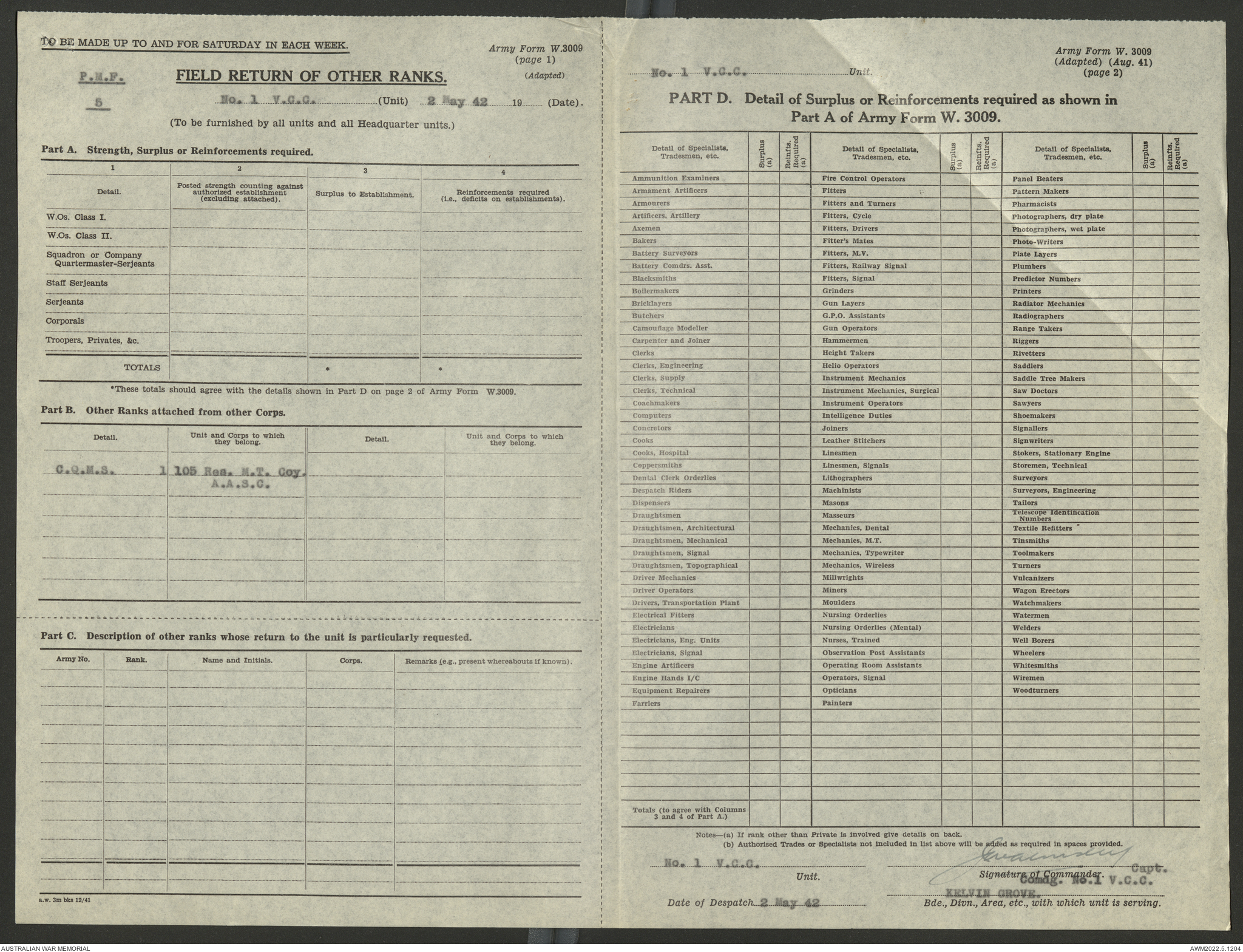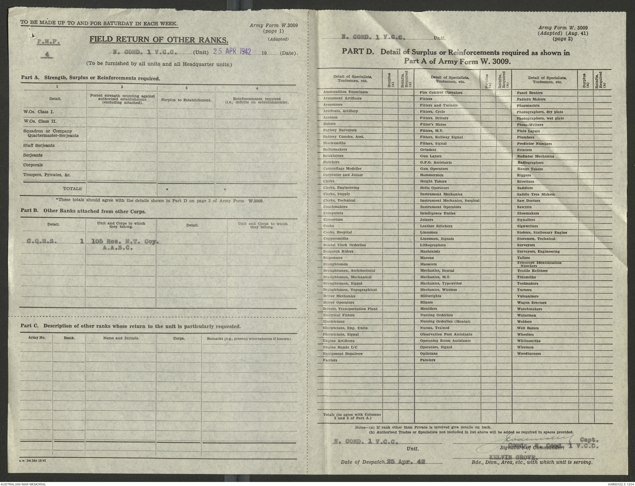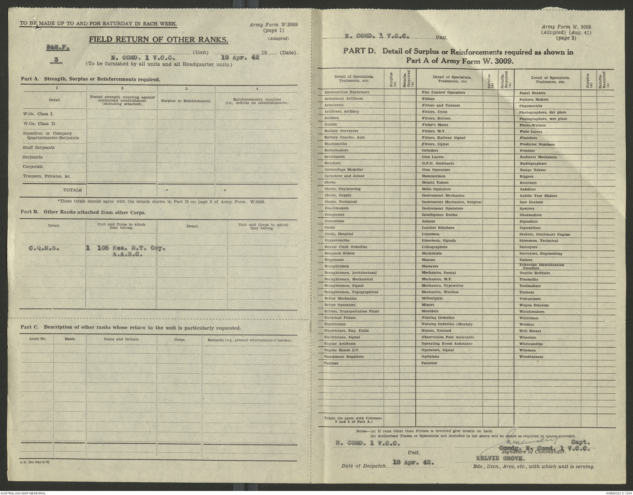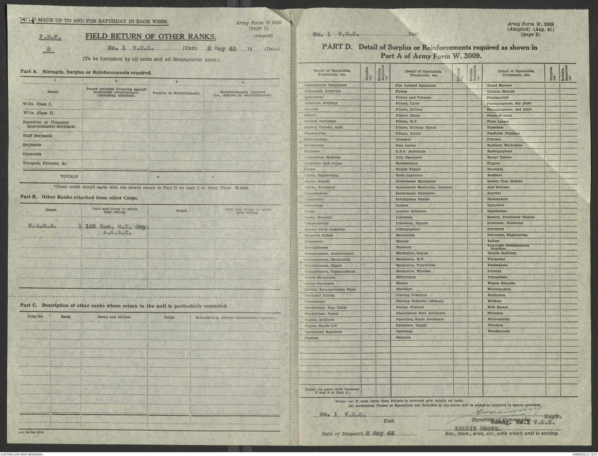 - AWM52 10/15/1 - 1 Australian Vehicle Collecting Centre