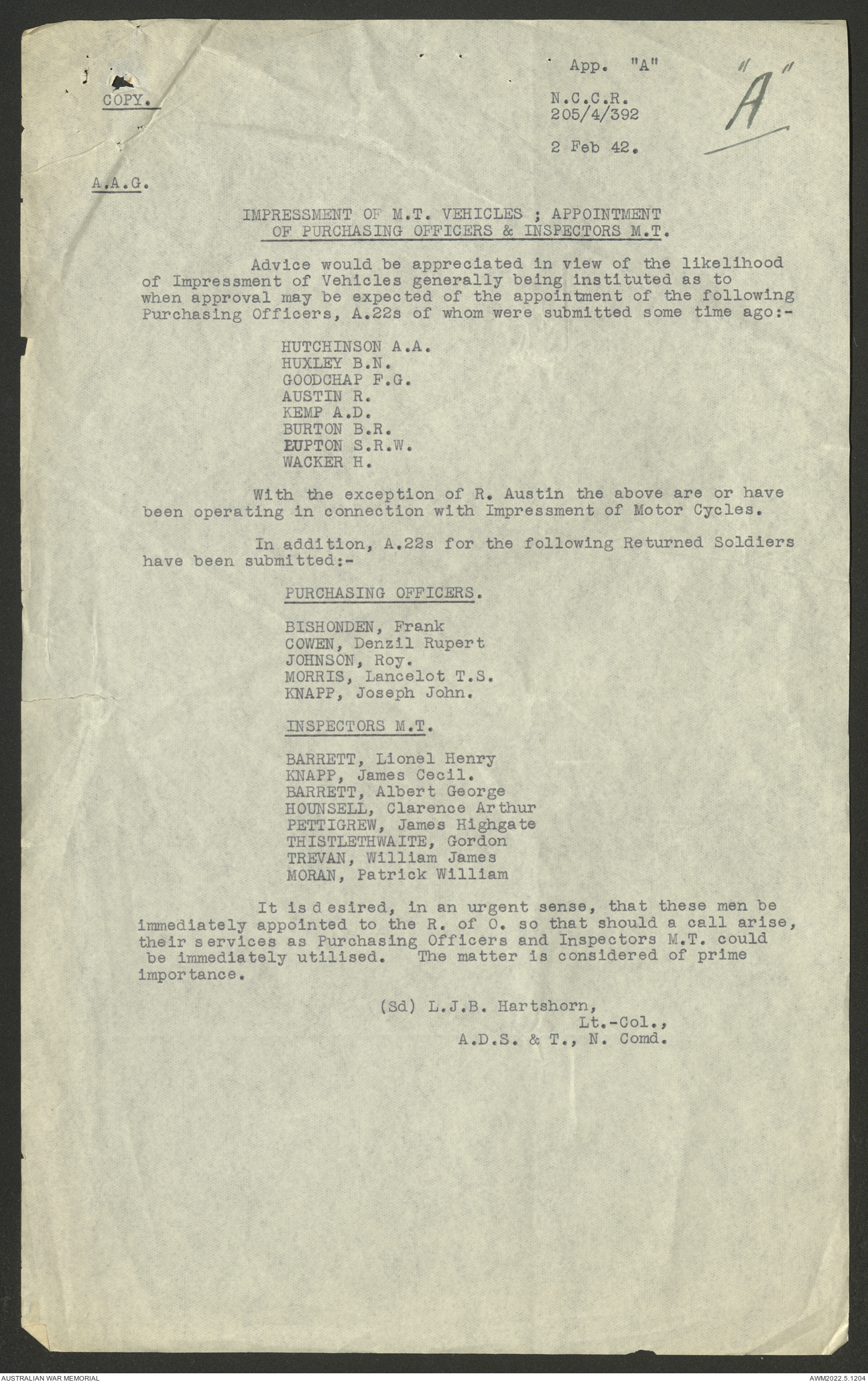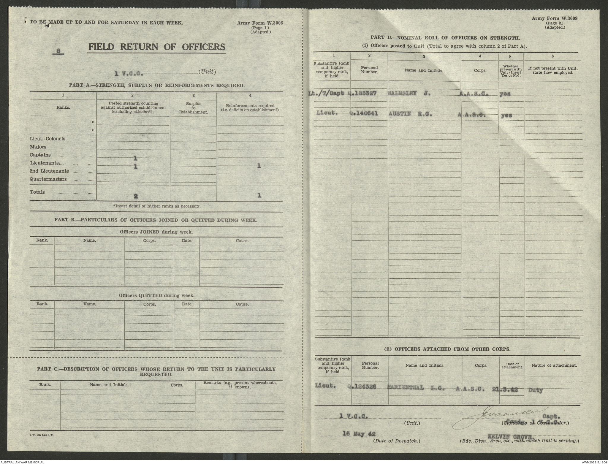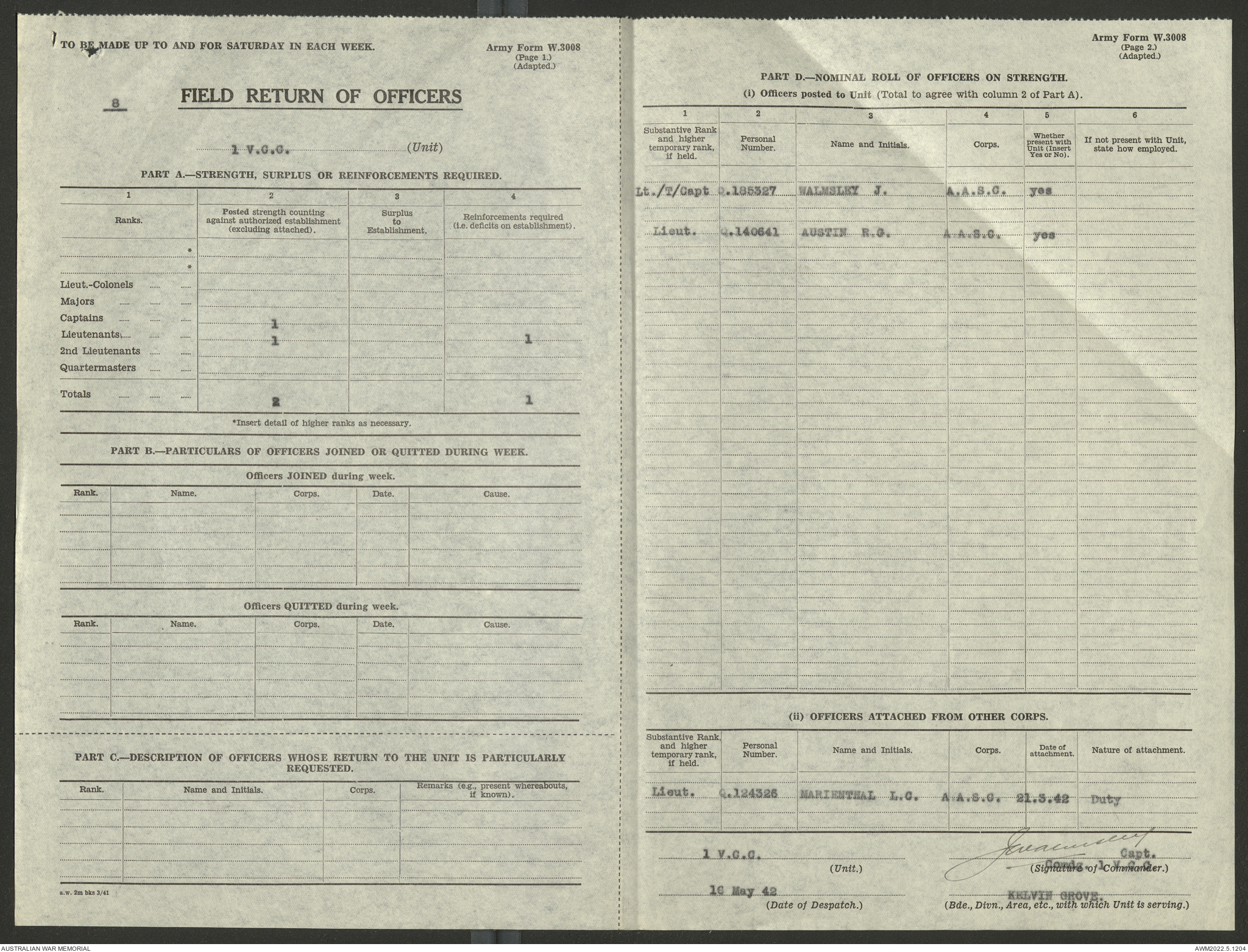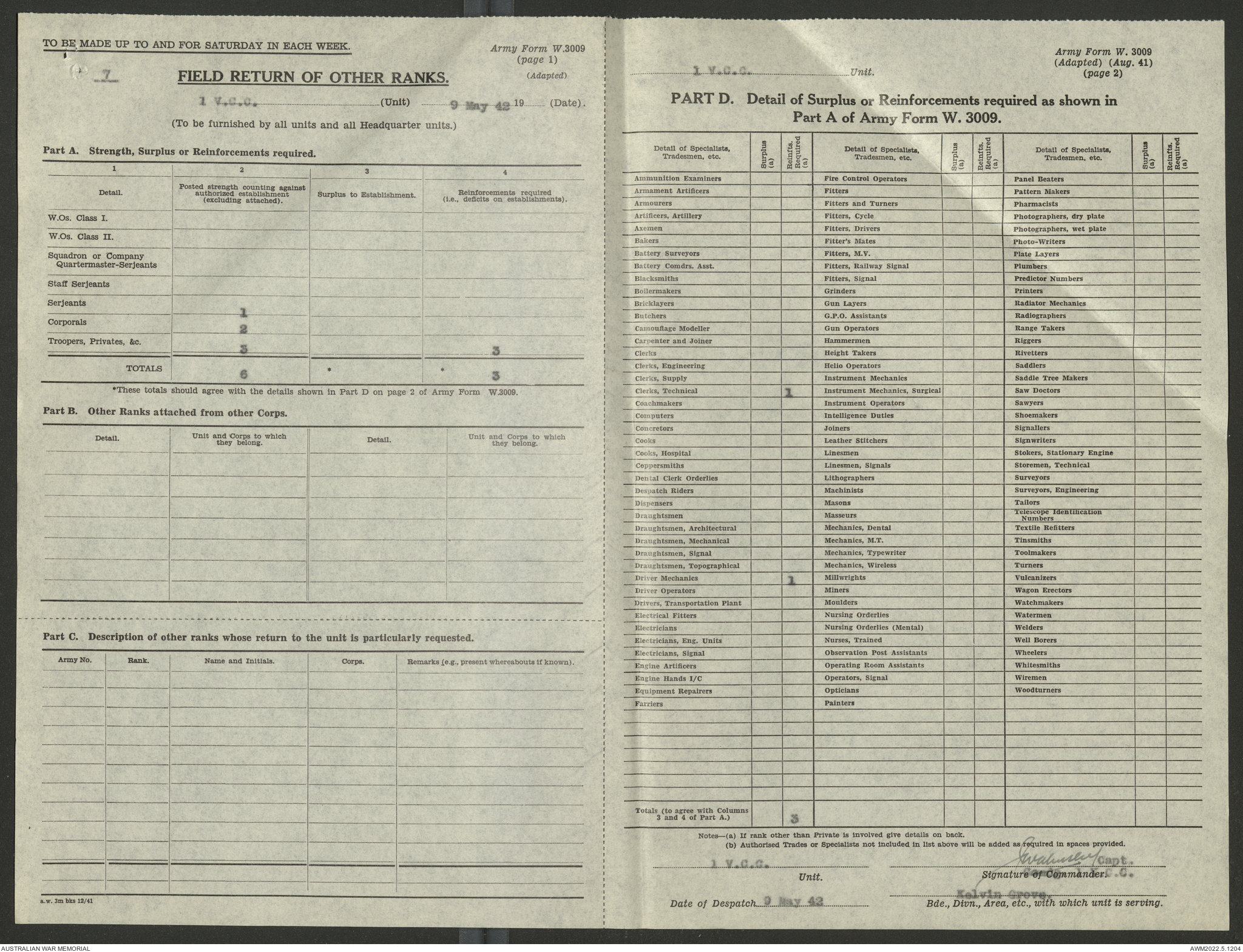 - AWM52 10/15/1 - 1 Australian Vehicle Collecting Centre