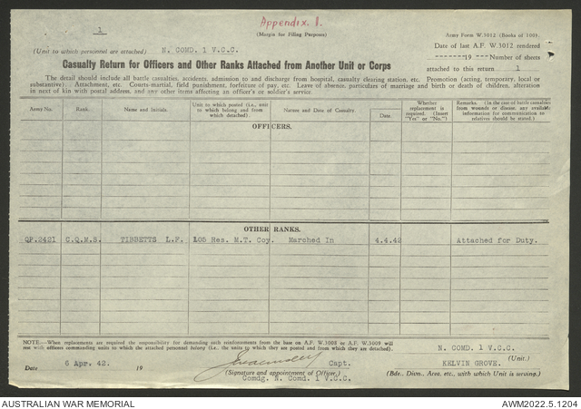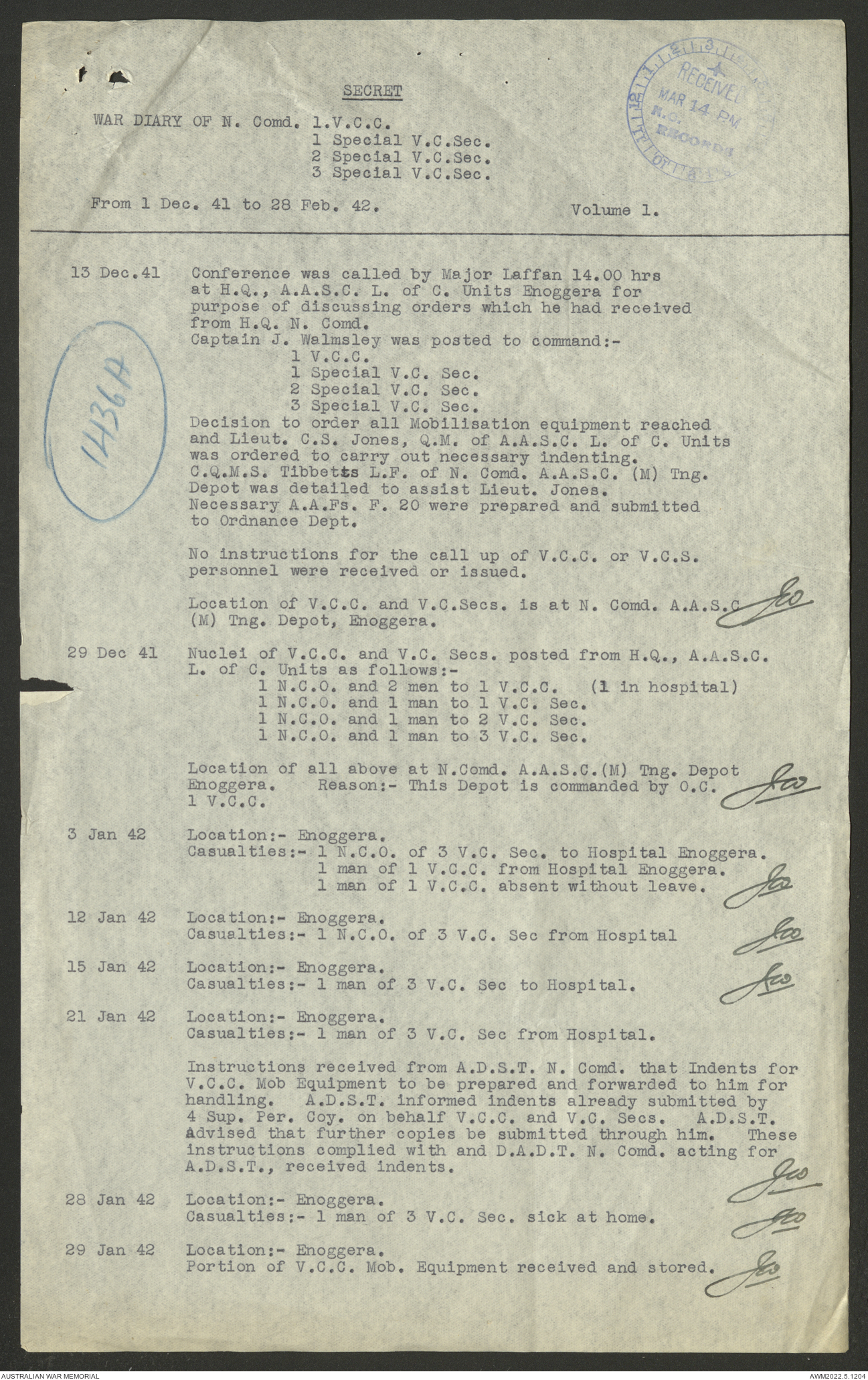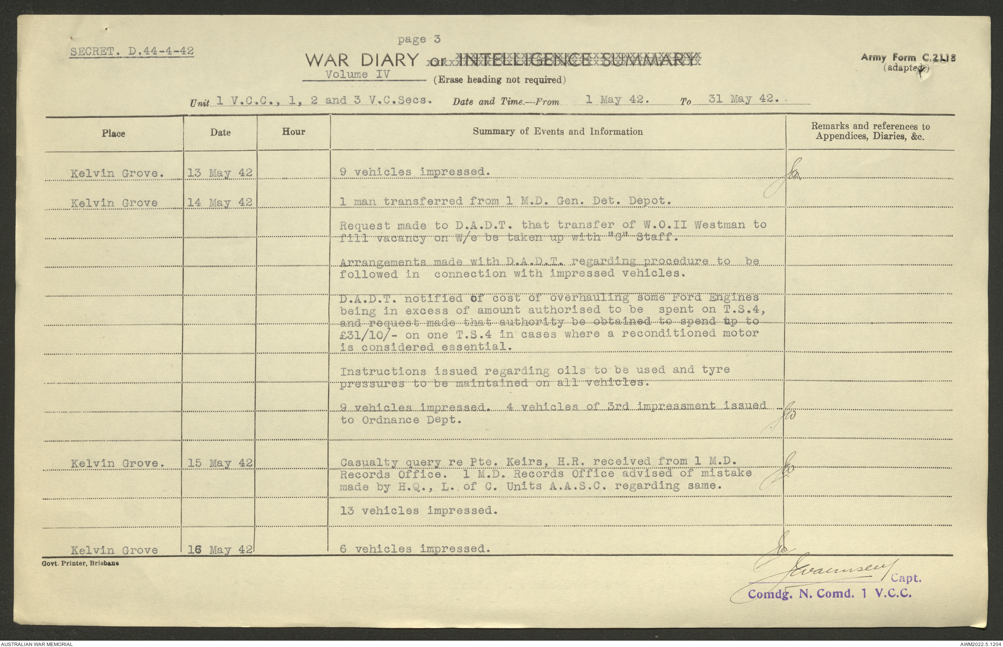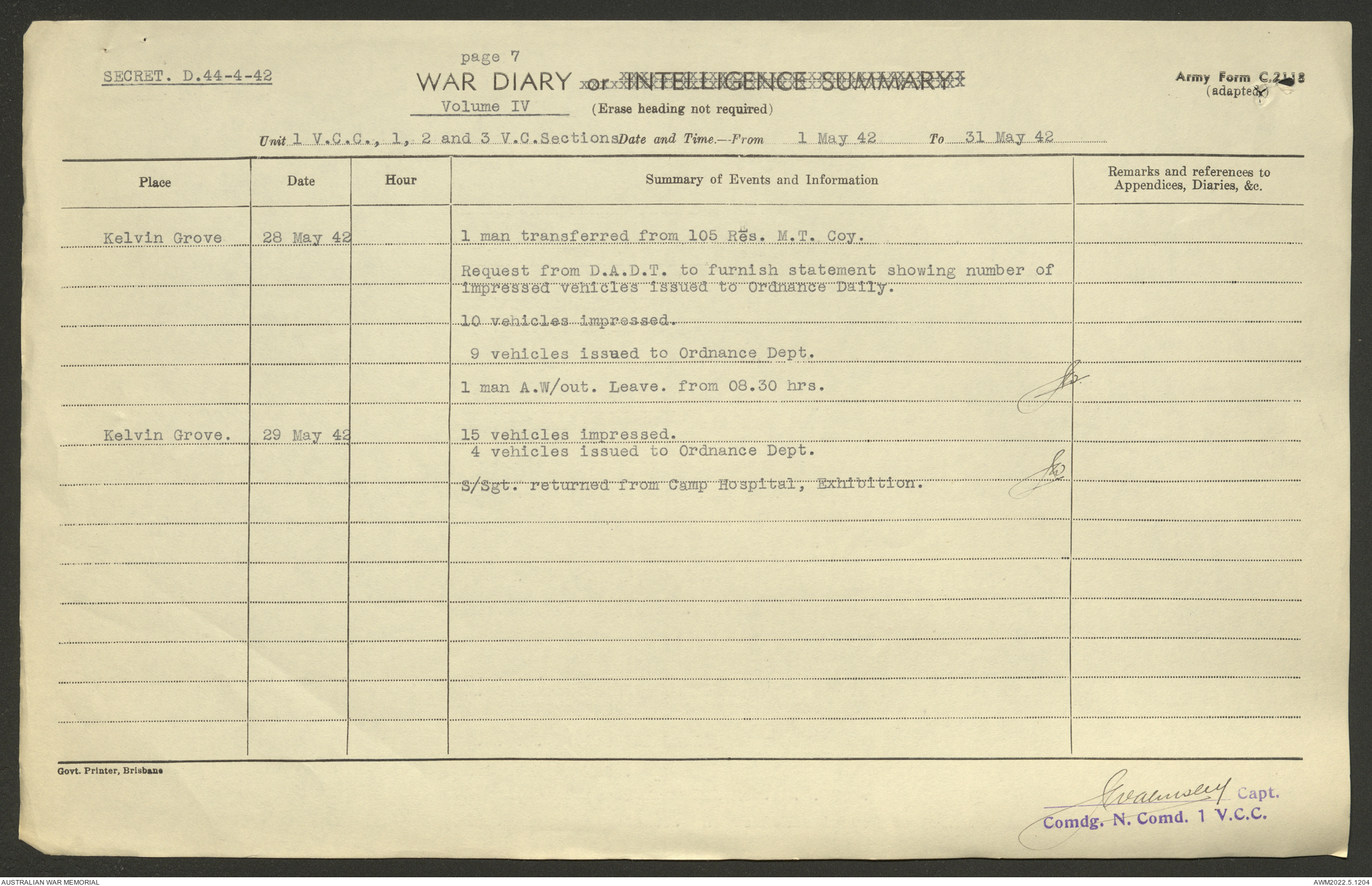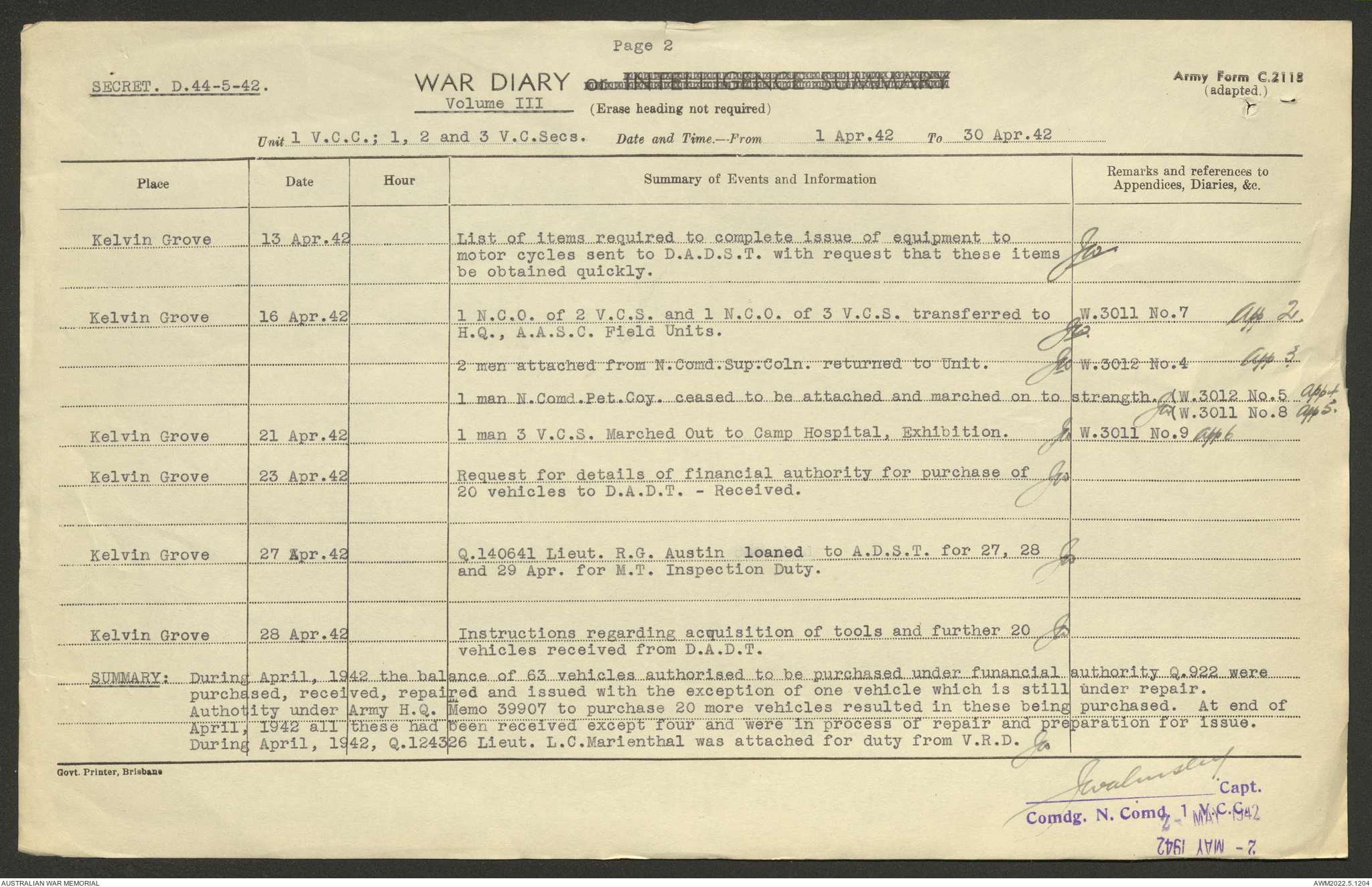 AWM52 10/15/1/1 - [Unit War Diaries, 1939-45 War] 1 Australian Vehicle Collecting Centre, December 1941 - May 1942