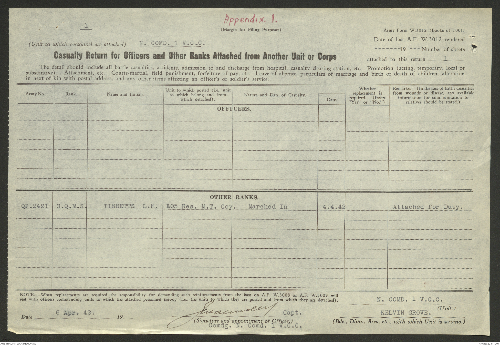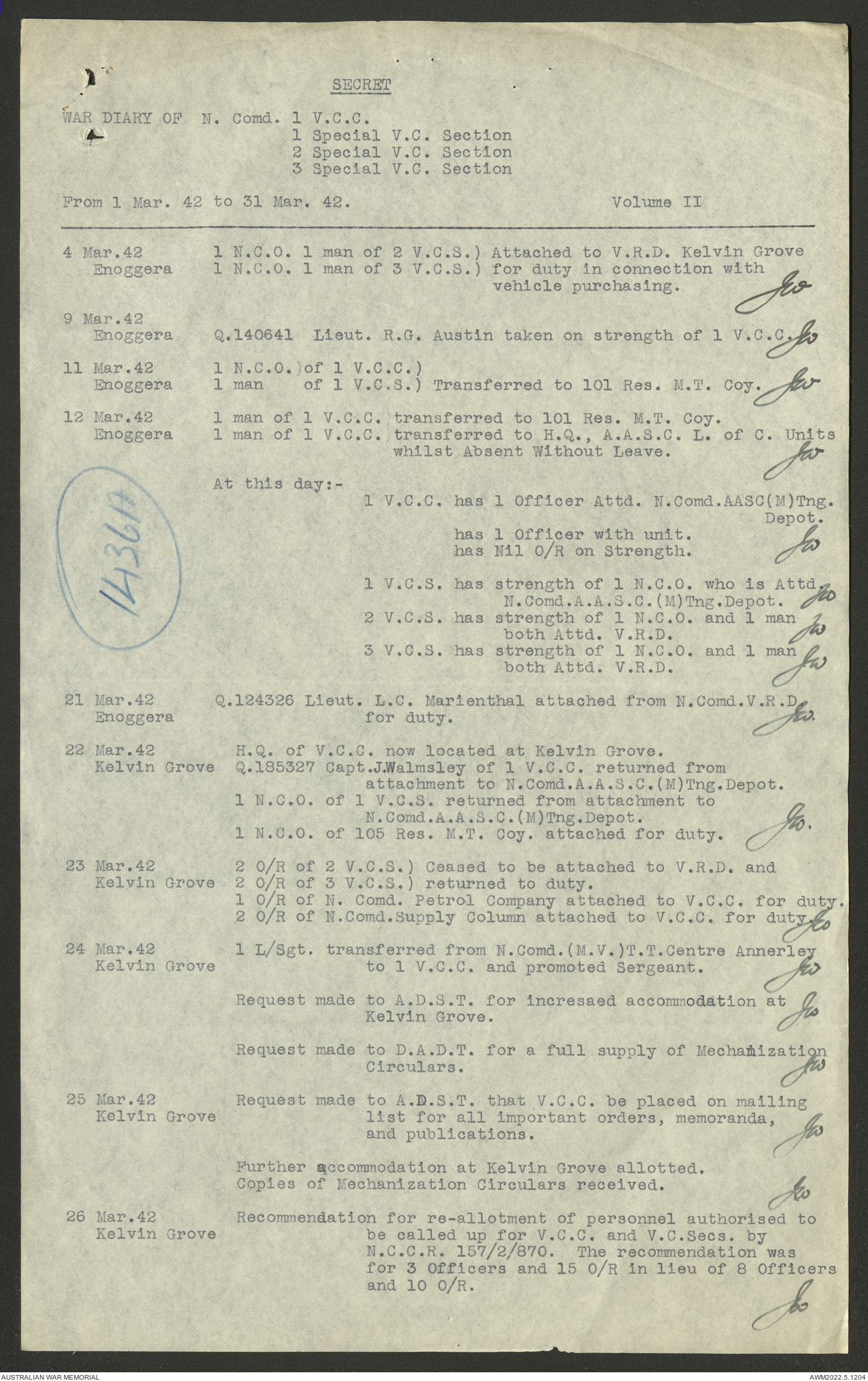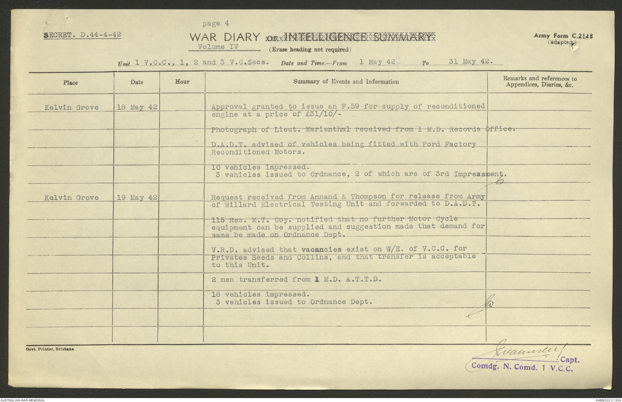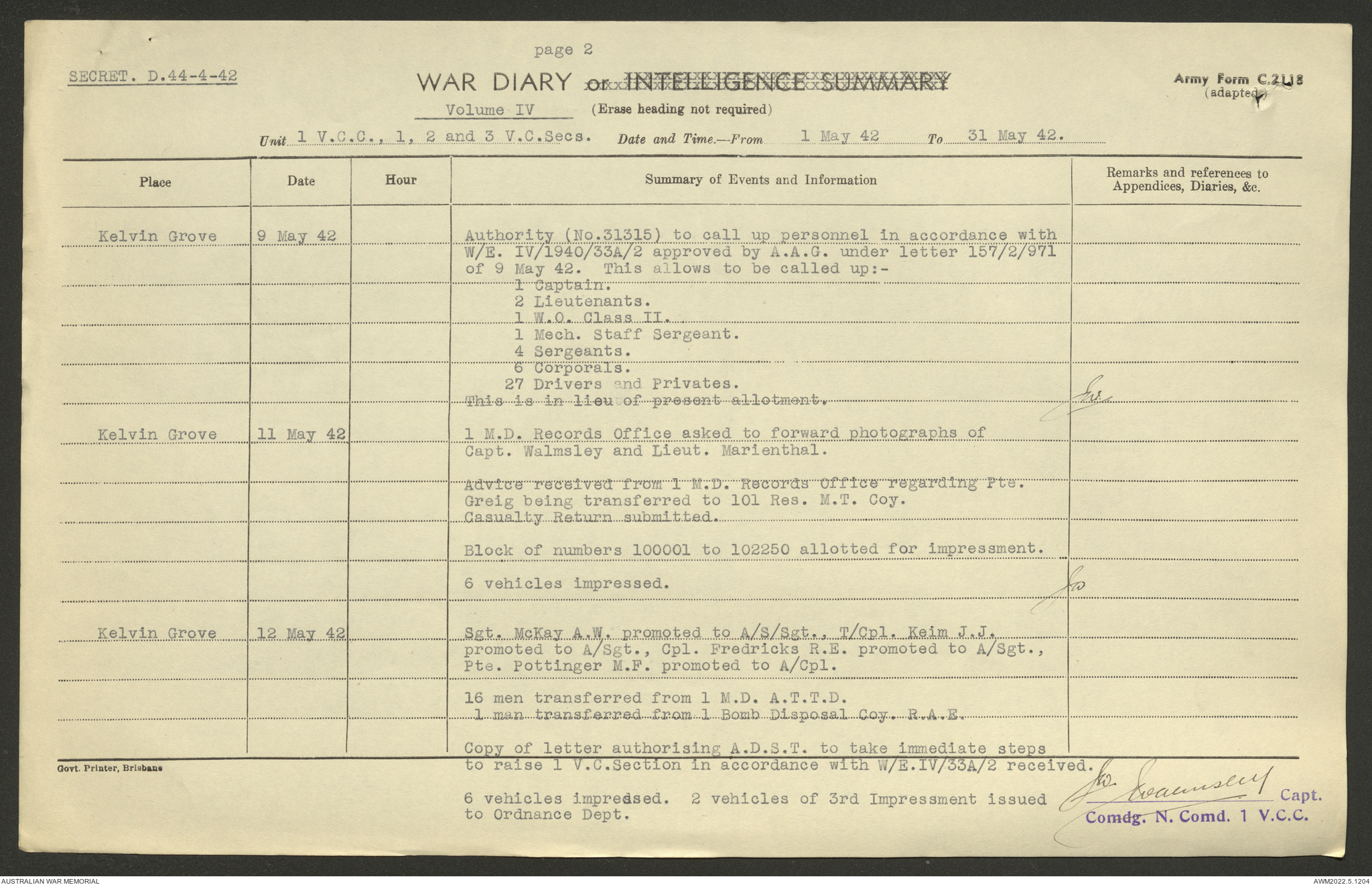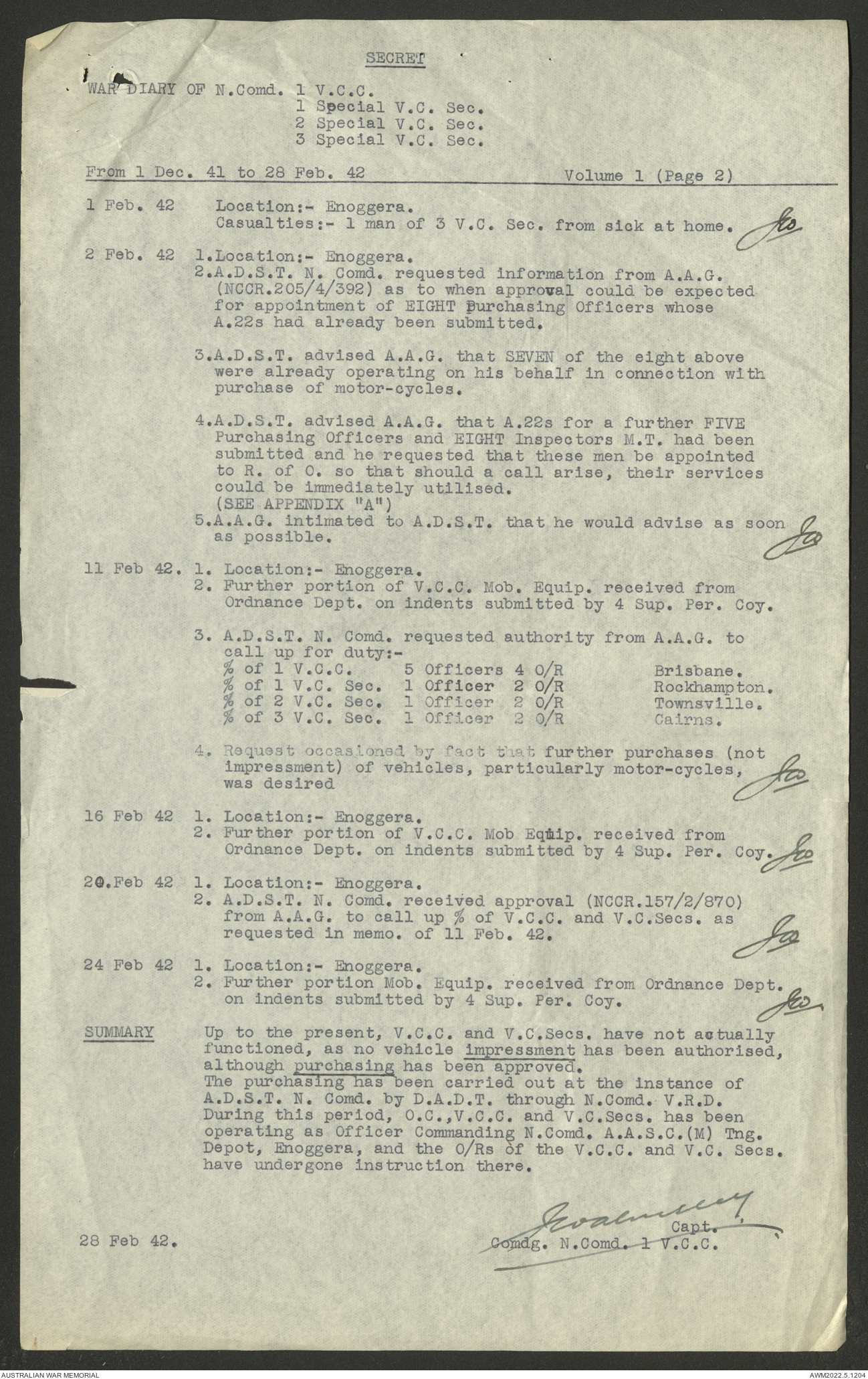 AWM52 10/15/1/1 - [Unit War Diaries, 1939-45 War] 1 Australian Vehicle Collecting Centre, December 1941 - May 1942