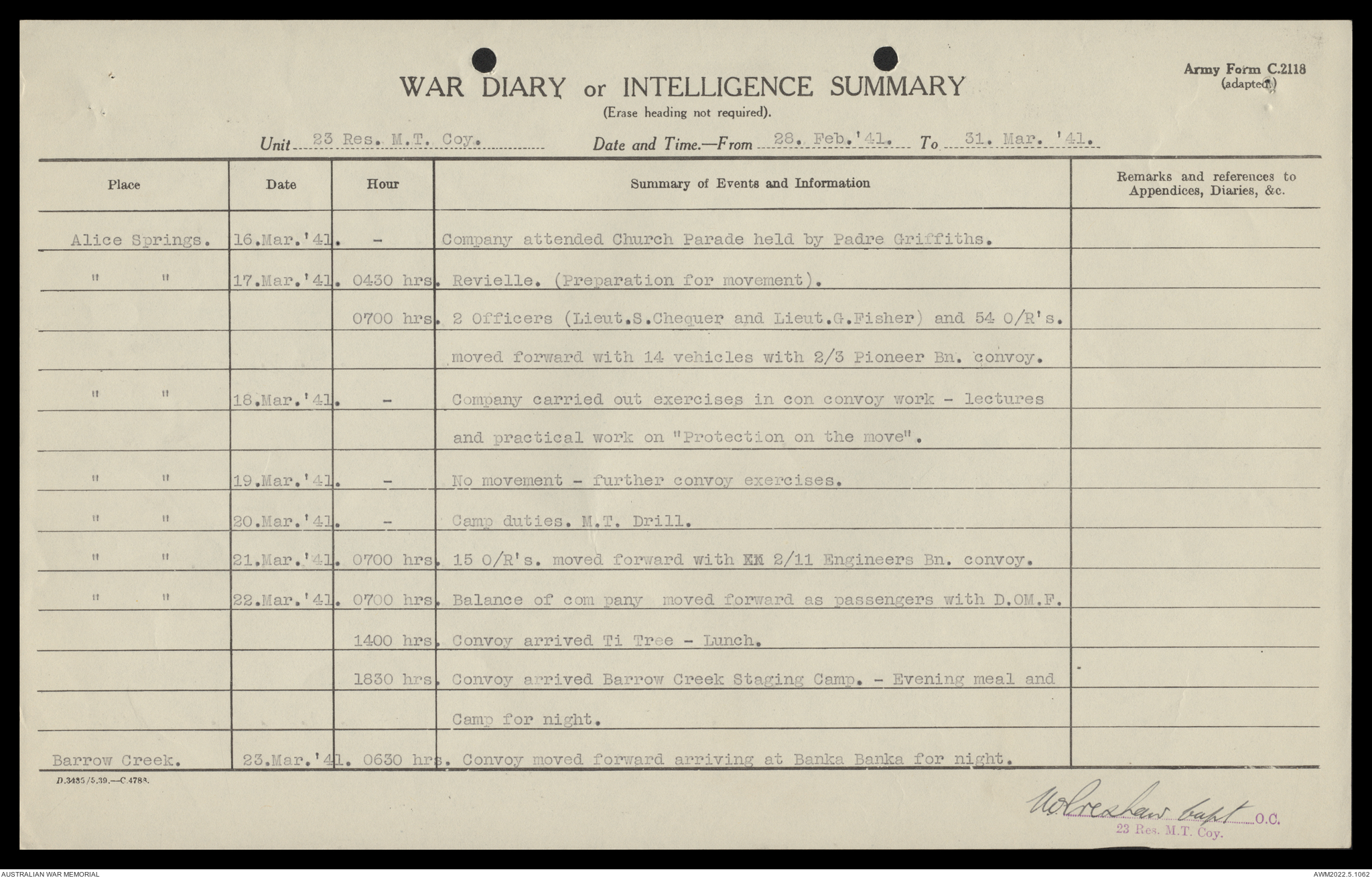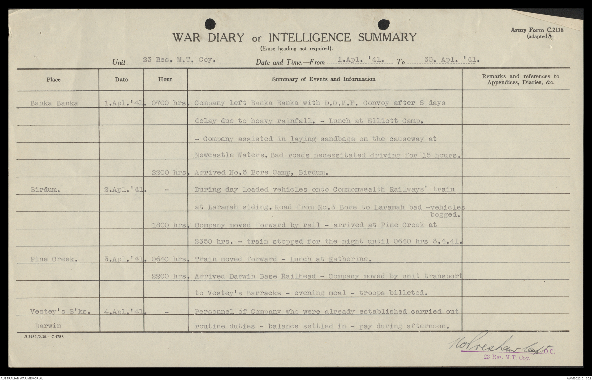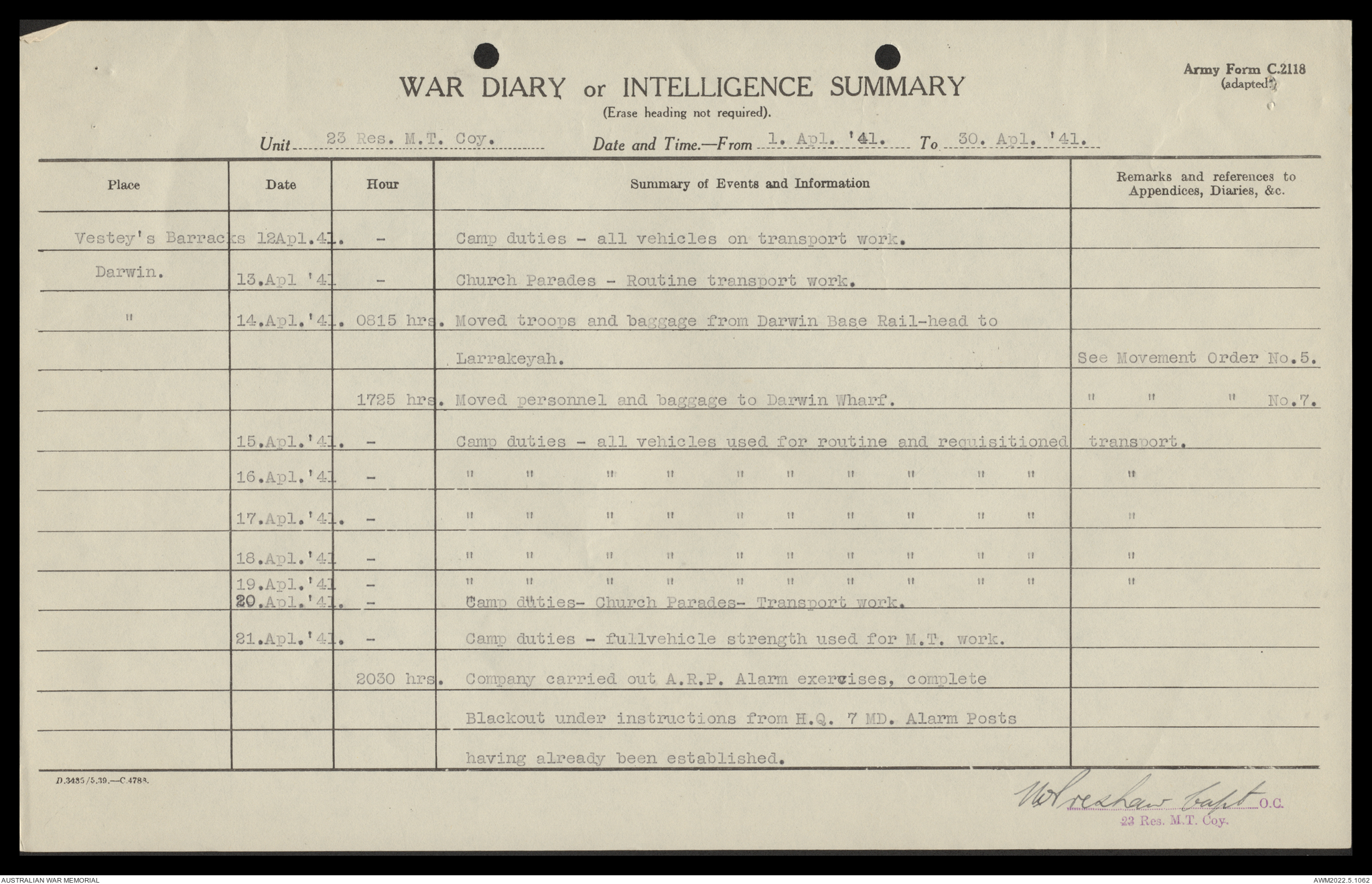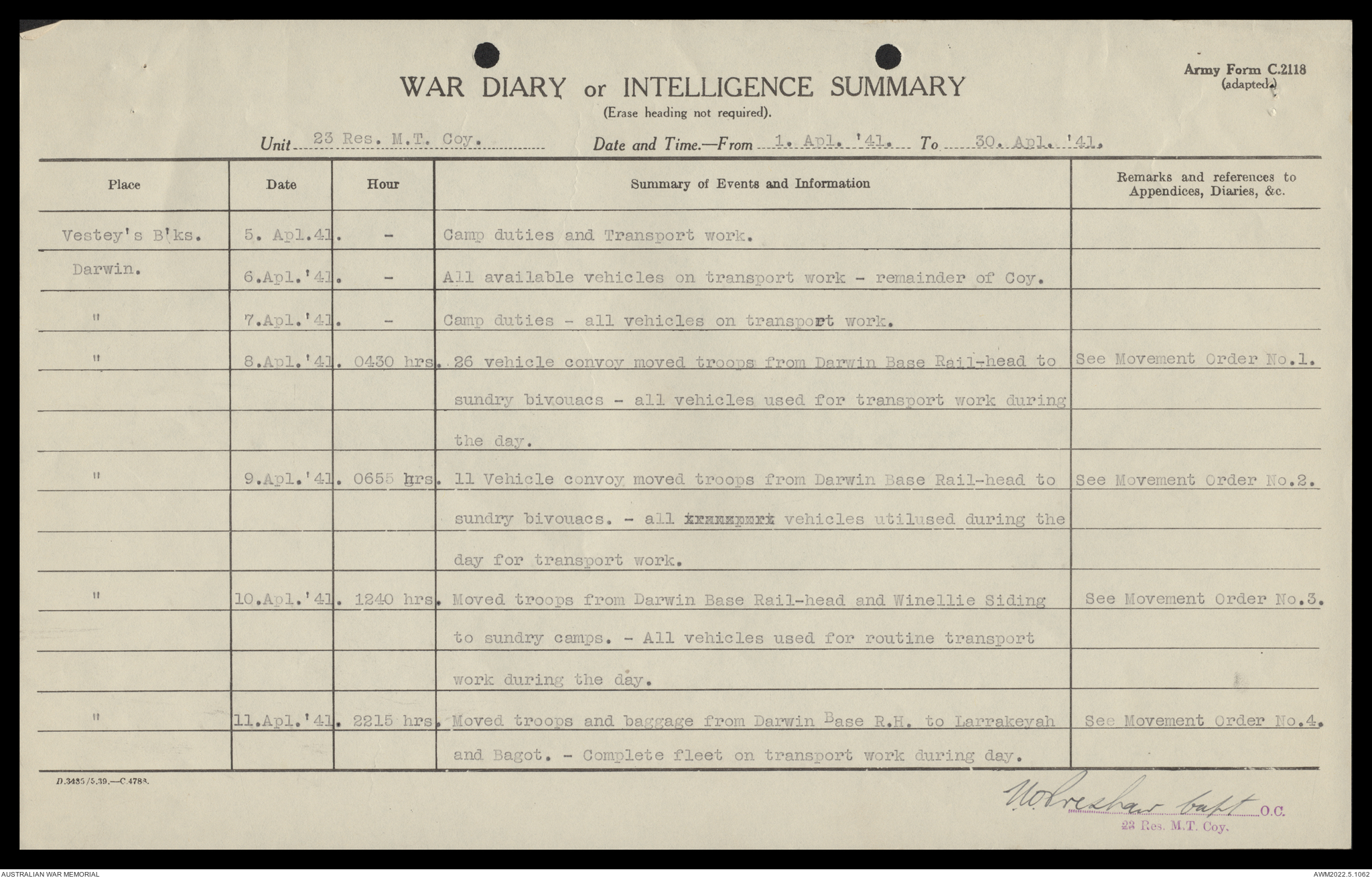 AWM52 10/11/7/1 - [Unit War Diaries, 1939-45 War] 23 Australian Reserve Motor Transport Company, February - April 1941