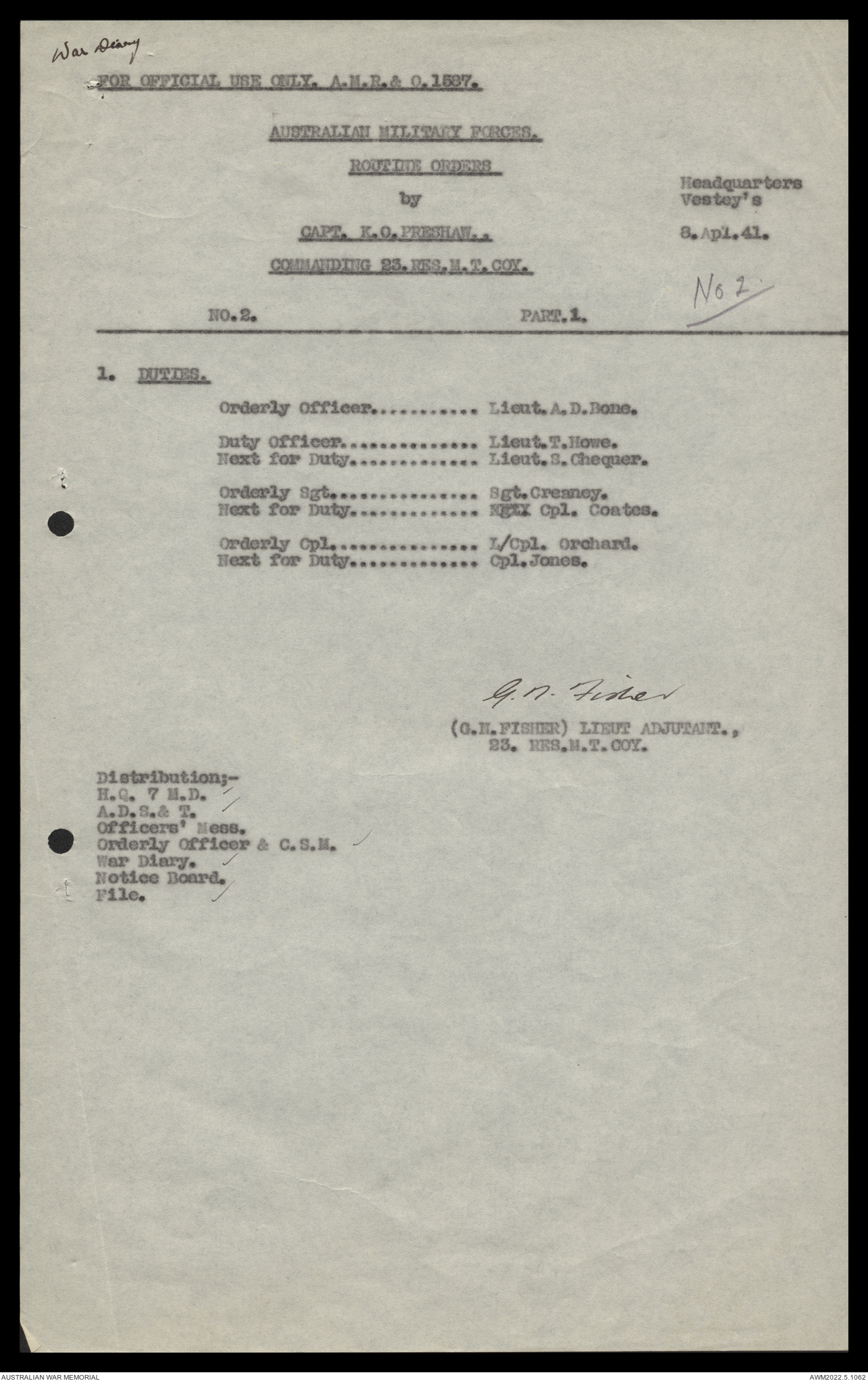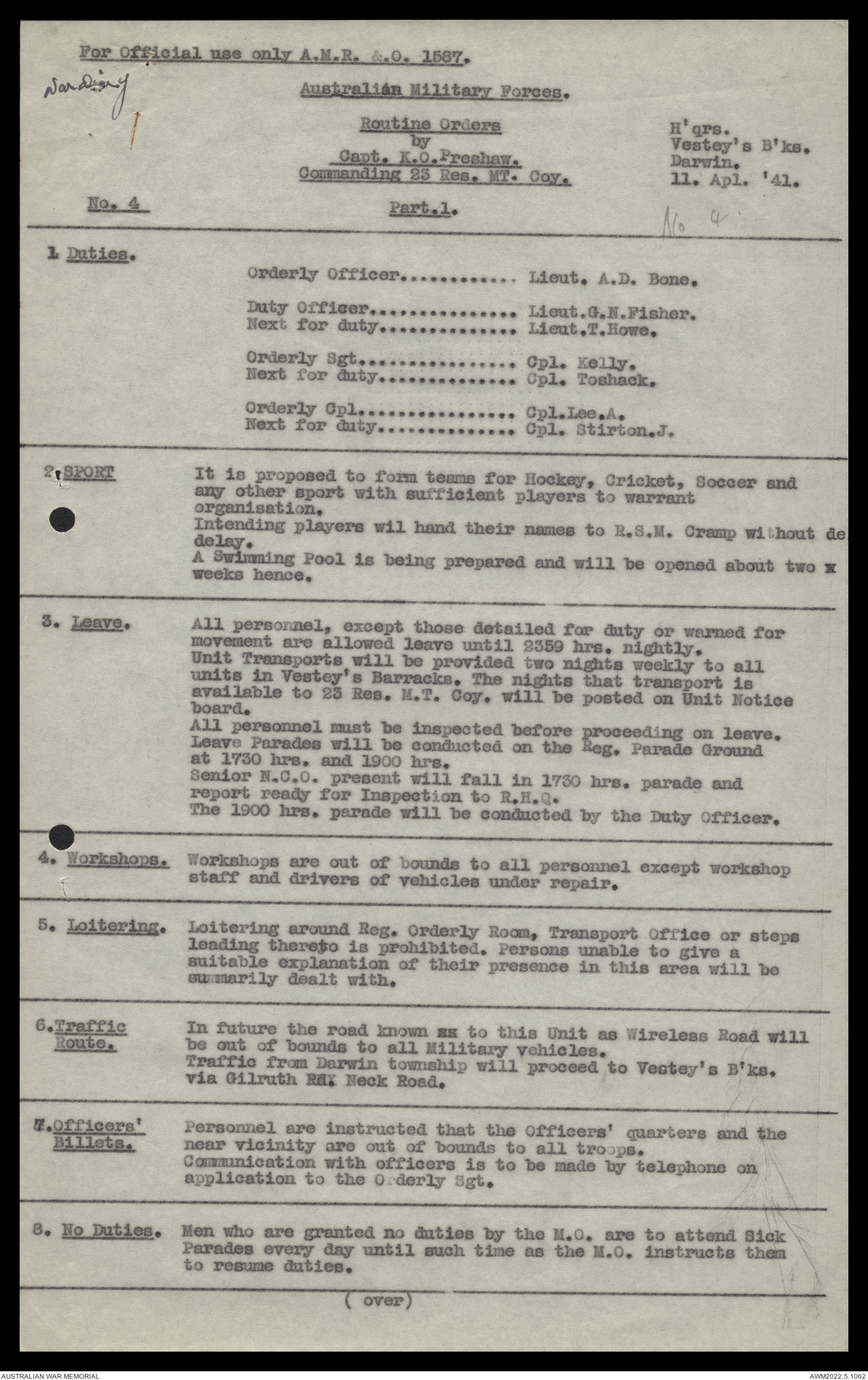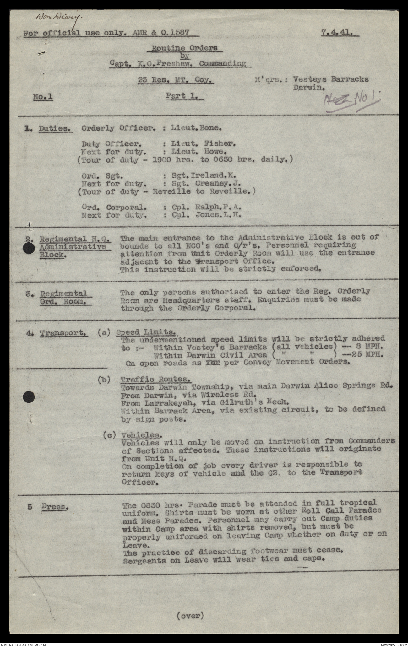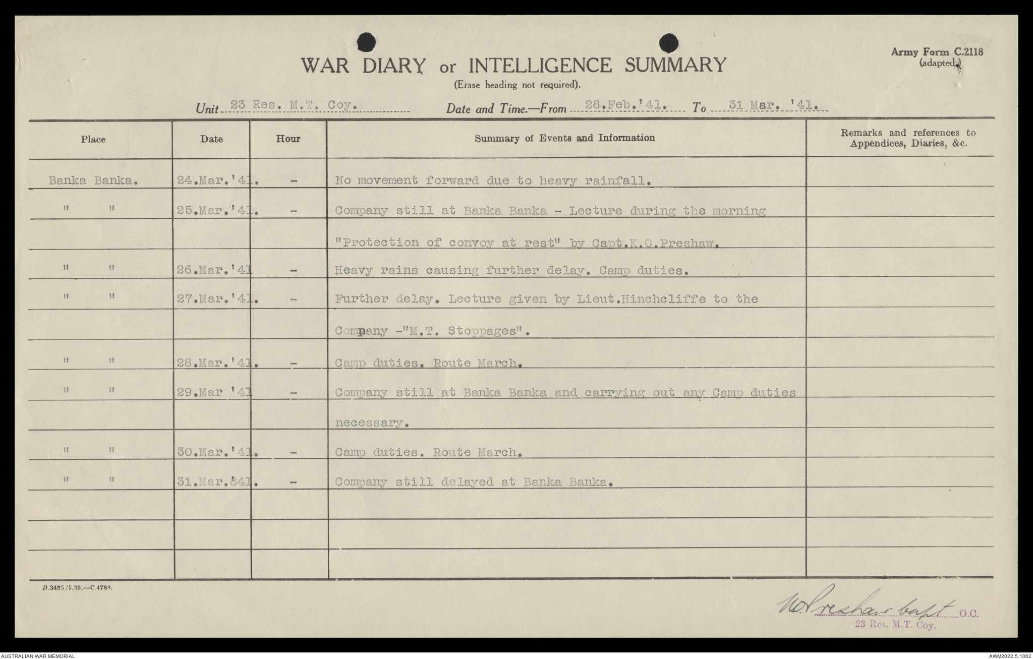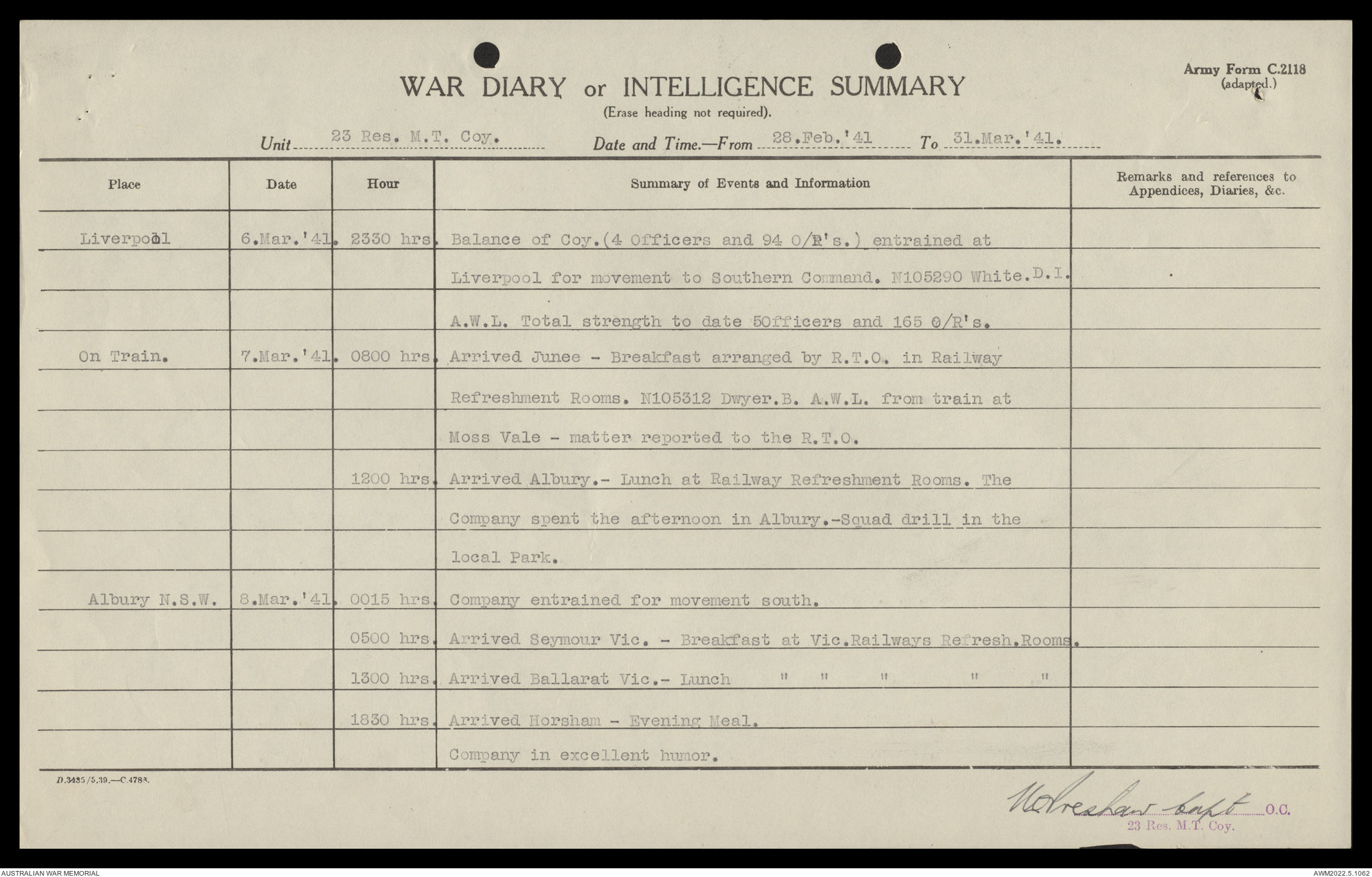 AWM52 10/11/7/1 - [Unit War Diaries, 1939-45 War] 23 Australian Reserve Motor Transport Company, February - April 1941