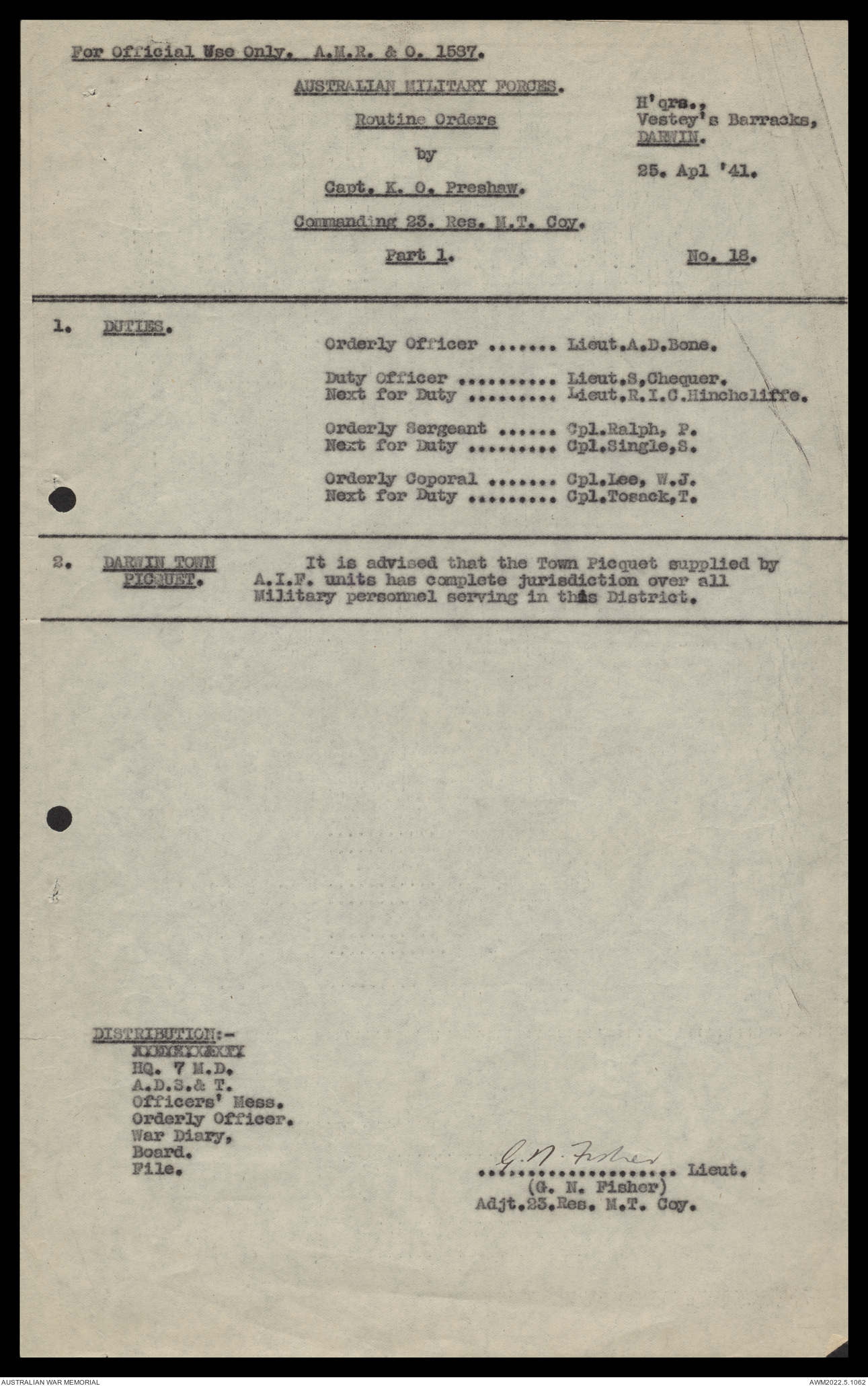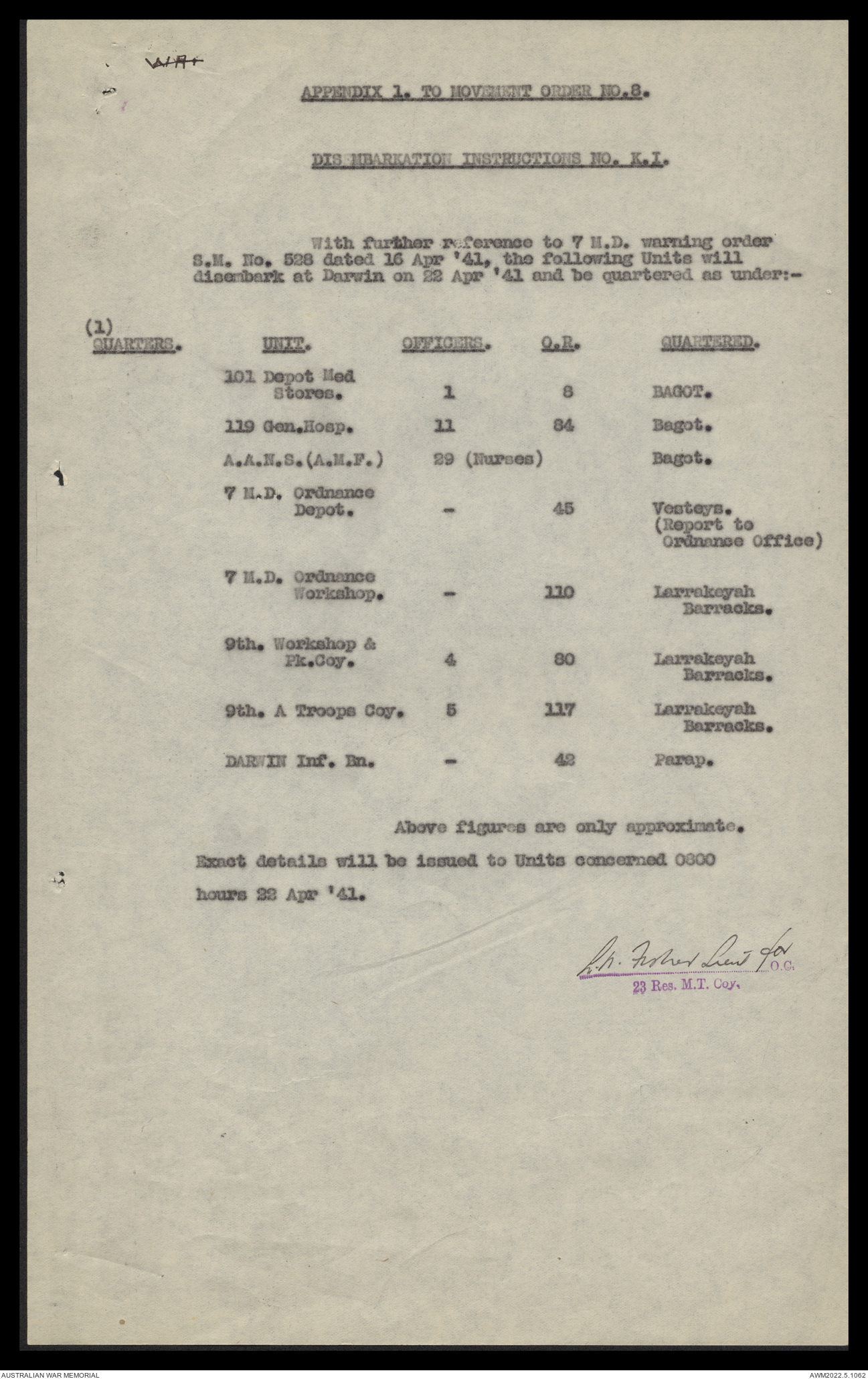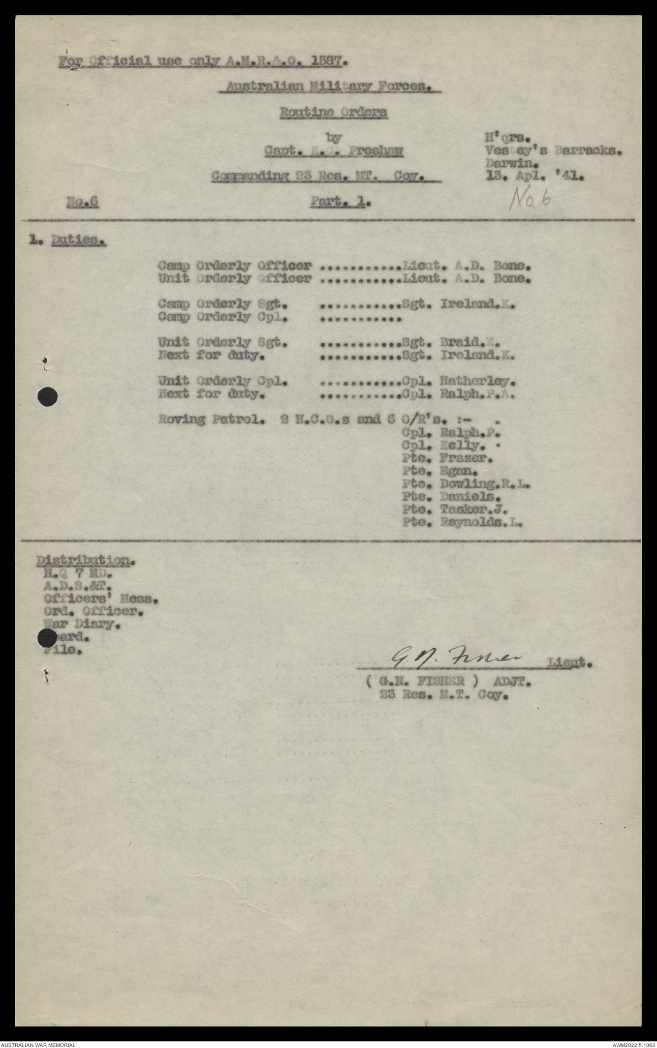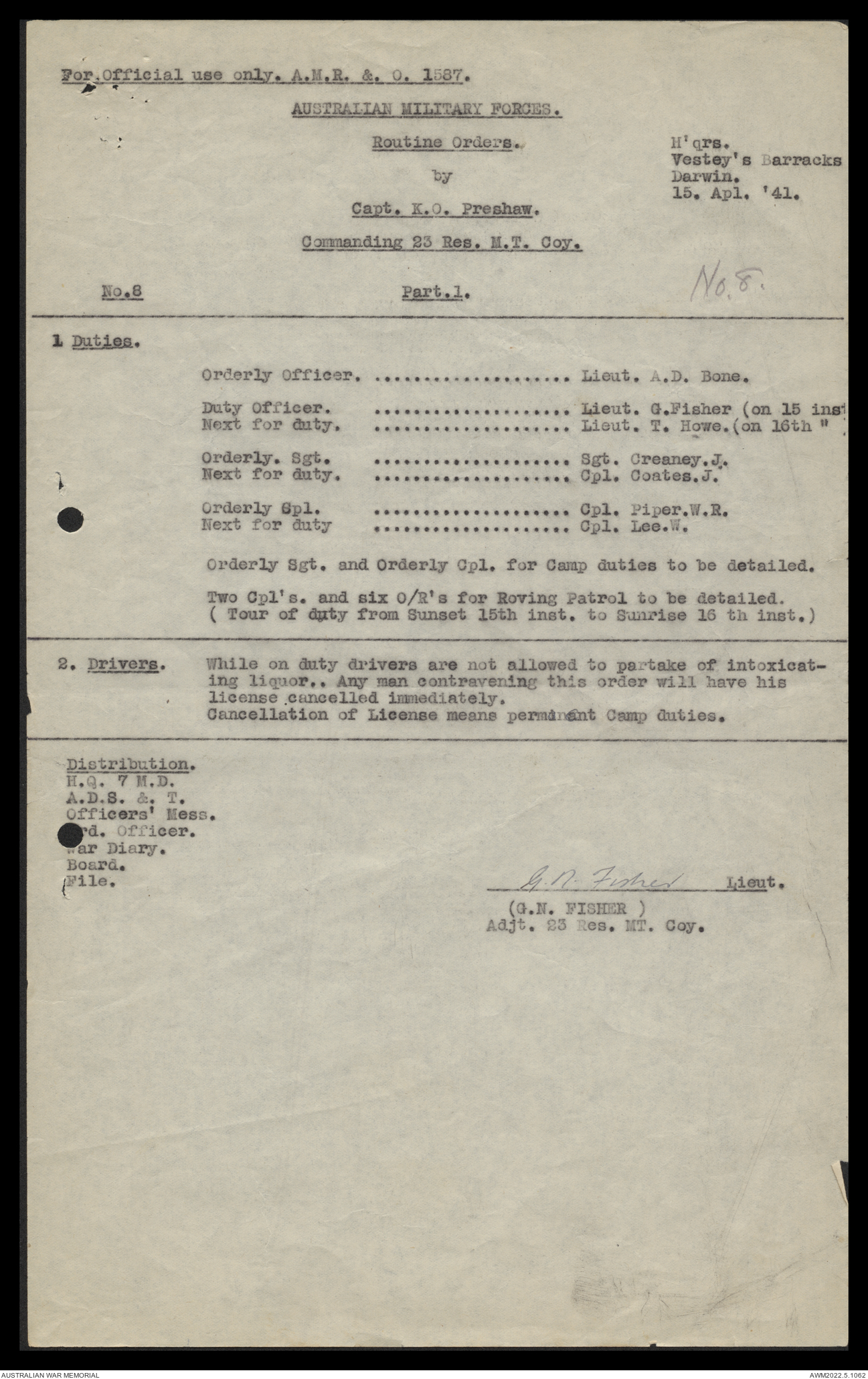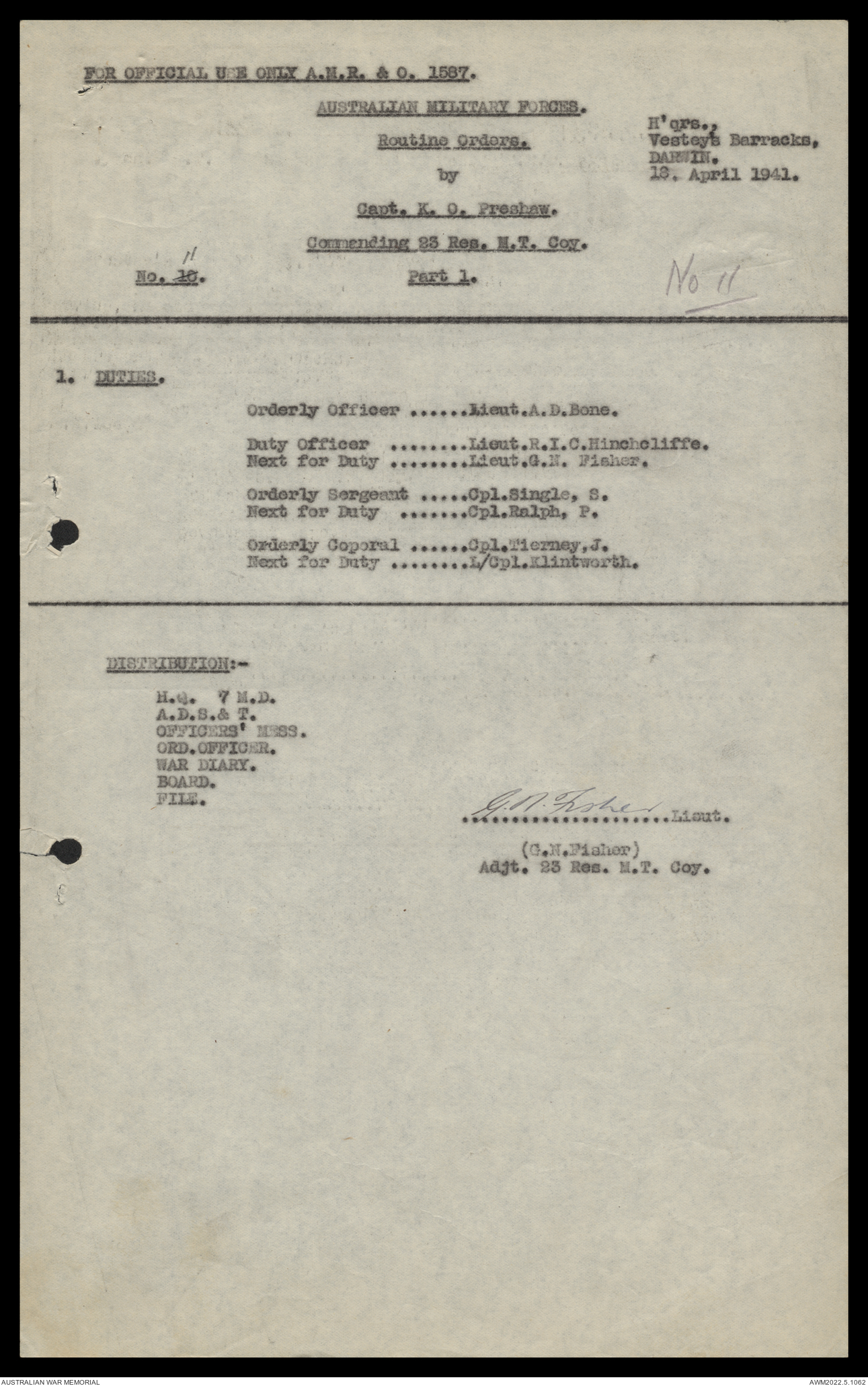 - AWM52 10/11/7 - 23 Australian Reserve Motor Transport Company