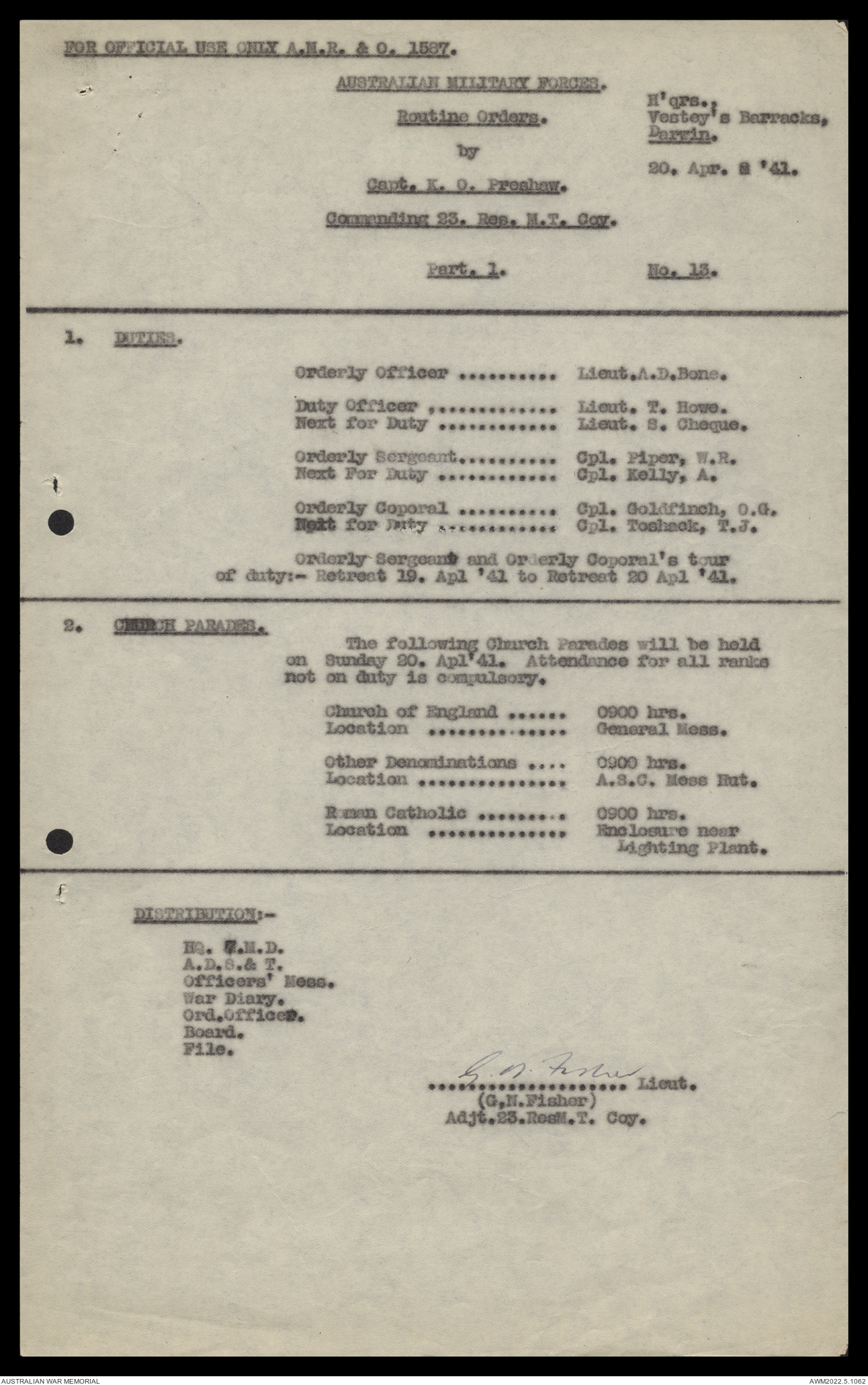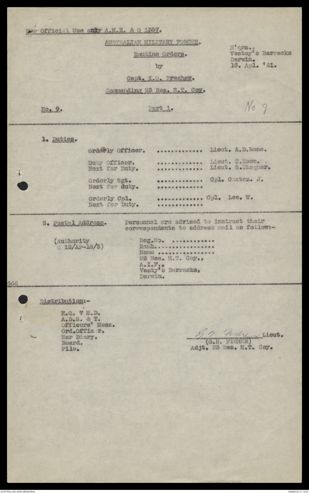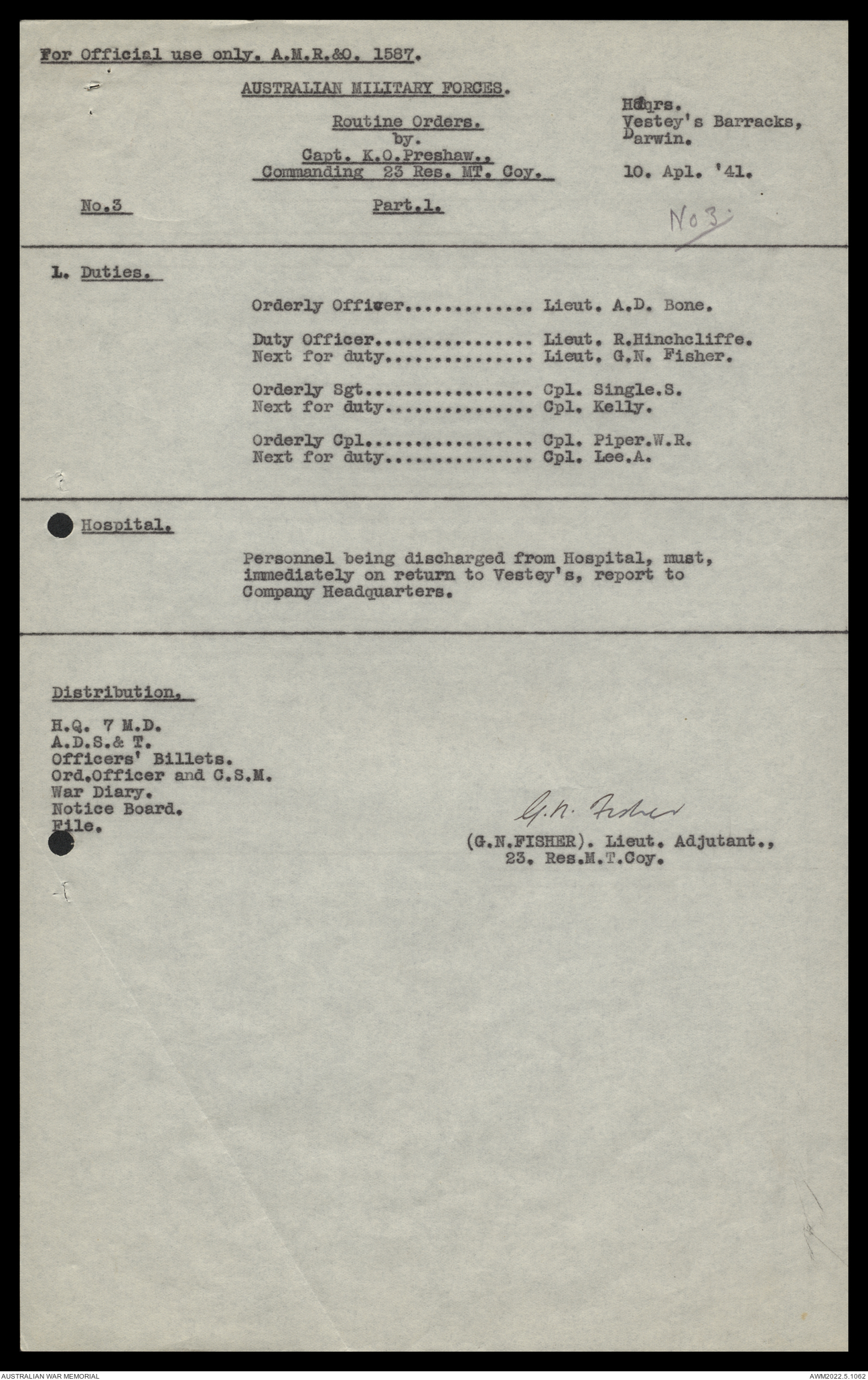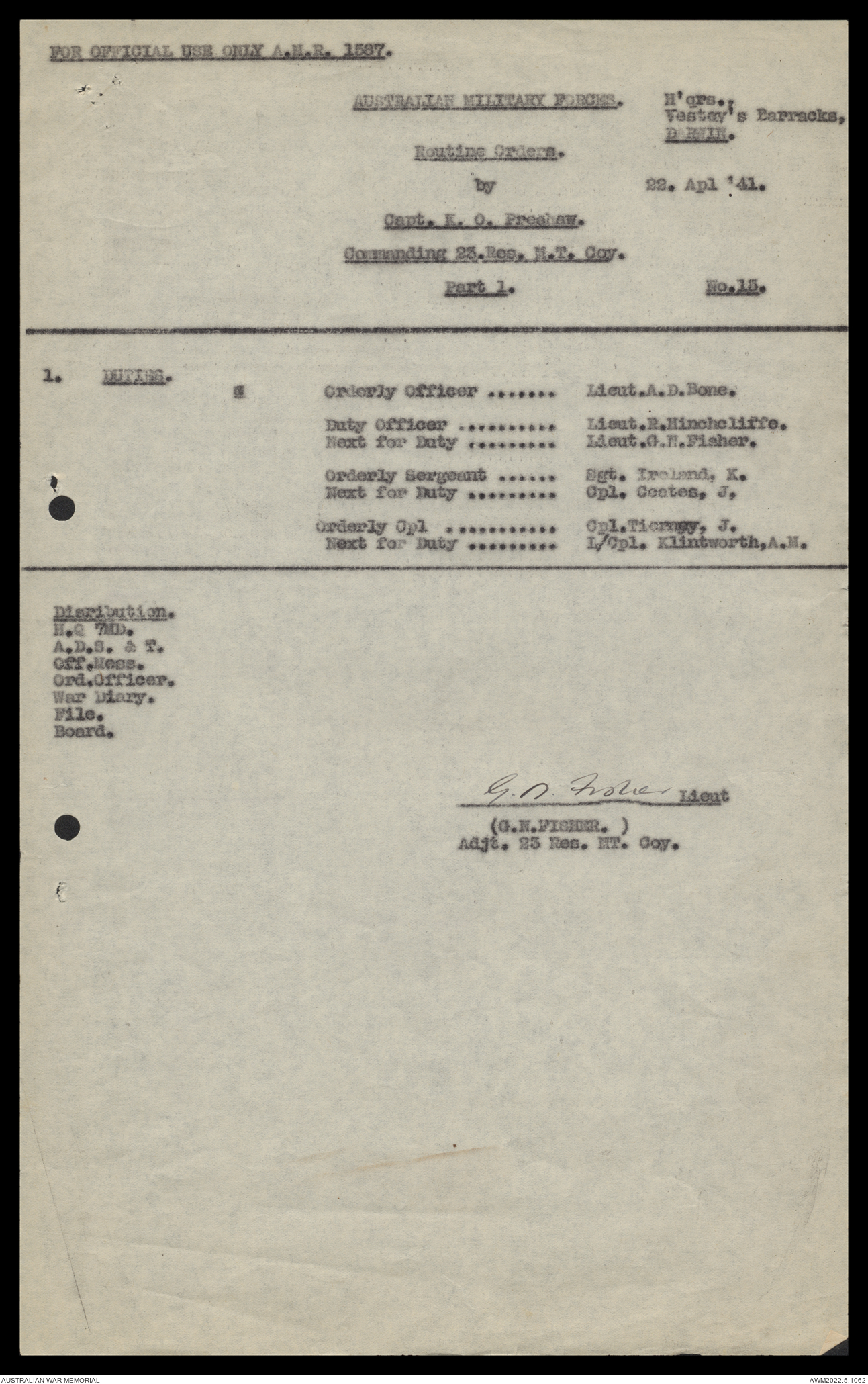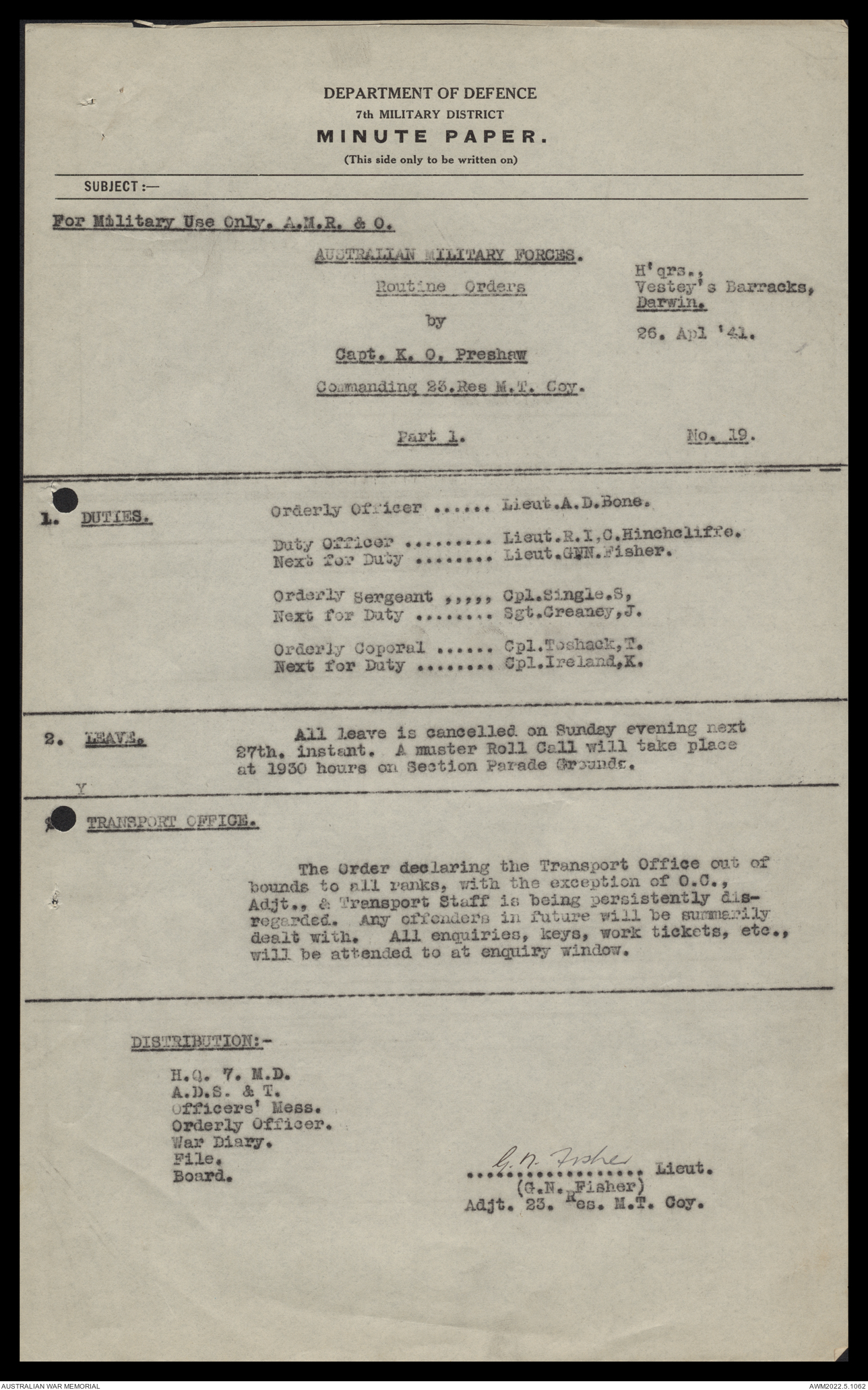 - AWM52 10/11/7 - 23 Australian Reserve Motor Transport Company