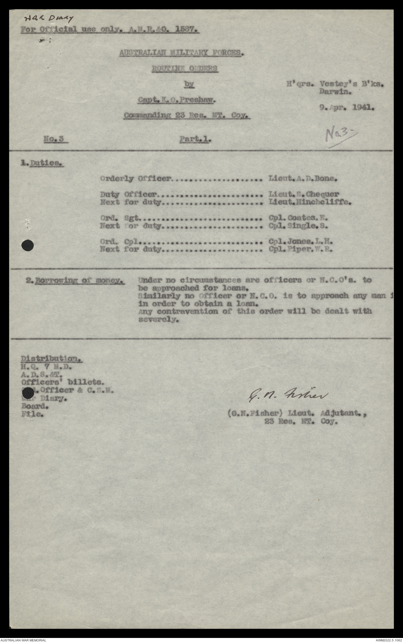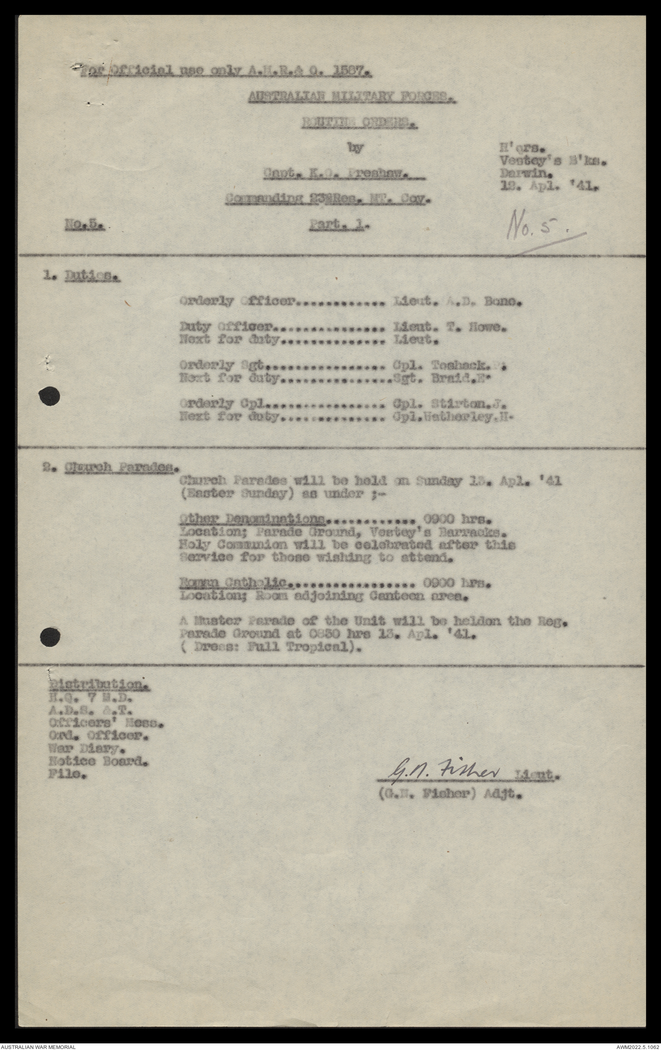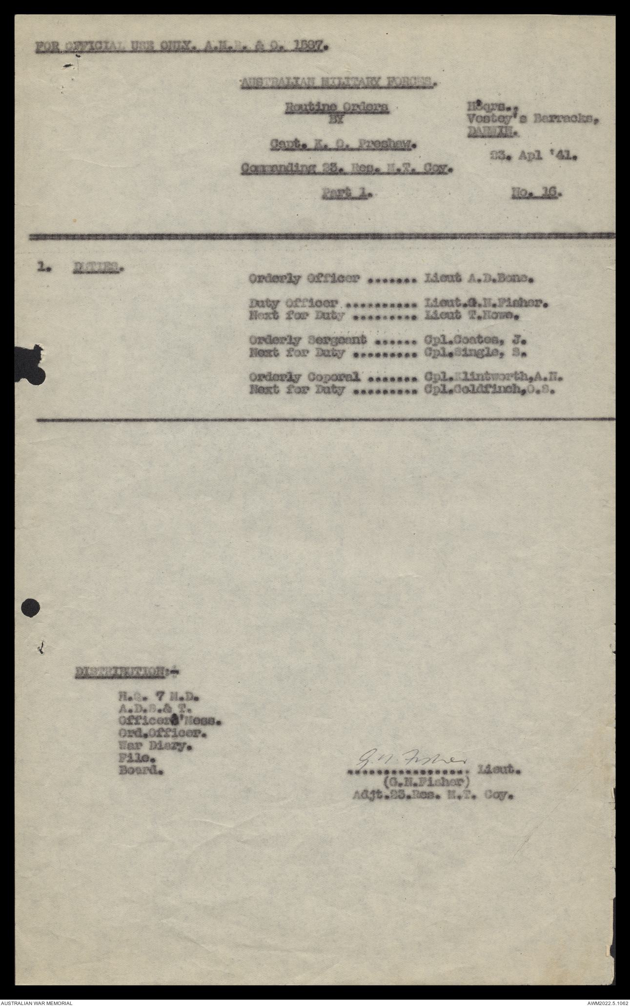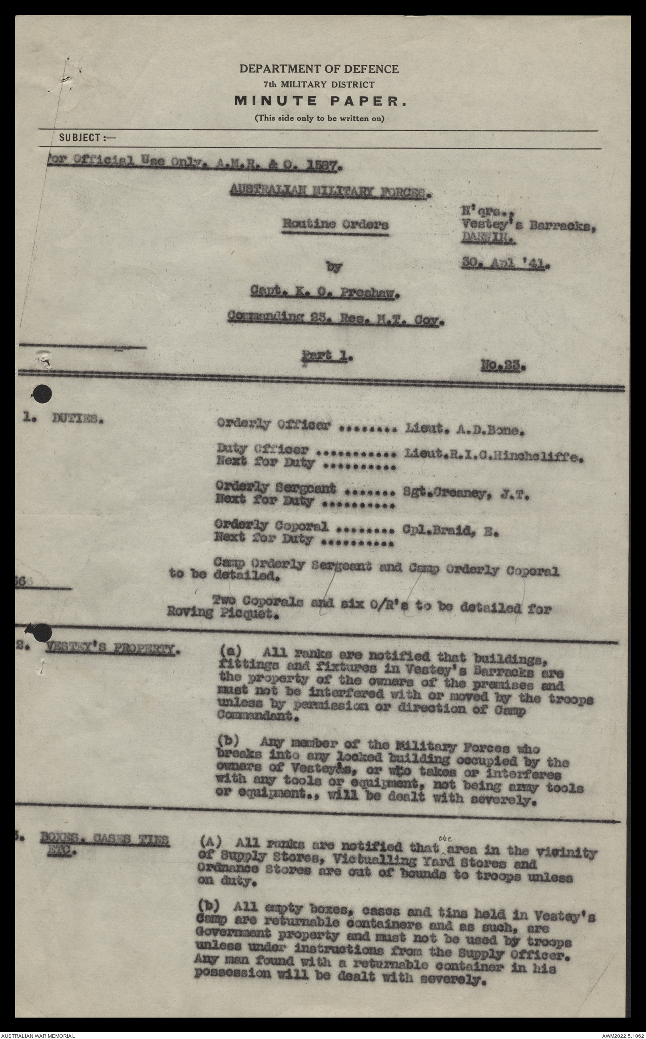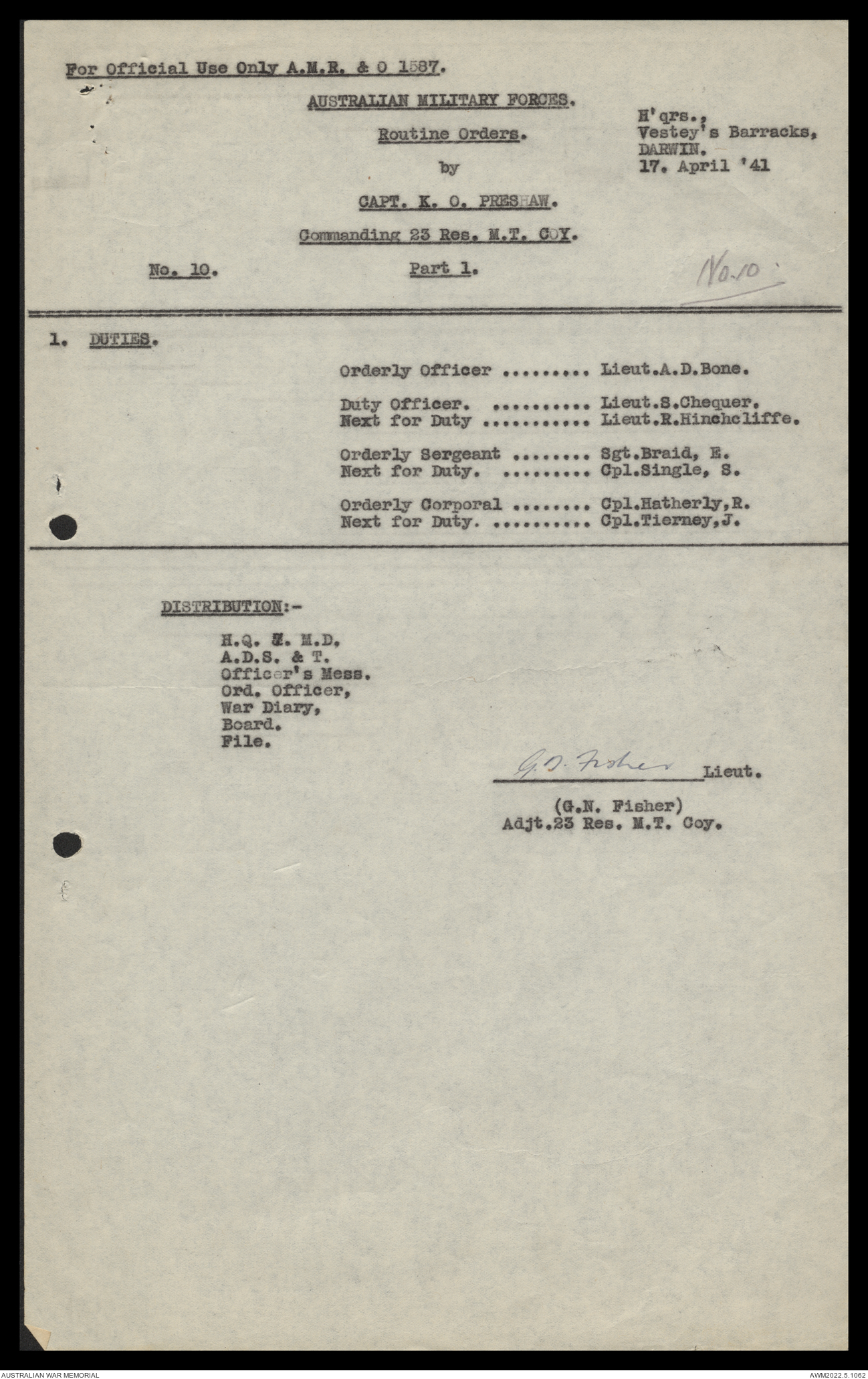 | Collection number | AWM52 10/11/7/1 |