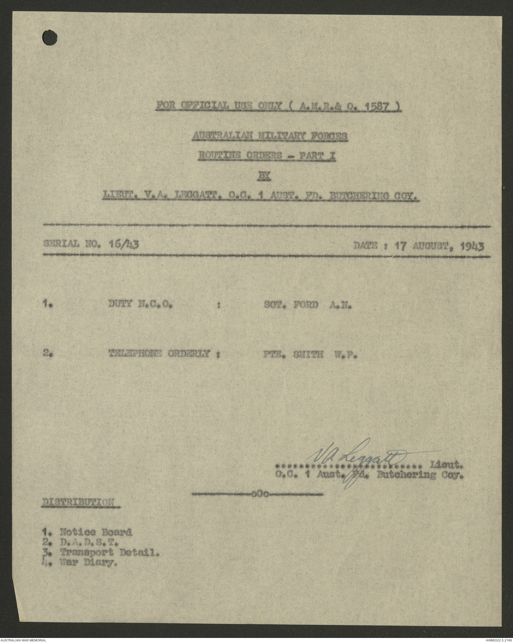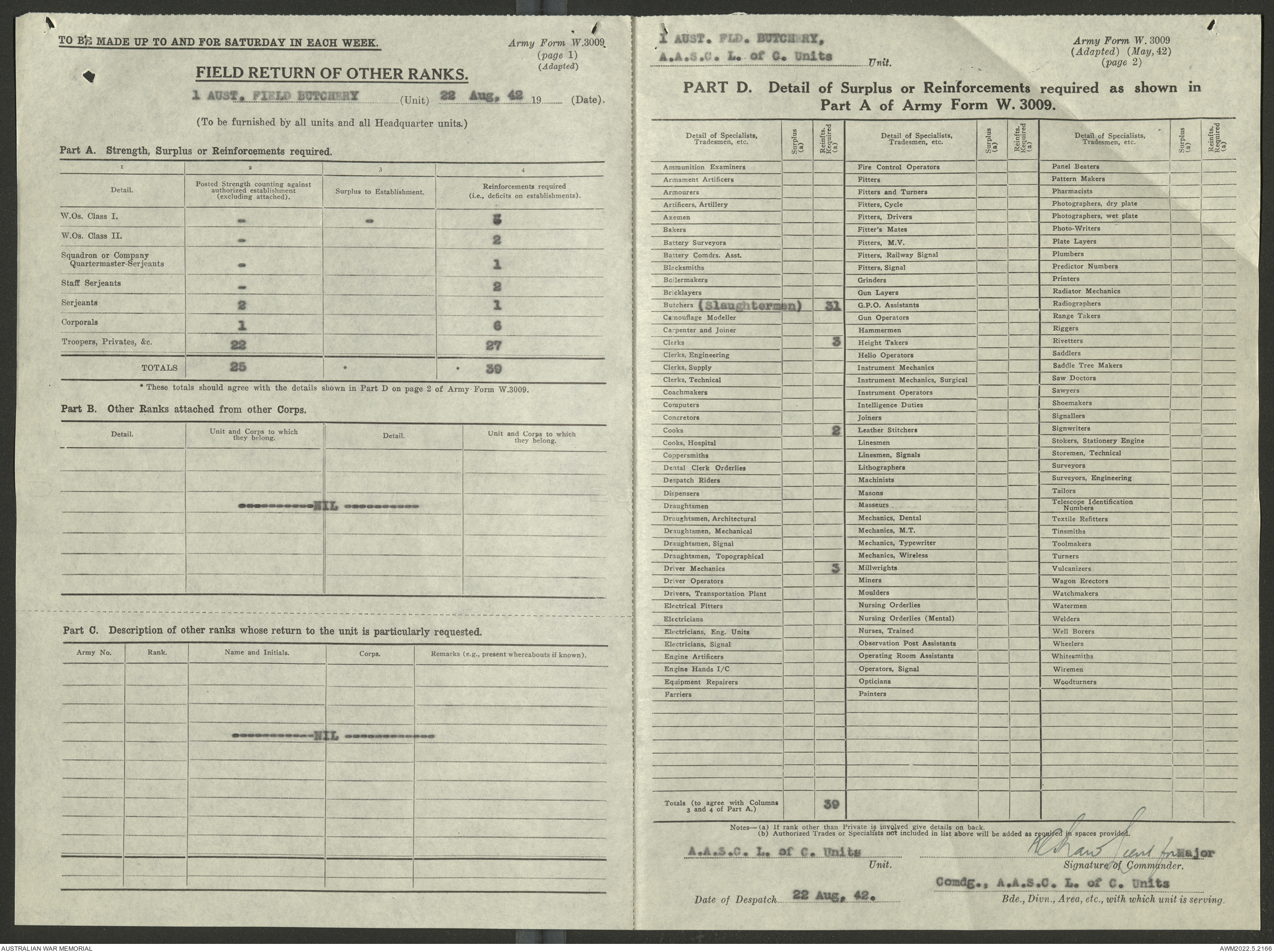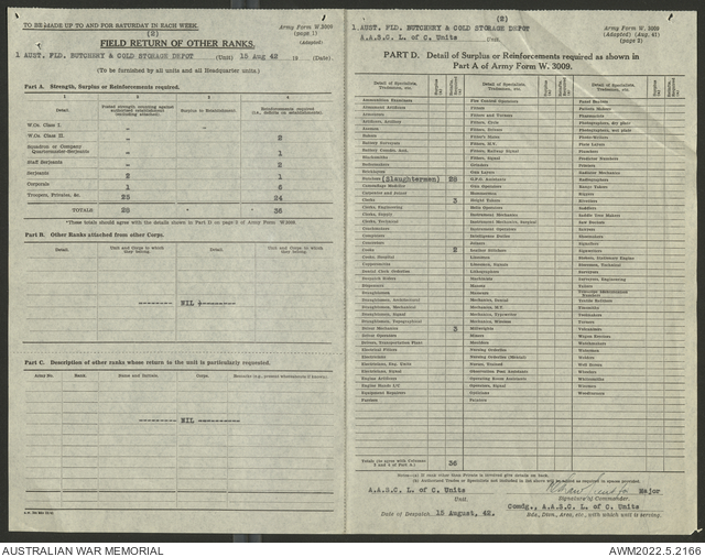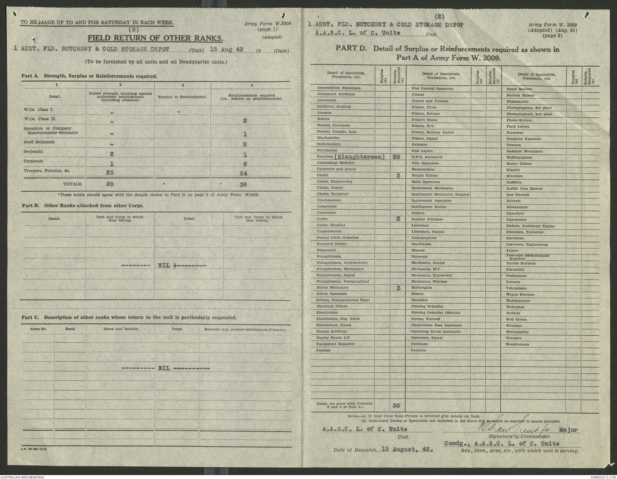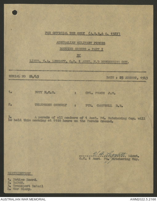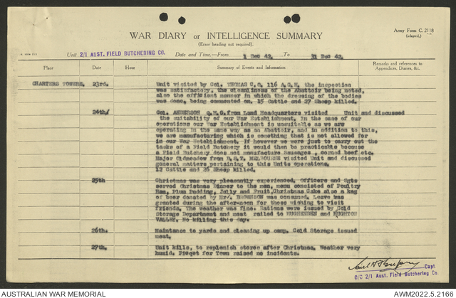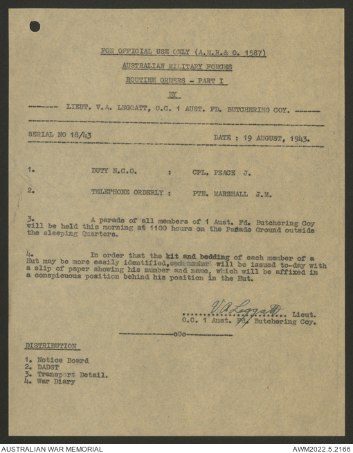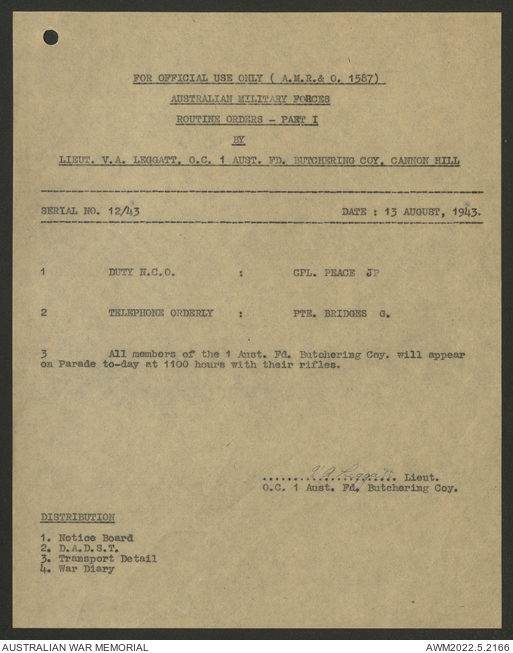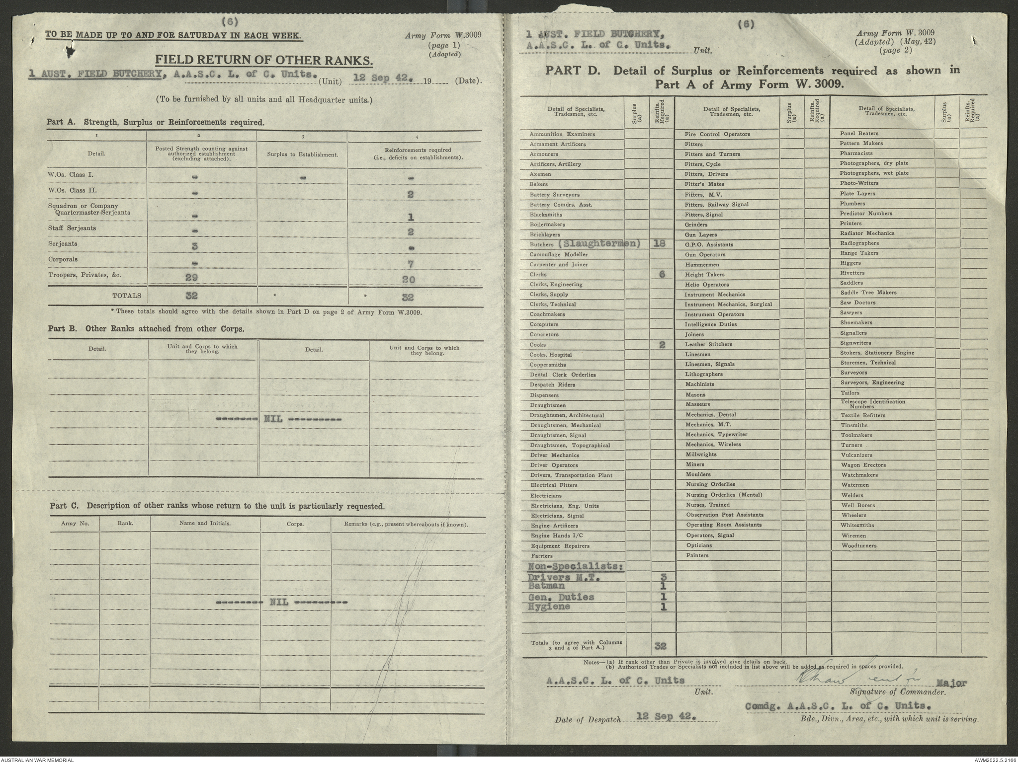 AWM52 10/28/1/1 - [Unit War Diaries, 1939-45 War] 1 Australian Field Butchering Company, March 1942 - August 1943