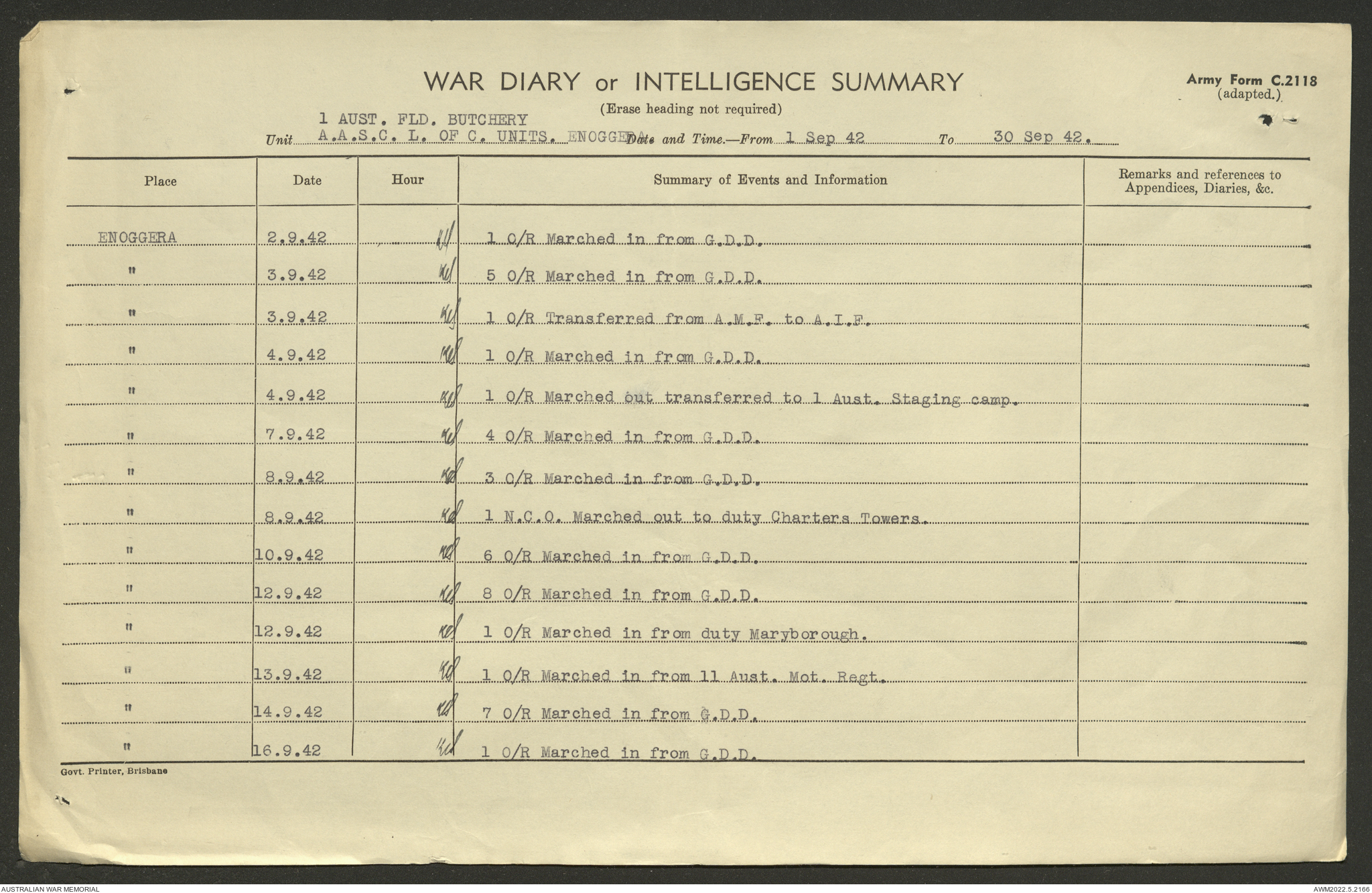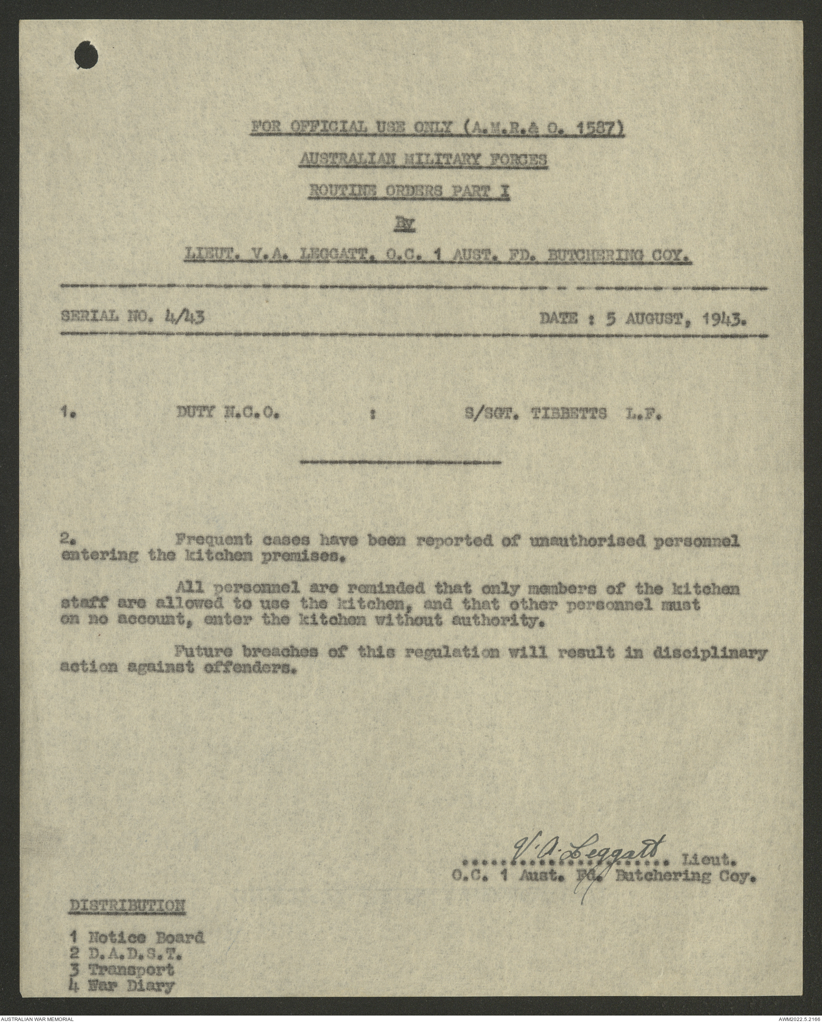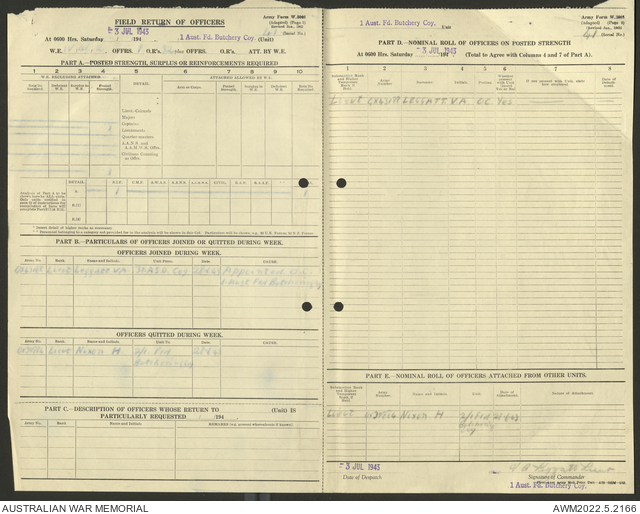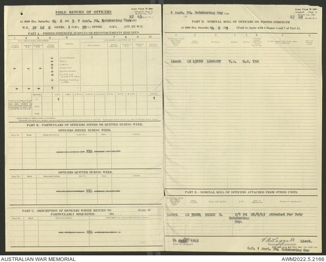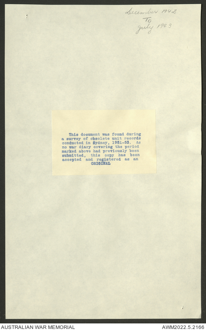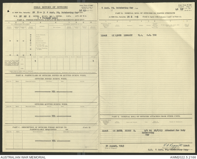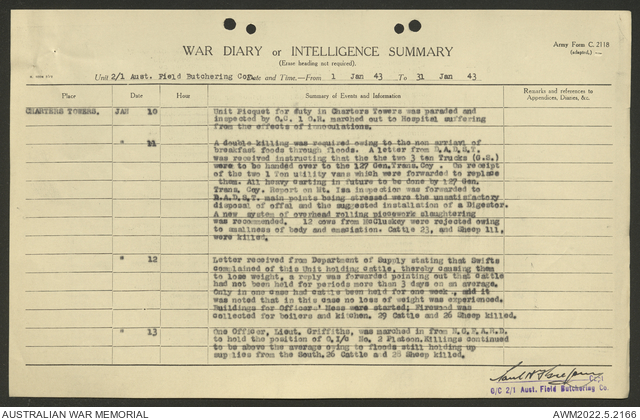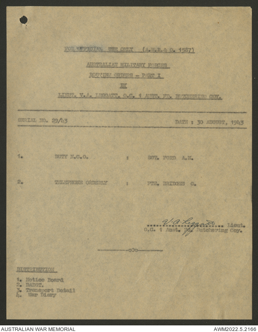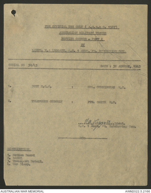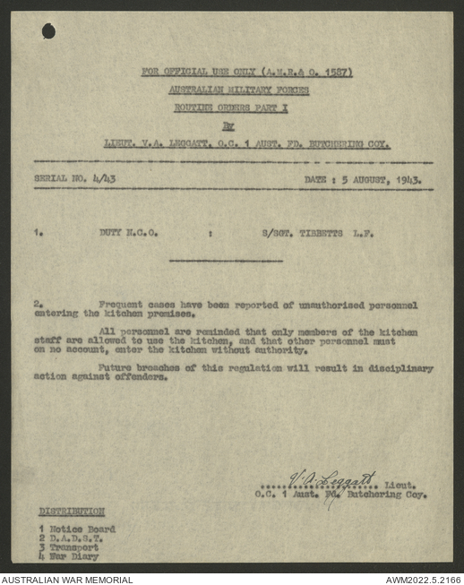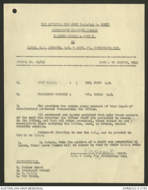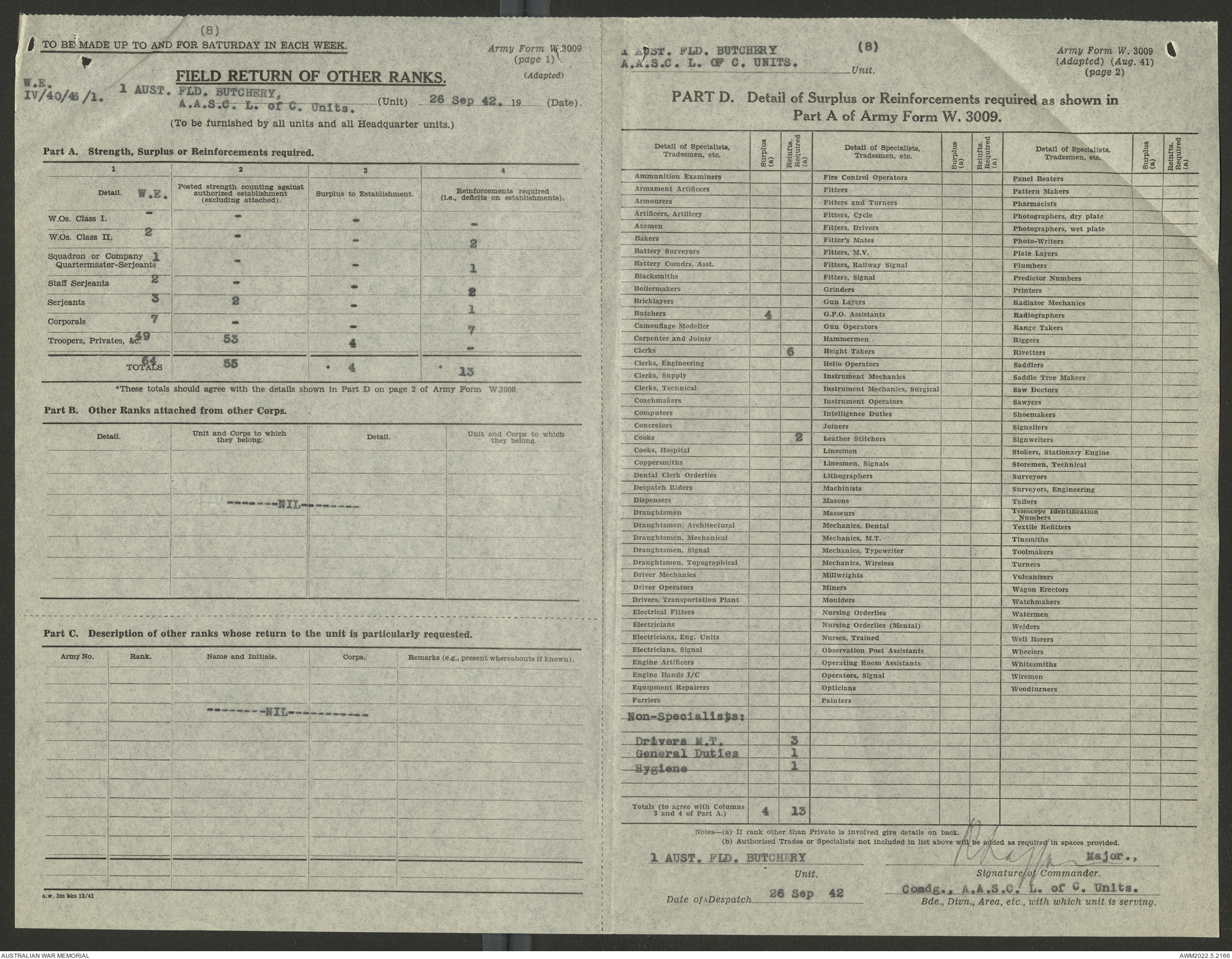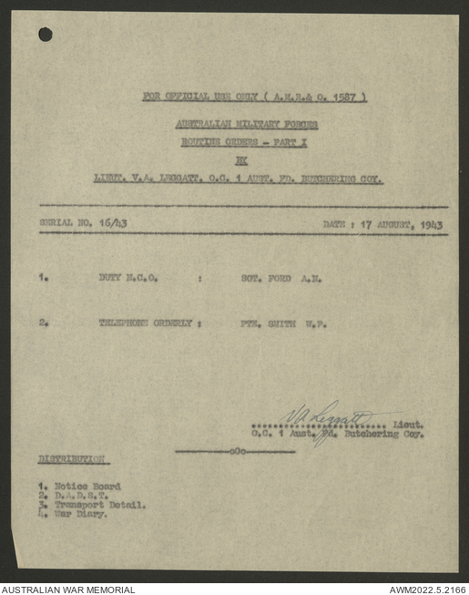 AWM52 10/28/1/1 - [Unit War Diaries, 1939-45 War] 1 Australian Field Butchering Company, March 1942 - August 1943