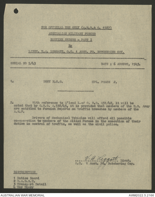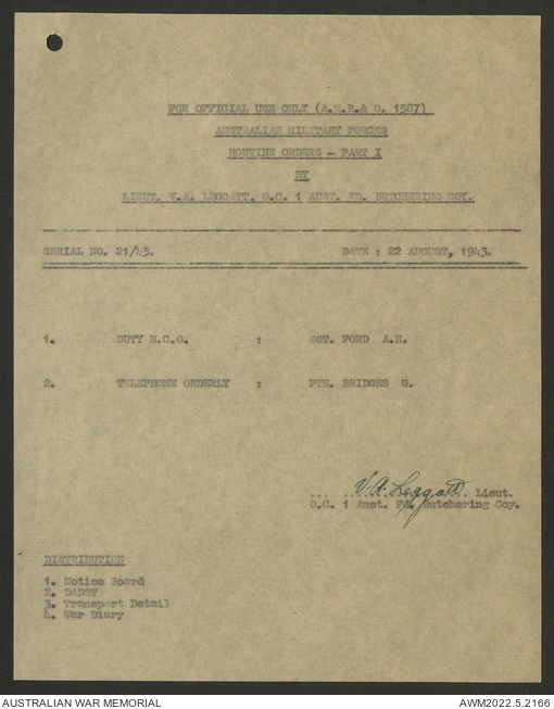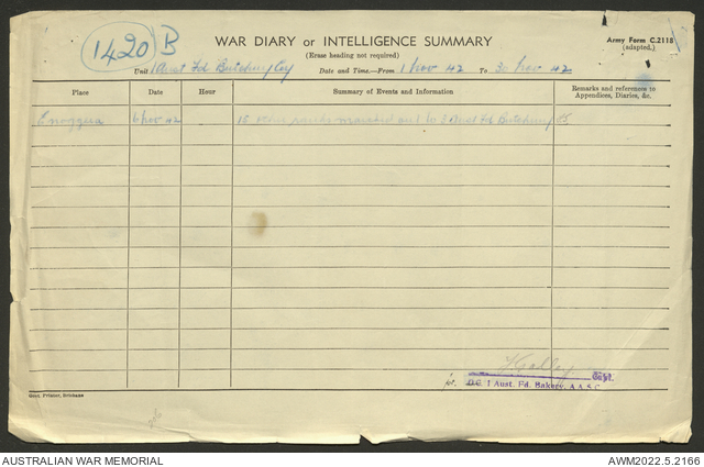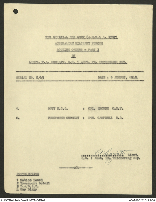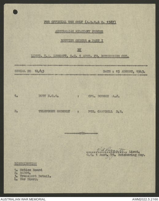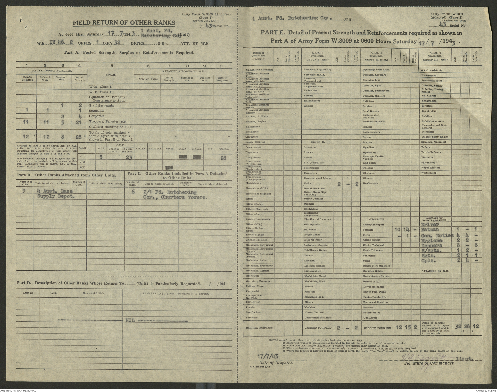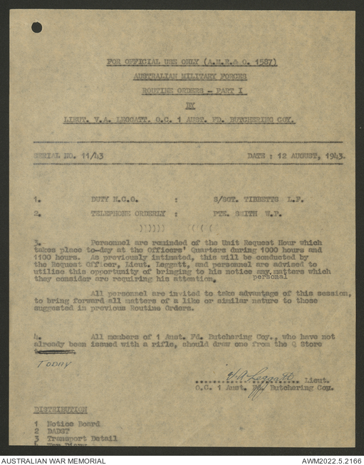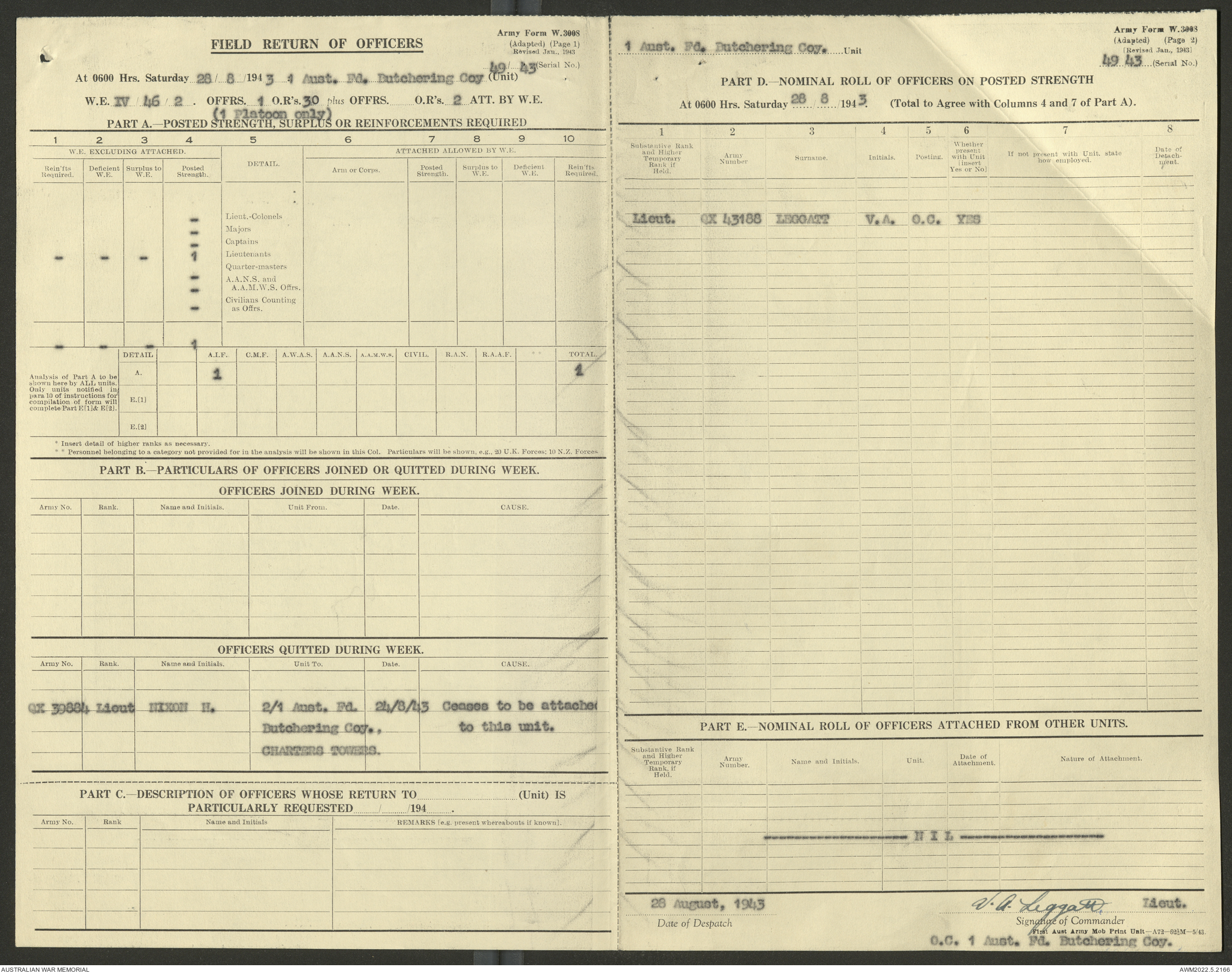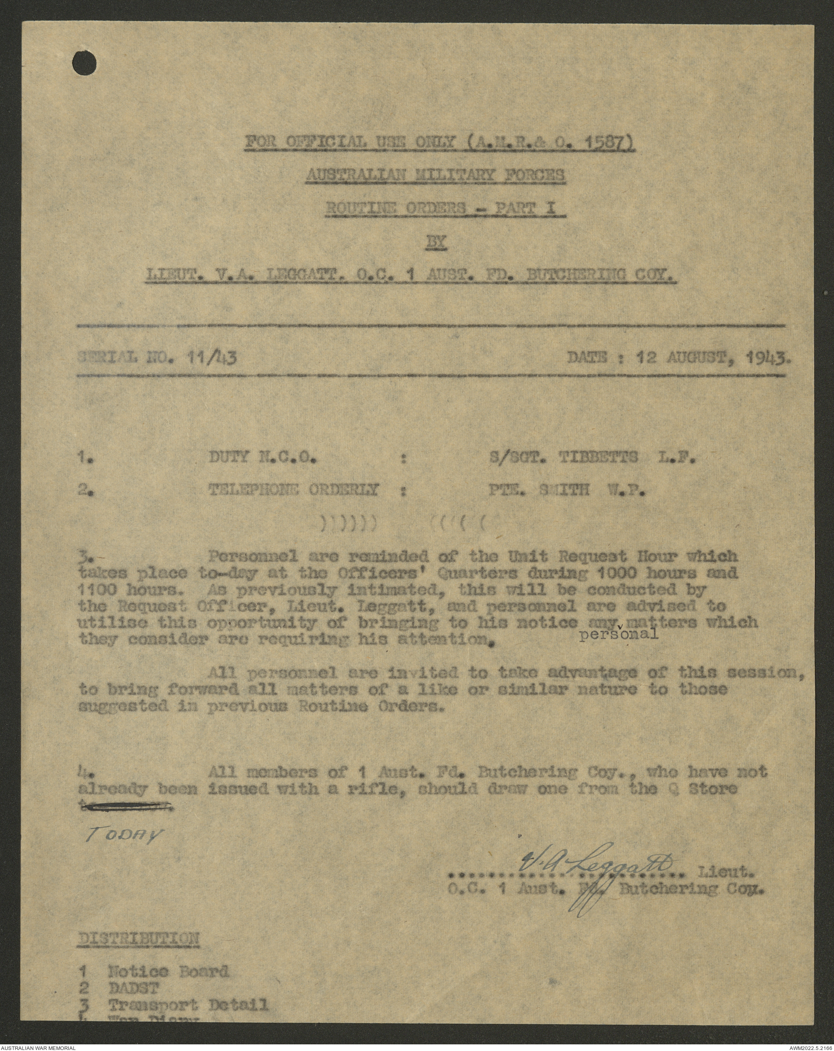 AWM52 10/28/1/1 - [Unit War Diaries, 1939-45 War] 1 Australian Field Butchering Company, March 1942 - August 1943