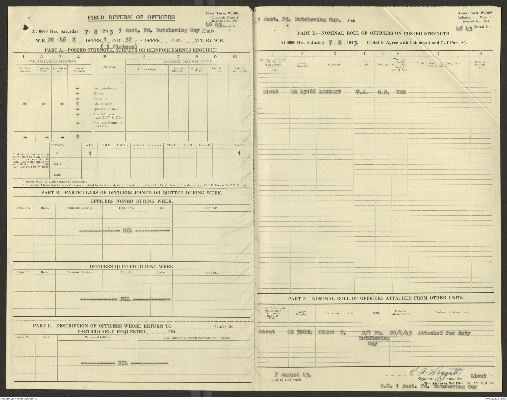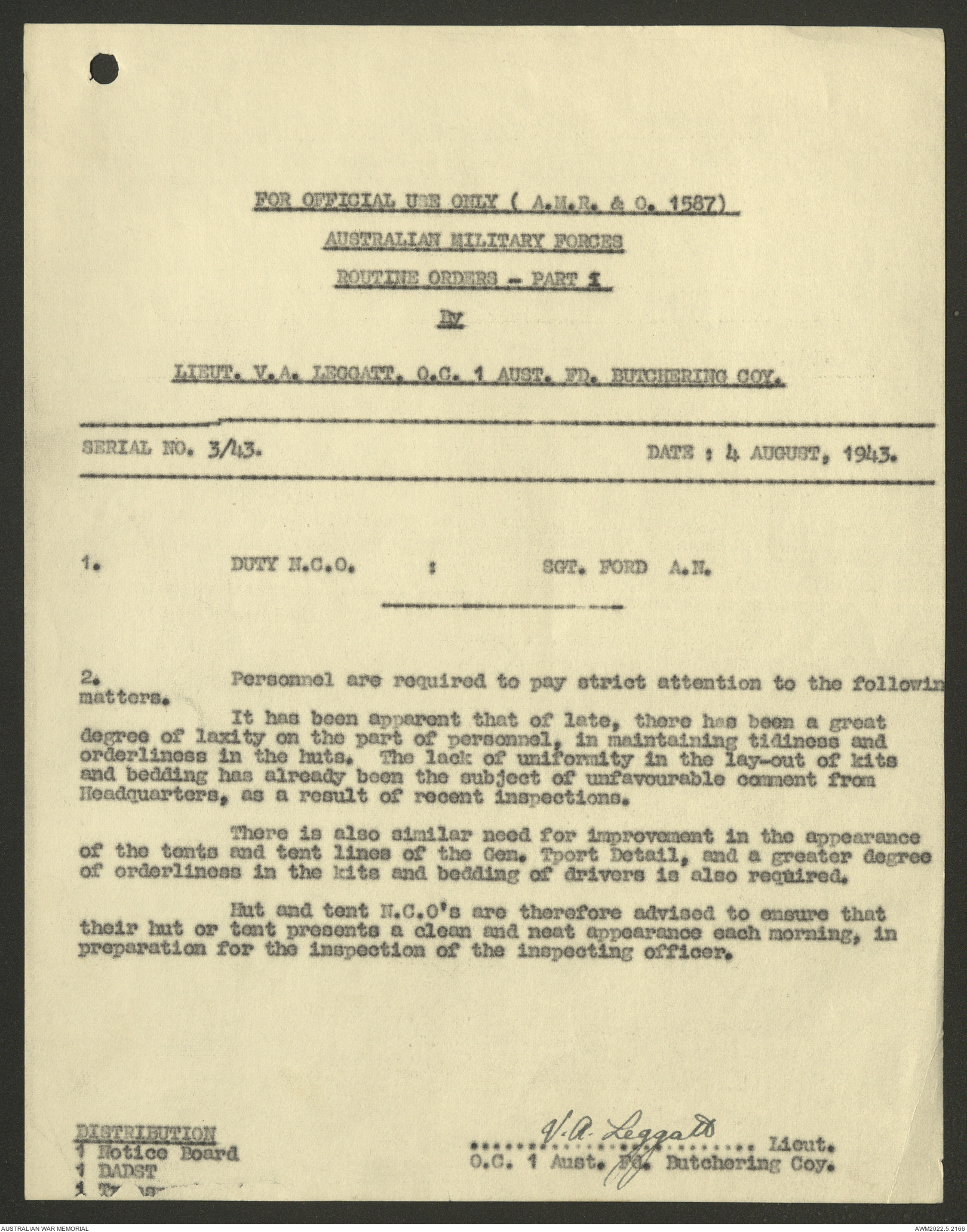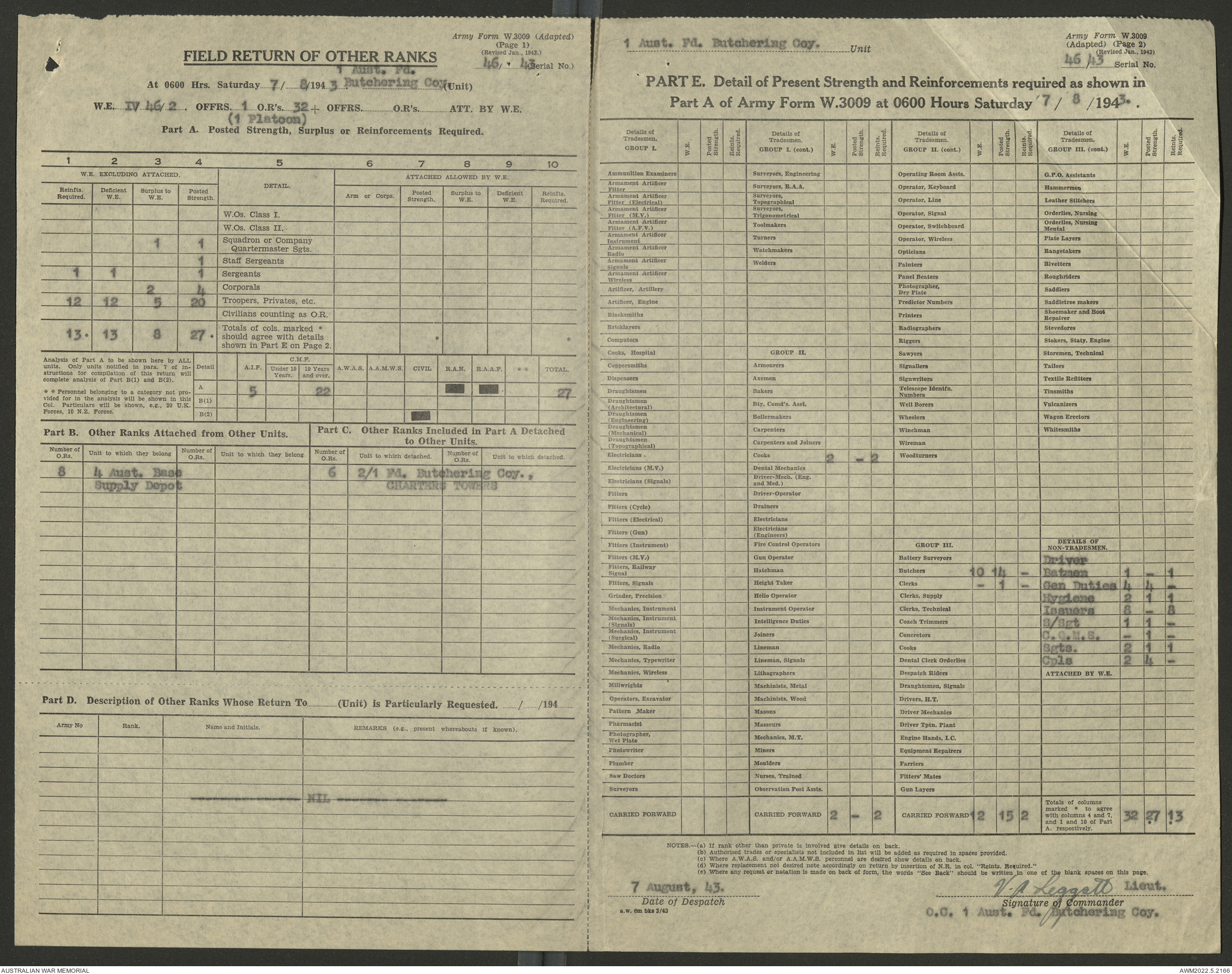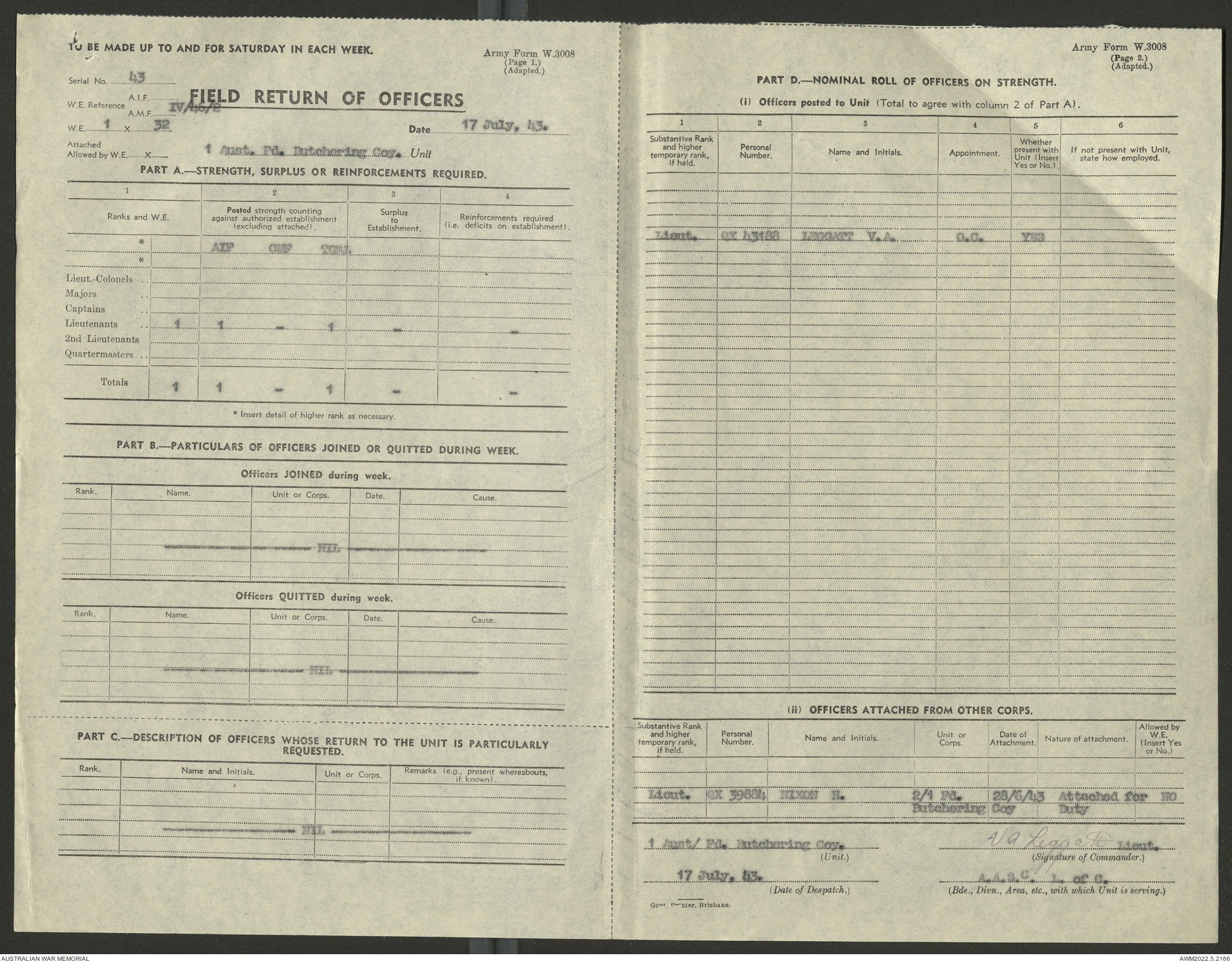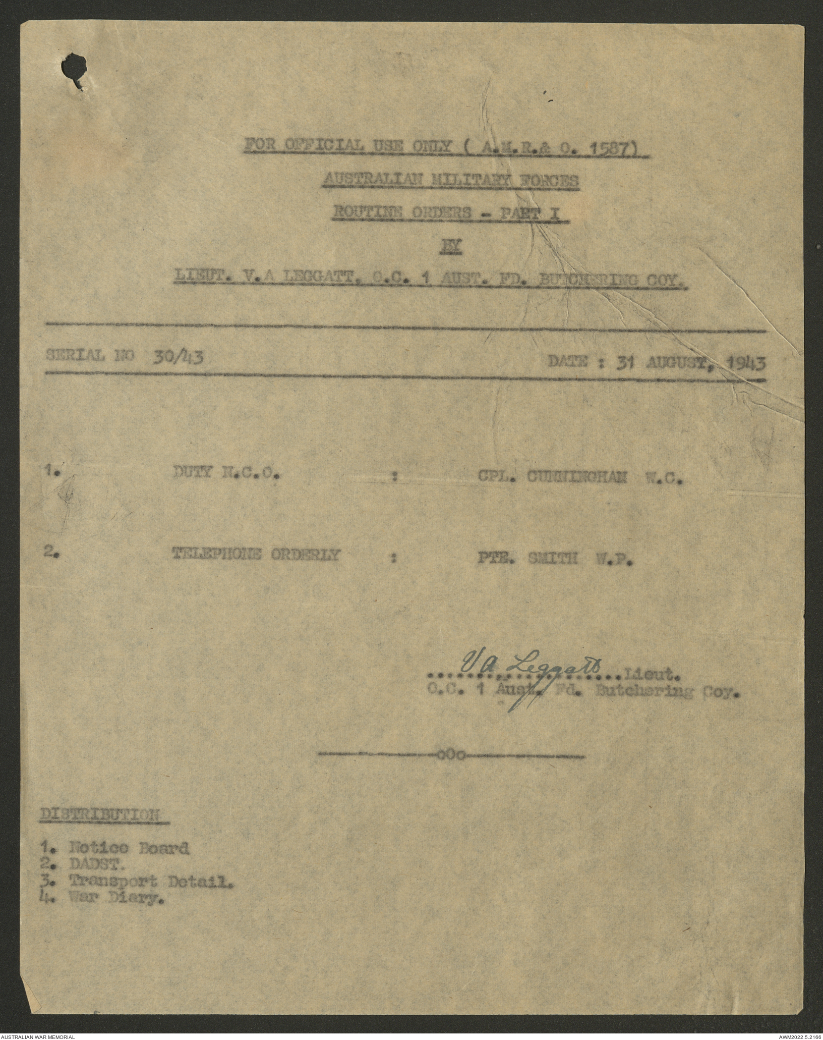AWM52 10/28/1/1 - [Unit War Diaries, 1939-45 War] 1 Australian Field Butchering Company, March 1942 - August 1943